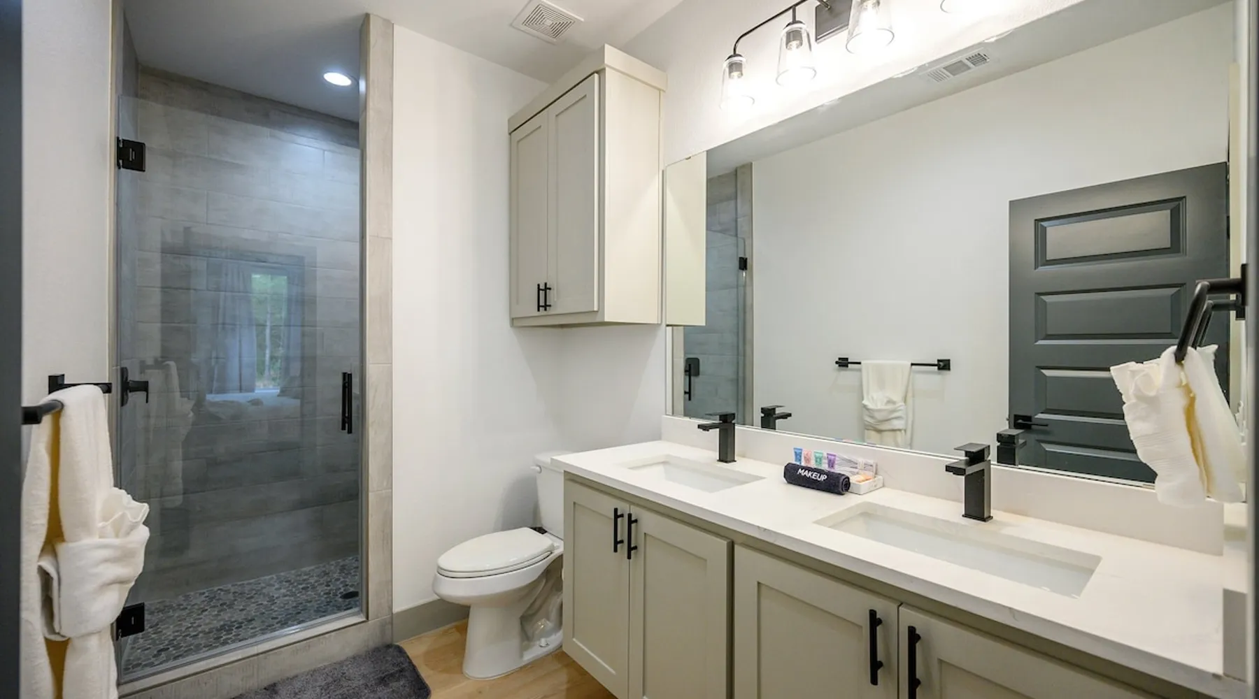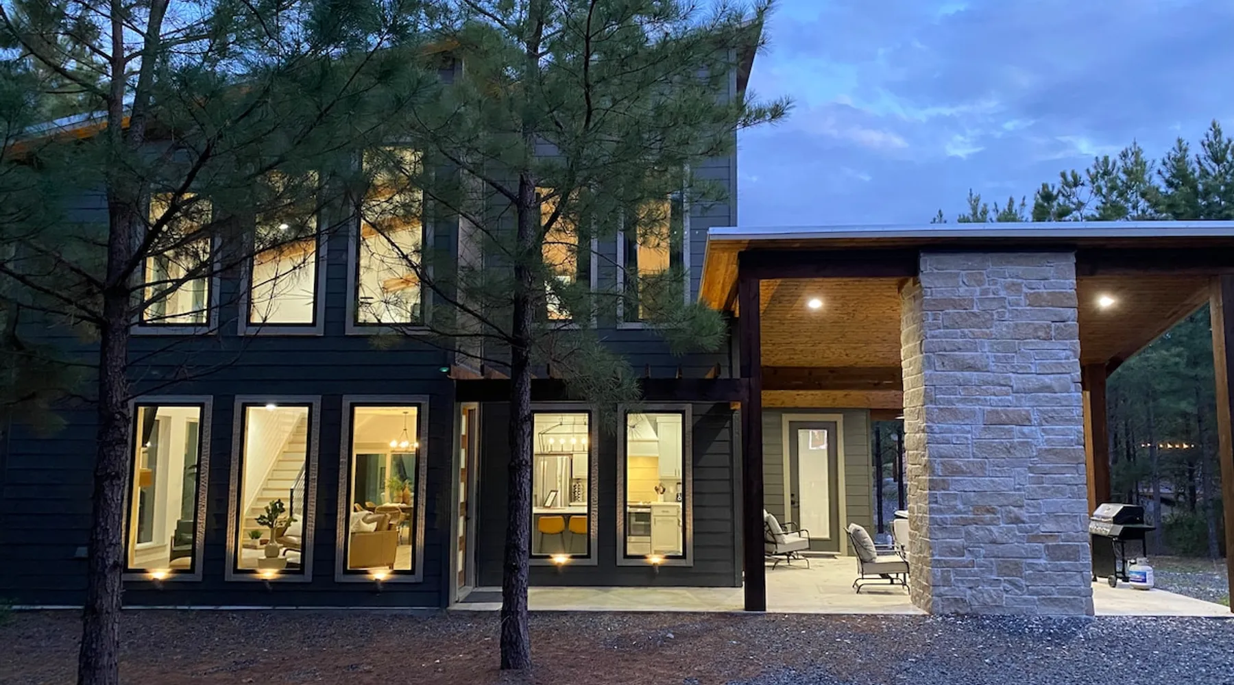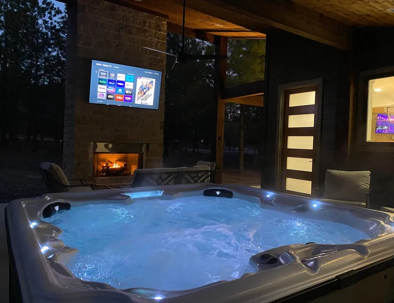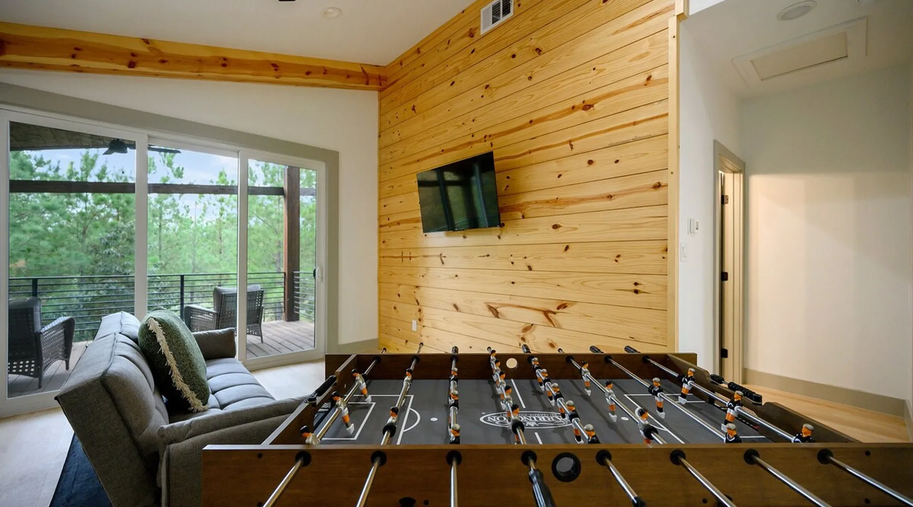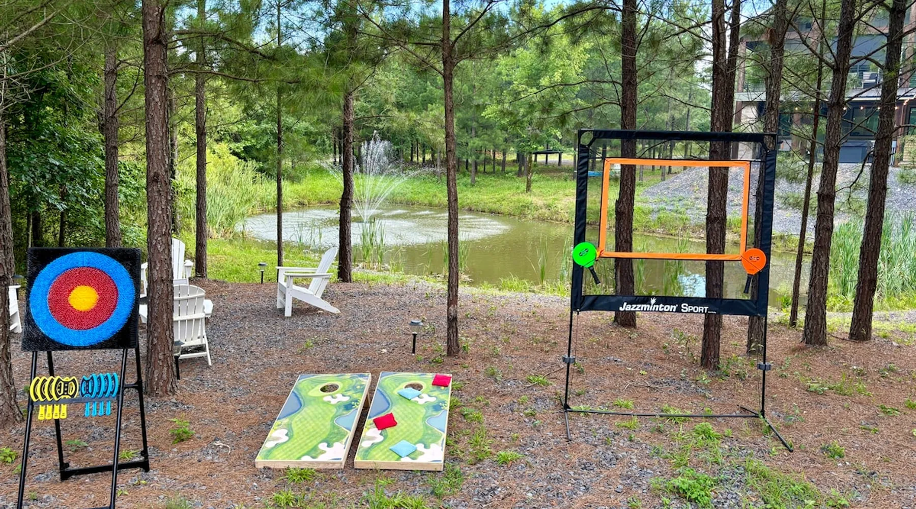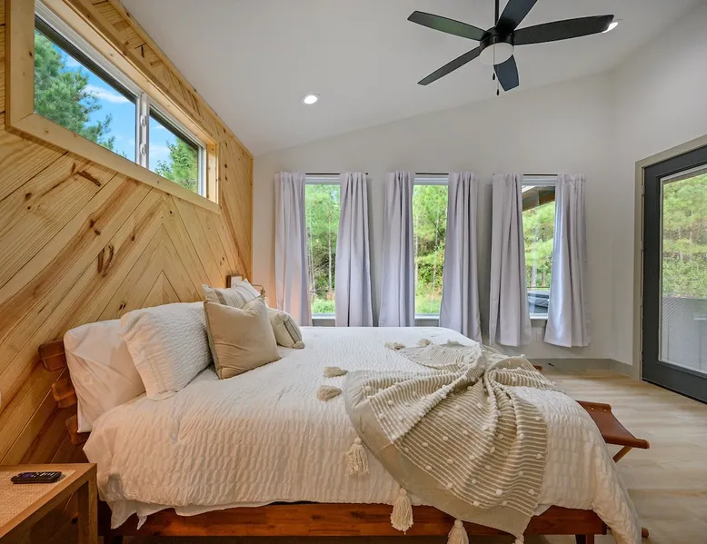 Nestled deep within a lush, dense forest, a hidden gem awaits - a tranquil cabin perched on the water's edge of a serene, beautiful pond. "Pondezvous" cabin is a sanctuary of peace and tranquility, a retreat where nature's beauty and modern luxury seamlessly merge. Surrounded by towering trees that sway gently in the breeze and the soothing sounds of chirping birds and rustling leaves, this place is a haven for those seeking an escape from the hustle and bustle of everyday life. The space Features & Fun ☀ Waterfront on your own fully stocked pond ☀ Large hot tub overlooking the water ☀ Indoor and outdoor fireplaces ☀ Axe throwing game for kids (and dads) ☀ Outdoor fire pit ☀ 2nd story balcony view overlooking the pond. ☀ Fire pit for smores, hot dogs and just relaxing by the water ☀ Fishing right out the back door for bass, catfish, bream, bluegill and crappie (catch and release only please) ☀ Outdoor dining ☀ Peaceful and quiet ☀ Luxury design ☀ Relax on the outdoor sitting area and watch your favorite movies ☀ Foosball & Air Hockey for hours of enjoyment ☀ 5 Smart TVs w/ Amazon Prime, Disney+, Hulu, Netflix, etc ☀ BBQ grill ☀ Open floor plan kitchen + living room ☀ Fully equipped kitchen w/ everything you need to cook your favorite meals ☀ Fast, free wifi w/ speeds up to 663 Mbps for work, leisure + streaming needs ☀ Washer + dryer ☀ Private backyard, back patio + front porch to enjoy tranquil country living ☆☆ OUTSIDE SPACE ☆☆ Lets start with the outside space as that will be the highlight of any Broken Bow cabin getaway. Enjoy the amazing view of the pond from hot tub, upstairs patio, downstairs patio or even the fire pit. With plenty of outdoor amenities, this cozy cabin is the perfect getaway for families who love spending time outside. Bring your fishing poles to drop a line in the water to see what you can catch. The pond is stocked with bass, catfish, bream, bluegill and crappie. Catch and release only please. Head to the back of the cabin to find the spacious outside back patio to enjoy a meal outside with views of nature and the pond. With a bubbling hot tub, a large picnic table for six, and lots of chairs for you to sit in and enjoy the scenery, we’re sure you’ll find this the perfect place to relax and watch the kids at play. This is outdoor living at its best. Cook some burgers or hot dogs on the BBQ grill. Enjoy them with a few drinks, while listening to the sound of the birds in the tall pines. Even enjoy a game of axe throwing (yes, I said axe throwing). Don’t worry, it is safe for kiddos. Cozy up by the outdoor fireplace and turn on an outdoor movie on the large outdoor smart TV. When it starts to get darker, slow the pace down a little and make use of the convenient fire pit. We’ve arranged lots of seating around it, so you’ll be able to enjoy moonlit conversations and lots of s’mores! Don’t worry when the evening starts to draw in. The ambient string lights mean that little ones will be able to carry on playing long after bedtime (parent permission pending)! Surrounded by Mother Nature, you’d have the perfect vacation simply hanging out at our cozy cabin and enjoying the wonderful amenities. ☆☆ BEDROOMS ☆☆ Surrounded by nature, this beautiful cabin offers plenty of space for 6 guests to relax, enjoy each other’s company and make wonderful memories. 2 master bedrooms (1 up and 1 down) provide guests with luxuriously comfortable king-sized beds, topped with a super comfy mattress. It’s so cozy, you may have trouble getting out of bed in the morning! Not only will you be able to enjoy your favorite TV shows on the large smart TV, but also the breathtaking views through the exceptionally large windows bringing nature indoors. In the mornings, step through the doors to enjoy alone time and a warm cup of coffee on the back patio before everyone else wakes up. Upstairs on the second floor, you’ll find the 2nd master bedroom and 2 custom built-in bunk beds in the loft area. The loft area is a great space for kids to hang out with a few board games, especially while listening to the pitter-patter of raindrops on a rainy day. Step out onto the private upper patio deck that gives you great views of the pond and forest around. ☆☆ BATHROOMS ☆☆ 2.5 full size stylish bathrooms with modern fixtures with plenty of room are available for use throughout your stay. On the first floor, the master bedroom has a private ensuite bathroom, complete with double sink vanity. The half bathroom is located on the first floor as well. The upstairs full bathroom also sports a double sink vanity and tiled shower. There’s plenty of bathroom space, so rest assured there won’t be a line for the bathroom. ☆☆ KITCHEN & LOUNGE ☆☆ As you enter the main floor of this luxurious cabin for the first time, you’ll be struck by the beauty of the high ceilings and the natural light streaming through the open-concept kitchen and living room. A fully stocked, modern kitchen is waiting for you to use as much or as little as you want! The kitchen boasts a full range of appliances, and no detail is overlooked, from the stainless stove and oven to a high-quality Keurig coffee maker. Start each day by brewing coffee your way and choosing from many outdoor spaces to enjoy it. We’ve added lots of personal touches throughout the cabin. Looking to unwind with some home cooking while you’re here? Get some cooking ideas from our favorite recipe books! We threw in a rack of spices to inspire you. We like to keep things casual yet stylish for your visit. The exquisite granite kitchen island is as functional as it is attractive, providing space for the family to gather around to enjoy meals or keep the chef company. The comfortable living room is the perfect place for the whole family to relax. Find a spot on the plump, oversized leather sofa or one of the comfy leather chairs. Flip a switch and enjoy the warming ambiance of th