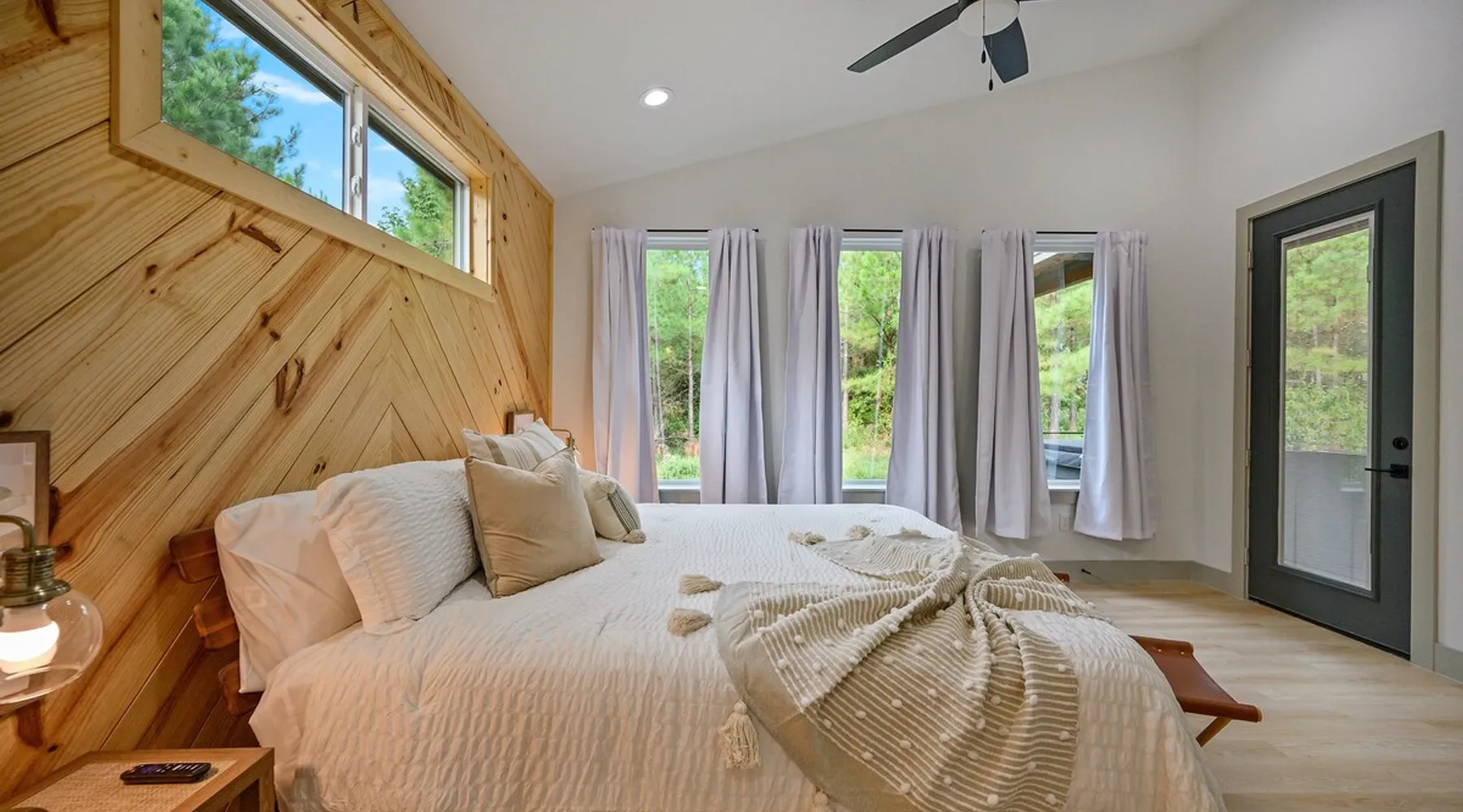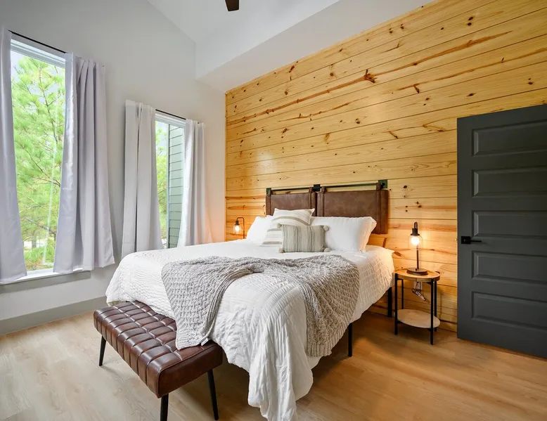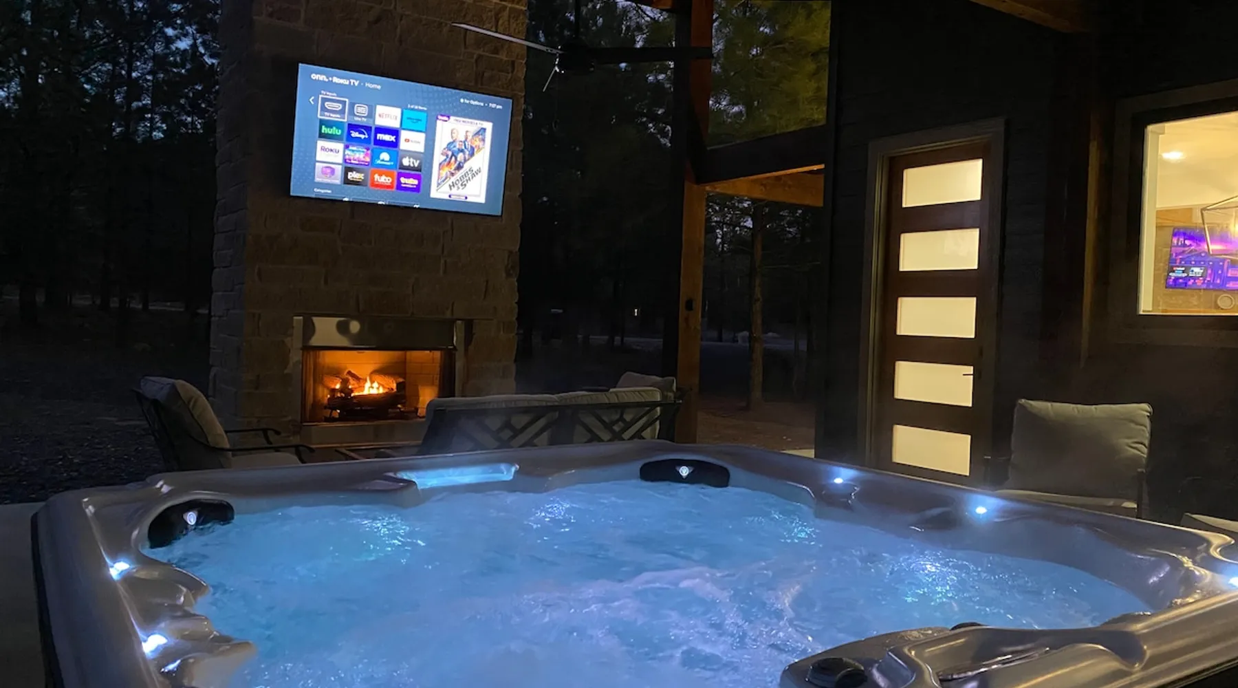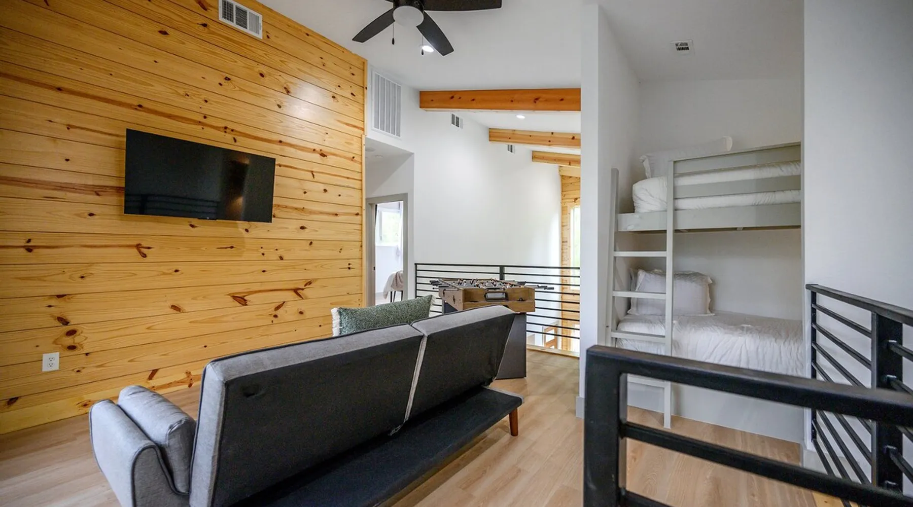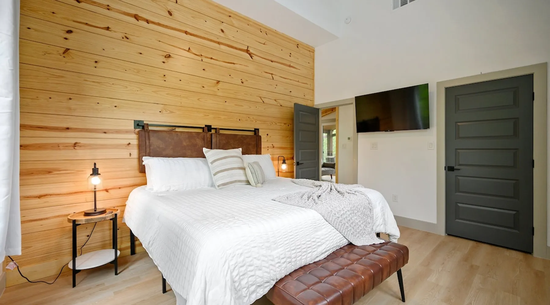 Nestled deep within a lush, dense forest, a hidden gem awaits - a tranquil cabin perched on the water's edge of a serene, beautiful pond. "Pondezvous" cabin is a sanctuary of peace and tranquility, a retreat where nature's beauty and modern luxury seamlessly merge. Surrounded by towering trees that sway gently in the breeze and the soothing sounds of chirping birds and rustling leaves, this place is a haven for those seeking an escape from the hustle and bustle of everyday life. The space Features & Fun ☀ Waterfront on your own fully stocked pond ☀ Large hot tub overlooking the water ☀ Indoor and outdoor fireplaces ☀ Axe throwing game for kids (and dads) ☀ Outdoor fire pit ☀ 2nd story balcony view overlooking the pond. ☀ Fire pit for smores, hot dogs and just relaxing by the water ☀ Fishing right out the back door for bass, catfish, bream, bluegill and crappie (catch and release only please) ☀ Outdoor dining ☀ Peaceful and quiet ☀ Luxury design ☀ Relax on the outdoor sitting area and watch your favorite movies ☀ Foosball & Air Hockey for hours of enjoyment ☀ 5 Smart TVs w/ Amazon Prime, Disney+, Hulu, Netflix, etc ☀ BBQ grill ☀ Open floor plan kitchen + living room ☀ Fully equipped kitchen w/ everything you need to cook your favorite meals ☀ Fast, free wifi w/ speeds up to 663 Mbps for work, leisure + streaming needs ☀ Washer + dryer ☀ Private backyard, back patio + front porch to enjoy tranquil country living ☆☆ OUTSIDE SPACE ☆☆ Lets start with the outside space as that will be the highlight of any Broken Bow cabin getaway. Enjoy the amazing view of the pond from hot tub, upstairs patio, downstairs patio or even the fire pit. With plenty of outdoor amenities, this cozy cabin is the perfect getaway for families who love spending time outside. Bring your fishing poles to drop a line in the water to see what you can catch. The pond is stocked with bass, catfish, bream, bluegill and crappie. Catch and release only please. Head to the back of the cabin to find the spacious outside back patio to enjoy a meal outside with views of nature and the pond. With a bubbling hot tub, a large picnic table for six, and lots of chairs for you to sit in and enjoy the scenery, we’re sure you’ll find this the perfect place to relax and watch the kids at play. This is outdoor living at its best. Cook some burgers or hot dogs on the BBQ grill. Enjoy them with a few drinks, while listening to the sound of the birds in the tall pines. Even enjoy a game of axe throwing (yes, I said axe throwing). Don’t worry, it is safe for kiddos. Cozy up by the outdoor fireplace and turn on an outdoor movie on the large outdoor smart TV. When it starts to get darker, slow the pace down a little and make use of the convenient fire pit. We’ve arranged lots of seating around it, so you’ll be able to enjoy moonlit conversations and lots of s’mores! Don’t worry when the evening starts to draw in. The ambient string lights mean that little ones will be able to carry on playing long after bedtime (parent permission pending)! Surrounded by Mother Nature, you’d have the perfect vacation simply hanging out at our cozy cabin and enjoying the wonderful amenities. ☆☆ BEDROOMS ☆☆ Surrounded by nature, this beautiful cabin offers plenty of space for 6 guests to relax, enjoy each other’s company and make wonderful memories. 2 master bedrooms (1 up and 1 down) provide guests with luxuriously comfortable king-sized beds, topped with a super comfy mattress. It’s so cozy, you may have trouble getting out of bed in the morning! Not only will you be able to enjoy your favorite TV shows on the large smart TV, but also the breathtaking views through the exceptionally large windows bringing nature indoors. In the mornings, step through the doors to enjoy alone time and a warm cup of coffee on the back patio before everyone else wakes up. Upstairs on the second floor, you’ll find the 2nd master bedroom and 2 custom built-in bunk beds in the loft area. The loft area is a great space for kids to hang out with a few board games, especially while listening to the pitter-patter of raindrops on a rainy day. Step out onto the private upper patio deck that gives you great views of the pond and forest around. ☆☆ BATHROOMS ☆☆ 2.5 full size stylish bathrooms with modern fixtures with plenty of room are available for use throughout your stay. On the first floor, the master bedroom has a private ensuite bathroom, complete with double sink vanity. The half bathroom is located on the first floor as well. The upstairs full bathroom also sports a double sink vanity and tiled shower. There’s plenty of bathroom space, so rest assured there won’t be a line for the bathroom. ☆☆ KITCHEN & LOUNGE ☆☆ As you enter the main floor of this luxurious cabin for the first time, you’ll be struck by the beauty of the high ceilings and the natural light streaming through the open-concept kitchen and living room. A fully stocked, modern kitchen is waiting for you to use as much or as little as you want! The kitchen boasts a full range of appliances, and no detail is overlooked, from the stainless stove and oven to a high-quality Keurig coffee maker. Start each day by brewing coffee your way and choosing from many outdoor spaces to enjoy it. We’ve added lots of personal touches throughout the cabin. Looking to unwind with some home cooking while you’re here? Get some cooking ideas from our favorite recipe books! We threw in a rack of spices to inspire you. We like to keep things casual yet stylish for your visit. The exquisite granite kitchen island is as functional as it is attractive, providing space for the family to gather around to enjoy meals or keep the chef company. The comfortable living room is the perfect place for the whole family to relax. Find a spot on the plump, oversized leather sofa or one of the comfy leather chairs. Flip a switch and enjoy the warming ambiance of th