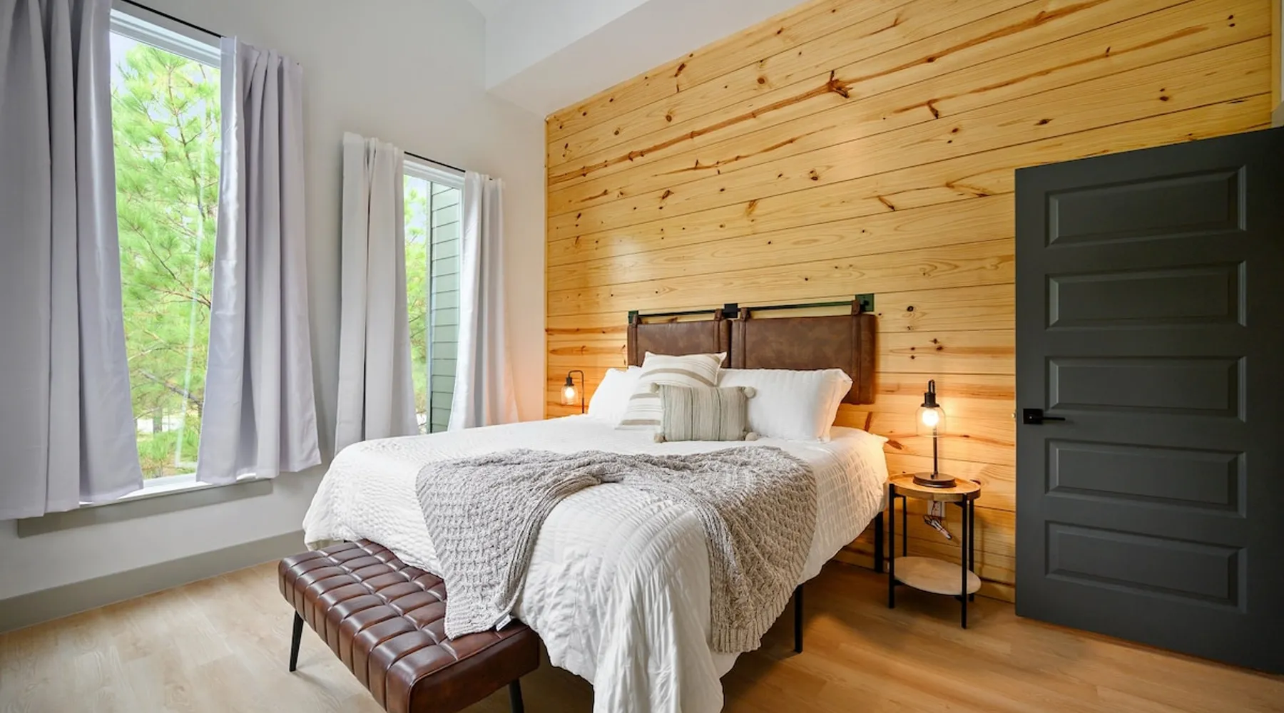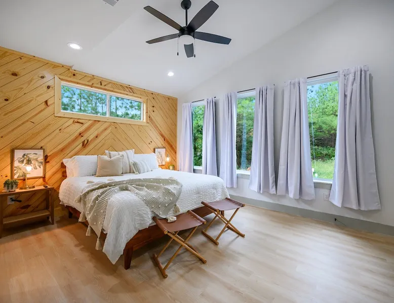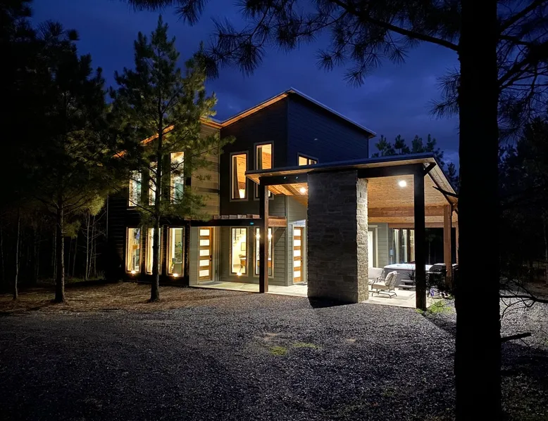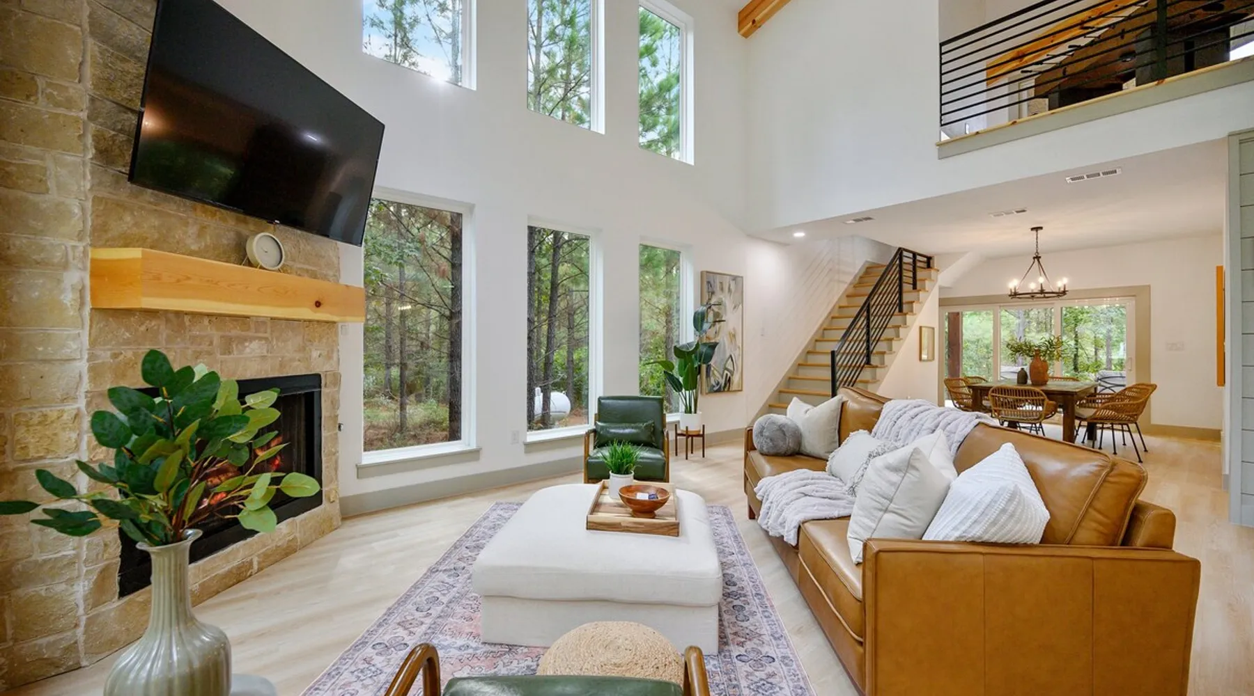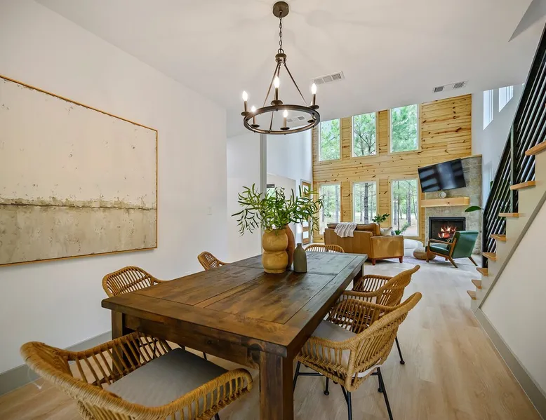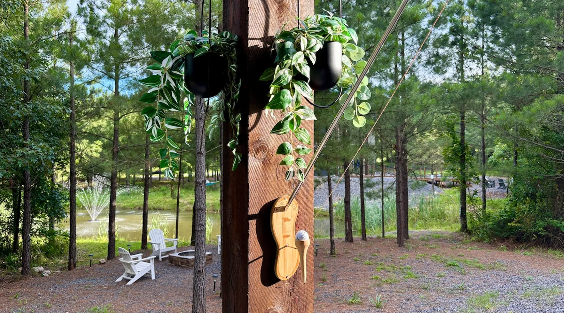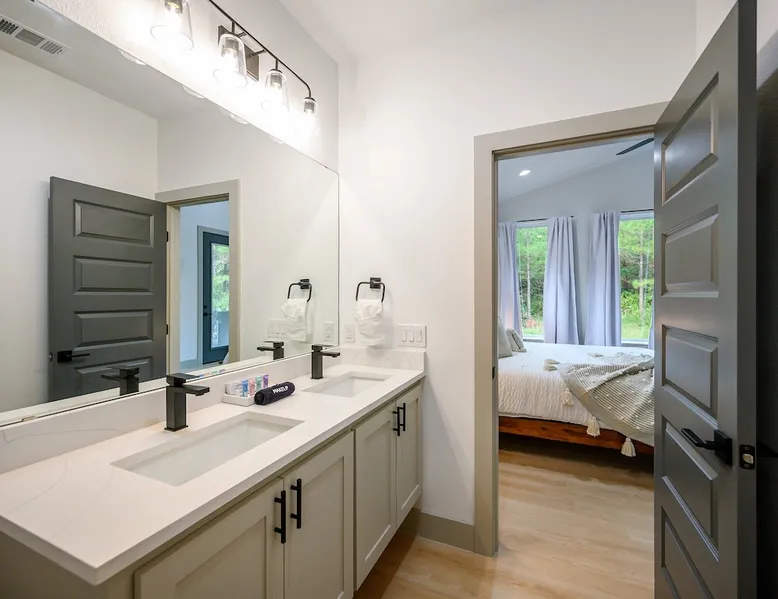 Nestled deep within a lush, dense forest, a hidden gem awaits - a tranquil cabin perched on the water's edge of a serene, beautiful pond. "Pondezvous" cabin is a sanctuary of peace and tranquility, a retreat where nature's beauty and modern luxury seamlessly merge. Surrounded by towering trees that sway gently in the breeze and the soothing sounds of chirping birds and rustling leaves, this place is a haven for those seeking an escape from the hustle and bustle of everyday life. The space Features & Fun ☀ Waterfront on your own fully stocked pond ☀ Large hot tub overlooking the water ☀ Indoor and outdoor fireplaces ☀ Axe throwing game for kids (and dads) ☀ Outdoor fire pit ☀ 2nd story balcony view overlooking the pond. ☀ Fire pit for smores, hot dogs and just relaxing by the water ☀ Fishing right out the back door for bass, catfish, bream, bluegill and crappie (catch and release only please) ☀ Outdoor dining ☀ Peaceful and quiet ☀ Luxury design ☀ Relax on the outdoor sitting area and watch your favorite movies ☀ Foosball & Air Hockey for hours of enjoyment ☀ 5 Smart TVs w/ Amazon Prime, Disney+, Hulu, Netflix, etc ☀ BBQ grill ☀ Open floor plan kitchen + living room ☀ Fully equipped kitchen w/ everything you need to cook your favorite meals ☀ Fast, free wifi w/ speeds up to 663 Mbps for work, leisure + streaming needs ☀ Washer + dryer ☀ Private backyard, back patio + front porch to enjoy tranquil country living ☆☆ OUTSIDE SPACE ☆☆ Lets start with the outside space as that will be the highlight of any Broken Bow cabin getaway. Enjoy the amazing view of the pond from hot tub, upstairs patio, downstairs patio or even the fire pit. With plenty of outdoor amenities, this cozy cabin is the perfect getaway for families who love spending time outside. Bring your fishing poles to drop a line in the water to see what you can catch. The pond is stocked with bass, catfish, bream, bluegill and crappie. Catch and release only please. Head to the back of the cabin to find the spacious outside back patio to enjoy a meal outside with views of nature and the pond. With a bubbling hot tub, a large picnic table for six, and lots of chairs for you to sit in and enjoy the scenery, we’re sure you’ll find this the perfect place to relax and watch the kids at play. This is outdoor living at its best. Cook some burgers or hot dogs on the BBQ grill. Enjoy them with a few drinks, while listening to the sound of the birds in the tall pines. Even enjoy a game of axe throwing (yes, I said axe throwing). Don’t worry, it is safe for kiddos. Cozy up by the outdoor fireplace and turn on an outdoor movie on the large outdoor smart TV. When it starts to get darker, slow the pace down a little and make use of the convenient fire pit. We’ve arranged lots of seating around it, so you’ll be able to enjoy moonlit conversations and lots of s’mores! Don’t worry when the evening starts to draw in. The ambient string lights mean that little ones will be able to carry on playing long after bedtime (parent permission pending)! Surrounded by Mother Nature, you’d have the perfect vacation simply hanging out at our cozy cabin and enjoying the wonderful amenities. ☆☆ BEDROOMS ☆☆ Surrounded by nature, this beautiful cabin offers plenty of space for 6 guests to relax, enjoy each other’s company and make wonderful memories. 2 master bedrooms (1 up and 1 down) provide guests with luxuriously comfortable king-sized beds, topped with a super comfy mattress. It’s so cozy, you may have trouble getting out of bed in the morning! Not only will you be able to enjoy your favorite TV shows on the large smart TV, but also the breathtaking views through the exceptionally large windows bringing nature indoors. In the mornings, step through the doors to enjoy alone time and a warm cup of coffee on the back patio before everyone else wakes up. Upstairs on the second floor, you’ll find the 2nd master bedroom and 2 custom built-in bunk beds in the loft area. The loft area is a great space for kids to hang out with a few board games, especially while listening to the pitter-patter of raindrops on a rainy day. Step out onto the private upper patio deck that gives you great views of the pond and forest around. ☆☆ BATHROOMS ☆☆ 2.5 full size stylish bathrooms with modern fixtures with plenty of room are available for use throughout your stay. On the first floor, the master bedroom has a private ensuite bathroom, complete with double sink vanity. The half bathroom is located on the first floor as well. The upstairs full bathroom also sports a double sink vanity and tiled shower. There’s plenty of bathroom space, so rest assured there won’t be a line for the bathroom. ☆☆ KITCHEN & LOUNGE ☆☆ As you enter the main floor of this luxurious cabin for the first time, you’ll be struck by the beauty of the high ceilings and the natural light streaming through the open-concept kitchen and living room. A fully stocked, modern kitchen is waiting for you to use as much or as little as you want! The kitchen boasts a full range of appliances, and no detail is overlooked, from the stainless stove and oven to a high-quality Keurig coffee maker. Start each day by brewing coffee your way and choosing from many outdoor spaces to enjoy it. We’ve added lots of personal touches throughout the cabin. Looking to unwind with some home cooking while you’re here? Get some cooking ideas from our favorite recipe books! We threw in a rack of spices to inspire you. We like to keep things casual yet stylish for your visit. The exquisite granite kitchen island is as functional as it is attractive, providing space for the family to gather around to enjoy meals or keep the chef company. The comfortable living room is the perfect place for the whole family to relax. Find a spot on the plump, oversized leather sofa or one of the comfy leather chairs. Flip a switch and enjoy the warming ambiance of th