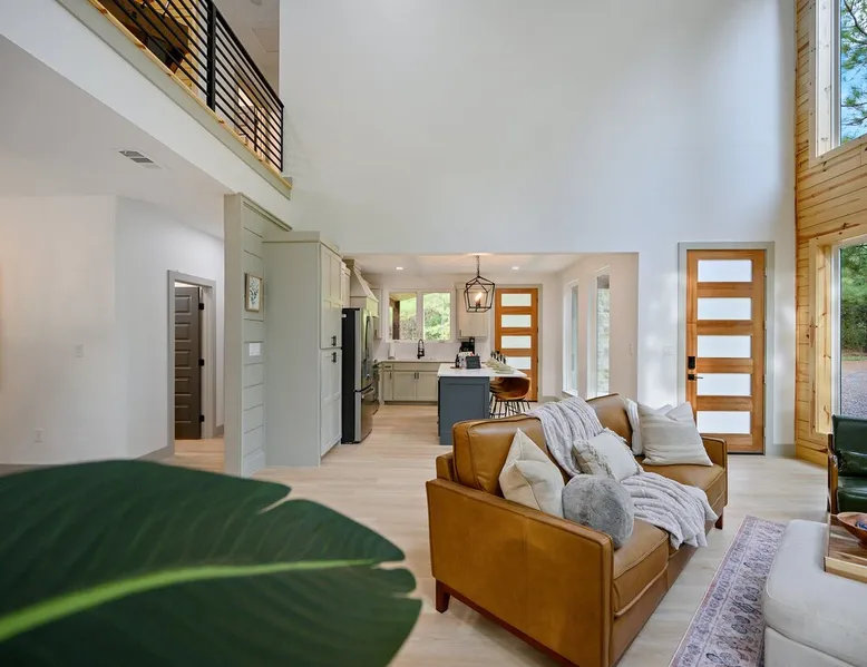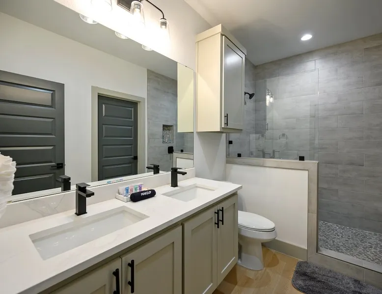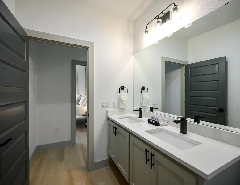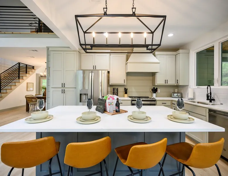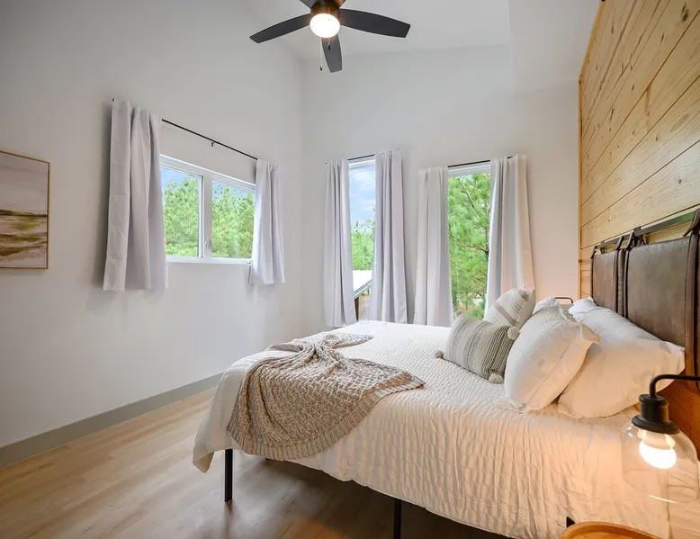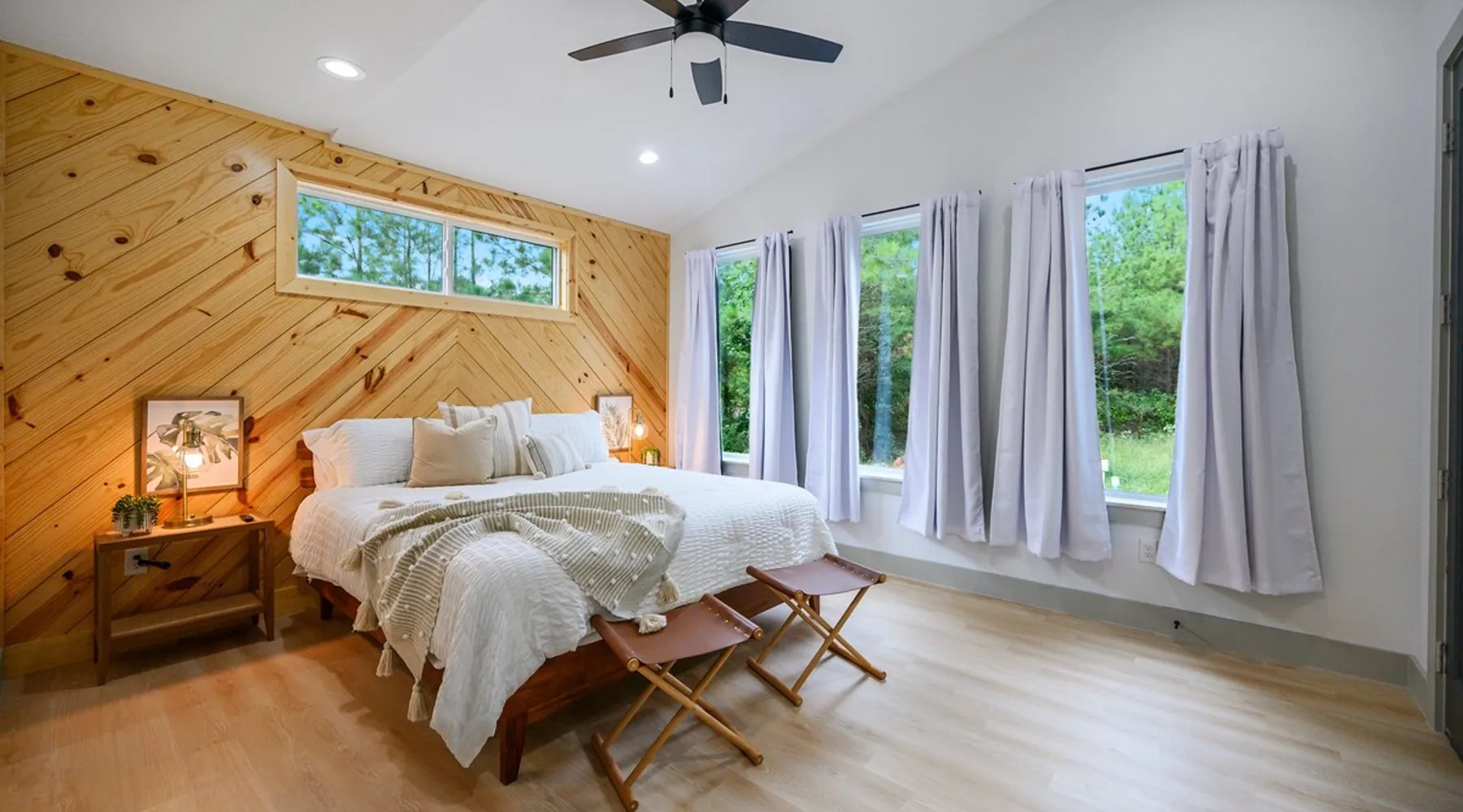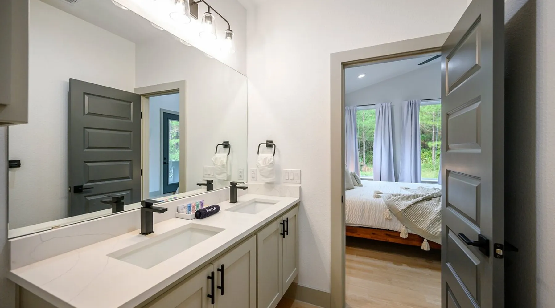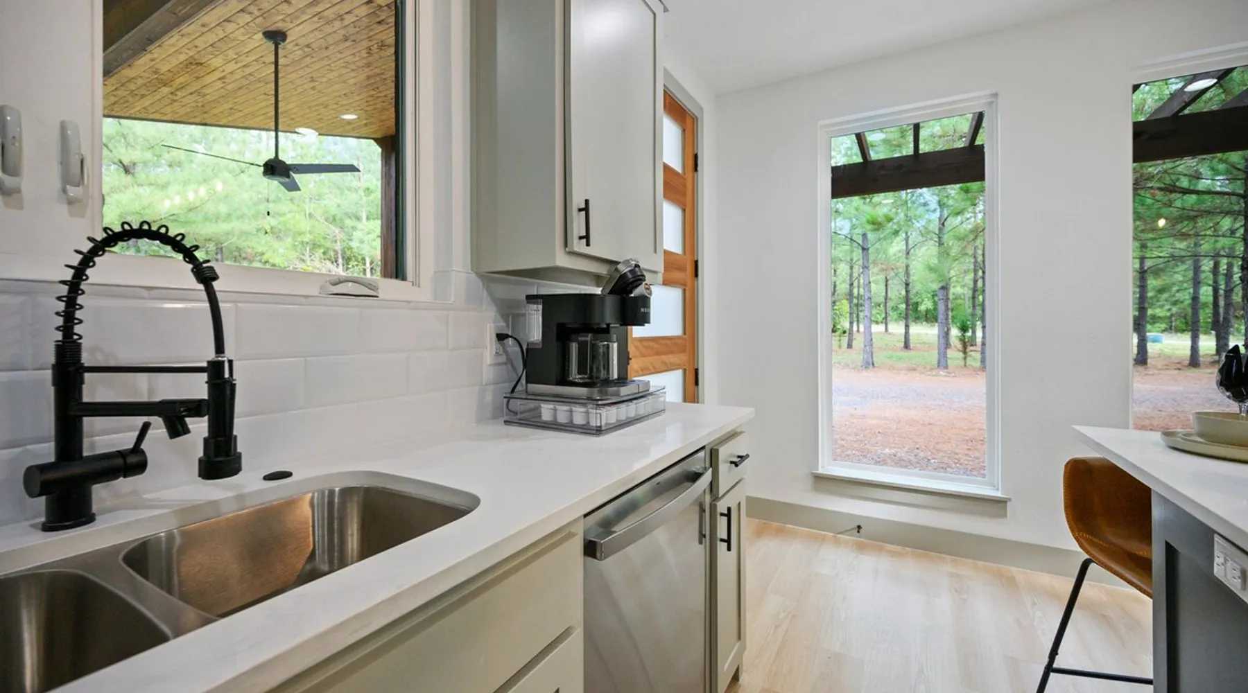Nestled deep within a lush, dense forest, a hidden gem awaits - a tranquil cabin perched on the water's edge of a serene, beautiful pond. "Pondezvous" cabin is a sanctuary of peace and tranquility, a retreat where nature's beauty and modern luxury seamlessly merge. Surrounded by towering trees that sway gently in the breeze and the soothing sounds of chirping birds and rustling leaves, this place is a haven for those seeking an escape from the hustle and bustle of everyday life. The space Features & Fun ☀ Waterfront on your own fully stocked pond ☀ Large hot tub overlooking the water ☀ Indoor and outdoor fireplaces ☀ Axe throwing game for kids (and dads) ☀ Outdoor fire pit ☀ 2nd story balcony view overlooking the pond. ☀ Fire pit for smores, hot dogs and just relaxing by the water ☀ Fishing right out the back door for bass, catfish, bream, bluegill and crappie (catch and release only please) ☀ Outdoor dining ☀ Peaceful and quiet ☀ Luxury design ☀ Relax on the outdoor sitting area and watch your favorite movies ☀ Foosball & Air Hockey for hours of enjoyment ☀ 5 Smart TVs w/ Amazon Prime, Disney+, Hulu, Netflix, etc ☀ BBQ grill ☀ Open floor plan kitchen + living room ☀ Fully equipped kitchen w/ everything you need to cook your favorite meals ☀ Fast, free wifi w/ speeds up to 663 Mbps for work, leisure + streaming needs ☀ Washer + dryer ☀ Private backyard, back patio + front porch to enjoy tranquil country living ☆☆ OUTSIDE SPACE ☆☆ Lets start with the outside space as that will be the highlight of any Broken Bow cabin getaway. Enjoy the amazing view of the pond from hot tub, upstairs patio, downstairs patio or even the fire pit. With plenty of outdoor amenities, this cozy cabin is the perfect getaway for families who love spending time outside. Bring your fishing poles to drop a line in the water to see what you can catch. The pond is stocked with bass, catfish, bream, bluegill and crappie. Catch and release only please. Head to the back of the cabin to find the spacious outside back patio to enjoy a meal outside with views of nature and the pond. With a bubbling hot tub, a large picnic table for six, and lots of chairs for you to sit in and enjoy the scenery, we’re sure you’ll find this the perfect place to relax and watch the kids at play. This is outdoor living at its best. Cook some burgers or hot dogs on the BBQ grill. Enjoy them with a few drinks, while listening to the sound of the birds in the tall pines. Even enjoy a game of axe throwing (yes, I said axe throwing). Don’t worry, it is safe for kiddos. Cozy up by the outdoor fireplace and turn on an outdoor movie on the large outdoor smart TV. When it starts to get darker, slow the pace down a little and make use of the convenient fire pit. We’ve arranged lots of seating around it, so you’ll be able to enjoy moonlit conversations and lots of s’mores! Don’t worry when the evening starts to draw in. The ambient string lights mean that little ones will be able to carry on playing long after bedtime (parent permission pending)! Surrounded by Mother Nature, you’d have the perfect vacation simply hanging out at our cozy cabin and enjoying the wonderful amenities. ☆☆ BEDROOMS ☆☆ Surrounded by nature, this beautiful cabin offers plenty of space for 6 guests to relax, enjoy each other’s company and make wonderful memories. 2 master bedrooms (1 up and 1 down) provide guests with luxuriously comfortable king-sized beds, topped with a super comfy mattress. It’s so cozy, you may have trouble getting out of bed in the morning! Not only will you be able to enjoy your favorite TV shows on the large smart TV, but also the breathtaking views through the exceptionally large windows bringing nature indoors. In the mornings, step through the doors to enjoy alone time and a warm cup of coffee on the back patio before everyone else wakes up. Upstairs on the second floor, you’ll find the 2nd master bedroom and 2 custom built-in bunk beds in the loft area. The loft area is a great space for kids to hang out with a few board games, especially while listening to the pitter-patter of raindrops on a rainy day. Step out onto the private upper patio deck that gives you great views of the pond and forest around. ☆☆ BATHROOMS ☆☆ 2.5 full size stylish bathrooms with modern fixtures with plenty of room are available for use throughout your stay. On the first floor, the master bedroom has a private ensuite bathroom, complete with double sink vanity. The half bathroom is located on the first floor as well. The upstairs full bathroom also sports a double sink vanity and tiled shower. There’s plenty of bathroom space, so rest assured there won’t be a line for the bathroom. ☆☆ KITCHEN & LOUNGE ☆☆ As you enter the main floor of this luxurious cabin for the first time, you’ll be struck by the beauty of the high ceilings and the natural light streaming through the open-concept kitchen and living room. A fully stocked, modern kitchen is waiting for you to use as much or as little as you want! The kitchen boasts a full range of appliances, and no detail is overlooked, from the stainless stove and oven to a high-quality Keurig coffee maker. Start each day by brewing coffee your way and choosing from many outdoor spaces to enjoy it. We’ve added lots of personal touches throughout the cabin. Looking to unwind with some home cooking while you’re here? Get some cooking ideas from our favorite recipe books! We threw in a rack of spices to inspire you. We like to keep things casual yet stylish for your visit. The exquisite granite kitchen island is as functional as it is attractive, providing space for the family to gather around to enjoy meals or keep the chef company. The comfortable living room is the perfect place for the whole family to relax. Find a spot on the plump, oversized leather sofa or one of the comfy leather chairs. Flip a switch and enjoy the warming ambiance of th