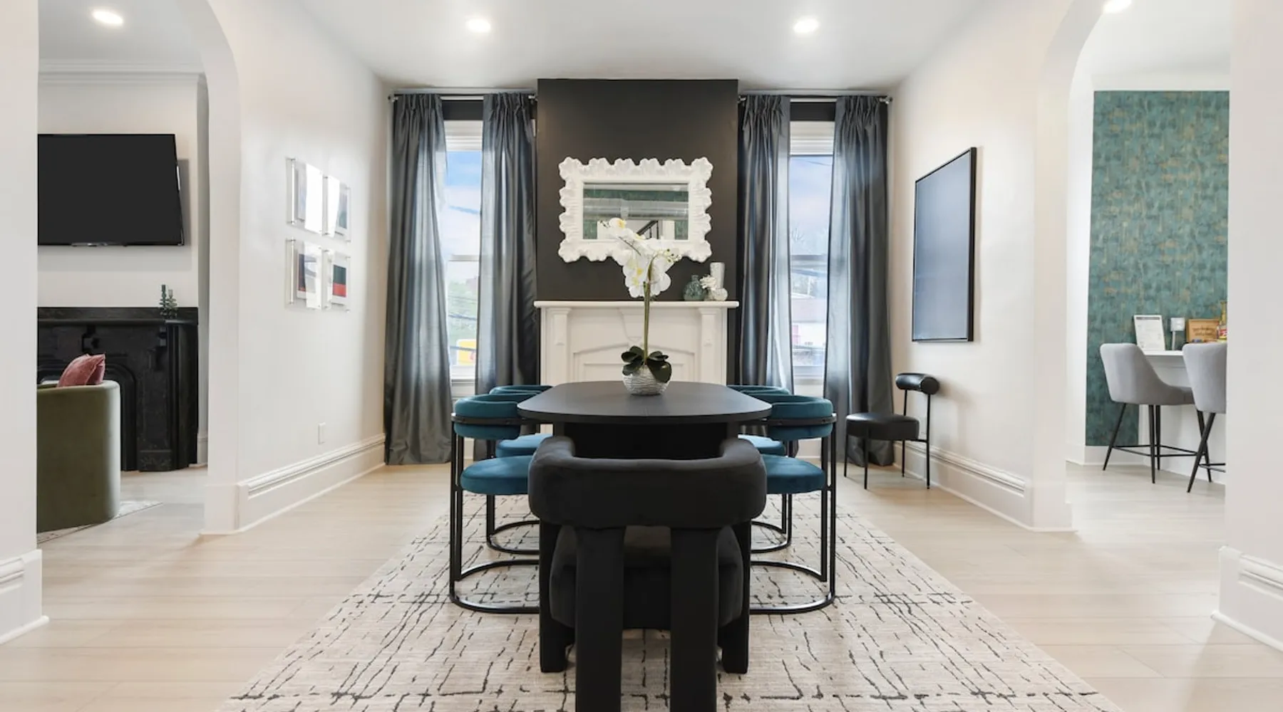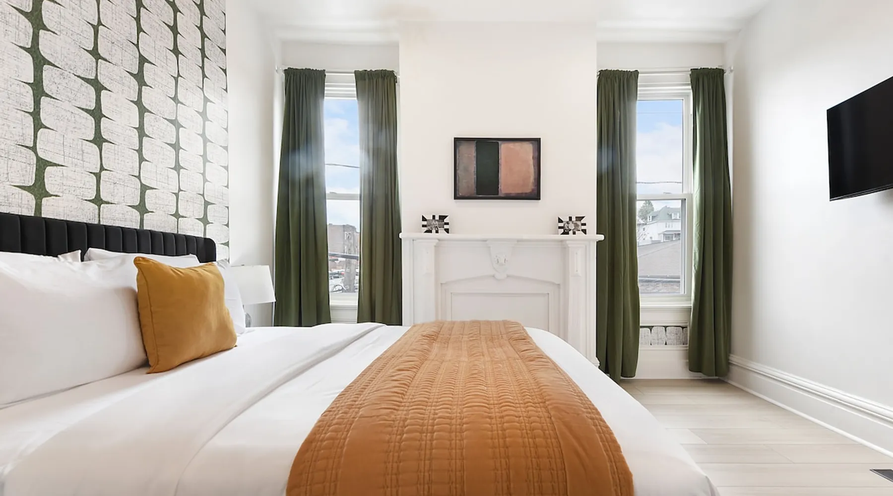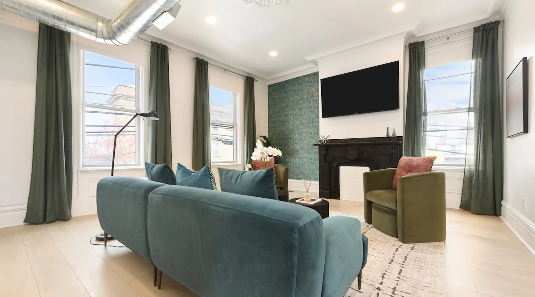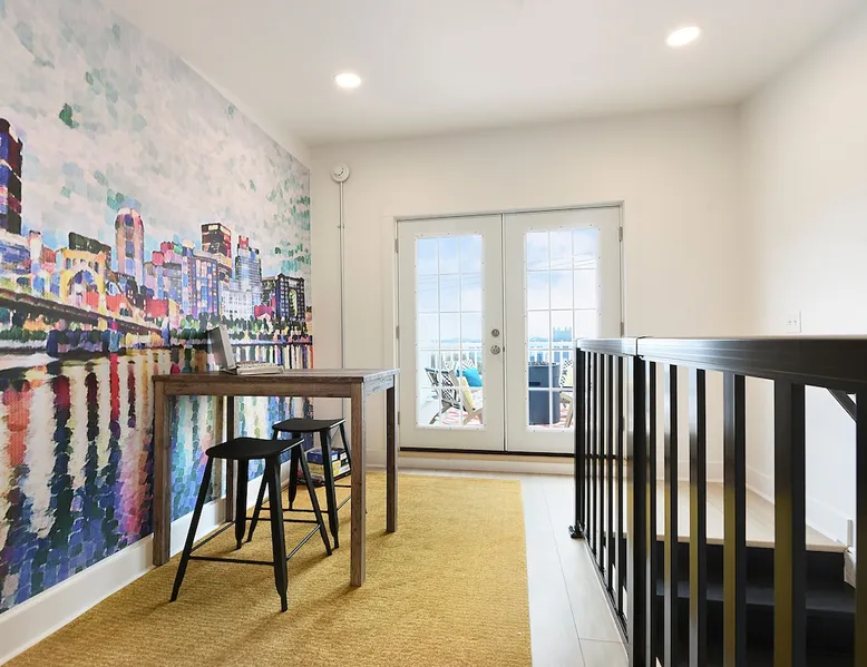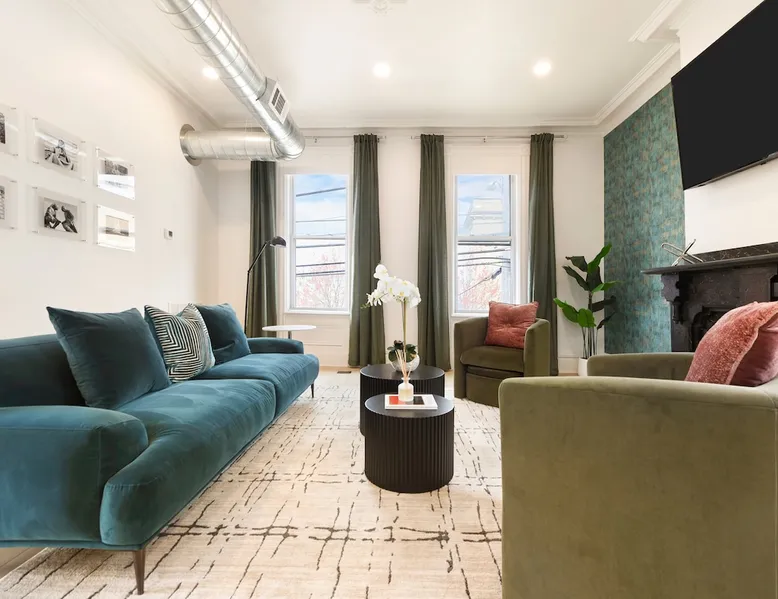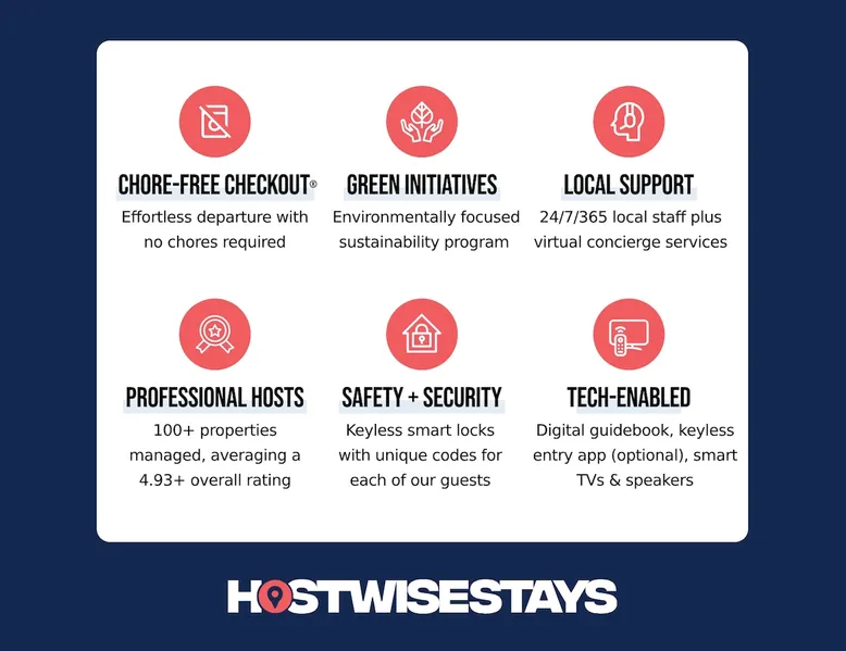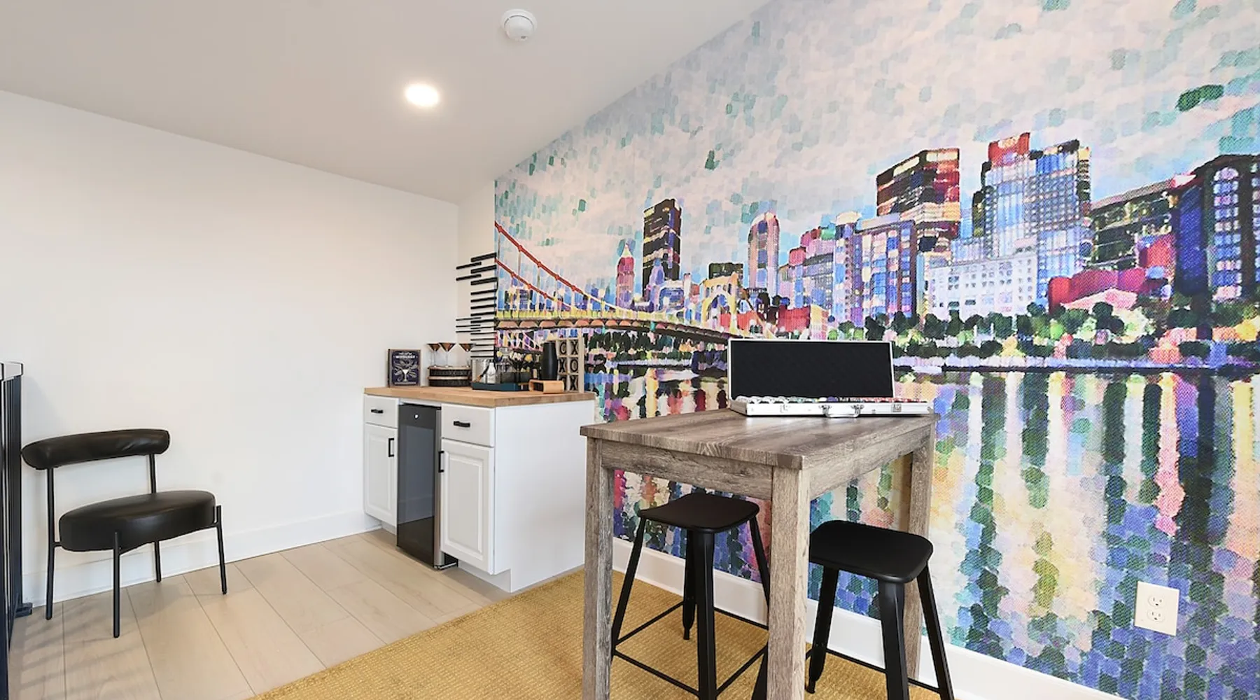 Welcome home atop Mt. Washington! Our home, brand new as of April 2024, features views of the city from the rooftop. Make yourself a cocktail at the top floor bar, then enjoy the views by the fire pit. Prepare a home-cooked meal in our bright, well-stocked kitchen & enjoy it from your Architectural Digest-inspired dining room, or walk to Shiloh St. for a great dinner out instead. With 4 bedrooms on two floors & 2 full bathrooms, our place is perfect for groups or families! The space KEY AMENITIES / DETAILS ✓ Check-out process: Chore-Free Checkout® ✓ Check-in process: Keyless entry with code ✓ Check-in technology: Dack-enabled, swipe to unlock, digital guide, more ✓ 4 Bedrooms - 2 king, 2 queen ✓ 2.5 Bathrooms ✓ Sleeps 8 ✓ Fire pit on rooftop deck w/city views ✓ Rooftop bar with wine fridge & barware ✓ Internet: High speed 300mbps ✓ Parking: Free dedicated street parking ✓ Laundry: HE washer & dryer in unit ✓ Kitchen: Fully stocked with seating for 8 ✓ Work from home: desk (with a view) ✓ Coffee: Pittsburgh's Commonplace Roasters premium whole bean coffee ✓ Tech: Smart speaker, 65" + 55" + two 43" smart TVs ✓ Eco-friendly: Recycling, earth-friendly toiletries, water filters, more ✓ HVAC: Air conditioning & forced air heating ABOUT HOSTWISE STAYS As the top-ranked professional hosts in the Pittsburgh area, we are obsessed with quality service & amenities. Like high end hotels (but better!) we have chore-free check out procedures, we only use professional cleaners, we have local full-time employees, and we're available 24 / 7 / 365. We provide our valued guests with seamless lodging experiences & top-notch amenities - fast Wi-Fi, high end coffee bars, quality linens, clean spaces, earth-friendly products, remote workspaces, stocked kitchens, premium toiletries, and more! CLEANING PROCEDURES We understand how important it is to stay in a professionally cleaned space. We don't outsource our cleaning - our cleaners are professionally trained with a passion for what they do! Our team follows an industry-leading cleaning checklist, and our Operations team performs regular inspections to ensure our high standards are upheld. DETAILED FEATURES ➤ 4 BR / 2.5 BA freestanding house on the 2nd, 3rd, 4th floor ➤ Entrance + Security - Keyless entry with unique/random codes generated via Dack-enabled security software for each guest - highly secure! ➤ Sleeps 8 comfortably ➣ 2 King mattresses + 2 Queen mattresses - semi-plush spring mattresses - super comfortable! ➤ Parking - Two dedicated street parking spots in front of our garage doors + more street parking nearby for additional vehicles, if needed ➤ Bathrooms – 2 full bathrooms with shower + tub combo (one attached to the primary bedroom) and one half bath. ➣ Includes blow dryer, plush cotton towels, and premium toiletries ➤ TVs - 65" in the living room, 55" in the primary, two 43" in other bedrooms - all HD / UHD smart TVs ➣ Most apps are free to use and / or you are able to use your cable provider's login info for "paid" apps (ESPN, HBO, Showtime, etc.) ➤ Internet - High speed 300mbps up / down Verizon FioS ➤ Work From Home - Desk + office chair in primary bedroom, with great views of the city ➤ Outdoor Space - Rooftop patio with fire pit, bar ➤ Security - External camera & non-recording decibel meter / occupancy / alarm sound detector for enhanced guest + property safety ➤ Kitchen - Fully stocked with quality pots & pans, sharp knives, silicone utensils, toaster, microwave, full coffee setup, dishwasher, stove/range, fridge, and more! ➤ Coffee & Tea - Drip coffee maker, French press, electric kettle, premium locally roasted Commonplace whole bean coffee, and Two Leaves & a Bud tea selection is provided, along with Torani syrup, organic sugar & half & half creamers ➤ Living Room - Comfy Article couch + add'l chair seating + smart TV ➤ Dining - Seating for 8 ➤ Laundry - Free washer & dryer + Dropps earth-friendly detergents available for guest use ➤ Air Conditioning / heating: Central air + heat ➤ Pets not permitted ➤ No Smoking indoors PROPERTY LAYOUT Our property is perfectly situated atop Mt. Washington, close to Shiloh St. but far enough to be a quiet area. The entry to the property has a vestibule, followed by a foyer that leads directly to a flight of ~20 stairs to the main part of the home. On the second floor, straight ahead you'll find the half bath. From the front to back of this floor is the living room, dining room, kitchen, and the lower floor bedroom with a queen bed. Off the kitchen hallway is a small outdoor patio. Up to the third floor, at the top of the stairs is the shared full bathroom. From front to back you'll find the primary bedroom with a king bed + desk along, with the attached full bathroom. The middle bedroom features a queen bed. The back bedroom features a king bed as well, and can be accessed through either the middle bedroom, or a separate set of stairs behind the kitchen. The top floor contains the rooftop patio, bar area, wine fridge, and table. Guest access Our entire property is at your disposal, with the exception of a locked housekeeping closet. Other things to note While we happily host children, parents should know that this property has multiple staircases (entrance, front of house, back of house) and so it may not be suitable for young children that are at risk of falling on stairs. Our garage dimensions are the following: Interior 18 ft wide 21 ft deep Doors 6 ft by 6 ft
