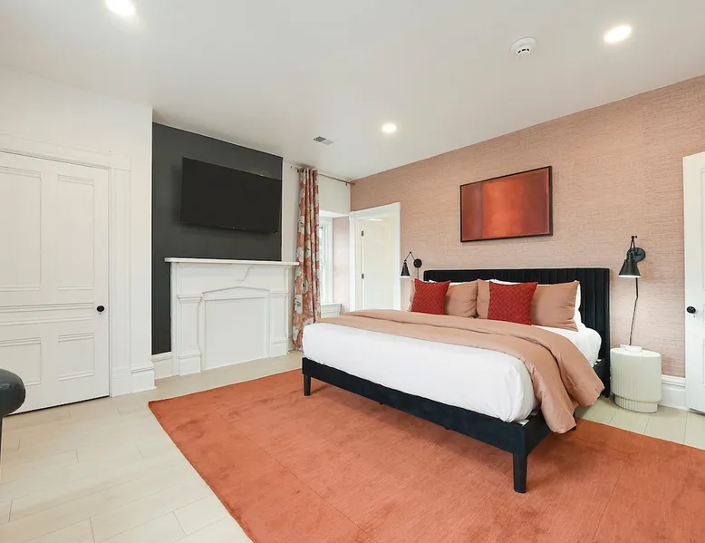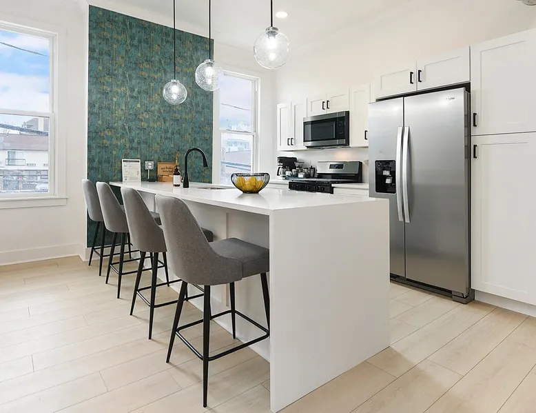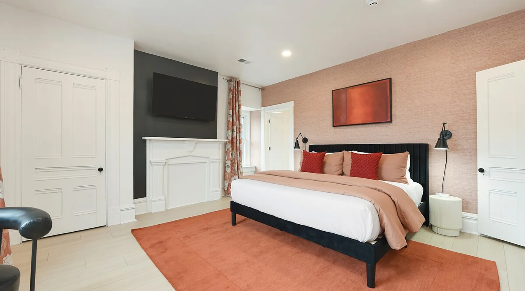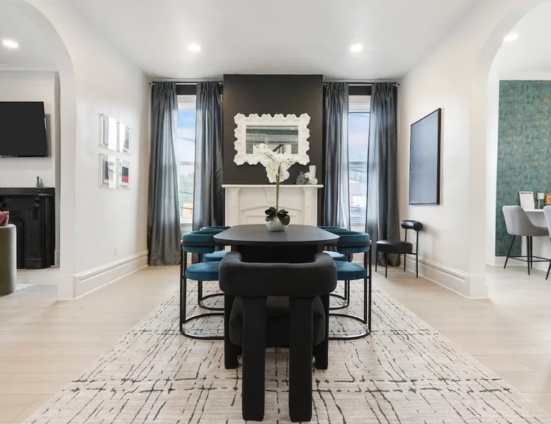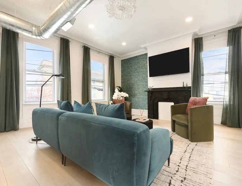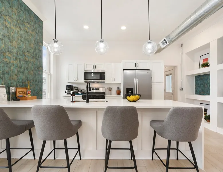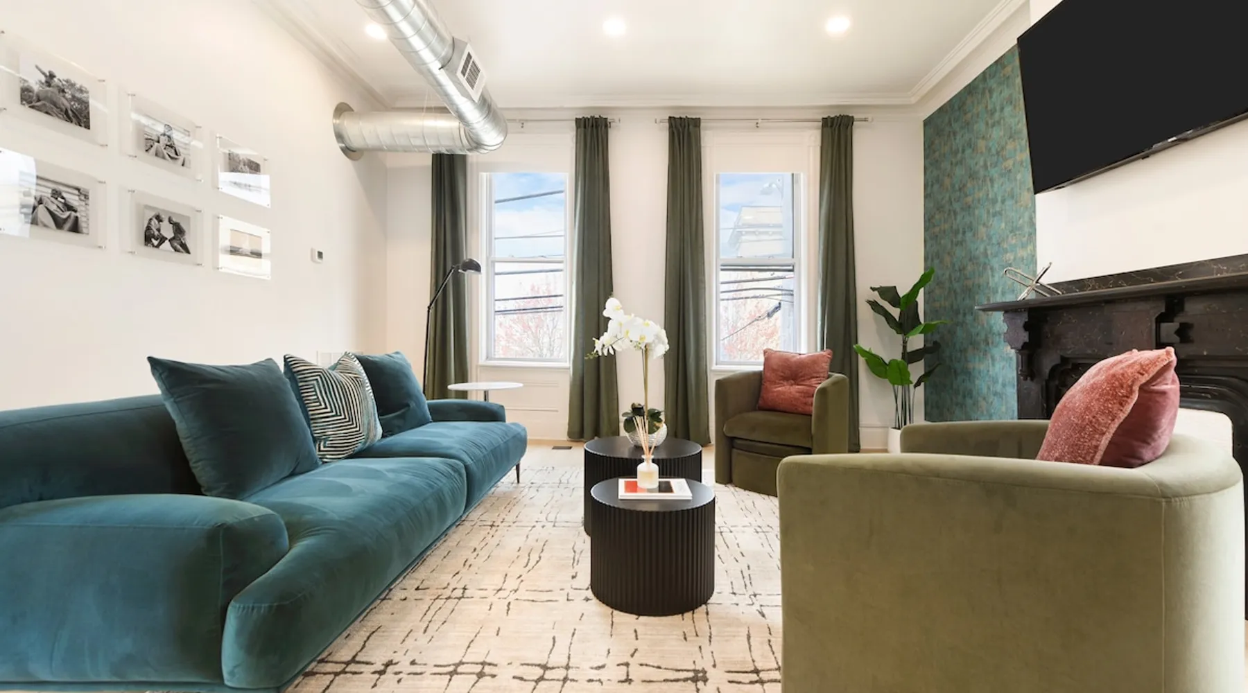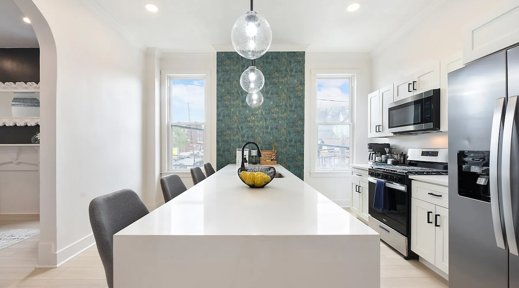Welcome home atop Mt. Washington! Our home, brand new as of April 2024, features views of the city from the rooftop. Make yourself a cocktail at the top floor bar, then enjoy the views by the fire pit. Prepare a home-cooked meal in our bright, well-stocked kitchen & enjoy it from your Architectural Digest-inspired dining room, or walk to Shiloh St. for a great dinner out instead. With 4 bedrooms on two floors & 2 full bathrooms, our place is perfect for groups or families! The space KEY AMENITIES / DETAILS ✓ Check-out process: Chore-Free Checkout® ✓ Check-in process: Keyless entry with code ✓ Check-in technology: Dack-enabled, swipe to unlock, digital guide, more ✓ 4 Bedrooms - 2 king, 2 queen ✓ 2.5 Bathrooms ✓ Sleeps 8 ✓ Fire pit on rooftop deck w/city views ✓ Rooftop bar with wine fridge & barware ✓ Internet: High speed 300mbps ✓ Parking: Free dedicated street parking ✓ Laundry: HE washer & dryer in unit ✓ Kitchen: Fully stocked with seating for 8 ✓ Work from home: desk (with a view) ✓ Coffee: Pittsburgh's Commonplace Roasters premium whole bean coffee ✓ Tech: Smart speaker, 65" + 55" + two 43" smart TVs ✓ Eco-friendly: Recycling, earth-friendly toiletries, water filters, more ✓ HVAC: Air conditioning & forced air heating ABOUT HOSTWISE STAYS As the top-ranked professional hosts in the Pittsburgh area, we are obsessed with quality service & amenities. Like high end hotels (but better!) we have chore-free check out procedures, we only use professional cleaners, we have local full-time employees, and we're available 24 / 7 / 365. We provide our valued guests with seamless lodging experiences & top-notch amenities - fast Wi-Fi, high end coffee bars, quality linens, clean spaces, earth-friendly products, remote workspaces, stocked kitchens, premium toiletries, and more! CLEANING PROCEDURES We understand how important it is to stay in a professionally cleaned space. We don't outsource our cleaning - our cleaners are professionally trained with a passion for what they do! Our team follows an industry-leading cleaning checklist, and our Operations team performs regular inspections to ensure our high standards are upheld. DETAILED FEATURES ➤ 4 BR / 2.5 BA freestanding house on the 2nd, 3rd, 4th floor ➤ Entrance + Security - Keyless entry with unique/random codes generated via Dack-enabled security software for each guest - highly secure! ➤ Sleeps 8 comfortably ➣ 2 King mattresses + 2 Queen mattresses - semi-plush spring mattresses - super comfortable! ➤ Parking - Two dedicated street parking spots in front of our garage doors + more street parking nearby for additional vehicles, if needed ➤ Bathrooms – 2 full bathrooms with shower + tub combo (one attached to the primary bedroom) and one half bath. ➣ Includes blow dryer, plush cotton towels, and premium toiletries ➤ TVs - 65" in the living room, 55" in the primary, two 43" in other bedrooms - all HD / UHD smart TVs ➣ Most apps are free to use and / or you are able to use your cable provider's login info for "paid" apps (ESPN, HBO, Showtime, etc.) ➤ Internet - High speed 300mbps up / down Verizon FioS ➤ Work From Home - Desk + office chair in primary bedroom, with great views of the city ➤ Outdoor Space - Rooftop patio with fire pit, bar ➤ Security - External camera & non-recording decibel meter / occupancy / alarm sound detector for enhanced guest + property safety ➤ Kitchen - Fully stocked with quality pots & pans, sharp knives, silicone utensils, toaster, microwave, full coffee setup, dishwasher, stove/range, fridge, and more! ➤ Coffee & Tea - Drip coffee maker, French press, electric kettle, premium locally roasted Commonplace whole bean coffee, and Two Leaves & a Bud tea selection is provided, along with Torani syrup, organic sugar & half & half creamers ➤ Living Room - Comfy Article couch + add'l chair seating + smart TV ➤ Dining - Seating for 8 ➤ Laundry - Free washer & dryer + Dropps earth-friendly detergents available for guest use ➤ Air Conditioning / heating: Central air + heat ➤ Pets not permitted ➤ No Smoking indoors PROPERTY LAYOUT Our property is perfectly situated atop Mt. Washington, close to Shiloh St. but far enough to be a quiet area. The entry to the property has a vestibule, followed by a foyer that leads directly to a flight of ~20 stairs to the main part of the home. On the second floor, straight ahead you'll find the half bath. From the front to back of this floor is the living room, dining room, kitchen, and the lower floor bedroom with a queen bed. Off the kitchen hallway is a small outdoor patio. Up to the third floor, at the top of the stairs is the shared full bathroom. From front to back you'll find the primary bedroom with a king bed + desk along, with the attached full bathroom. The middle bedroom features a queen bed. The back bedroom features a king bed as well, and can be accessed through either the middle bedroom, or a separate set of stairs behind the kitchen. The top floor contains the rooftop patio, bar area, wine fridge, and table. Guest access Our entire property is at your disposal, with the exception of a locked housekeeping closet. Other things to note While we happily host children, parents should know that this property has multiple staircases (entrance, front of house, back of house) and so it may not be suitable for young children that are at risk of falling on stairs. Our garage dimensions are the following: Interior 18 ft wide 21 ft deep Doors 6 ft by 6 ft