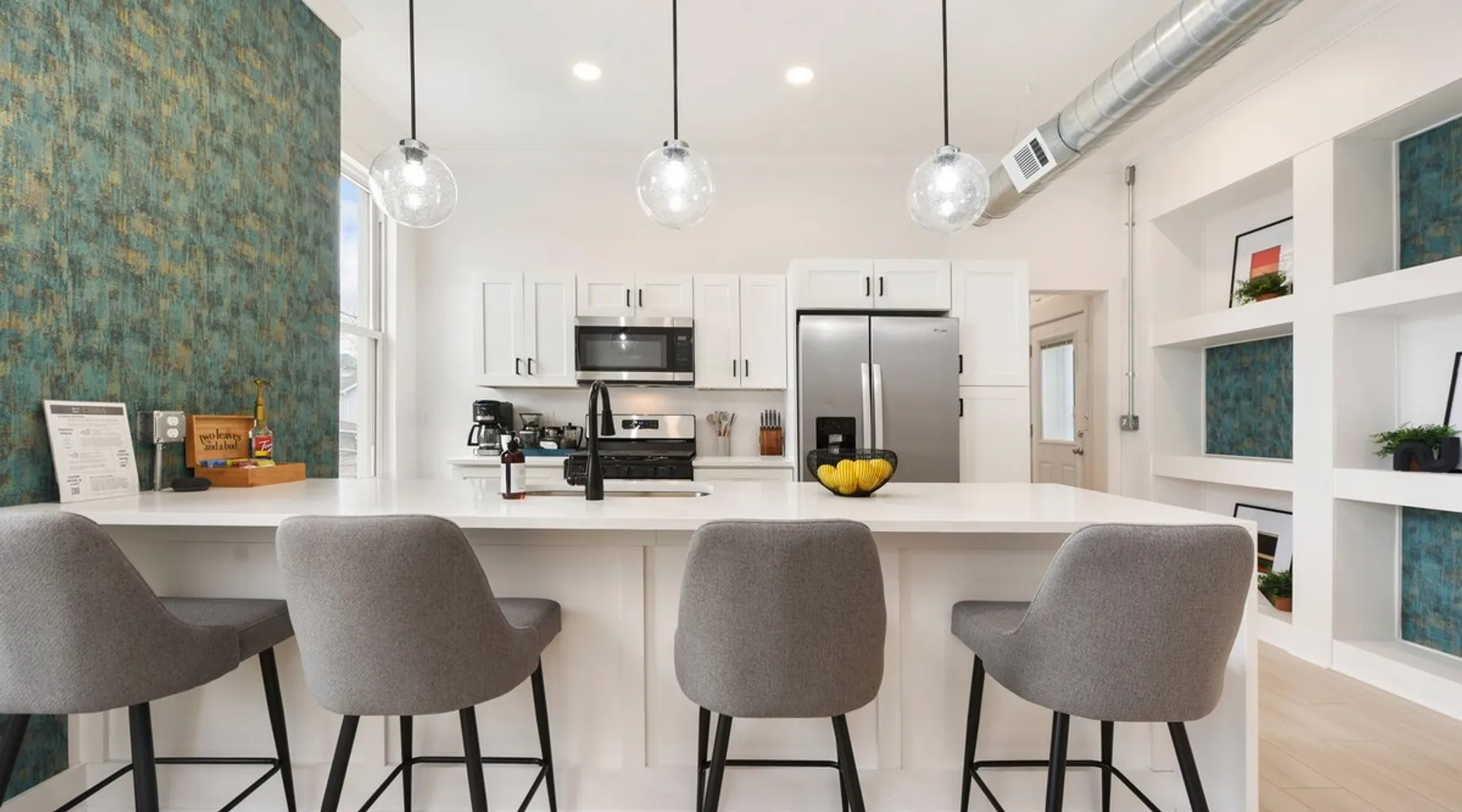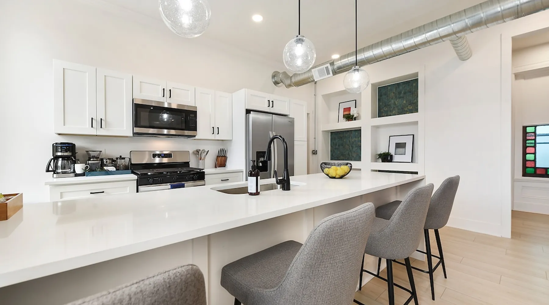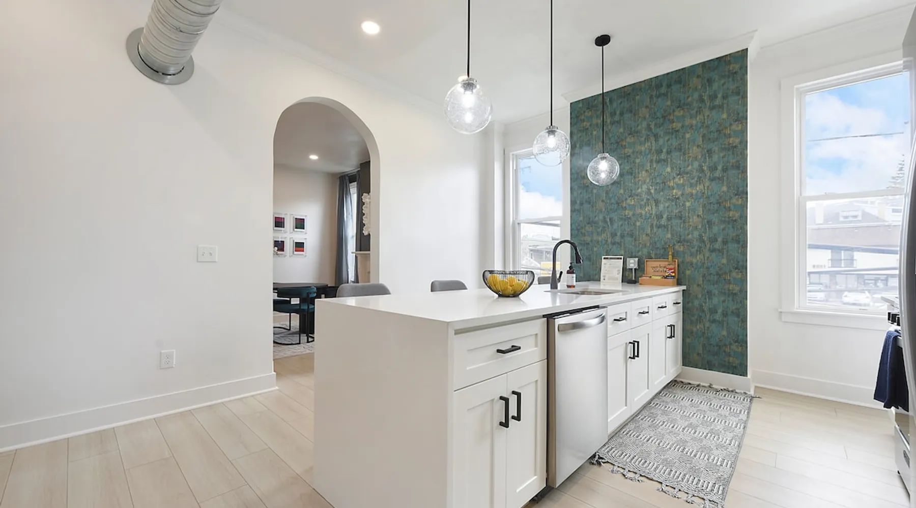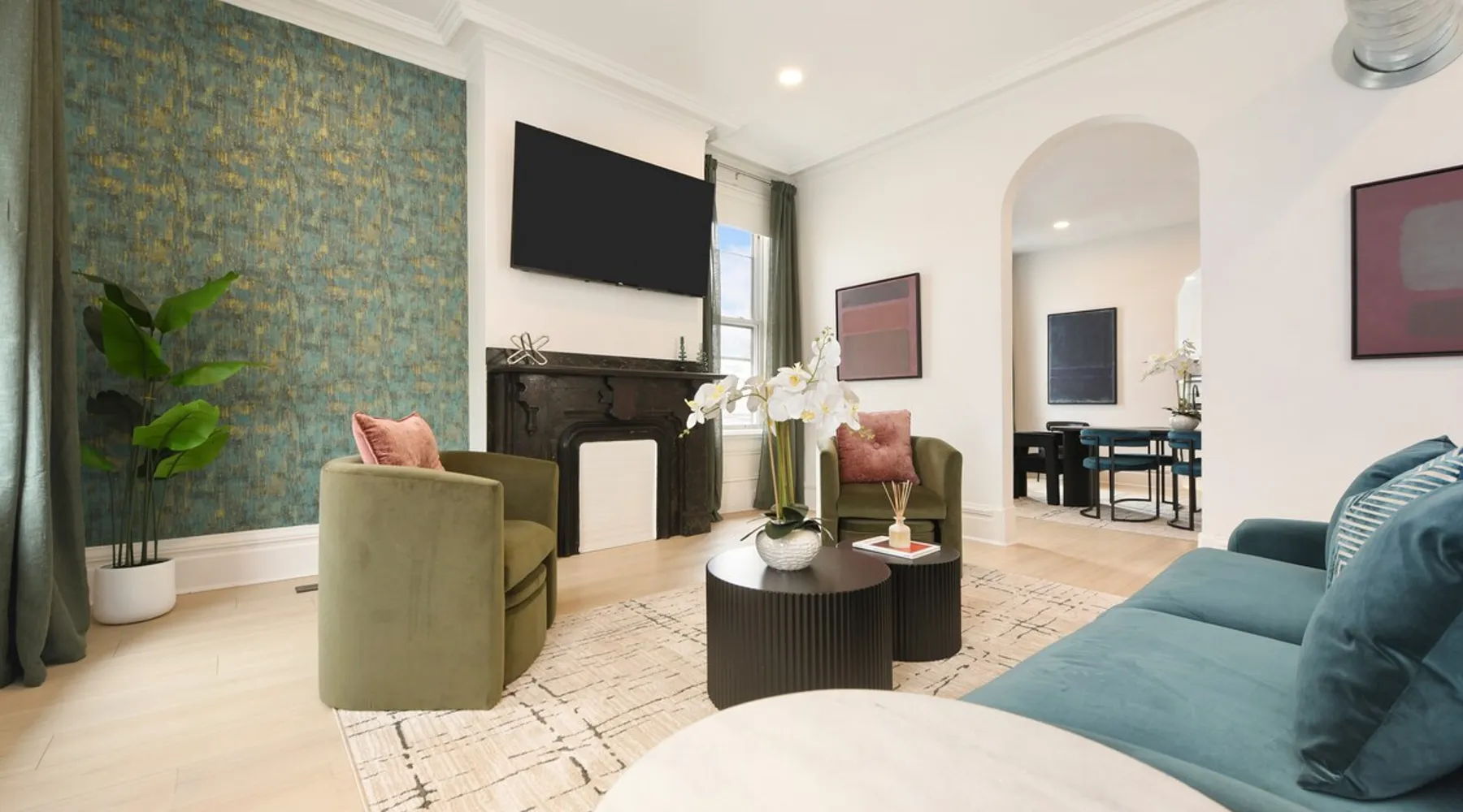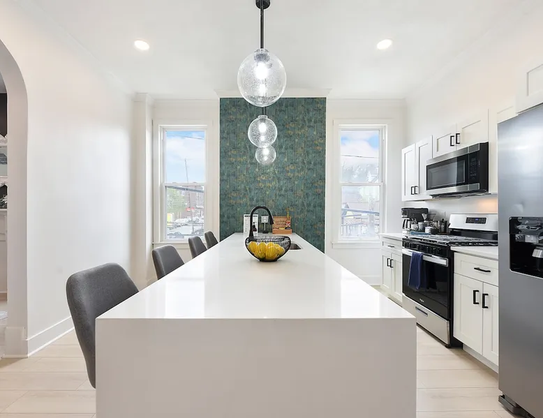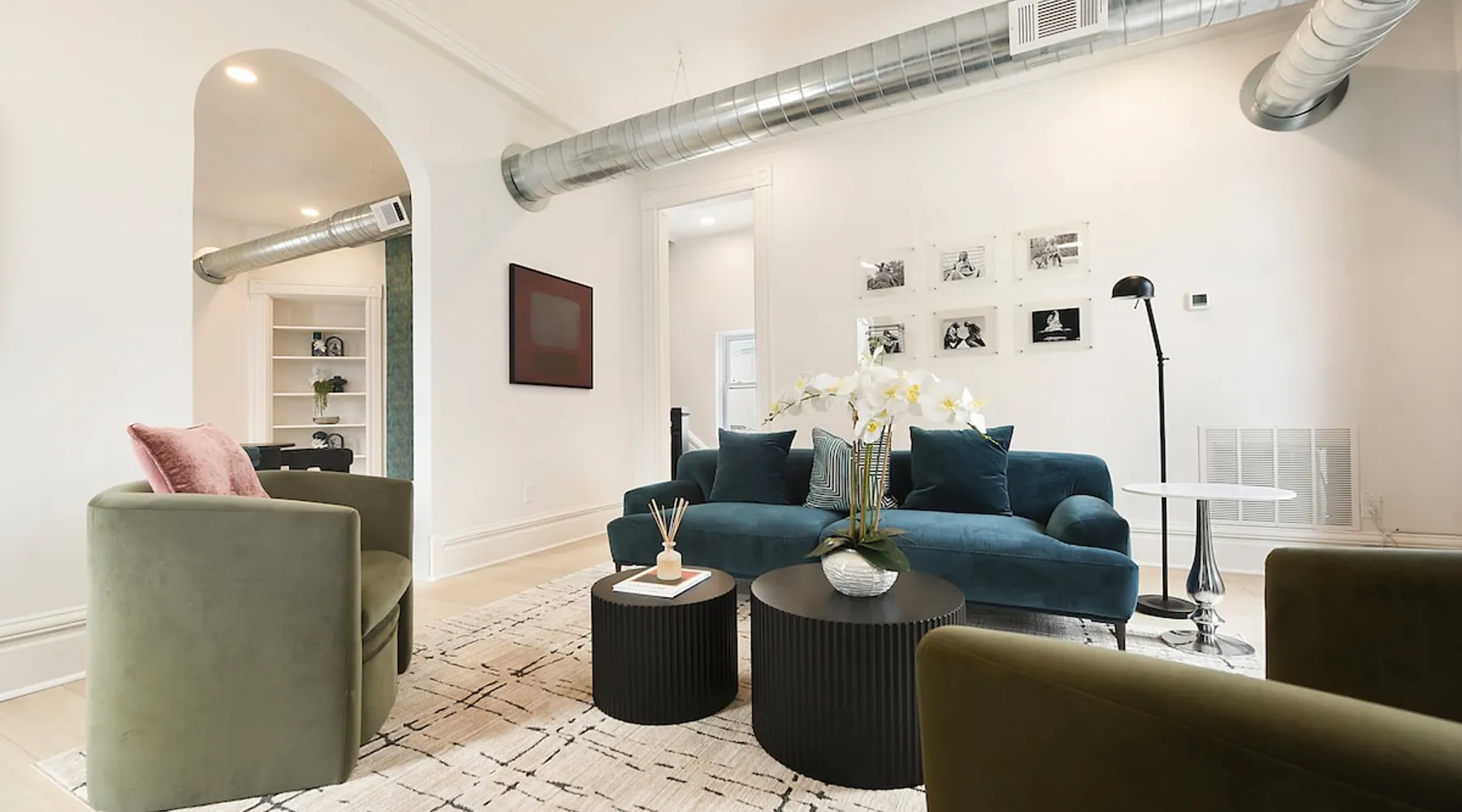 Welcome home atop Mt. Washington! Our home, brand new as of April 2024, features views of the city from the rooftop. Make yourself a cocktail at the top floor bar, then enjoy the views by the fire pit. Prepare a home-cooked meal in our bright, well-stocked kitchen & enjoy it from your Architectural Digest-inspired dining room, or walk to Shiloh St. for a great dinner out instead. With 4 bedrooms on two floors & 2 full bathrooms, our place is perfect for groups or families! The space KEY AMENITIES / DETAILS ✓ Check-out process: Chore-Free Checkout® ✓ Check-in process: Keyless entry with code ✓ Check-in technology: Dack-enabled, swipe to unlock, digital guide, more ✓ 4 Bedrooms - 2 king, 2 queen ✓ 2.5 Bathrooms ✓ Sleeps 8 ✓ Fire pit on rooftop deck w/city views ✓ Rooftop bar with wine fridge & barware ✓ Internet: High speed 300mbps ✓ Parking: Free dedicated street parking ✓ Laundry: HE washer & dryer in unit ✓ Kitchen: Fully stocked with seating for 8 ✓ Work from home: desk (with a view) ✓ Coffee: Pittsburgh's Commonplace Roasters premium whole bean coffee ✓ Tech: Smart speaker, 65" + 55" + two 43" smart TVs ✓ Eco-friendly: Recycling, earth-friendly toiletries, water filters, more ✓ HVAC: Air conditioning & forced air heating ABOUT HOSTWISE STAYS As the top-ranked professional hosts in the Pittsburgh area, we are obsessed with quality service & amenities. Like high end hotels (but better!) we have chore-free check out procedures, we only use professional cleaners, we have local full-time employees, and we're available 24 / 7 / 365. We provide our valued guests with seamless lodging experiences & top-notch amenities - fast Wi-Fi, high end coffee bars, quality linens, clean spaces, earth-friendly products, remote workspaces, stocked kitchens, premium toiletries, and more! CLEANING PROCEDURES We understand how important it is to stay in a professionally cleaned space. We don't outsource our cleaning - our cleaners are professionally trained with a passion for what they do! Our team follows an industry-leading cleaning checklist, and our Operations team performs regular inspections to ensure our high standards are upheld. DETAILED FEATURES ➤ 4 BR / 2.5 BA freestanding house on the 2nd, 3rd, 4th floor ➤ Entrance + Security - Keyless entry with unique/random codes generated via Dack-enabled security software for each guest - highly secure! ➤ Sleeps 8 comfortably ➣ 2 King mattresses + 2 Queen mattresses - semi-plush spring mattresses - super comfortable! ➤ Parking - Two dedicated street parking spots in front of our garage doors + more street parking nearby for additional vehicles, if needed ➤ Bathrooms – 2 full bathrooms with shower + tub combo (one attached to the primary bedroom) and one half bath. ➣ Includes blow dryer, plush cotton towels, and premium toiletries ➤ TVs - 65" in the living room, 55" in the primary, two 43" in other bedrooms - all HD / UHD smart TVs ➣ Most apps are free to use and / or you are able to use your cable provider's login info for "paid" apps (ESPN, HBO, Showtime, etc.) ➤ Internet - High speed 300mbps up / down Verizon FioS ➤ Work From Home - Desk + office chair in primary bedroom, with great views of the city ➤ Outdoor Space - Rooftop patio with fire pit, bar ➤ Security - External camera & non-recording decibel meter / occupancy / alarm sound detector for enhanced guest + property safety ➤ Kitchen - Fully stocked with quality pots & pans, sharp knives, silicone utensils, toaster, microwave, full coffee setup, dishwasher, stove/range, fridge, and more! ➤ Coffee & Tea - Drip coffee maker, French press, electric kettle, premium locally roasted Commonplace whole bean coffee, and Two Leaves & a Bud tea selection is provided, along with Torani syrup, organic sugar & half & half creamers ➤ Living Room - Comfy Article couch + add'l chair seating + smart TV ➤ Dining - Seating for 8 ➤ Laundry - Free washer & dryer + Dropps earth-friendly detergents available for guest use ➤ Air Conditioning / heating: Central air + heat ➤ Pets not permitted ➤ No Smoking indoors PROPERTY LAYOUT Our property is perfectly situated atop Mt. Washington, close to Shiloh St. but far enough to be a quiet area. The entry to the property has a vestibule, followed by a foyer that leads directly to a flight of ~20 stairs to the main part of the home. On the second floor, straight ahead you'll find the half bath. From the front to back of this floor is the living room, dining room, kitchen, and the lower floor bedroom with a queen bed. Off the kitchen hallway is a small outdoor patio. Up to the third floor, at the top of the stairs is the shared full bathroom. From front to back you'll find the primary bedroom with a king bed + desk along, with the attached full bathroom. The middle bedroom features a queen bed. The back bedroom features a king bed as well, and can be accessed through either the middle bedroom, or a separate set of stairs behind the kitchen. The top floor contains the rooftop patio, bar area, wine fridge, and table. Guest access Our entire property is at your disposal, with the exception of a locked housekeeping closet. Other things to note While we happily host children, parents should know that this property has multiple staircases (entrance, front of house, back of house) and so it may not be suitable for young children that are at risk of falling on stairs. Our garage dimensions are the following: Interior 18 ft wide 21 ft deep Doors 6 ft by 6 ft