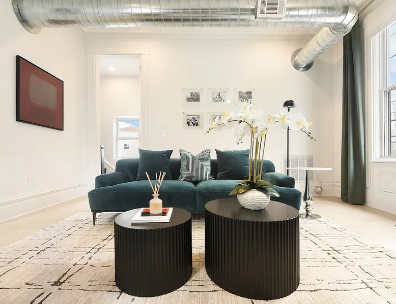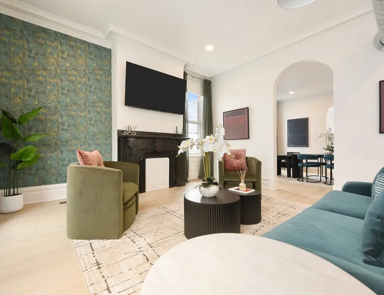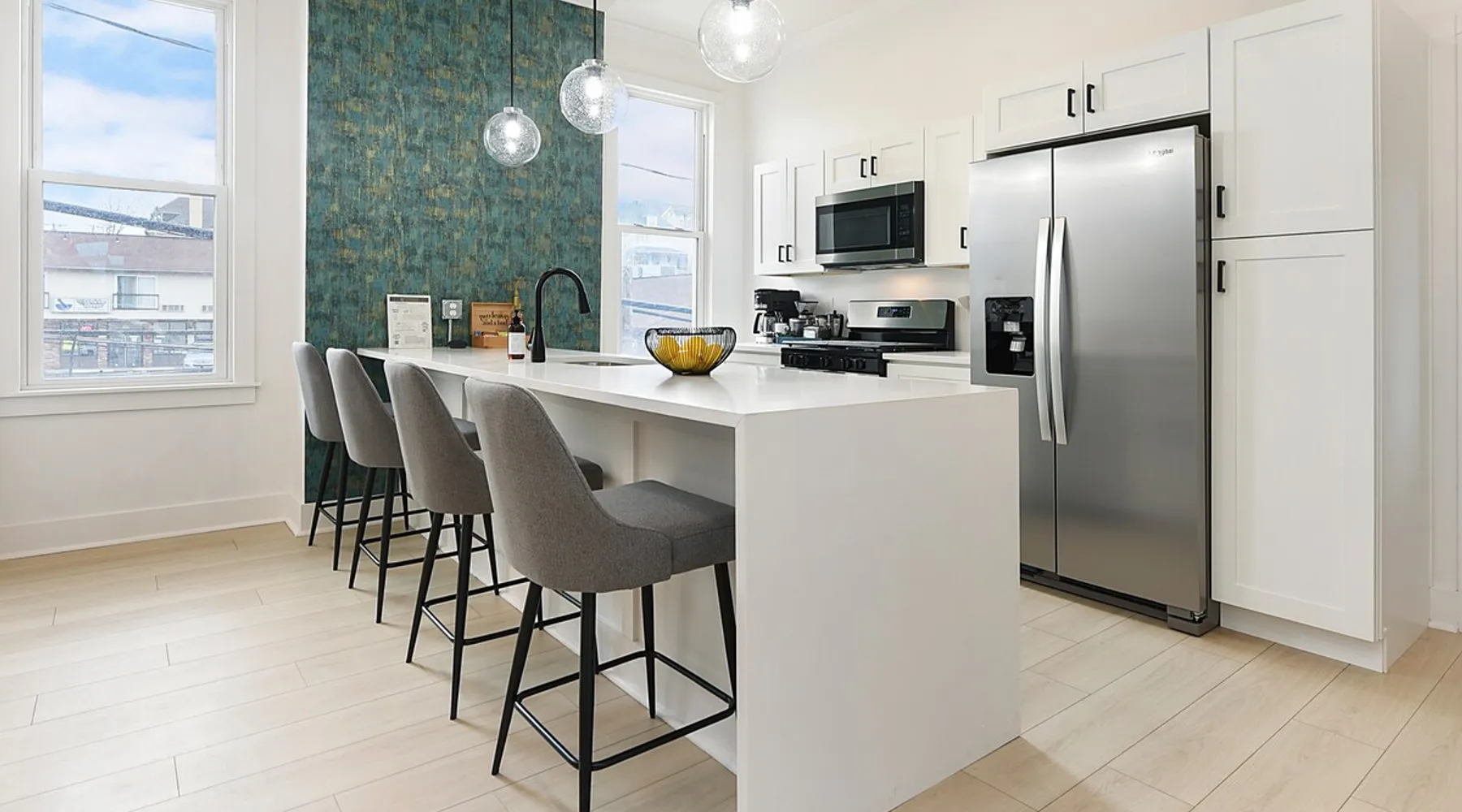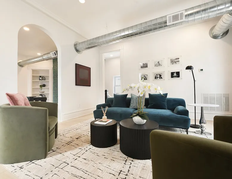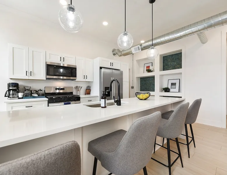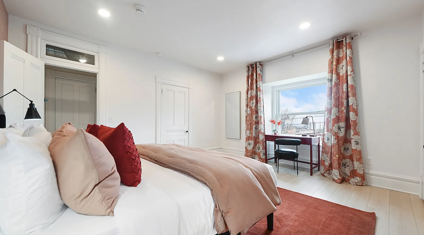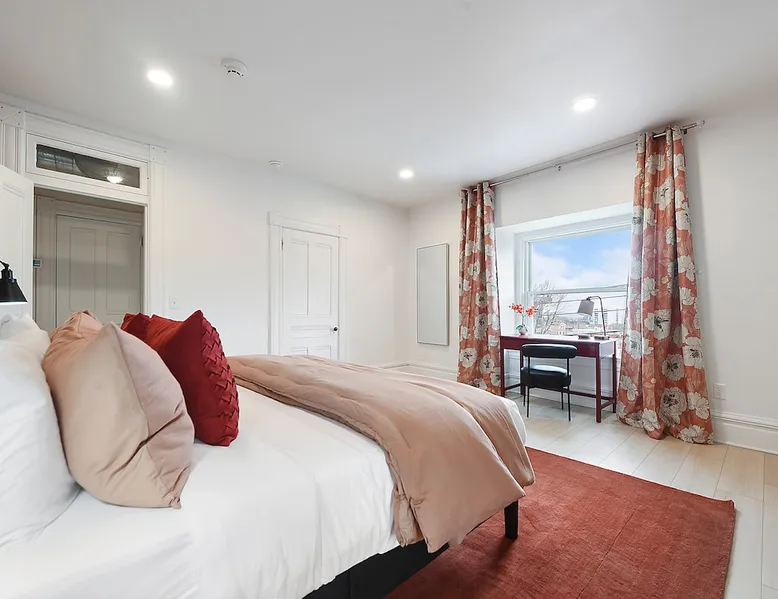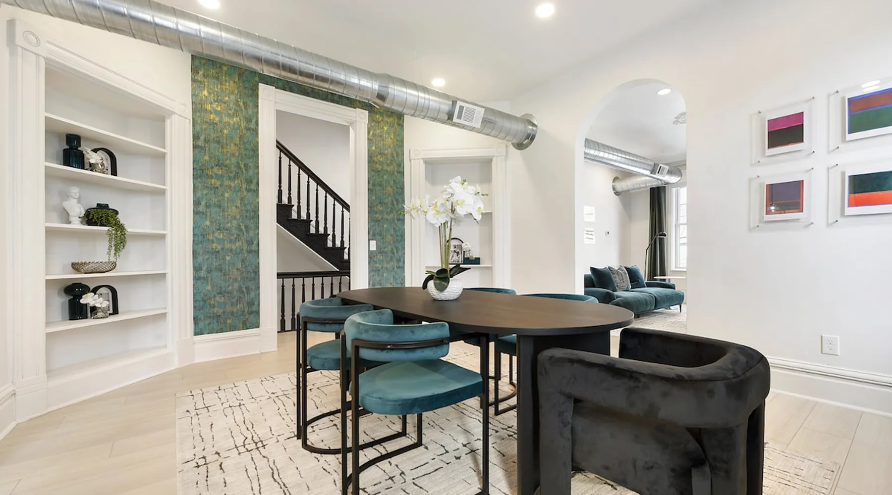 Welcome home atop Mt. Washington! Our home, brand new as of April 2024, features views of the city from the rooftop. Make yourself a cocktail at the top floor bar, then enjoy the views by the fire pit. Prepare a home-cooked meal in our bright, well-stocked kitchen & enjoy it from your Architectural Digest-inspired dining room, or walk to Shiloh St. for a great dinner out instead. With 4 bedrooms on two floors & 2 full bathrooms, our place is perfect for groups or families! The space KEY AMENITIES / DETAILS ✓ Check-out process: Chore-Free Checkout® ✓ Check-in process: Keyless entry with code ✓ Check-in technology: Dack-enabled, swipe to unlock, digital guide, more ✓ 4 Bedrooms - 2 king, 2 queen ✓ 2.5 Bathrooms ✓ Sleeps 8 ✓ Fire pit on rooftop deck w/city views ✓ Rooftop bar with wine fridge & barware ✓ Internet: High speed 300mbps ✓ Parking: Free dedicated street parking ✓ Laundry: HE washer & dryer in unit ✓ Kitchen: Fully stocked with seating for 8 ✓ Work from home: desk (with a view) ✓ Coffee: Pittsburgh's Commonplace Roasters premium whole bean coffee ✓ Tech: Smart speaker, 65" + 55" + two 43" smart TVs ✓ Eco-friendly: Recycling, earth-friendly toiletries, water filters, more ✓ HVAC: Air conditioning & forced air heating ABOUT HOSTWISE STAYS As the top-ranked professional hosts in the Pittsburgh area, we are obsessed with quality service & amenities. Like high end hotels (but better!) we have chore-free check out procedures, we only use professional cleaners, we have local full-time employees, and we're available 24 / 7 / 365. We provide our valued guests with seamless lodging experiences & top-notch amenities - fast Wi-Fi, high end coffee bars, quality linens, clean spaces, earth-friendly products, remote workspaces, stocked kitchens, premium toiletries, and more! CLEANING PROCEDURES We understand how important it is to stay in a professionally cleaned space. We don't outsource our cleaning - our cleaners are professionally trained with a passion for what they do! Our team follows an industry-leading cleaning checklist, and our Operations team performs regular inspections to ensure our high standards are upheld. DETAILED FEATURES ➤ 4 BR / 2.5 BA freestanding house on the 2nd, 3rd, 4th floor ➤ Entrance + Security - Keyless entry with unique/random codes generated via Dack-enabled security software for each guest - highly secure! ➤ Sleeps 8 comfortably ➣ 2 King mattresses + 2 Queen mattresses - semi-plush spring mattresses - super comfortable! ➤ Parking - Two dedicated street parking spots in front of our garage doors + more street parking nearby for additional vehicles, if needed ➤ Bathrooms – 2 full bathrooms with shower + tub combo (one attached to the primary bedroom) and one half bath. ➣ Includes blow dryer, plush cotton towels, and premium toiletries ➤ TVs - 65" in the living room, 55" in the primary, two 43" in other bedrooms - all HD / UHD smart TVs ➣ Most apps are free to use and / or you are able to use your cable provider's login info for "paid" apps (ESPN, HBO, Showtime, etc.) ➤ Internet - High speed 300mbps up / down Verizon FioS ➤ Work From Home - Desk + office chair in primary bedroom, with great views of the city ➤ Outdoor Space - Rooftop patio with fire pit, bar ➤ Security - External camera & non-recording decibel meter / occupancy / alarm sound detector for enhanced guest + property safety ➤ Kitchen - Fully stocked with quality pots & pans, sharp knives, silicone utensils, toaster, microwave, full coffee setup, dishwasher, stove/range, fridge, and more! ➤ Coffee & Tea - Drip coffee maker, French press, electric kettle, premium locally roasted Commonplace whole bean coffee, and Two Leaves & a Bud tea selection is provided, along with Torani syrup, organic sugar & half & half creamers ➤ Living Room - Comfy Article couch + add'l chair seating + smart TV ➤ Dining - Seating for 8 ➤ Laundry - Free washer & dryer + Dropps earth-friendly detergents available for guest use ➤ Air Conditioning / heating: Central air + heat ➤ Pets not permitted ➤ No Smoking indoors PROPERTY LAYOUT Our property is perfectly situated atop Mt. Washington, close to Shiloh St. but far enough to be a quiet area. The entry to the property has a vestibule, followed by a foyer that leads directly to a flight of ~20 stairs to the main part of the home. On the second floor, straight ahead you'll find the half bath. From the front to back of this floor is the living room, dining room, kitchen, and the lower floor bedroom with a queen bed. Off the kitchen hallway is a small outdoor patio. Up to the third floor, at the top of the stairs is the shared full bathroom. From front to back you'll find the primary bedroom with a king bed + desk along, with the attached full bathroom. The middle bedroom features a queen bed. The back bedroom features a king bed as well, and can be accessed through either the middle bedroom, or a separate set of stairs behind the kitchen. The top floor contains the rooftop patio, bar area, wine fridge, and table. Guest access Our entire property is at your disposal, with the exception of a locked housekeeping closet. Other things to note While we happily host children, parents should know that this property has multiple staircases (entrance, front of house, back of house) and so it may not be suitable for young children that are at risk of falling on stairs. Our garage dimensions are the following: Interior 18 ft wide 21 ft deep Doors 6 ft by 6 ft