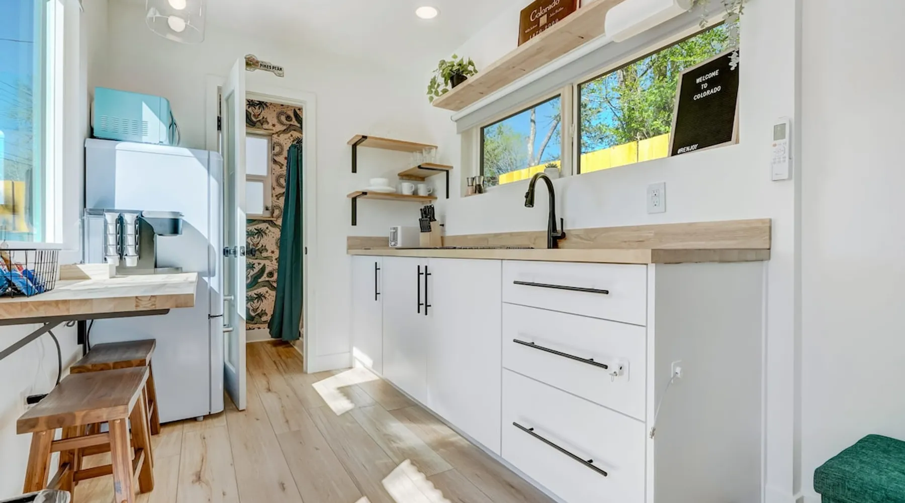 Step into Cargo Casita! This shipping container has been repurposed to the most fun vacation homebase! 💎 Quick drive to Garden of the Gods, The Broadmoor, Cheyenne Mtn Zoo, Red Rock Canyon Open Space & Old Colorado City 💎 Mins to Downtown COS, USAFA, CC, & UCCS! 💎 Fully-equipped kitchen 💎 Speedy WiFi & easy self-entry Book your Cargo Casita getaway! The space Explore Colorado Springs while you unwind in the Cargo Casita! Start your adventure in the foothills of Pikes Peak in this unique 200 square foot studio container tiny home. Come and bathe in the Colorado sun in your own private and spacious back yard, complete with fire pit, grill, and yard games. A perfect jumping off point for any Colorado mountain experience. Just five minutes from Stratton Open Space and Cheyenne Canyon Park where you can enjoy hiking through the Ponderosas by Cheyenne Creek, rock climbing, abundant mountain biking trails and Segway nature tours. Only a five minute walk through the neighborhood and you’ll arrive at the Ivywild School community marketplace with multiple food vendors, coffee at the Principal’s Office, Axe and Oak whiskey house, Bristol Brewery, trivia nights, yard games and many other activities all under the same roof! Walking distance to many other restaurants, ice cream shops, multiple grocery stores and cafes. A five minute drive to Downtown COS, Cheyenne Mountain Zoo and the Broadmoor and only a few more minutes in the car to Garden of the Gods, USAFA, UCCS, Colorado College, Red Rock Canyon and Manitou Springs - host of the legendary Maggie’s Farm (smoking not permitted in the unit). Welcome to Cargo Casita – Discover Tranquil Retreats and Adventurous Escapes! Enjoy the vibe of this exquisite shipping container! It's a surefire win for everyone aboard! LIVING SPACES: Bedroom and Living Space: Kick back on the sofa or fold down the luxurious queen sized murphy bed to relax and enjoy the 4K Roku smart TV or to play any of the provided board or card games. KITCHEN & DINING: Kitchenette: For those who want to prepare their own meals the kitchen is fully equipped with pots and pans and an induction cook top. Enjoy the Keurig coffee maker, refrigerator, microwave and toaster as well. BATHROOM: The bathroom boasts a full size shower to freshen up after a long day of adventuring and has all of your needs including body wash, shampoo, conditioner, hair dryer and more. OUTDOOR OASIS: Patio: Enjoy sitting on the private outdoor patio, sunbathing on the comfortable grass and turn on the outdoor string lights and fire pit to savor the refreshingly cool Colorado evenings. ADDED CONVENIENCES Amazing WiFi: Stay connected, or stream your favorite shows. Smart Locks: Easy and secure self-entry. Book your unforgettable Cargo Casita getaway – and raise the fun to the max! Guest access During your stay, you will have complete access to the entire property, including all its amenities and facilities. You are welcome to make use of everything available to ensure a comfortable and enjoyable experience. Please feel free to let us know if there's anything specific you'd like to know about the property or if you have any special requests during your stay. We want to ensure that you have a wonderful time while you're here. Other things to note For a seamless booking experience, a Rental Agreement is required for all reservations. Once your reservation is confirmed, we'll provide details for completing the agreement. We look forward to hosting you! For a seamless check-in experience, you'll receive a unique code via message along with your check-in instructions on the morning of your arrival. You'll use this code for keyless entry. We've also prepared a starter supply that includes paper towels, coffee K-cups, toilet paper, shampoo, body wash, and plush white towels! We hope these amenities add an extra touch of comfort to your stay. *Unauthorized late checkout fee $20 Per Half Hour Late *Additional fees: To ensure that we have enough time to prepare for future guests, we ask that you please message us ahead of time for pricing regarding guaranteed early check-ins or late check-outs. These additional fees are necessary to cover the expenses of reworking the schedule or adding an additional cleaner to the schedule to accommodate your request.