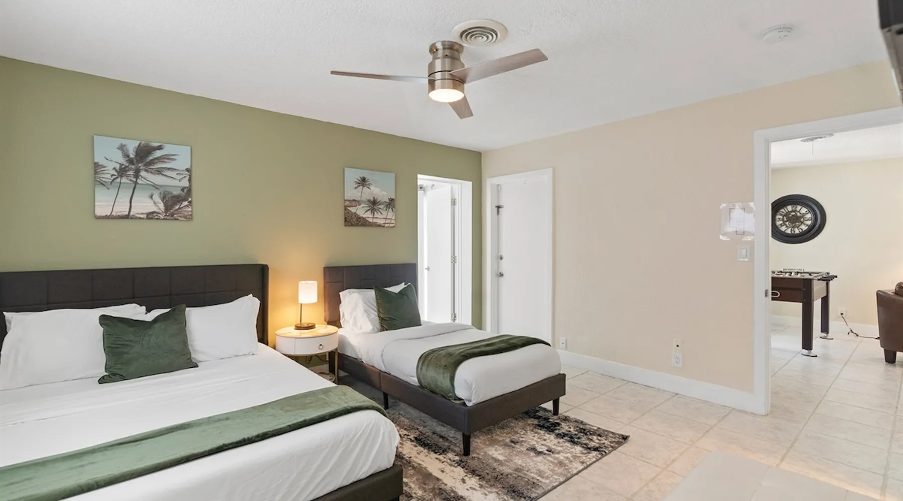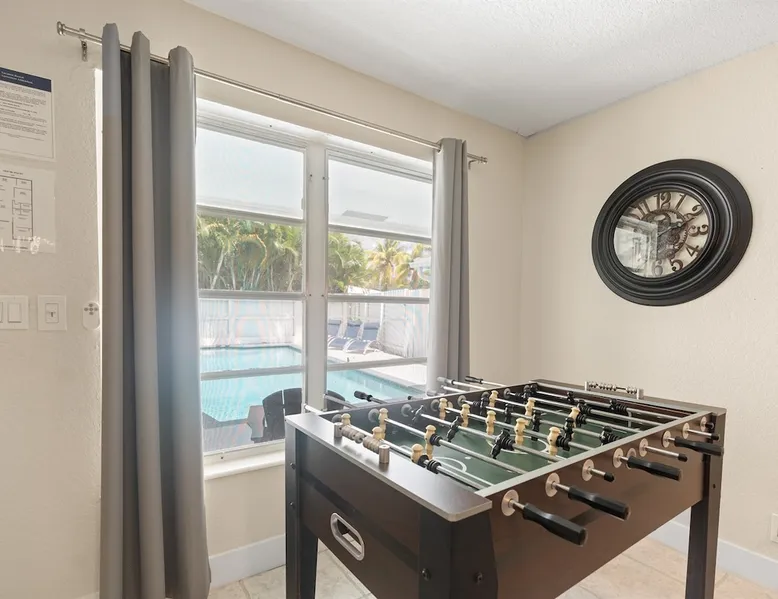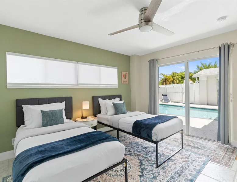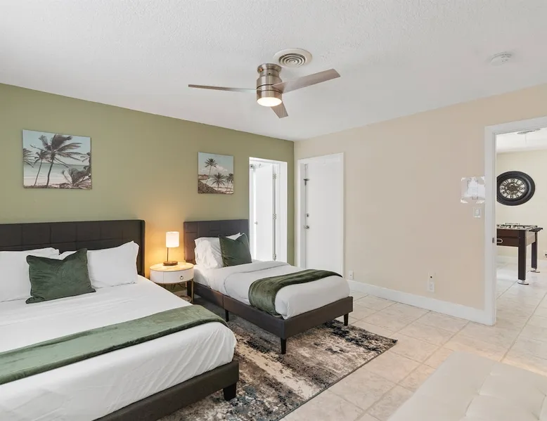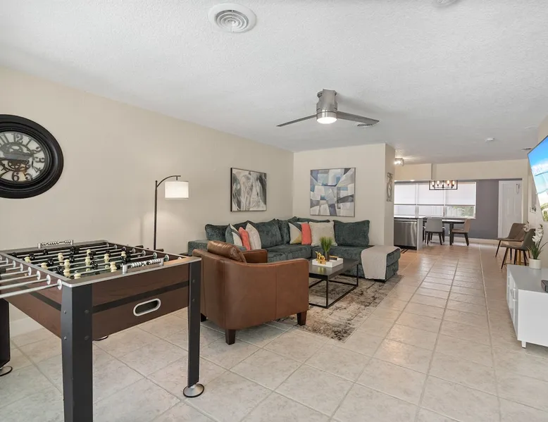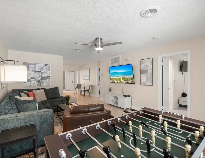 Welcome to our brand new 6-bedroom vacation rental, a fresh and clean space perfect for your entire family. This duplex is designed as two separate attached homes, offering privacy and convenience. Enjoy the luxury of a beautiful private pool and 2 private backyards to relax and unwind. The pool can be heated by request. The house is equipped with cable and smart TVs, ensuring endless entertainment options for everyone. Additionally, you'll find a foosball table, adding a fun element to your sta Guest access The entire property is private and yours to enjoy. 2 of the 6 bedrooms are accessed by walking through the 2nd master suite or through the exterior sliding door. Other things to note Please note that the pool is professionally serviced every week. We provide a pool skimmer if needed. Landscaping maintenance is twice a month. Pool and landscaping service days vary due to changing weather conditions. 2 of the 6 bedrooms are accessed by walking through the 2nd master suite or through the exterior sliding door.