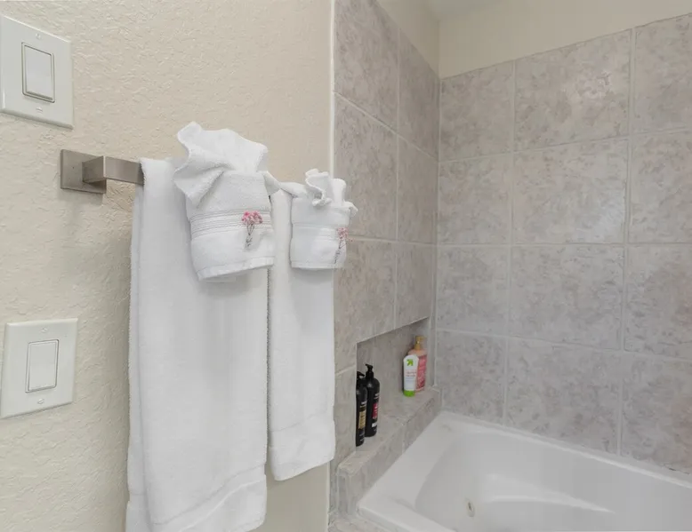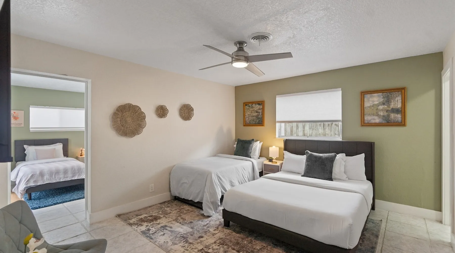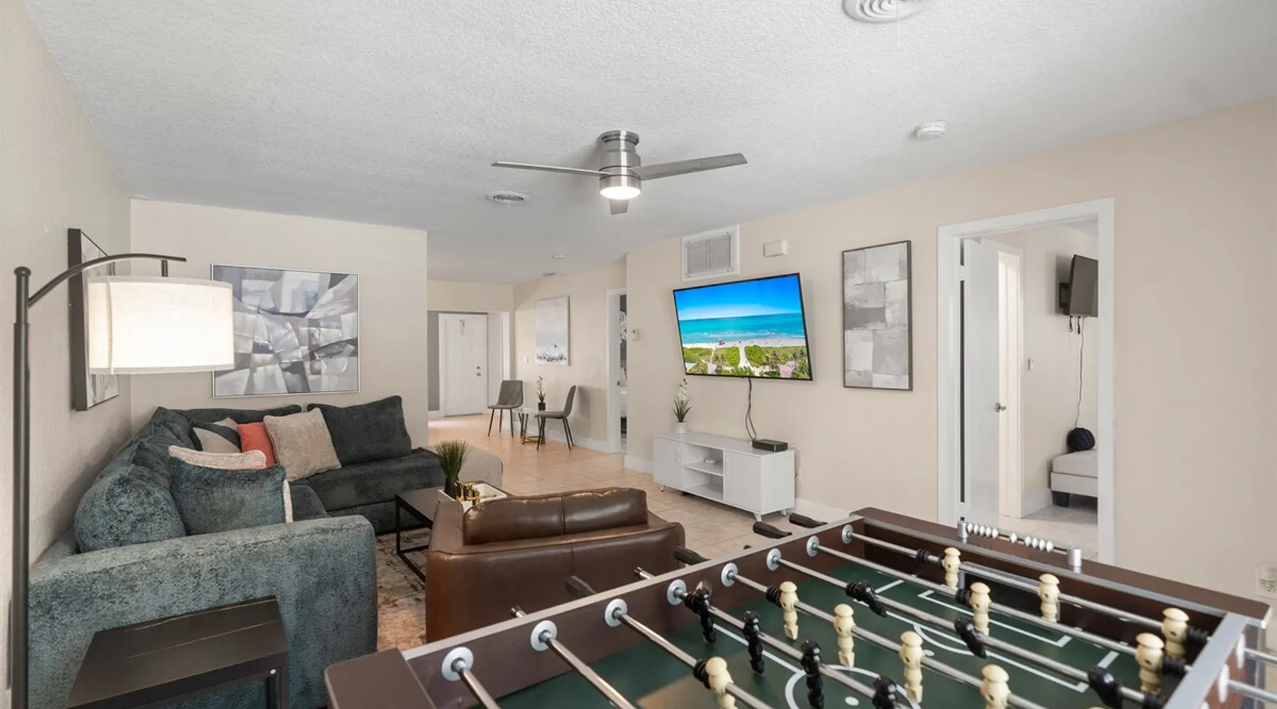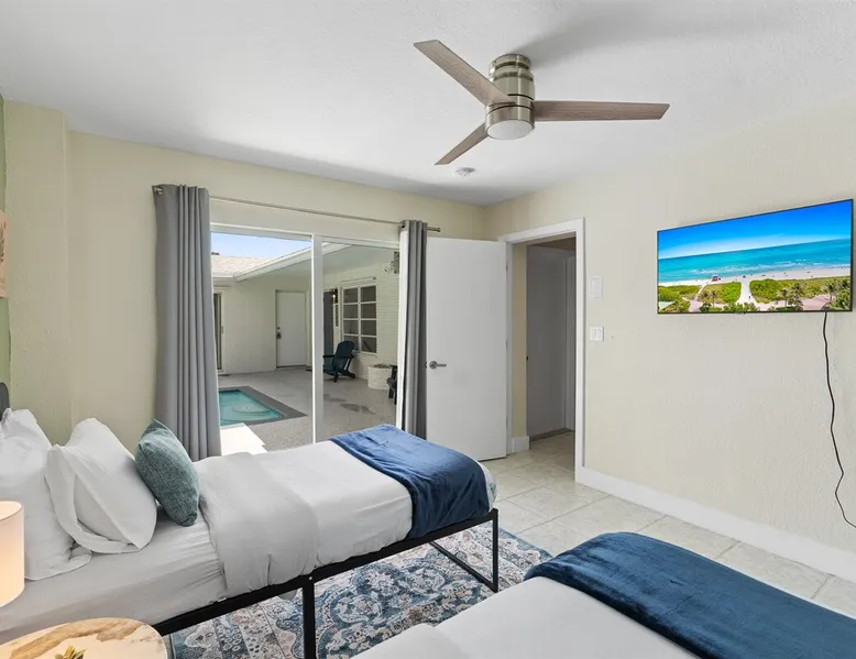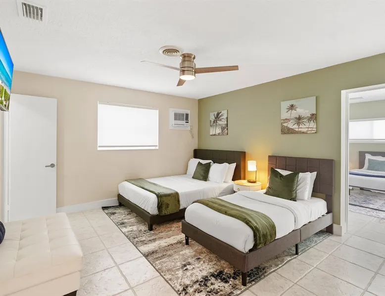 Welcome to our brand new 6-bedroom vacation rental, a fresh and clean space perfect for your entire family. This duplex is designed as two separate attached homes, offering privacy and convenience. Enjoy the luxury of a beautiful private pool and 2 private backyards to relax and unwind. The pool can be heated by request. The house is equipped with cable and smart TVs, ensuring endless entertainment options for everyone. Additionally, you'll find a foosball table, adding a fun element to your sta Guest access The entire property is private and yours to enjoy. 2 of the 6 bedrooms are accessed by walking through the 2nd master suite or through the exterior sliding door. Other things to note Please note that the pool is professionally serviced every week. We provide a pool skimmer if needed. Landscaping maintenance is twice a month. Pool and landscaping service days vary due to changing weather conditions. 2 of the 6 bedrooms are accessed by walking through the 2nd master suite or through the exterior sliding door.