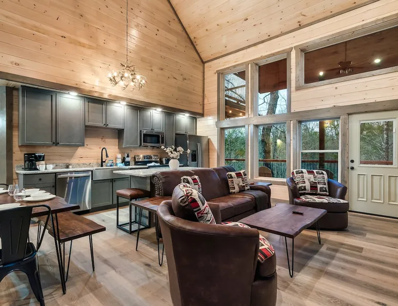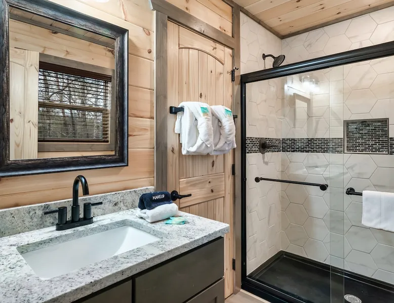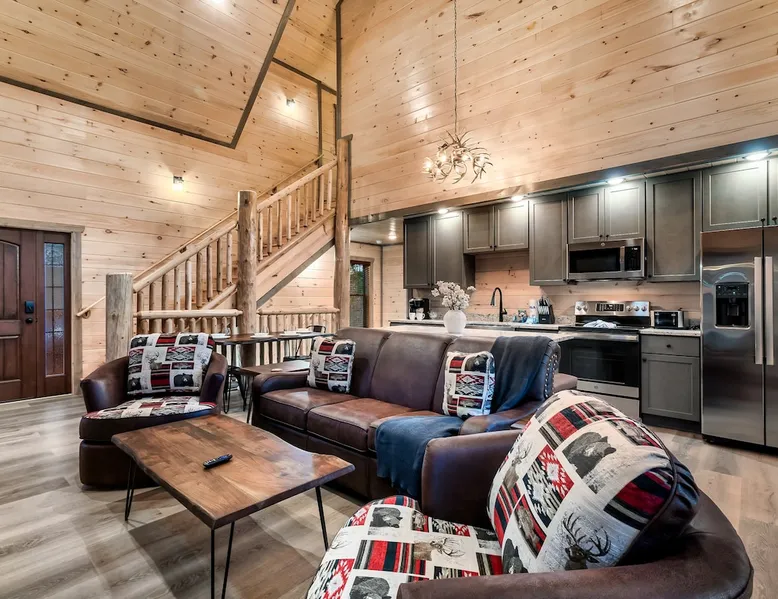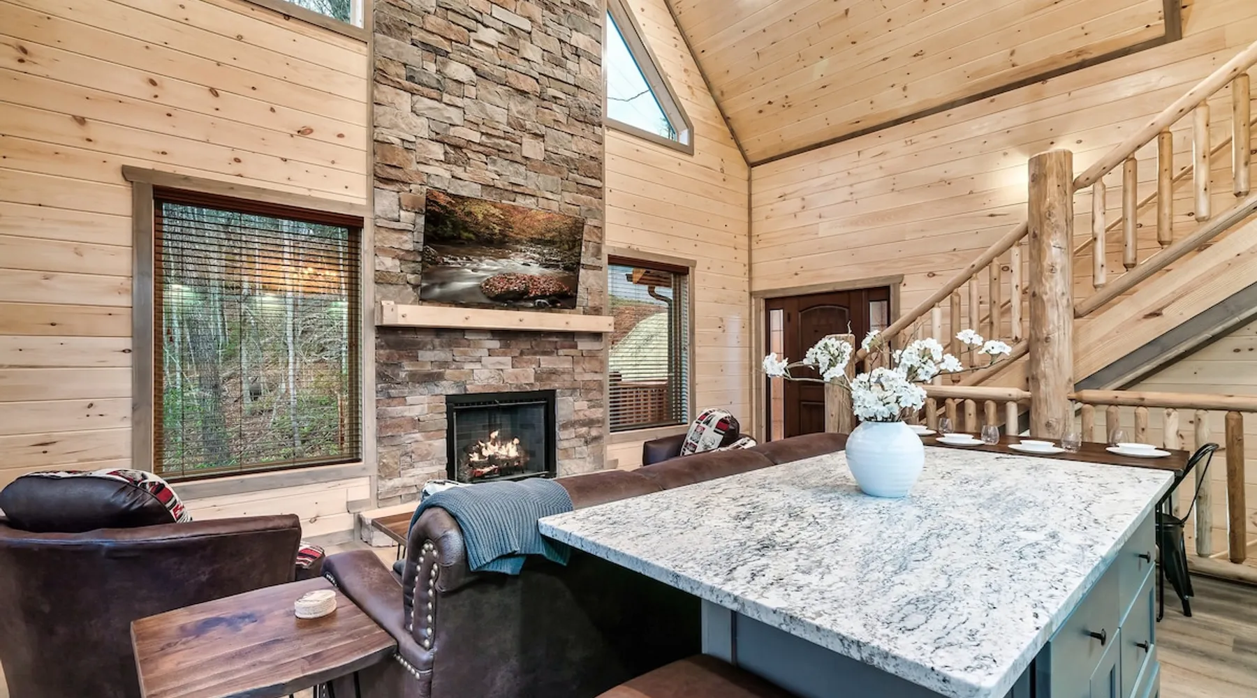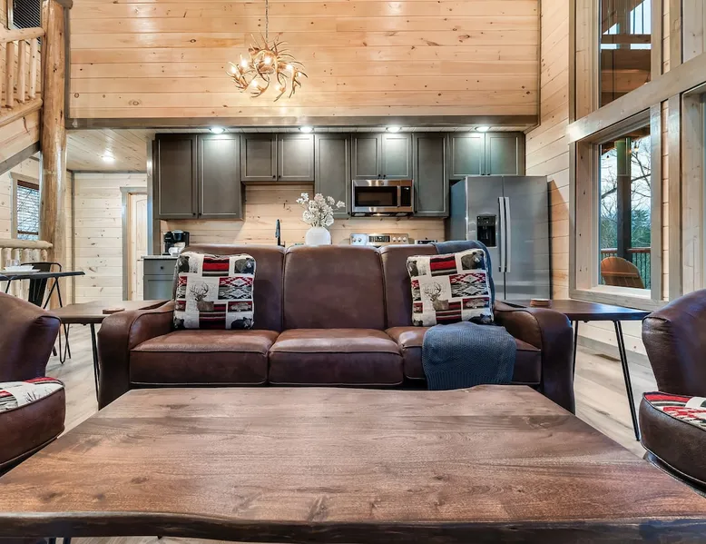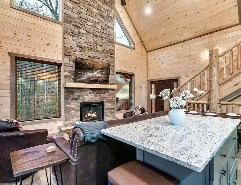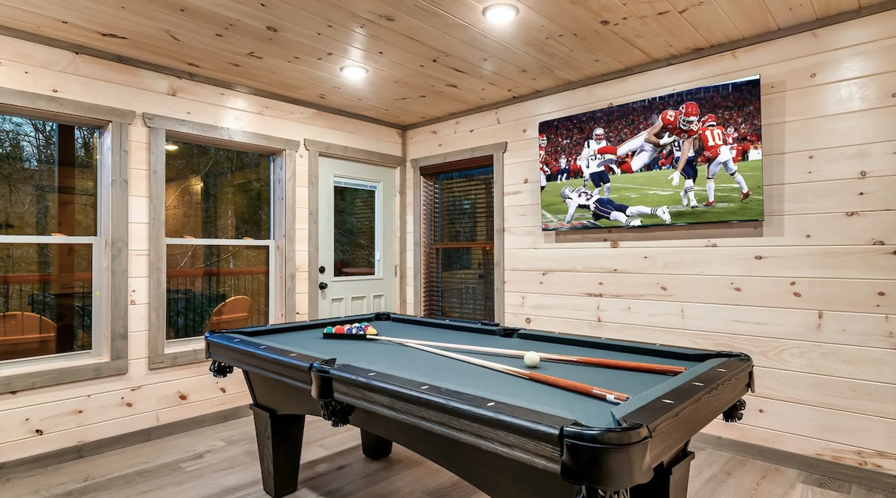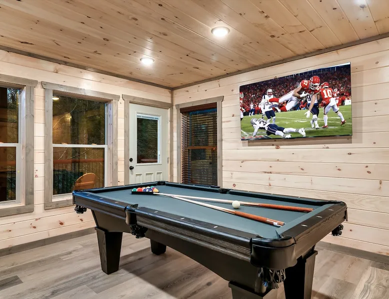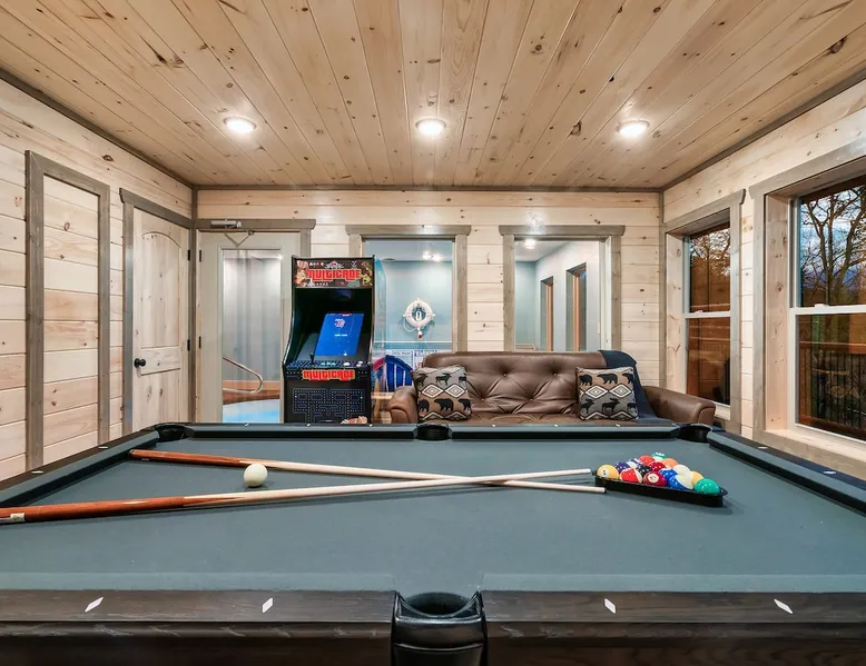 Beech Retreat by Thompson Retreats INDOOR HEATED SWIMMING POOL cabin that is centrally located to all the attractions in Gatlinburg, Pigeon Forge, & the Smoky Mountains! This beautiful new 3 level cabin sleeps up to 8 people with two en- suite bedrooms, a bunk room and a sofa sleeper. This cabin is the perfect base to explore the Smokies! It's close to local attractions and offers several of its own - indoor pool, pool table and multi-cade, an outdoor grill, and streaming smart Roku TVs. The space ★ 1920 Sq Ft ★ Indoor heated swimming pool inside the cabin! ★ Reliable High Speed Internet (up to 350Mbps!) ★ Multicade Arcade! ★ Pool table ★ Parking that easily fits two cars (three if you park one on the gravel) ★ Prime central Smoky Mountain location (see reviews) that is close to restaurants, shopping and lots of entertainment ★ 15 minutes to the The Island and Dollywood & 20 minutes to Gatlinburg Mountain Village & the Great Smoky Mountain National Park ★ Streaming Roku Smart TV's. BYO password for streaming services such as Netflix, Amazon Prime, etc... ★ Washer/Dryer ★ Fully Equipped Kitchen ★ Enjoy three levels of decks. The main deck has string lights to enjoy at night. Comfortable Adirondack chairs on all levels. ★ Sleeps 6-8. The cabin is very comfortable for four adults and two kids on the two king beds and the bunk bed. Two additional people can sleep on the queen sofa sleeper. ★ Comfortable relaxing living room with seasonal gas fireplace ★ Private hot tub for 5-6 people ★ No pets allowed ★ Absolutely No Smoking Guest access You will get a door code before check-in. No need to meet anyone for keys. You get the whole house to yourself. Other things to note OCUPANCY 6-8 Person Max. All guests must be 25+ (children with parents are allowed) ENTRY: The front door is equipped with an electronic keypad. We will send you your passcode for your door lock. Check in after 4pm No late check-out or early check-in. If you arrive early or depart late, there will be a $100 charge per half-hour. HEATED INDOOR POOL The pool is the highlight of the cabin! The 16' x 7’ 10”Indoor Pool is heated year round. The pool depth ranges from 3 to 4 feet deep. There is also a bathroom on pool level for your convenience. Use at your own risk and supervise children as there is no life guard. INTERNET/STREAMING TV’S: High Speed Wireless Internet is included in your stay throughout the cabin. The living room has a 65 inch large flat screen Roku smart TV, great for family movies or ballgames and the Game Room room has a 65 inch streaming Roku smart TV. Streaming smart Roku TVs are also in each bedroom. Bring your own password for all streaming services such as Netflix, Amazon Prime, Disney Plus, etc... BEDROOMS There are 2 king master bedrooms which accommodate up to 4 adults comfortably. The landing outside the top floor bedroom has a bunk bed that can comfortably sleep 2 children. The queen sofa sleeper in the main living area can sleep 2 more people. BATHROOMS 3 bathrooms: 2 with walk-in showers and a 1/2 bathroom on the pool level. KITCHEN A dining table with 4 chairs in the kitchen and 2 bar stools comfortably seats 6 people. The open dining area and a fully equipped kitchen provide for wonderful space for family gatherings. Appliances, pots, pans, cups, plates, utensils, drip/pod Keurig coffee maker. DECKS Three levels of decks with Adirondack chairs on all levels. The main level deck has string lights to enjoy at night. LAUNDRY Washer and dryer, ironing board and iron. AMENITIES Our cleaning service provides initial start-up supplies including toilet paper, paper towels, dishwasher detergent, trash bags, shampoo and bar soap. Depending on the length of your stay, you may need to purchase some of the items when the initial supply runs out. TRASH Please place all trash in trash bags and place in bear proof trash container in front of cabin. We do not have regularly scheduled trash pick up. An additional trash pickup can be coordinated for an additional $25 fee. Please message us if you need a mid-stay trash pickup. HOT TUB The hot tub is for guests 25 and over only. Alcohol is not allowed near the hot tub. You are not allowed to use the hot tub if you have consumed alcohol or you are pregnant. Use the hot tub AT YOUR OWN RISK! GAMES The bottom level game room is complete with a pool table and multicade arcade to enjoy at your leisure. SECURITY Ring Floodlight Security Camera by the front entrance for your safety. Ring camera turn on with motion and record. There are no indoor cameras. NO PETS allowed. If you sneak in a pet of any kind, you will be charged an additional $200 and you will be required to leave immediately with no refund. Absolutely No Smoking Absolutely no fires inside or out. Unauthorized fires including candles will be charged $100 plus damages. We do not offer refunds for weather or natural disasters. We recommend four wheel drive during inclement weather and winter months for the steep road into the neighborhood. CONSTRUCTION Please note that there has been construction down the street from the cabin.