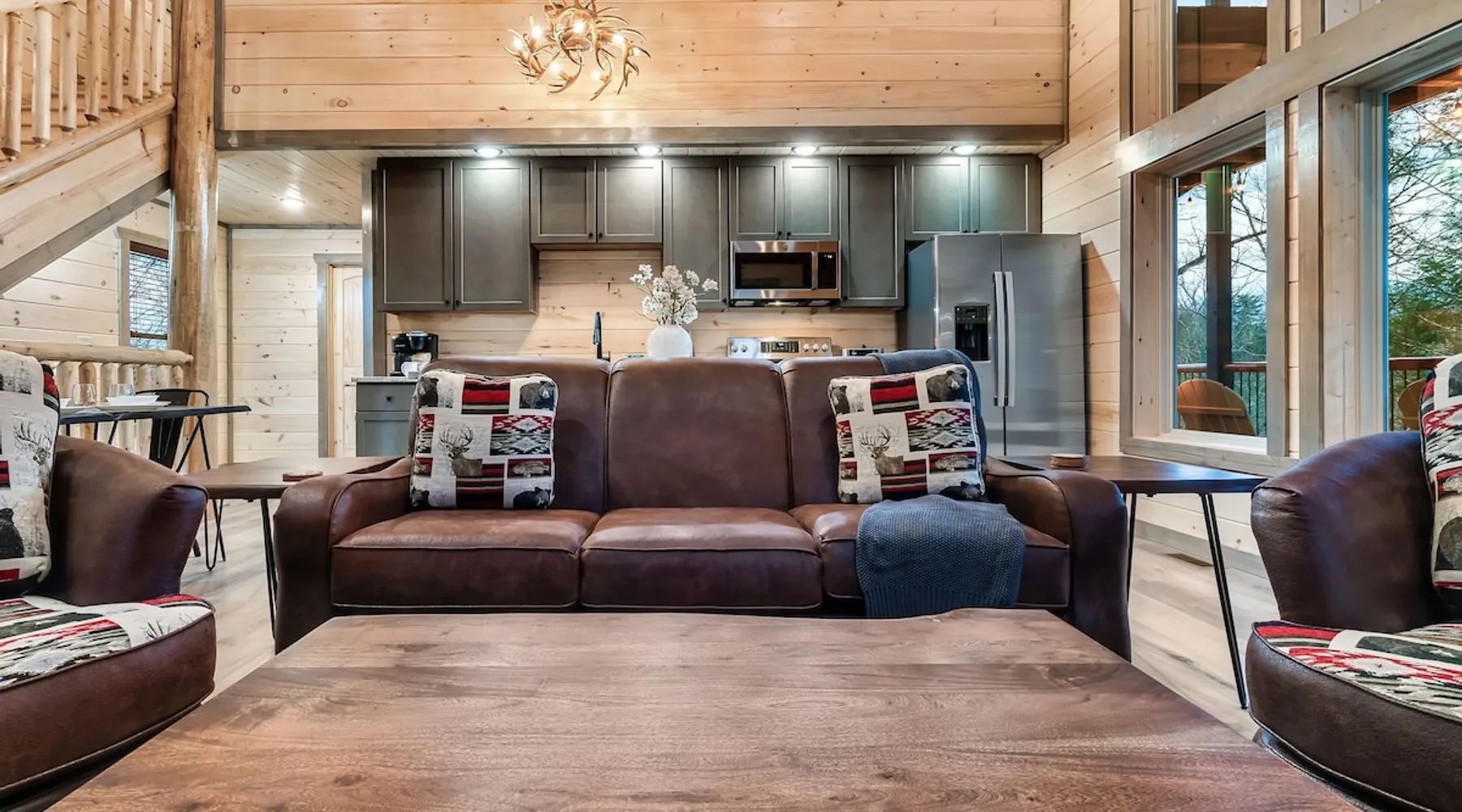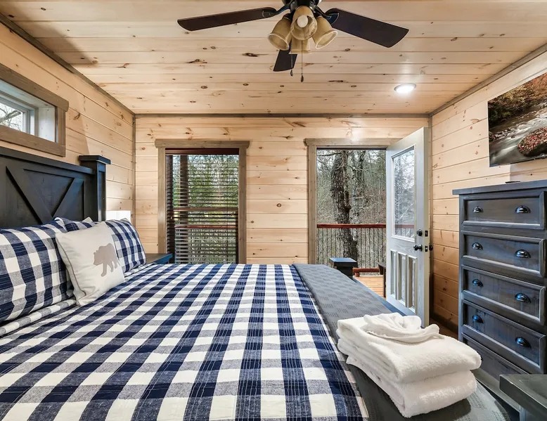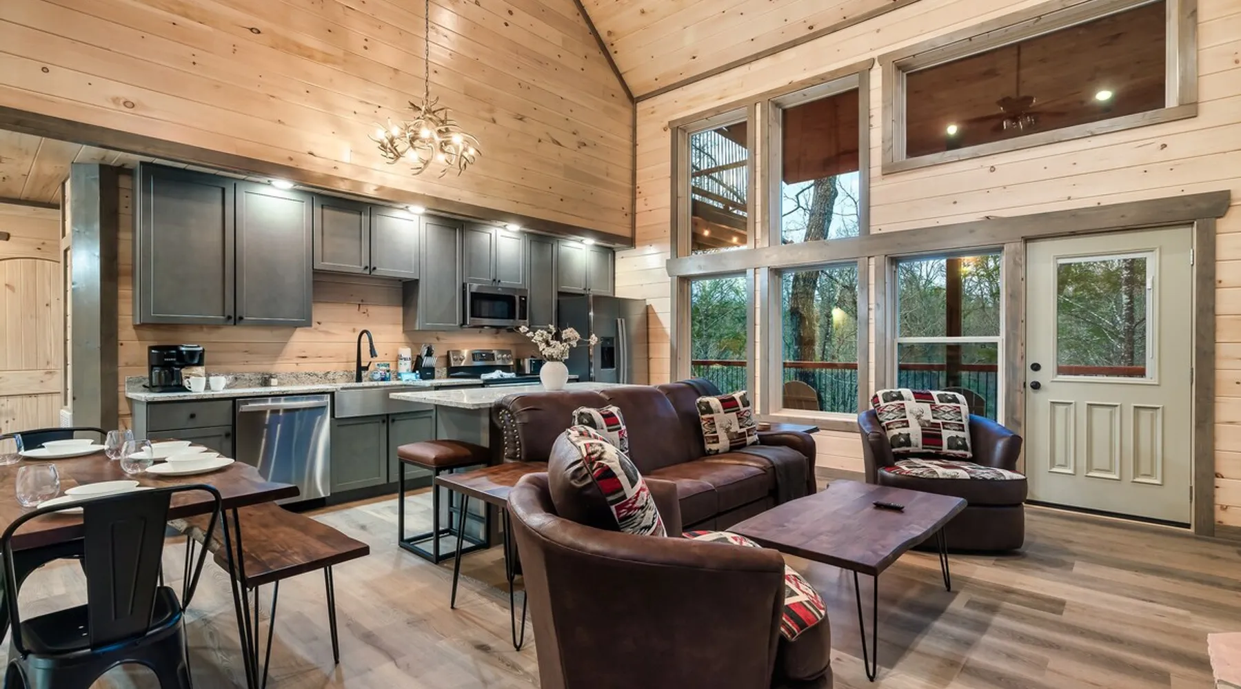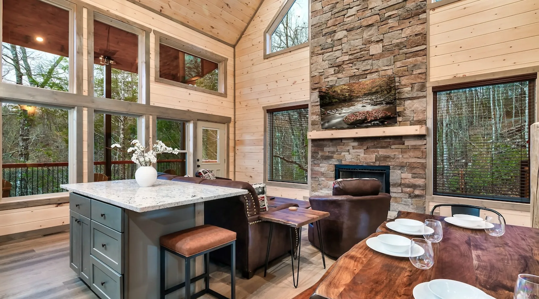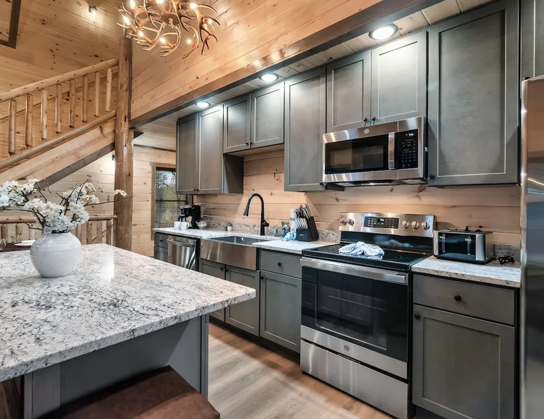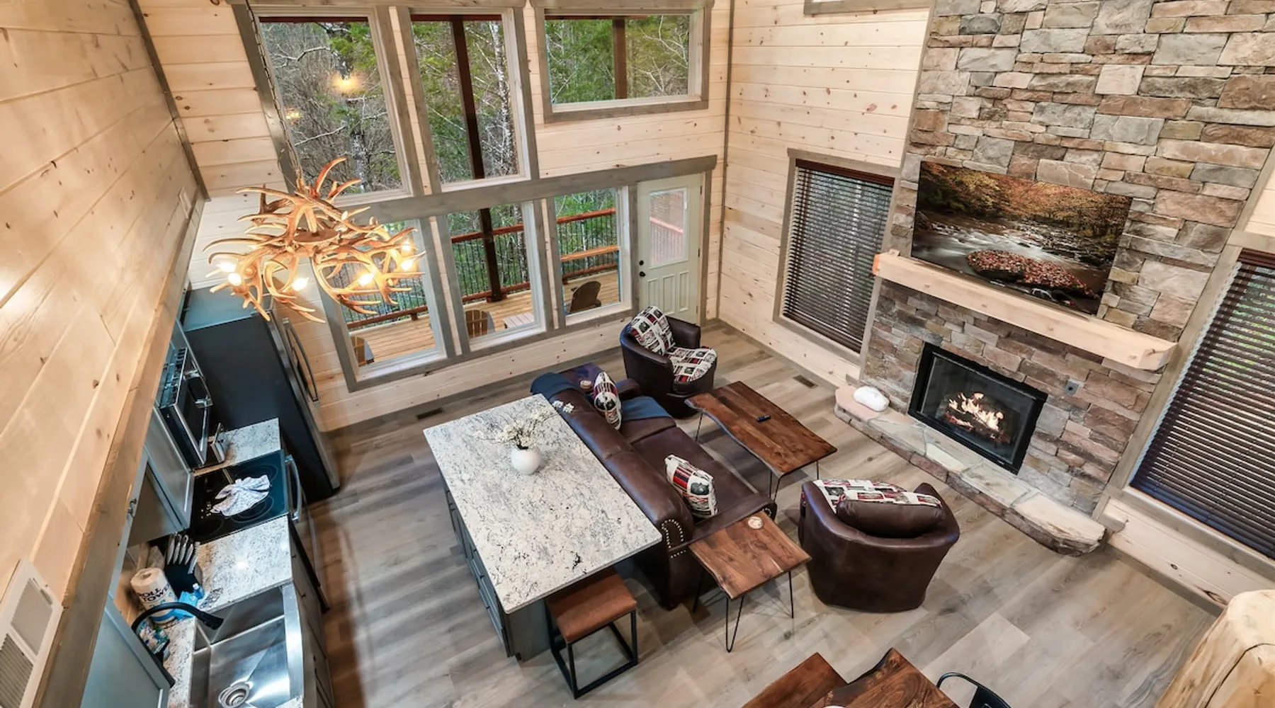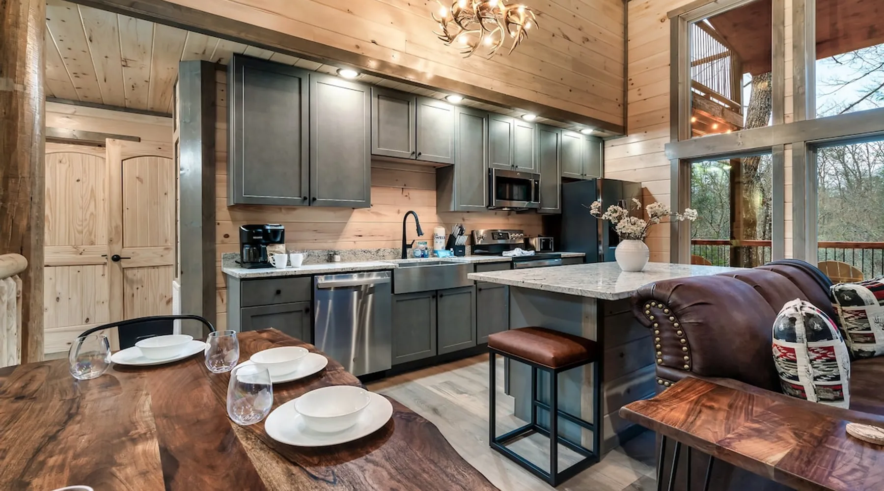 Beech Retreat by Thompson Retreats INDOOR HEATED SWIMMING POOL cabin that is centrally located to all the attractions in Gatlinburg, Pigeon Forge, & the Smoky Mountains! This beautiful new 3 level cabin sleeps up to 8 people with two en- suite bedrooms, a bunk room and a sofa sleeper. This cabin is the perfect base to explore the Smokies! It's close to local attractions and offers several of its own - indoor pool, pool table and multi-cade, an outdoor grill, and streaming smart Roku TVs. The space ★ 1920 Sq Ft ★ Indoor heated swimming pool inside the cabin! ★ Reliable High Speed Internet (up to 350Mbps!) ★ Multicade Arcade! ★ Pool table ★ Parking that easily fits two cars (three if you park one on the gravel) ★ Prime central Smoky Mountain location (see reviews) that is close to restaurants, shopping and lots of entertainment ★ 15 minutes to the The Island and Dollywood & 20 minutes to Gatlinburg Mountain Village & the Great Smoky Mountain National Park ★ Streaming Roku Smart TV's. BYO password for streaming services such as Netflix, Amazon Prime, etc... ★ Washer/Dryer ★ Fully Equipped Kitchen ★ Enjoy three levels of decks. The main deck has string lights to enjoy at night. Comfortable Adirondack chairs on all levels. ★ Sleeps 6-8. The cabin is very comfortable for four adults and two kids on the two king beds and the bunk bed. Two additional people can sleep on the queen sofa sleeper. ★ Comfortable relaxing living room with seasonal gas fireplace ★ Private hot tub for 5-6 people ★ No pets allowed ★ Absolutely No Smoking Guest access You will get a door code before check-in. No need to meet anyone for keys. You get the whole house to yourself. Other things to note OCUPANCY 6-8 Person Max. All guests must be 25+ (children with parents are allowed) ENTRY: The front door is equipped with an electronic keypad. We will send you your passcode for your door lock. Check in after 4pm No late check-out or early check-in. If you arrive early or depart late, there will be a $100 charge per half-hour. HEATED INDOOR POOL The pool is the highlight of the cabin! The 16' x 7’ 10”Indoor Pool is heated year round. The pool depth ranges from 3 to 4 feet deep. There is also a bathroom on pool level for your convenience. Use at your own risk and supervise children as there is no life guard. INTERNET/STREAMING TV’S: High Speed Wireless Internet is included in your stay throughout the cabin. The living room has a 65 inch large flat screen Roku smart TV, great for family movies or ballgames and the Game Room room has a 65 inch streaming Roku smart TV. Streaming smart Roku TVs are also in each bedroom. Bring your own password for all streaming services such as Netflix, Amazon Prime, Disney Plus, etc... BEDROOMS There are 2 king master bedrooms which accommodate up to 4 adults comfortably. The landing outside the top floor bedroom has a bunk bed that can comfortably sleep 2 children. The queen sofa sleeper in the main living area can sleep 2 more people. BATHROOMS 3 bathrooms: 2 with walk-in showers and a 1/2 bathroom on the pool level. KITCHEN A dining table with 4 chairs in the kitchen and 2 bar stools comfortably seats 6 people. The open dining area and a fully equipped kitchen provide for wonderful space for family gatherings. Appliances, pots, pans, cups, plates, utensils, drip/pod Keurig coffee maker. DECKS Three levels of decks with Adirondack chairs on all levels. The main level deck has string lights to enjoy at night. LAUNDRY Washer and dryer, ironing board and iron. AMENITIES Our cleaning service provides initial start-up supplies including toilet paper, paper towels, dishwasher detergent, trash bags, shampoo and bar soap. Depending on the length of your stay, you may need to purchase some of the items when the initial supply runs out. TRASH Please place all trash in trash bags and place in bear proof trash container in front of cabin. We do not have regularly scheduled trash pick up. An additional trash pickup can be coordinated for an additional $25 fee. Please message us if you need a mid-stay trash pickup. HOT TUB The hot tub is for guests 25 and over only. Alcohol is not allowed near the hot tub. You are not allowed to use the hot tub if you have consumed alcohol or you are pregnant. Use the hot tub AT YOUR OWN RISK! GAMES The bottom level game room is complete with a pool table and multicade arcade to enjoy at your leisure. SECURITY Ring Floodlight Security Camera by the front entrance for your safety. Ring camera turn on with motion and record. There are no indoor cameras. NO PETS allowed. If you sneak in a pet of any kind, you will be charged an additional $200 and you will be required to leave immediately with no refund. Absolutely No Smoking Absolutely no fires inside or out. Unauthorized fires including candles will be charged $100 plus damages. We do not offer refunds for weather or natural disasters. We recommend four wheel drive during inclement weather and winter months for the steep road into the neighborhood. CONSTRUCTION Please note that there has been construction down the street from the cabin.