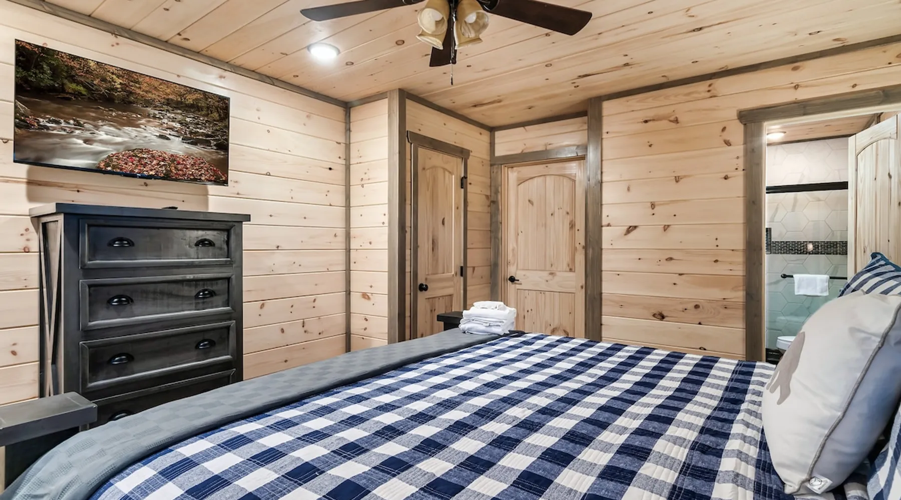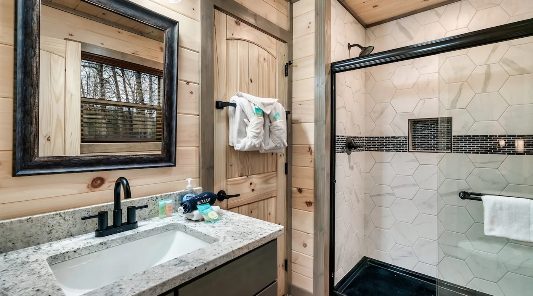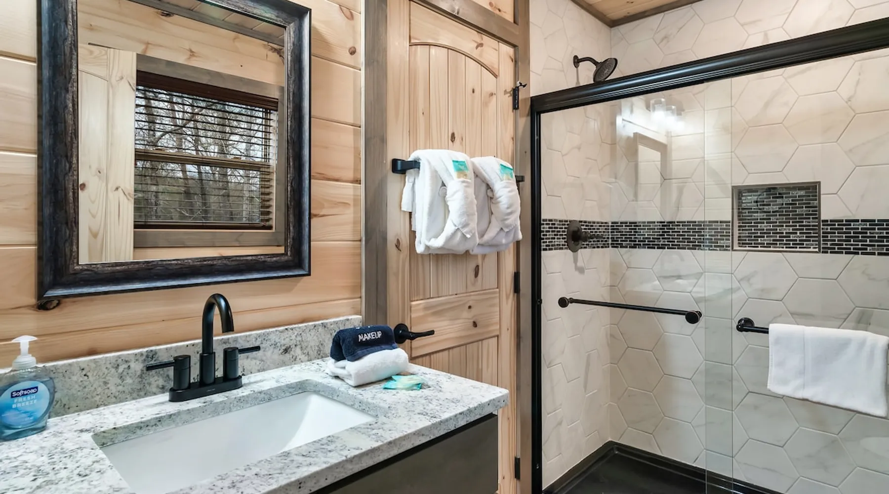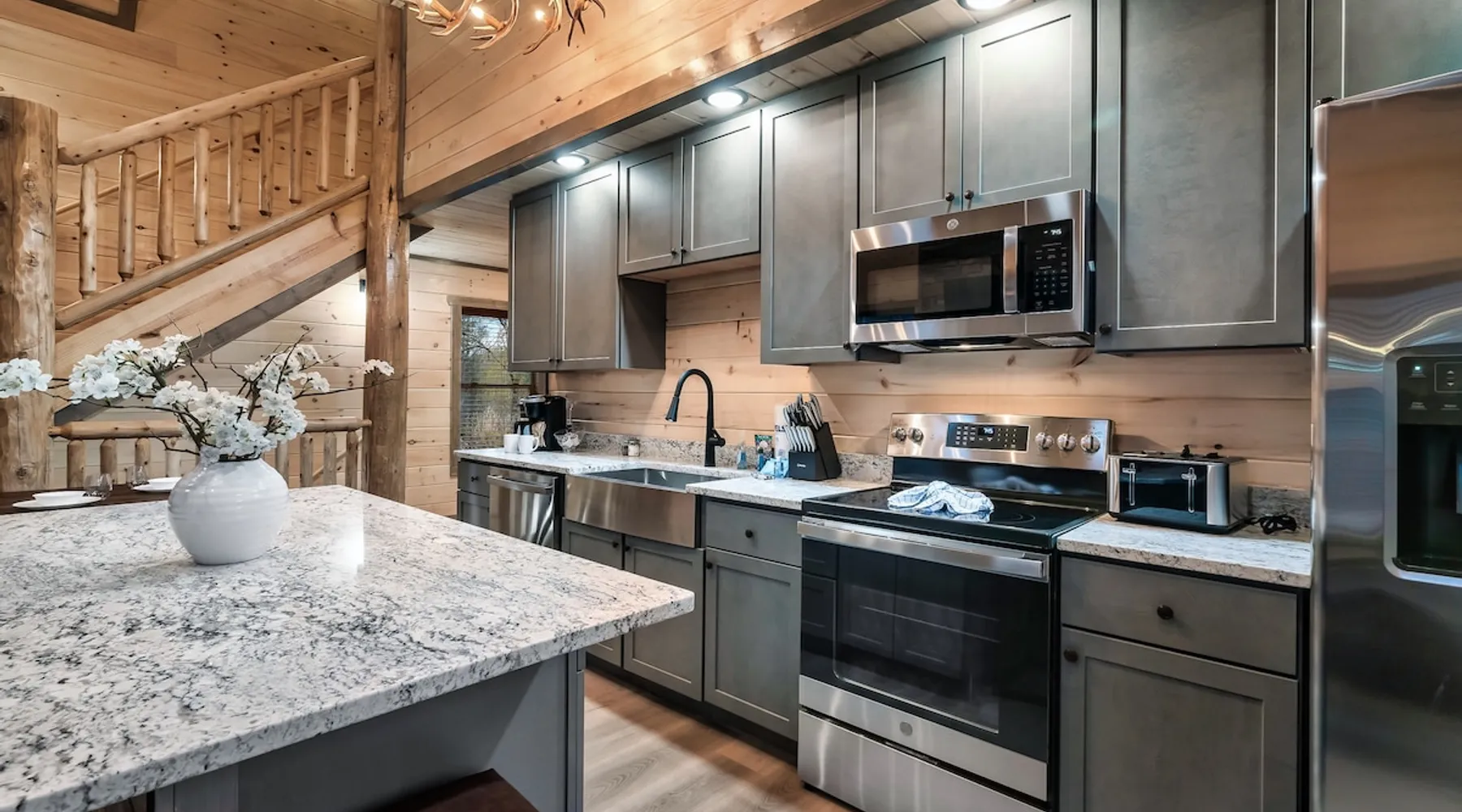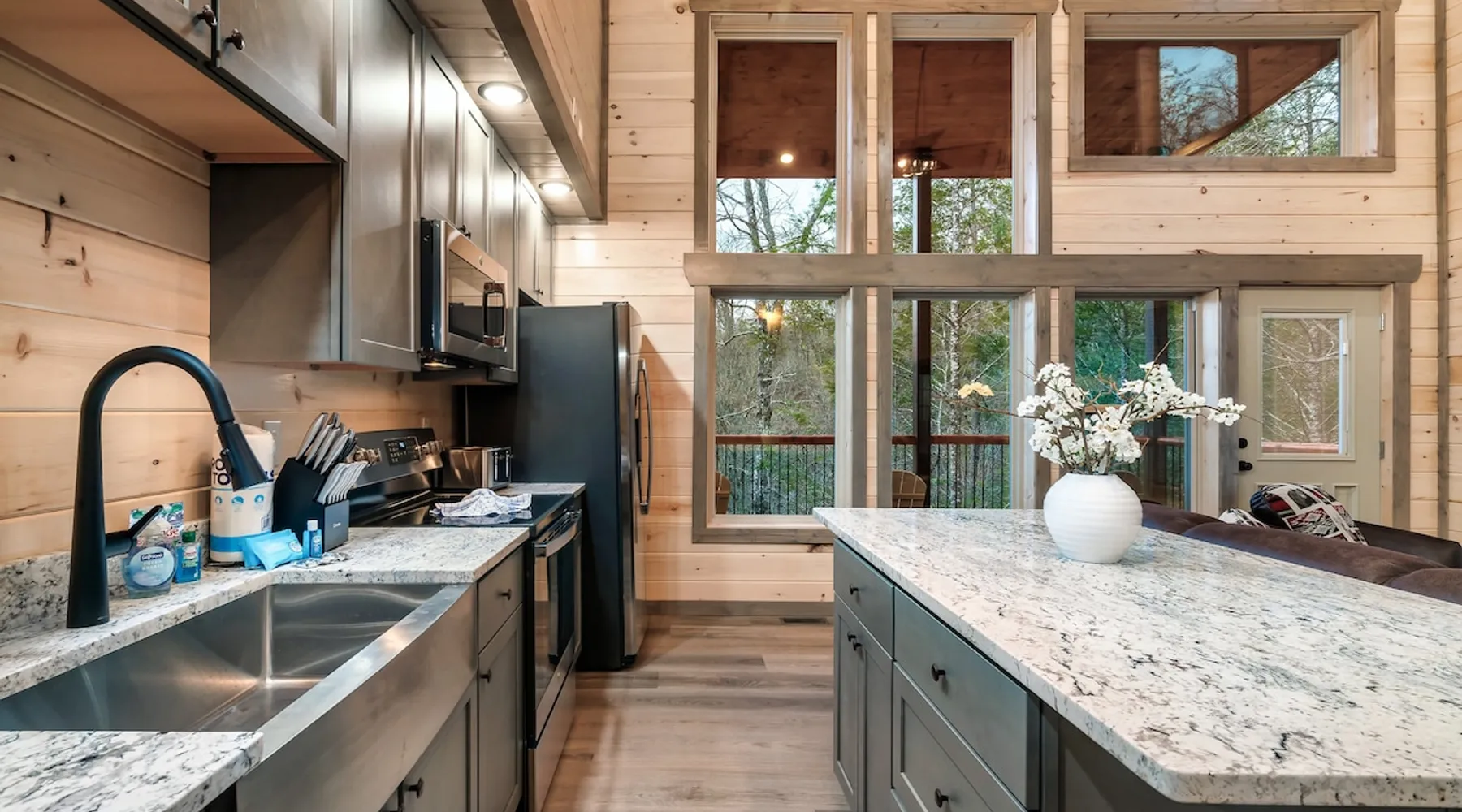 Beech Retreat by Thompson Retreats INDOOR HEATED SWIMMING POOL cabin that is centrally located to all the attractions in Gatlinburg, Pigeon Forge, & the Smoky Mountains! This beautiful new 3 level cabin sleeps up to 8 people with two en- suite bedrooms, a bunk room and a sofa sleeper. This cabin is the perfect base to explore the Smokies! It's close to local attractions and offers several of its own - indoor pool, pool table and multi-cade, an outdoor grill, and streaming smart Roku TVs. The space ★ 1920 Sq Ft ★ Indoor heated swimming pool inside the cabin! ★ Reliable High Speed Internet (up to 350Mbps!) ★ Multicade Arcade! ★ Pool table ★ Parking that easily fits two cars (three if you park one on the gravel) ★ Prime central Smoky Mountain location (see reviews) that is close to restaurants, shopping and lots of entertainment ★ 15 minutes to the The Island and Dollywood & 20 minutes to Gatlinburg Mountain Village & the Great Smoky Mountain National Park ★ Streaming Roku Smart TV's. BYO password for streaming services such as Netflix, Amazon Prime, etc... ★ Washer/Dryer ★ Fully Equipped Kitchen ★ Enjoy three levels of decks. The main deck has string lights to enjoy at night. Comfortable Adirondack chairs on all levels. ★ Sleeps 6-8. The cabin is very comfortable for four adults and two kids on the two king beds and the bunk bed. Two additional people can sleep on the queen sofa sleeper. ★ Comfortable relaxing living room with seasonal gas fireplace ★ Private hot tub for 5-6 people ★ No pets allowed ★ Absolutely No Smoking Guest access You will get a door code before check-in. No need to meet anyone for keys. You get the whole house to yourself. Other things to note OCUPANCY 6-8 Person Max. All guests must be 25+ (children with parents are allowed) ENTRY: The front door is equipped with an electronic keypad. We will send you your passcode for your door lock. Check in after 4pm No late check-out or early check-in. If you arrive early or depart late, there will be a $100 charge per half-hour. HEATED INDOOR POOL The pool is the highlight of the cabin! The 16' x 7’ 10”Indoor Pool is heated year round. The pool depth ranges from 3 to 4 feet deep. There is also a bathroom on pool level for your convenience. Use at your own risk and supervise children as there is no life guard. INTERNET/STREAMING TV’S: High Speed Wireless Internet is included in your stay throughout the cabin. The living room has a 65 inch large flat screen Roku smart TV, great for family movies or ballgames and the Game Room room has a 65 inch streaming Roku smart TV. Streaming smart Roku TVs are also in each bedroom. Bring your own password for all streaming services such as Netflix, Amazon Prime, Disney Plus, etc... BEDROOMS There are 2 king master bedrooms which accommodate up to 4 adults comfortably. The landing outside the top floor bedroom has a bunk bed that can comfortably sleep 2 children. The queen sofa sleeper in the main living area can sleep 2 more people. BATHROOMS 3 bathrooms: 2 with walk-in showers and a 1/2 bathroom on the pool level. KITCHEN A dining table with 4 chairs in the kitchen and 2 bar stools comfortably seats 6 people. The open dining area and a fully equipped kitchen provide for wonderful space for family gatherings. Appliances, pots, pans, cups, plates, utensils, drip/pod Keurig coffee maker. DECKS Three levels of decks with Adirondack chairs on all levels. The main level deck has string lights to enjoy at night. LAUNDRY Washer and dryer, ironing board and iron. AMENITIES Our cleaning service provides initial start-up supplies including toilet paper, paper towels, dishwasher detergent, trash bags, shampoo and bar soap. Depending on the length of your stay, you may need to purchase some of the items when the initial supply runs out. TRASH Please place all trash in trash bags and place in bear proof trash container in front of cabin. We do not have regularly scheduled trash pick up. An additional trash pickup can be coordinated for an additional $25 fee. Please message us if you need a mid-stay trash pickup. HOT TUB The hot tub is for guests 25 and over only. Alcohol is not allowed near the hot tub. You are not allowed to use the hot tub if you have consumed alcohol or you are pregnant. Use the hot tub AT YOUR OWN RISK! GAMES The bottom level game room is complete with a pool table and multicade arcade to enjoy at your leisure. SECURITY Ring Floodlight Security Camera by the front entrance for your safety. Ring camera turn on with motion and record. There are no indoor cameras. NO PETS allowed. If you sneak in a pet of any kind, you will be charged an additional $200 and you will be required to leave immediately with no refund. Absolutely No Smoking Absolutely no fires inside or out. Unauthorized fires including candles will be charged $100 plus damages. We do not offer refunds for weather or natural disasters. We recommend four wheel drive during inclement weather and winter months for the steep road into the neighborhood. CONSTRUCTION Please note that there has been construction down the street from the cabin.