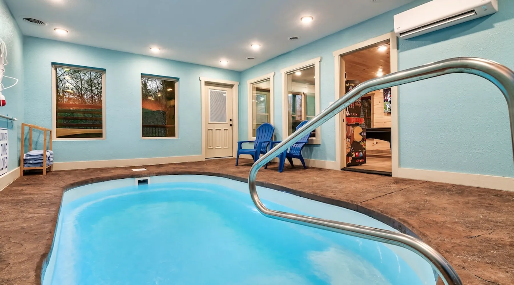 ⭐️Heated Indoor Swimming Pool ⭐️Arcade ⭐️ Pool Table ⭐️ HotTub⭐️Custom Bunks