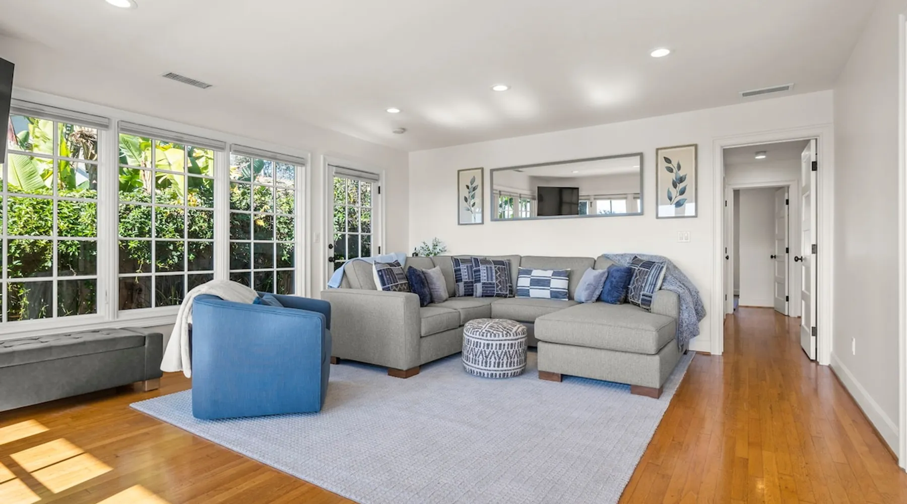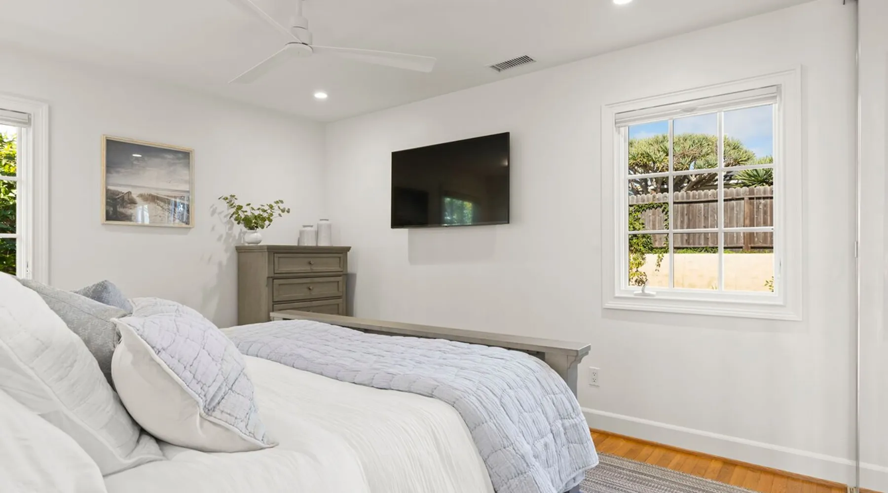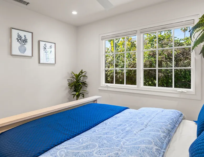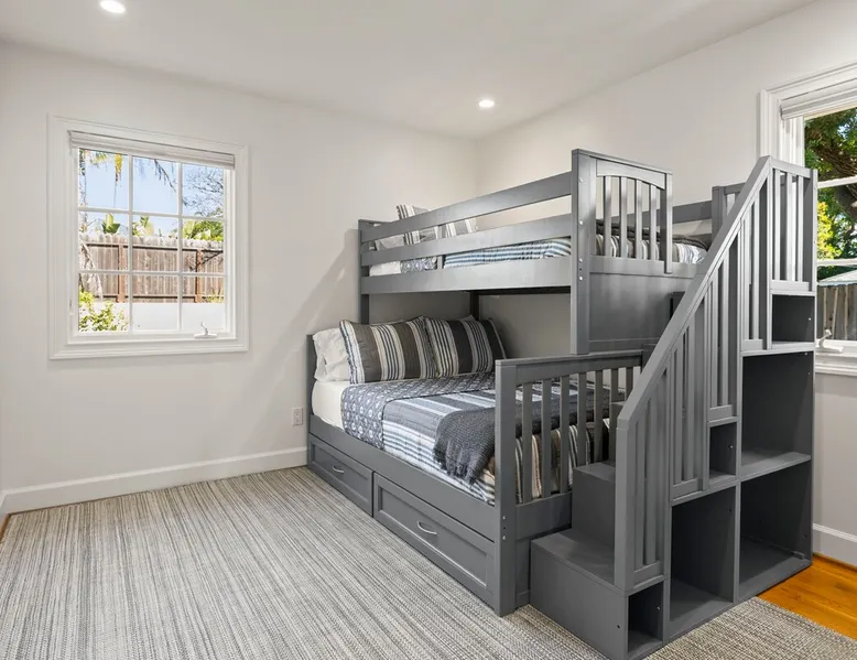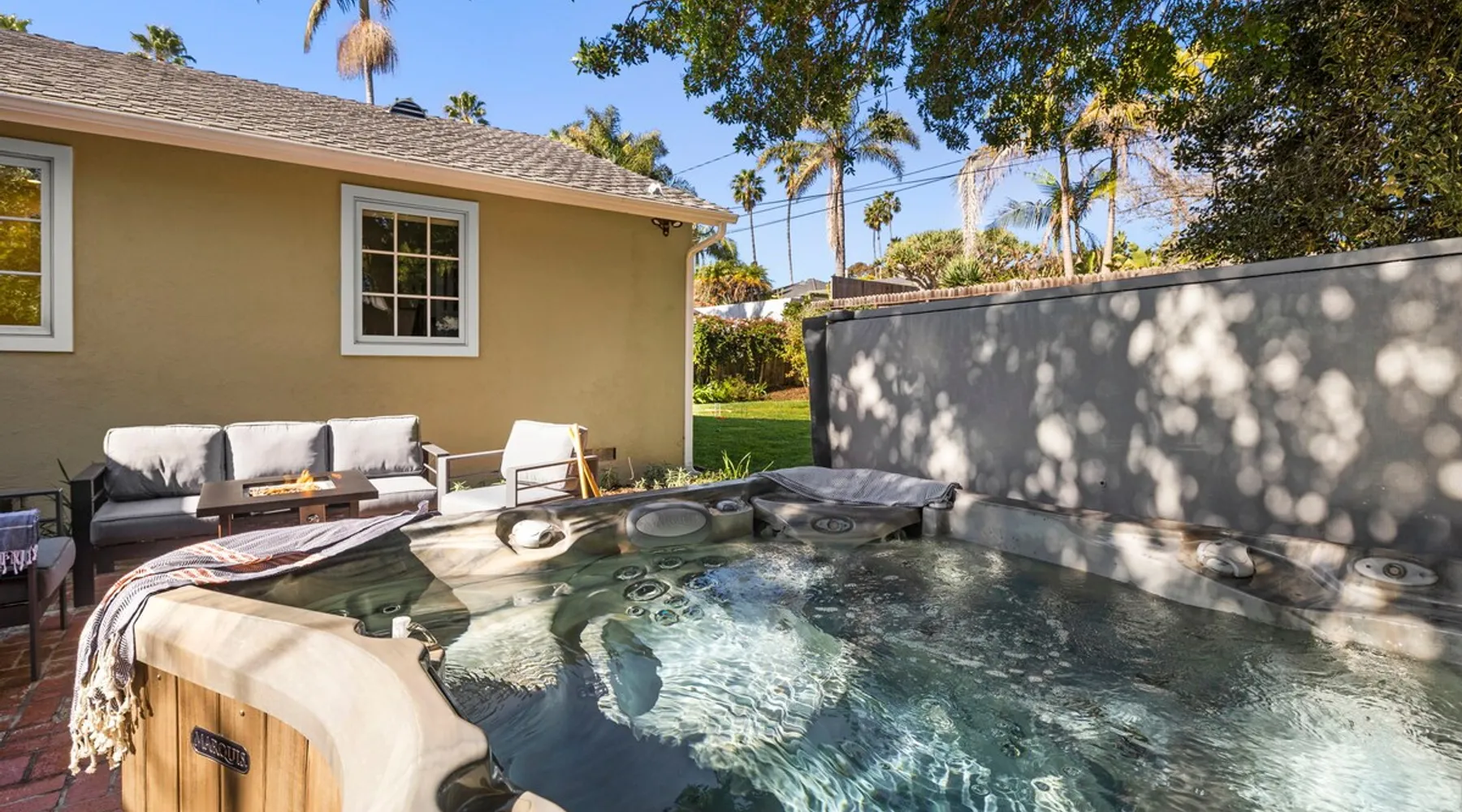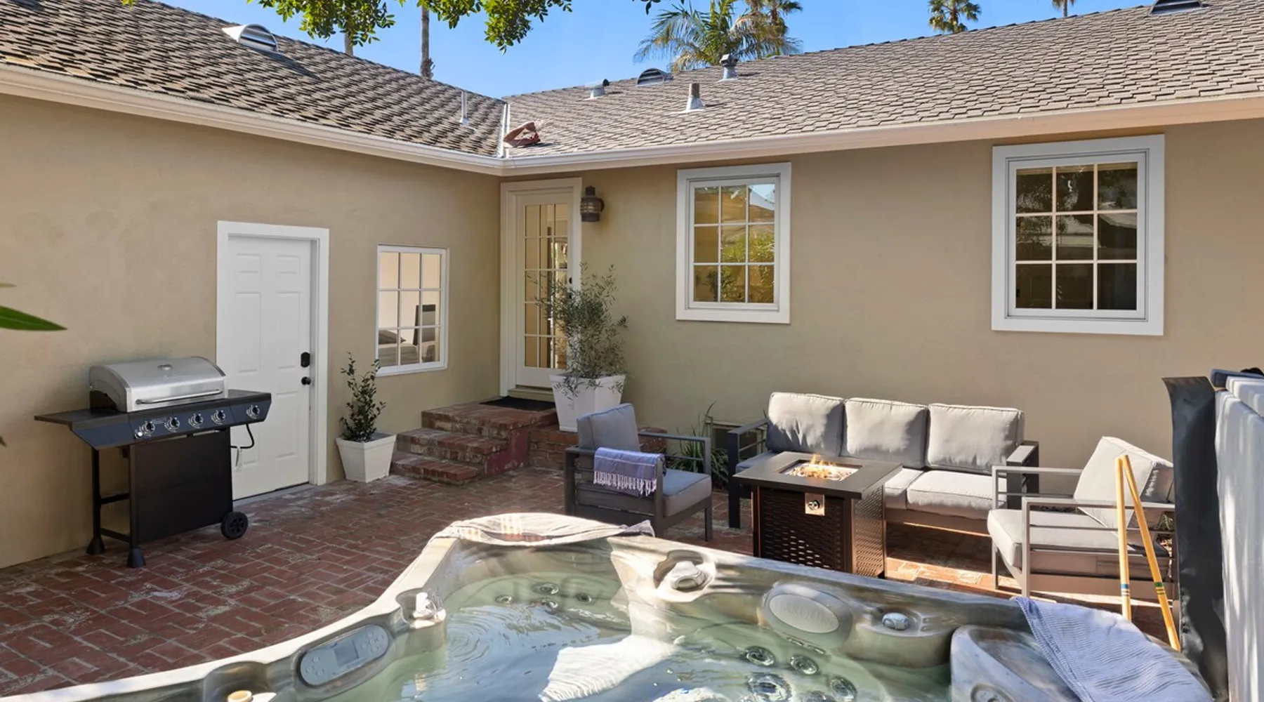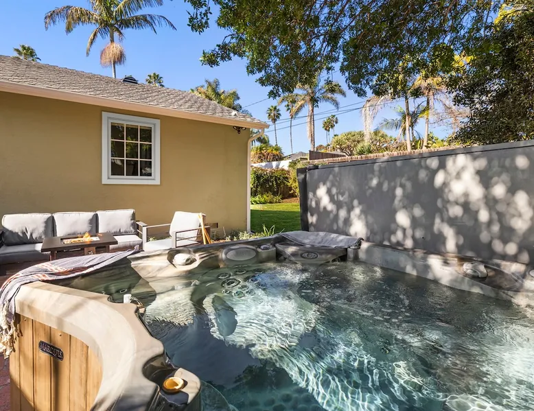 Drink in the view of the sunset over the Channel Islands in this beach bungalow centrally located atop the beloved Mesa in downtown in Santa Barbara. This newly renovated home sits on Shoreline Drive, directly across from the playground at the popular Shoreline Park. Minutes away from the Santa Barbara harbor, Funk Zone, and State Street, this home provides the perfect location for your beach escape with your family and friends. The space Single story, 3 bedroom, 1 bath home. Queen bed room 1, King bed room 2, bunk beds twin over full room 3. Bathroom has glass shower doors and a bath tub. Front room has a large seating area, TV, and French Doors that open to a view of Shoreline Park. The backyard has an outdoor seating area, propane BBQ, propane fire pit, and a hot tub that seats up to 4 people. The home has a 220V EV charger on the side of the garage. Tesla charging cord available if needed. Guest access Guests have access to the entire home, front yard, back yard and garage. There is one lock-out closet in the hallway for our housekeepers to store supplies. Other things to note This home does not have A/C. There is a heating system, but no A/C. The home does have fans. We have 2 exterior Ring cameras. One is over the front door. The second captures the back patio area. Please be advised that while the camera is in no way aimed at the hot tub, the hot tub is in view in the lower corner of the frame. The security cameras are there to keep our guests safe and to protect the property owner. The owner needs to be able to monitor the patio area, fire pit, BBQ and hot tub in the event of any incident or accident. Our hot tub maintenance man and gardeners come every Tuesday between the hours of 10:00am - 4:00pm. They will access the hot tub and back yard through the side yard gate. Please be kind if you see them. They will respect your privacy and complete their jobs quickly and with as little interruption as possible.