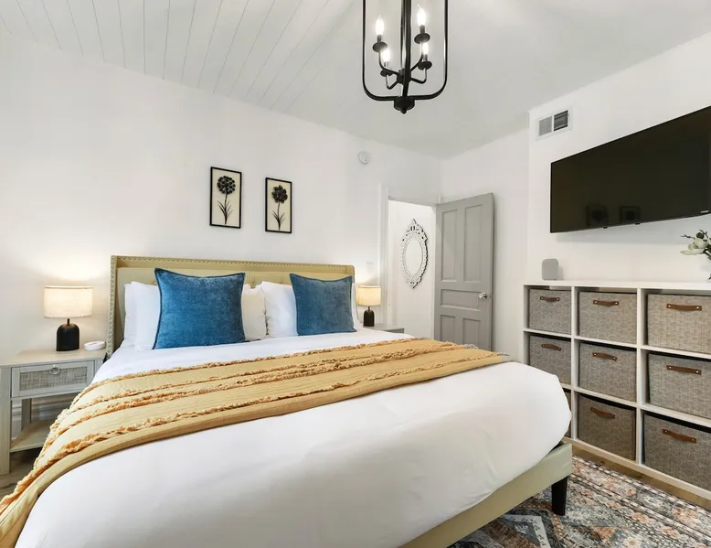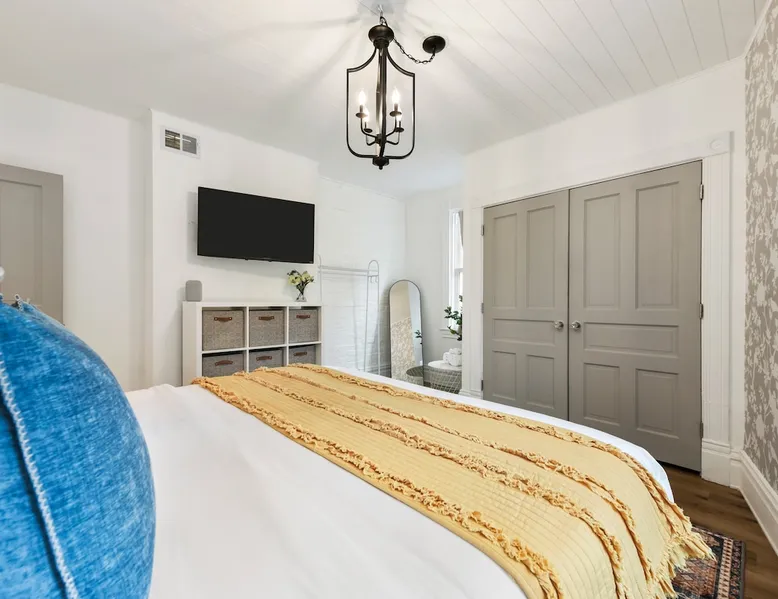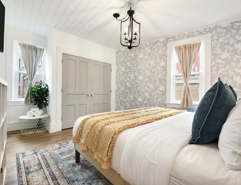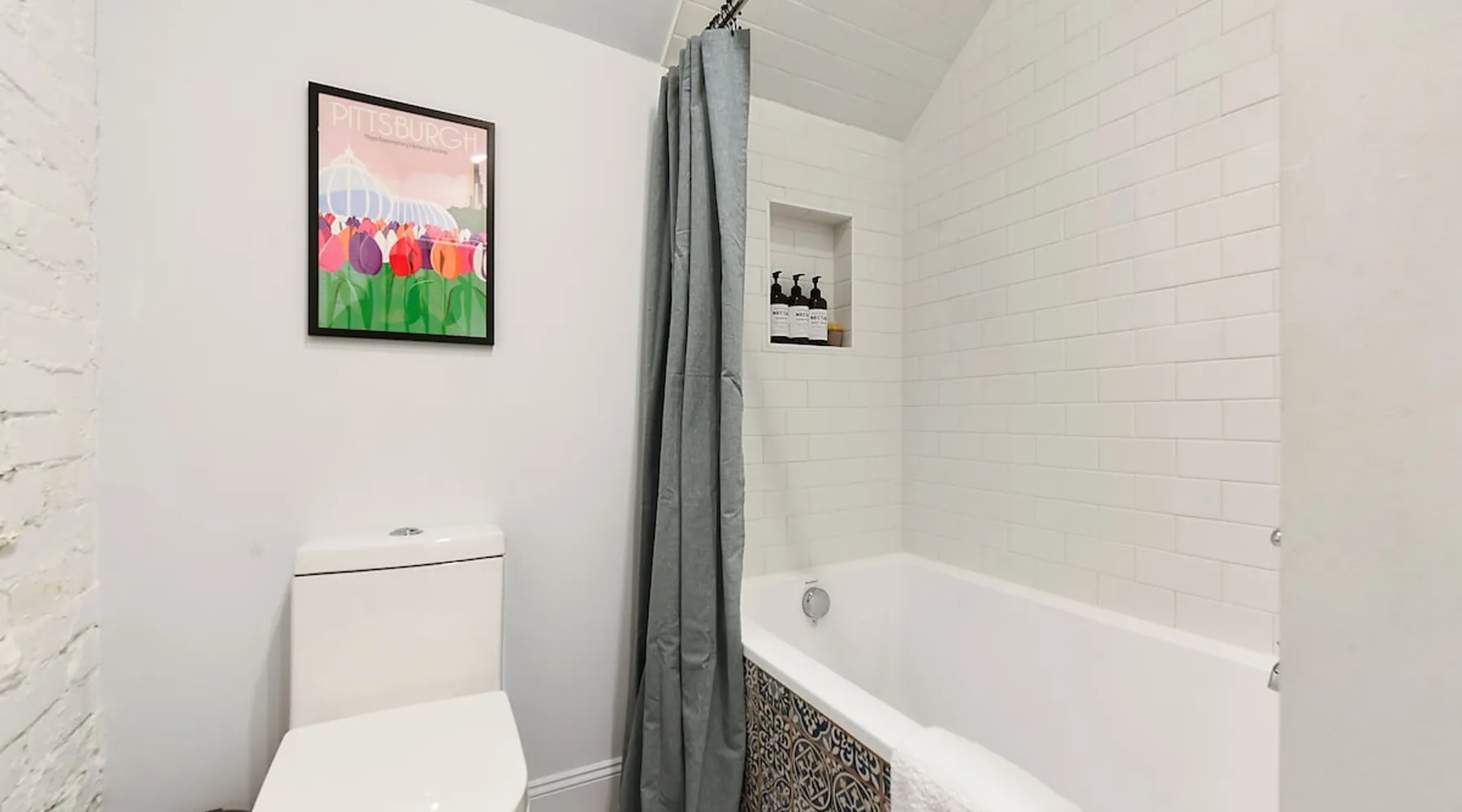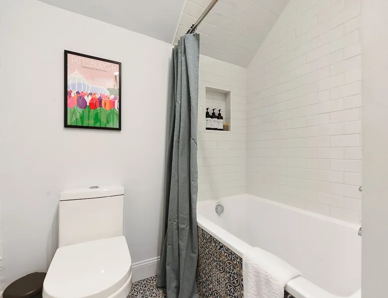 Welcome to your designer home away from home! Perfectly situated just a block from Butler St. in the heart of Lawrenceville, our home exudes charming moments in every space. Our home appeals to travelers that enjoy well designed, functional spaces - gourmet kitchen, work from home office space, soaking tubs, elegant bathrooms, and more. Stay in & cook, or head out to Butler St. for wining & dining. Off-street parking included as well! Book today & be one of our first guests! The space KEY AMENITIES / DETAILS ✓ Check-out process: Chore-Free Checkout® ✓ Check-in process: Keyless entry with code ✓ Check-in technology: Dack-enabled, swipe to unlock, digital guide, more ✓ 3 Bedrooms - 1 king, 2 queen ✓ 3 full bathrooms ✓ Sleeps 6 ✓ Cozy patio with fire pit ✓ Internet: High speed 300mbps ✓ Parking: Free off-street parking for 1 ✓ Laundry: HE washer & dryer in unit ✓ Kitchen: Fully stocked for cooking in ✓ Work from home: private office + add'l desk ✓ Coffee: Pittsburgh's Commonplace Roasters premium whole bean coffee ✓ Tech: Smart speaker, 55" + three 43" smart TVs ✓ Eco-friendly: Recycling, earth-friendly toiletries, water filters, more ✓ HVAC: Air conditioning & forced air heating ABOUT HOSTWISE STAYS As the top-ranked professional hosts in the Pittsburgh area, we are obsessed with quality service & amenities. Like high end hotels (but better!) we have chore-free check out procedures, we only use professional cleaners, we have local full-time employees, and we're available 24 / 7 / 365. We provide our valued guests with seamless lodging experiences & top-notch amenities - fast Wi-Fi, high end coffee bars, quality linens, clean spaces, earth-friendly products, remote workspaces, stocked kitchens, premium toiletries, and more! CLEANING PROCEDURES We understand how important it is to stay in a professionally cleaned space. We don't outsource our cleaning - our cleaners are professionally trained with a passion for what they do! Our team follows an industry-leading cleaning checklist, and our Operations team performs regular inspections to ensure our high standards are upheld. We have a collective 4.96 across our properties, with over 10,000 reviews! DETAILED FEATURES ➤ 3 BR / 3 BA corner row house ➤ Entrance + Security - Keyless entry with unique/random codes generated via Dack-enabled security software for each guest - highly secure! ➤ Sleeps 6 comfortably ➣ 1 King mattress + 2 Queen mattresses - semi-plush memory foam ➤ Parking - One dedicated off-street parking spot for a mid-size vehicle ➤ Bathrooms – 3 full bathrooms - soaker tubs, showers, and more! ➣ Includes blow dryer, plush cotton towels, and premium toiletries ➤ TVs - 45" in the living room, three 43" in other bedrooms - all HD / UHD smart TVs ➣ Most apps are free to use and / or you are able to use your cable provider's login info for "paid" apps (ESPN, HBO, Showtime, etc.) ➤ Internet - High speed 300mbps up / down Verizon FioS ➤ Work From Home - Dedicated office on the lower floor + an additional workspace on the 2nd floor ➤ Outdoor Space - Semi-enclosed back patio with firepit ➤ Kitchen - Fully stocked with quality pots & pans, sharp knives, silicone utensils, toaster, microwave, full coffee setup, dishwasher, stove/range, fridge, and more! ➤ Coffee & Tea - Drip coffee maker, French press, electric kettle, premium locally roasted Commonplace whole bean coffee, and Two Leaves & a Bud tea selection is provided, along with Torani syrup, organic sugar & half & half creamers ➤ Living Room - Comfy, spacious sofa + smart TV ➤ Dining - Seating for 2 at the kitchen island ➤ Laundry - Free washer & dryer + Dropps earth-friendly detergents ➤ Air Conditioning / heating: Central air + heat ➤ Pets not permitted ➤ No Smoking indoors PROPERTY LAYOUT This is a true "walk in & say wow" home! The entrance to our beautiful, custom-designed home is in the back of the home on the patio. Once entering, you arrive in the kitchen area - the first thing you'll notice is the calming colors used throughout, along with the natural hardwood ceiling. Through the kitchen is our spacious, gorgeous living room, with the TV, sound bar, and cozy couch. Under the stairs is the entrance to the lowest floor area, with a full bathroom & private office. Heading upstairs to the second floor, you'll find the king bedroom to the right, and to the left there is a large nook with another work from home area as well as a makeup station. Further back down a small hallway, is the large, beautiful bathroom, containing the soaker tub + walk-in shower. Taking the stairs to the third floor, you'll find the two queen bedrooms as well as the final "Jack & Jill" bathroom. Guest access Our entire property is at your disposal, with the exception of a locked housekeeping closet.