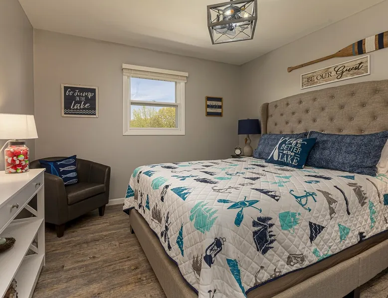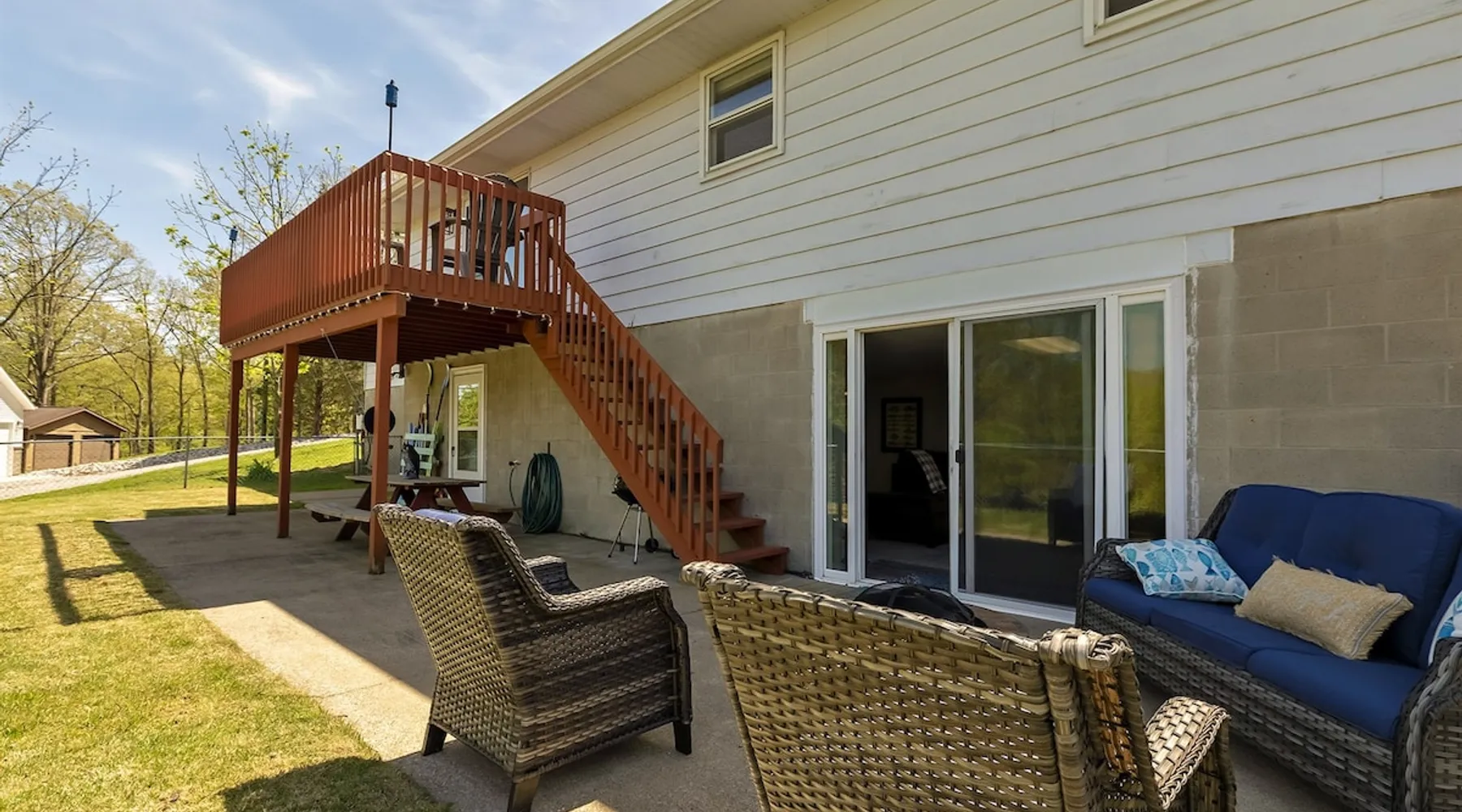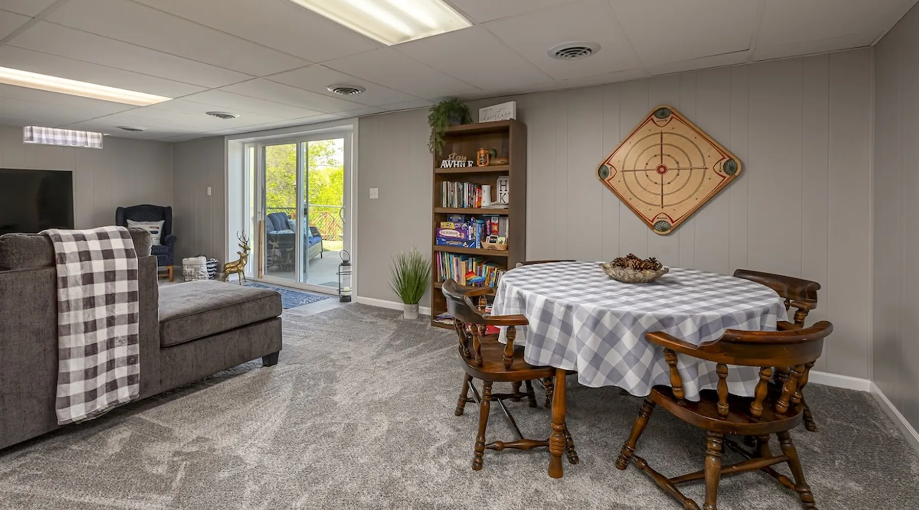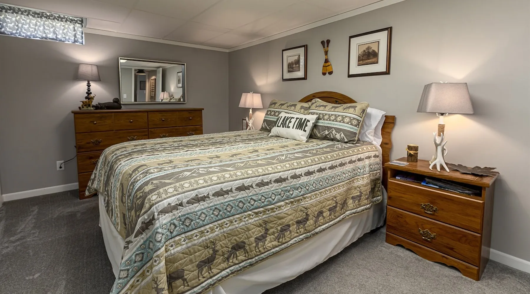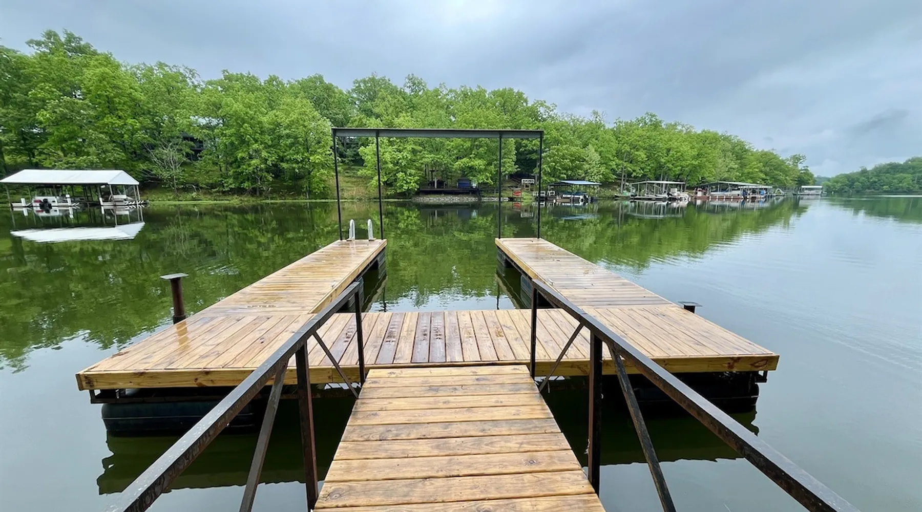 Experience the charm and comfort of a lakeside retreat that feels just like grandma's house. Nestled in Sugar Creek of Lake of Egypt, this cozy house offers a warm and inviting atmosphere, perfect for a relaxing getaway. Step inside to find quaint décor, plush furnishings, and all the amenities you need for a memorable stay. Whether you're lounging on the porch overlooking the lake or watching the kids cannonball off the dock, you'll feel right at home in this charming lakeside escape. The space Sleeping Arrangements: Bedroom 1 - Queen bed Bedroom 2 - Queen bed Bedroom 3 - Queen bed Bedroom 4- 2 Bunk beds and a trundle = 5 single beds Main Level: Kitchen Living Room Hall Bathroom 2 Queen bedrooms and Bunk Room Lower Level: 2nd Living Room 2nd Kitchen 2nd Dining Table 1 Bathroom Walkout to covered porch overlooking lake 1 Queen Bedroom Outdoors: Single Slip U-shaped dock Clean deep water for swimming off dock Other things to note A rental agreement is required with ID verification within 48 hours of booking. Access to the property is only provided after the renter's agreement is signed. Check-in is after 3 PM. Check-out is before 10 AM. Pet Policy: Absolutely no pets. Pets are not allowed at this property. If guest are caught with a pet, guests may be subject to an immediate cancellation without refund. If evidence is found after your stay, there will be a $150 penalty for rule violation. Inventory: We provide a "starter package" of inventory for our cabin: 3 rolls of T.P. and 1 full roll of paper towels. The garage is not accessible. Max 4 vehicles in driveway. Additional parking is available 5 minutes away for overflow vehicles and boat trailers.