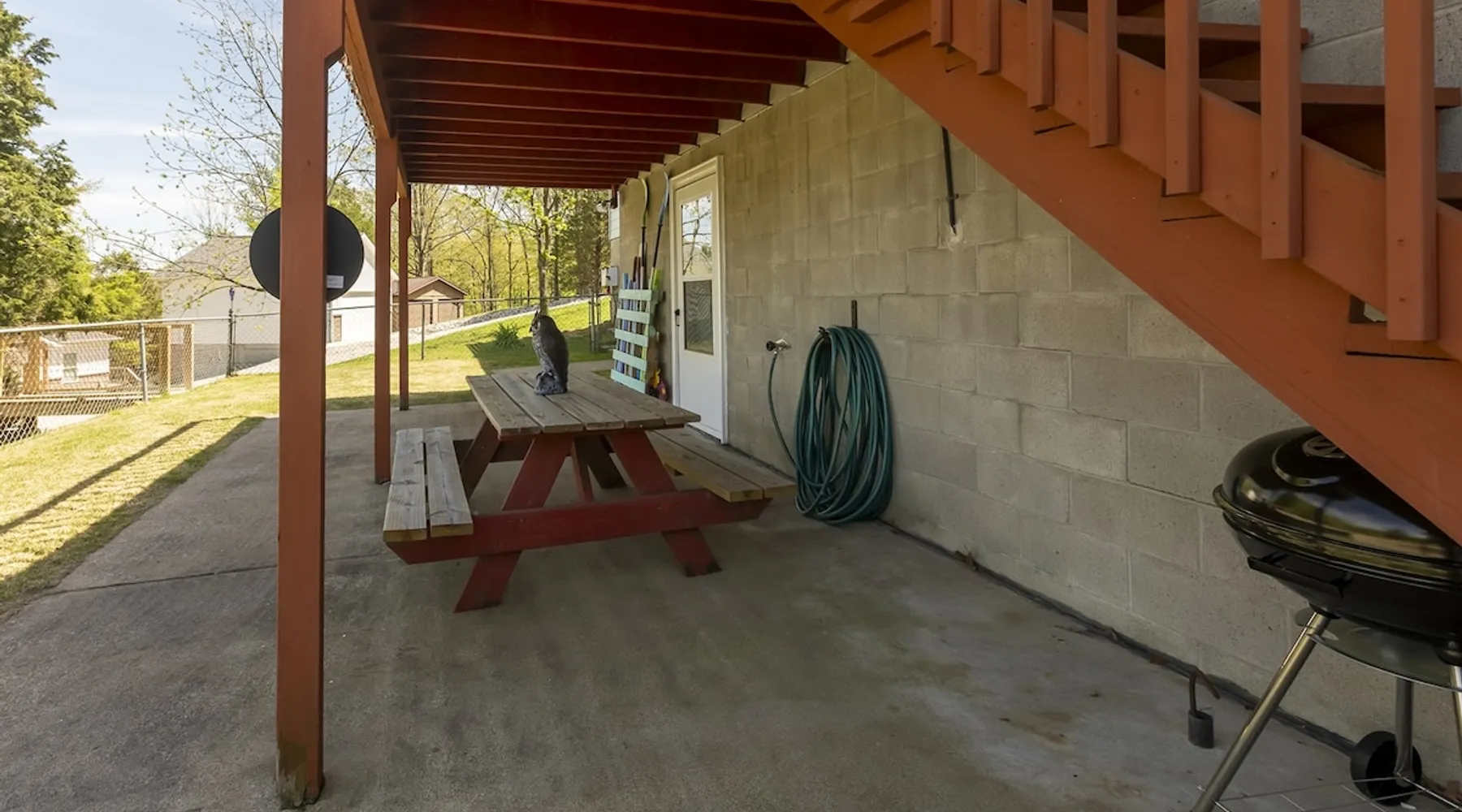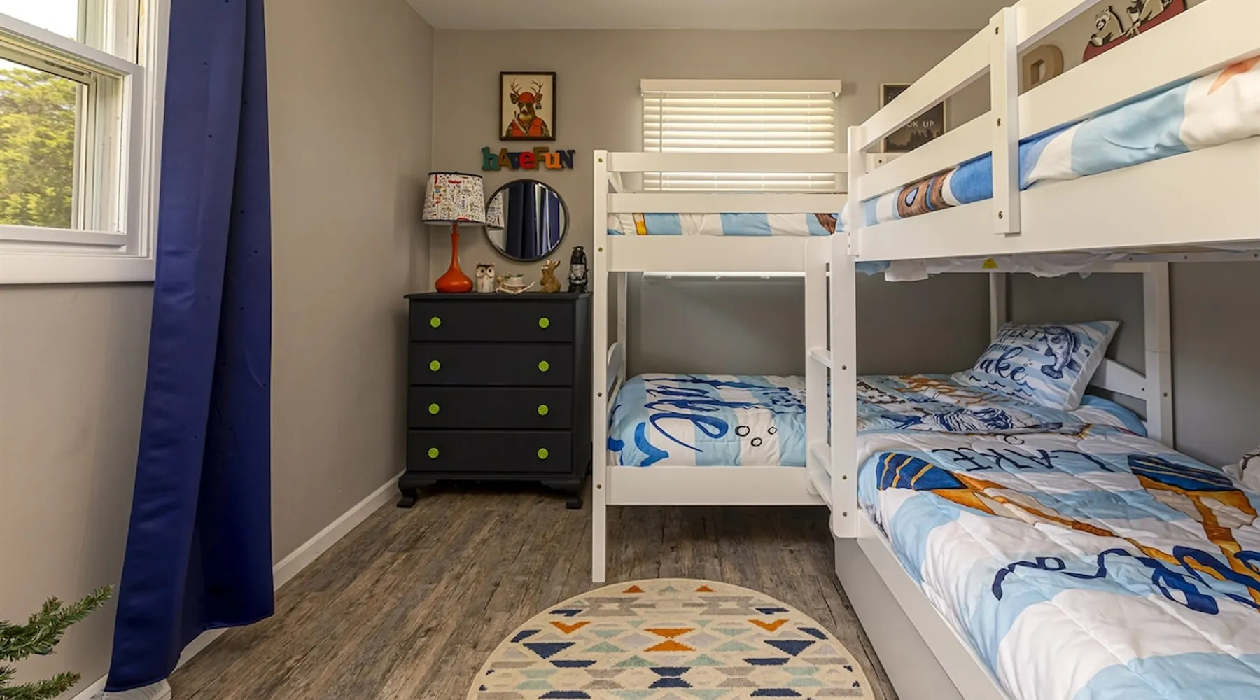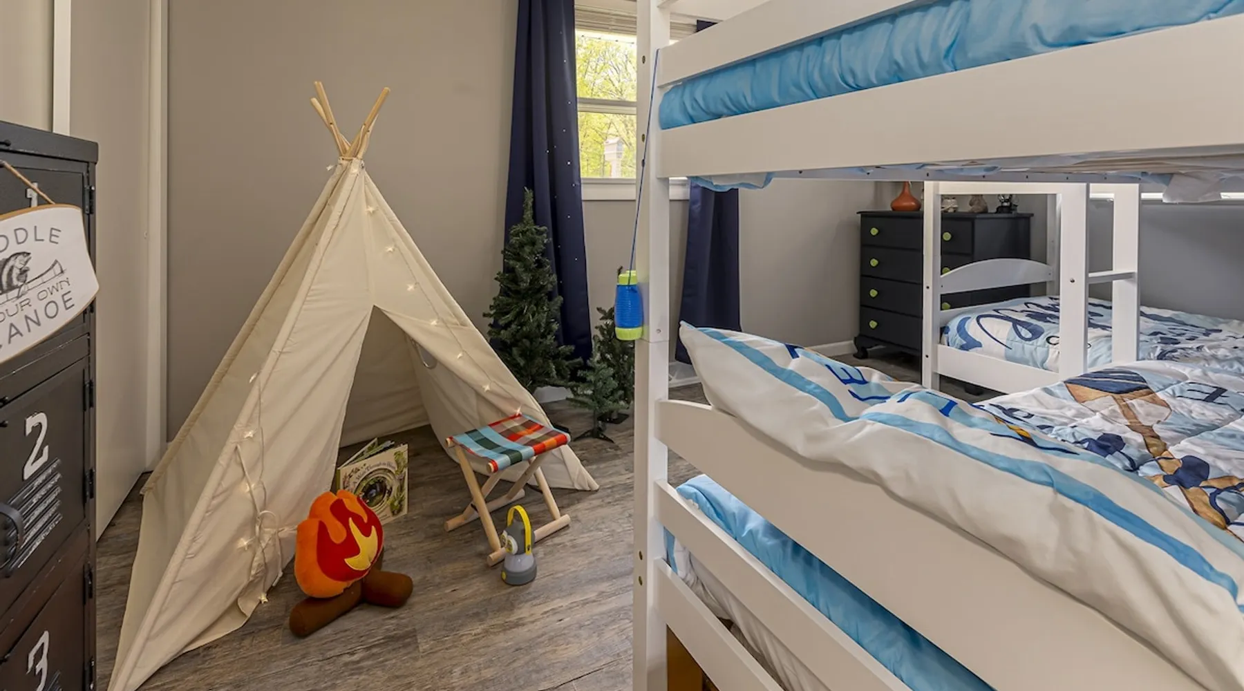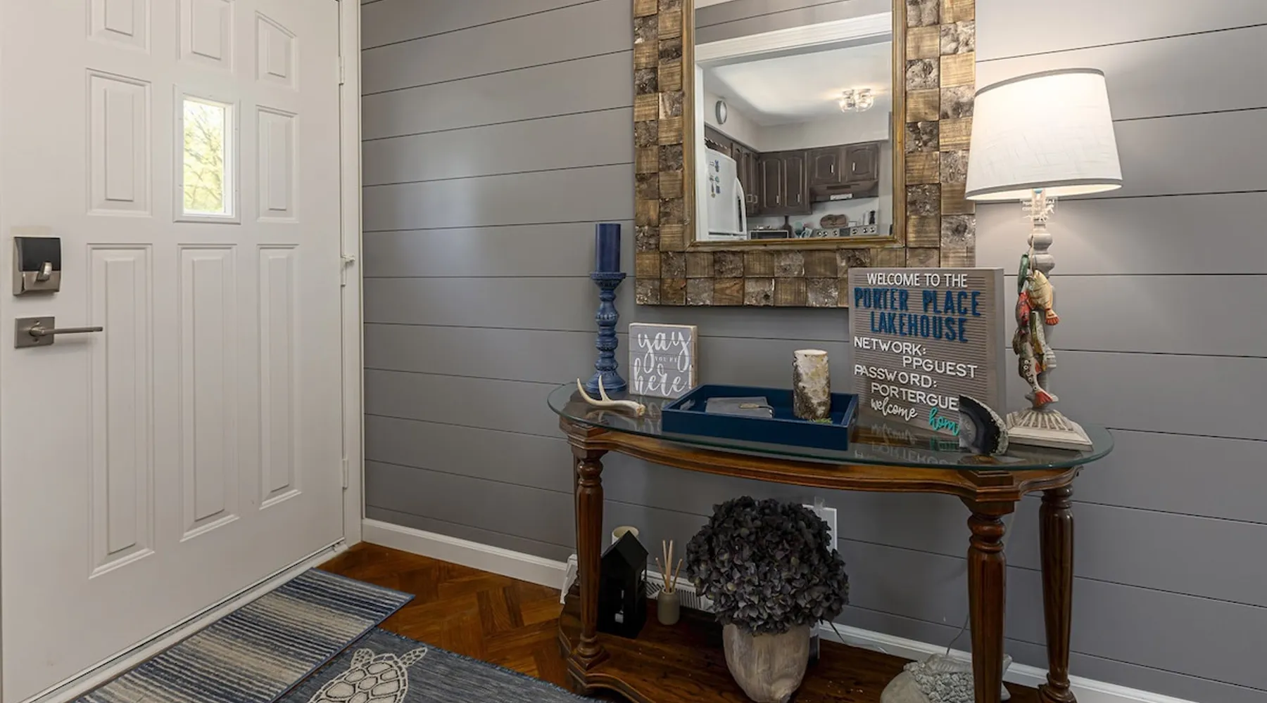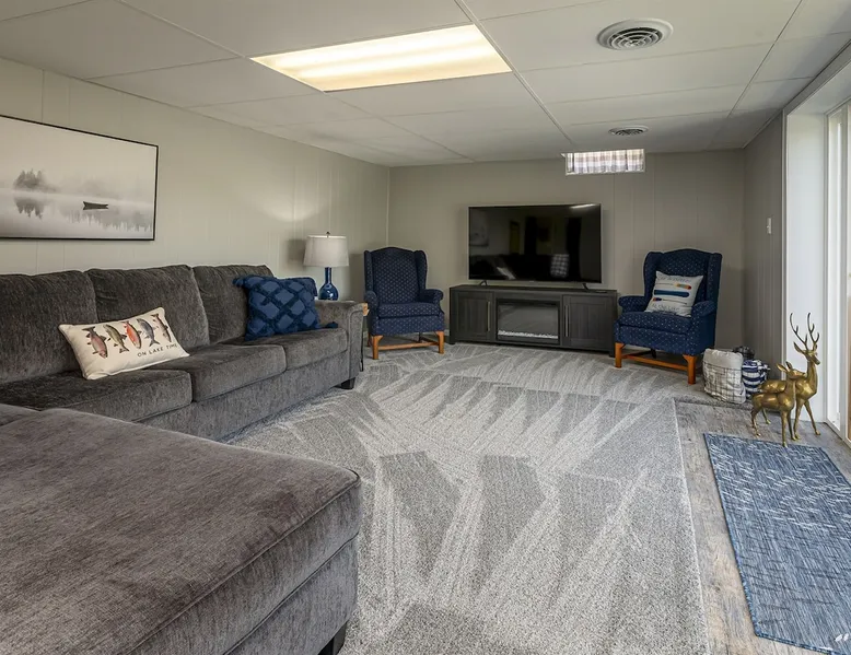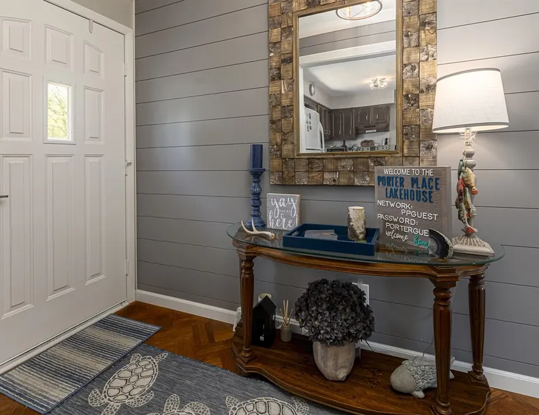 Experience the charm and comfort of a lakeside retreat that feels just like grandma's house. Nestled in Sugar Creek of Lake of Egypt, this cozy house offers a warm and inviting atmosphere, perfect for a relaxing getaway. Step inside to find quaint décor, plush furnishings, and all the amenities you need for a memorable stay. Whether you're lounging on the porch overlooking the lake or watching the kids cannonball off the dock, you'll feel right at home in this charming lakeside escape. The space Sleeping Arrangements: Bedroom 1 - Queen bed Bedroom 2 - Queen bed Bedroom 3 - Queen bed Bedroom 4- 2 Bunk beds and a trundle = 5 single beds Main Level: Kitchen Living Room Hall Bathroom 2 Queen bedrooms and Bunk Room Lower Level: 2nd Living Room 2nd Kitchen 2nd Dining Table 1 Bathroom Walkout to covered porch overlooking lake 1 Queen Bedroom Outdoors: Single Slip U-shaped dock Clean deep water for swimming off dock Other things to note A rental agreement is required with ID verification within 48 hours of booking. Access to the property is only provided after the renter's agreement is signed. Check-in is after 3 PM. Check-out is before 10 AM. Pet Policy: Absolutely no pets. Pets are not allowed at this property. If guest are caught with a pet, guests may be subject to an immediate cancellation without refund. If evidence is found after your stay, there will be a $150 penalty for rule violation. Inventory: We provide a "starter package" of inventory for our cabin: 3 rolls of T.P. and 1 full roll of paper towels. The garage is not accessible. Max 4 vehicles in driveway. Additional parking is available 5 minutes away for overflow vehicles and boat trailers.