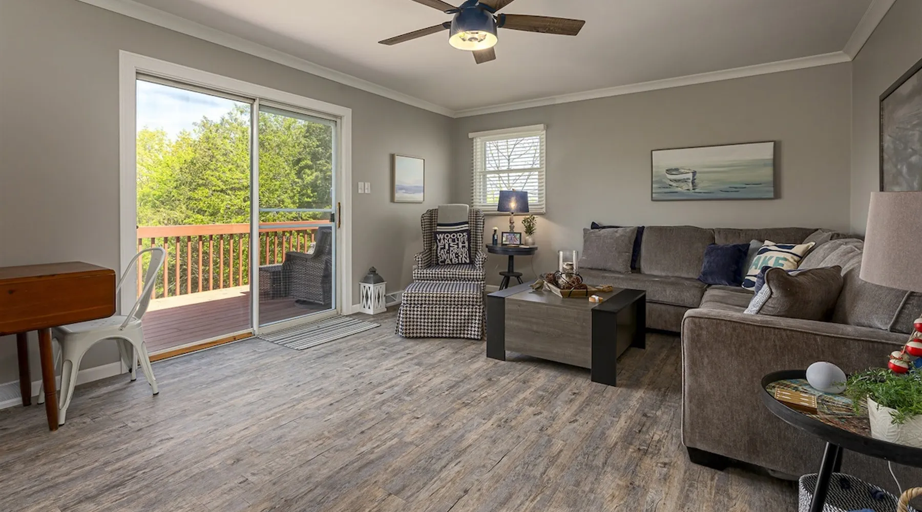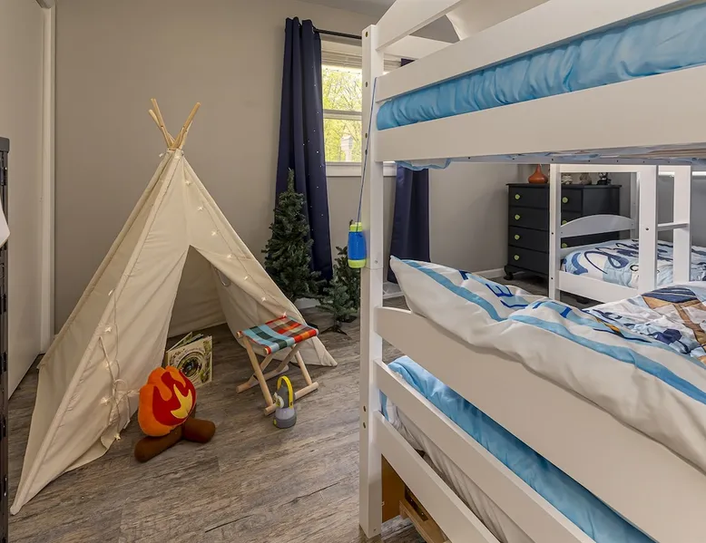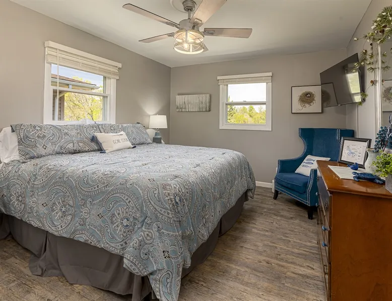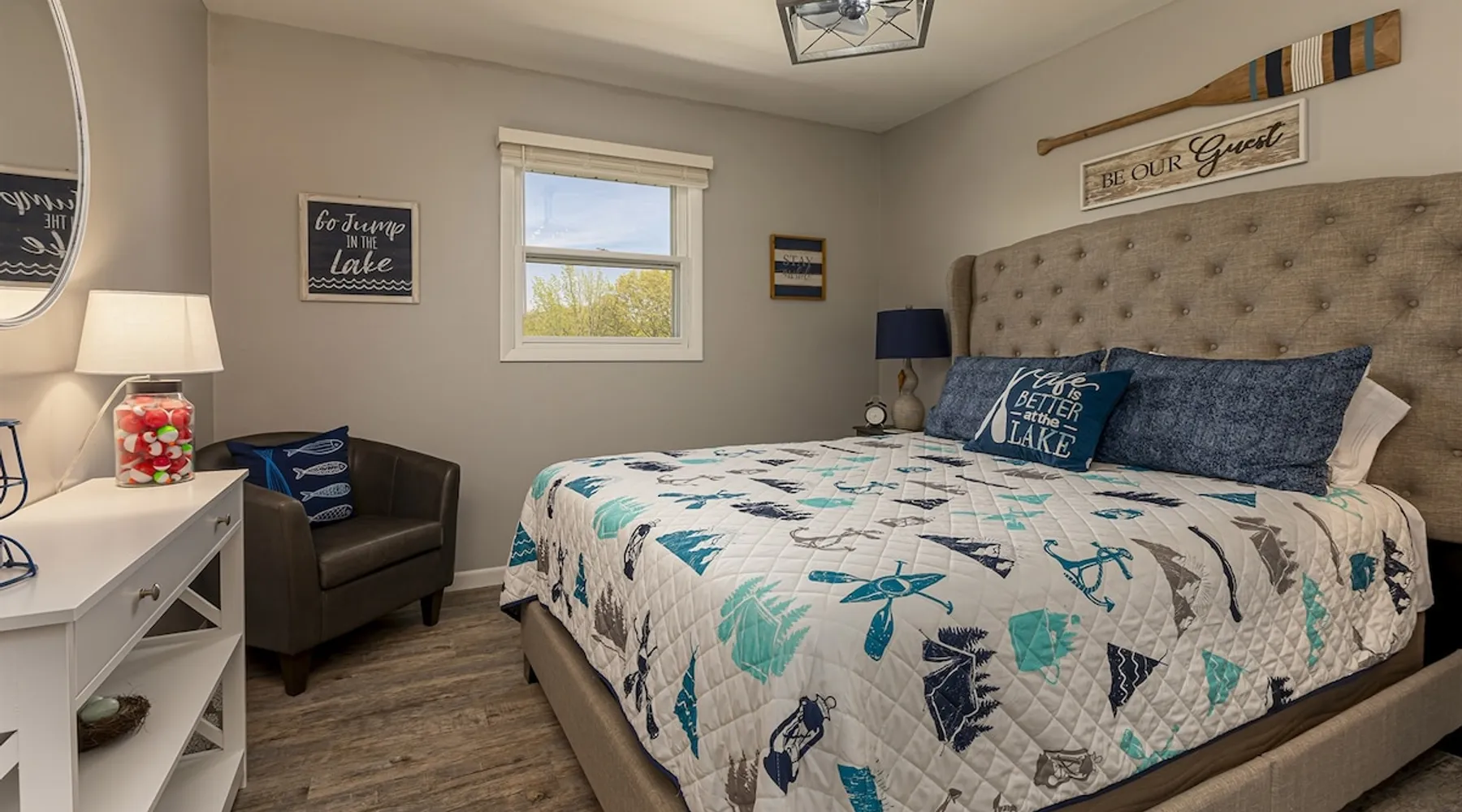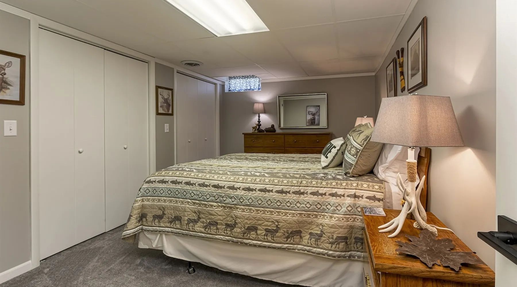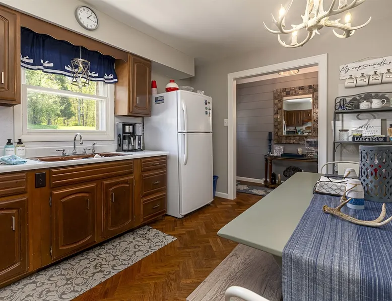 Experience the charm and comfort of a lakeside retreat that feels just like grandma's house. Nestled in Sugar Creek of Lake of Egypt, this cozy house offers a warm and inviting atmosphere, perfect for a relaxing getaway. Step inside to find quaint décor, plush furnishings, and all the amenities you need for a memorable stay. Whether you're lounging on the porch overlooking the lake or watching the kids cannonball off the dock, you'll feel right at home in this charming lakeside escape. The space Sleeping Arrangements: Bedroom 1 - Queen bed Bedroom 2 - Queen bed Bedroom 3 - Queen bed Bedroom 4- 2 Bunk beds and a trundle = 5 single beds Main Level: Kitchen Living Room Hall Bathroom 2 Queen bedrooms and Bunk Room Lower Level: 2nd Living Room 2nd Kitchen 2nd Dining Table 1 Bathroom Walkout to covered porch overlooking lake 1 Queen Bedroom Outdoors: Single Slip U-shaped dock Clean deep water for swimming off dock Other things to note A rental agreement is required with ID verification within 48 hours of booking. Access to the property is only provided after the renter's agreement is signed. Check-in is after 3 PM. Check-out is before 10 AM. Pet Policy: Absolutely no pets. Pets are not allowed at this property. If guest are caught with a pet, guests may be subject to an immediate cancellation without refund. If evidence is found after your stay, there will be a $150 penalty for rule violation. Inventory: We provide a "starter package" of inventory for our cabin: 3 rolls of T.P. and 1 full roll of paper towels. The garage is not accessible. Max 4 vehicles in driveway. Additional parking is available 5 minutes away for overflow vehicles and boat trailers.