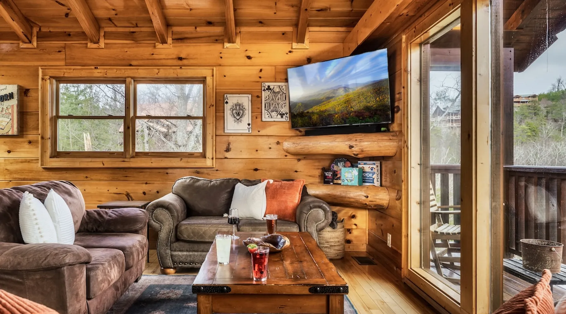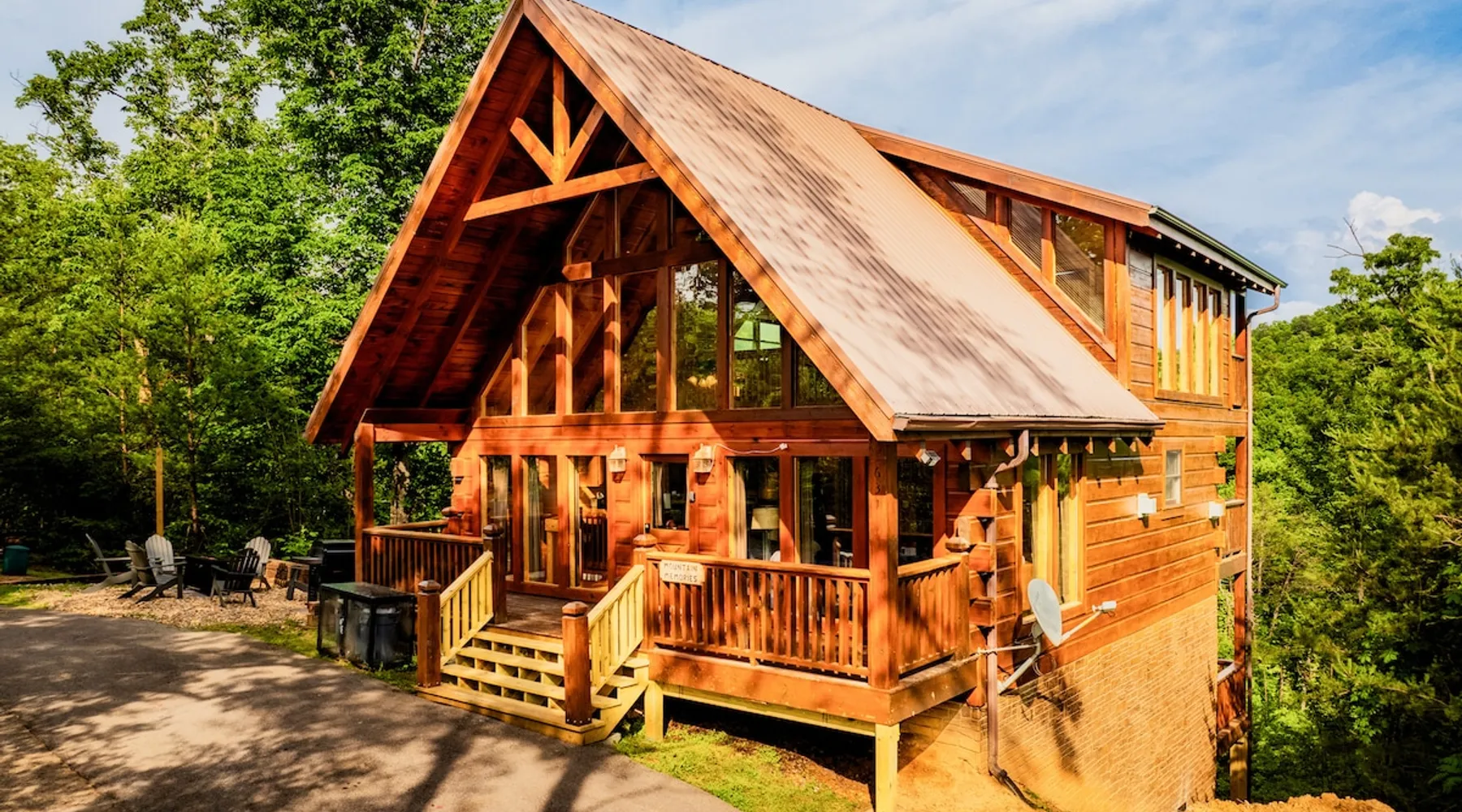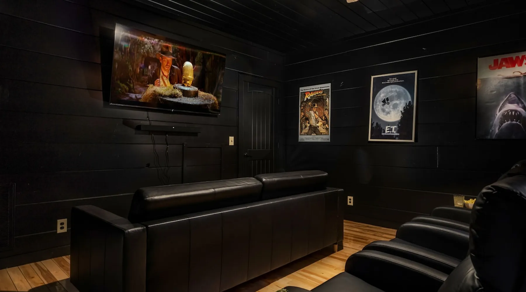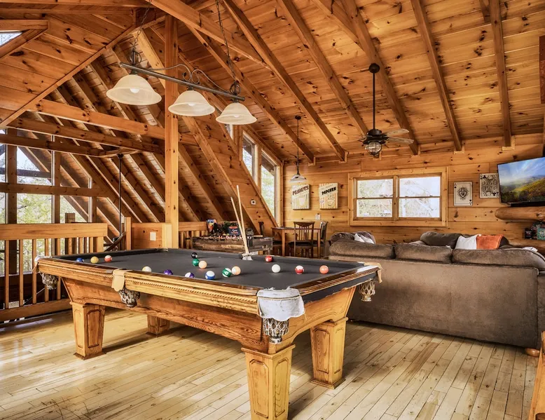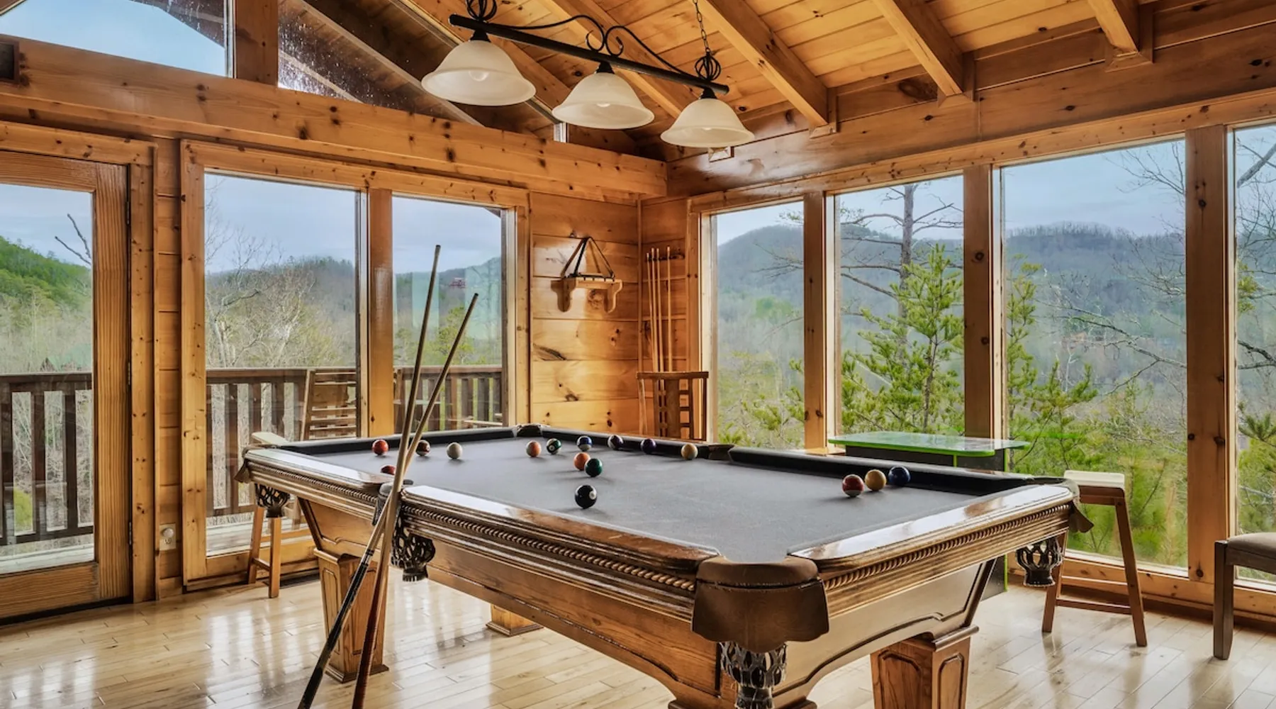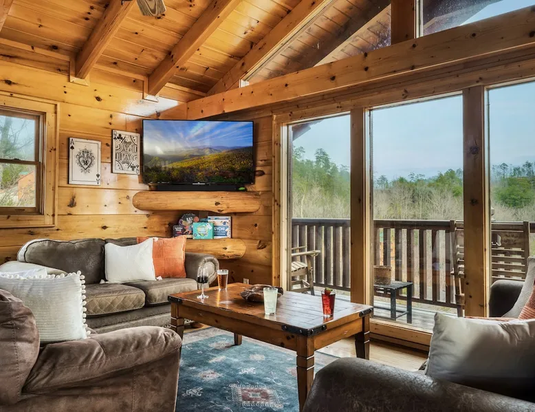 Beautifully decorated cabin with Cathedral ceilings & Majestic Mountain views from almost every room. This cabin is perfect for families & groups of friends that love to entertain: you will find a theater/movie room, a fire pit outdoor space, an entertainment-packed game room with pool table, foosball, arcade games, a kids teepee filled with toys, a hot tub and 3 relaxing decks with dramatic mountain views. Just a 15 minute drive to Pigeon Forge Parkway and 25 minutes to Gatlinburg! The space . Breathtaking Mountain Views . Private Fire pit with views . Theater/Movie room . Hot tub with views . Game Room w/ pool table, foosball & arcade games . 3 King suites / 3.5 bathrooms . 15 min drive to Pigeon Forge Parkway (restaurants, shops, attractions) . 20 min drive to Dollywood, Gatlinburg & the Smoky Mountains National Park entrance . Parking for 5 vehicles . Fully equipped & stocked kitchen . All TV’s with 125+ channels and High Speed WIFI (Starlink) . SuperHost Follow us on FB or Insta: smokymoutainsretreats ► BEDROOMS This three-story cabin accommodates up to 13 guests between the three king-size bedrooms (each with their own en-suite bathroom) and three queen-size sleeper sofas (one in the living room, one in the theater room, one in the game room). You will find a TV in every room. Main level: - 1 Master Bedroom with a King-size bed & en-suite bathroom (sleeps 2) - Great room: Queen-size sleeper Sofa (sleeps 2) Lower level: - 1 Master Bedroom with a King-size bed & en-suite bathroom (sleeps 2) - 1 Master Bedroom with a King-size bed, a full size bed & en-suite bathroom (sleeps 3) - Theater room with a Queen-size sleeper Sofa & shared bathroom (sleeps 2) Upper level: - Game room: Queen-size sleeper Sofa & half bathroom (sleeps 2) See pictures of the floor plan in the listing (last pictures). ► KITCHEN The kitchen is equipped with all the cookware, cutlery, and appliances you need to prepare delicious meals during your stay. Refrigerator, stove, microwave, dishwasher, toaster, blender, tea kettle, Crockpot, Keurig Duo with carafe & single serve pod coffee maker. The dining table comfortably seats eight, and there are four additional chairs so everyone in your group can enjoy meals together. ► OUTDOOR GRILL There is a private Gas Grill. The Grill is connected to a propane tank so you don't have to worry about running out of gas. ► OUTDOOR SPACE After a day of hiking and sightseeing, you have a lot of options to chill: *relax by the fire pit *soak in the private hot tub *kick back in the rocking chairs and enjoy the fresh mountain breeze and impressive Mountain views. ► FIRE PIT Our private fire pit is located right by the cabin and offers nice Mountain views. There are 6 outdoor chairs. It is a gas fire pit and it is connected to a propane tank, so you just have to turn it on and it's ready to enjoy! ► HOME THEATER CINEMA Enjoy some fun movie nights with your private Home Theater cinema! ► GAME ROOM You will love playing in the game room outfitted with a pool table, foosball table, video arcade games. There is also an assortment of board games and a TV to watch your favorite shows/games. ► PETS We are a pet friendly cabin and you can bring up to 3 dogs as long as they are house broken/potty trained. We welcome all breeds of dogs and have no restrictions on weight. The pet fee is $175 for the whole stay for up to 3 dogs (the fee is not per dog). ► INTERNET/CABLE High Speed Wireless Internet Smart TVs in the living room/game room as well as in each bedrooms. ► LAUNDRY Full size washer and dryer. ► AMENITIES Our cleaning service provides start-up supplies including: paper towels, dish soap, dish washer soap, kitchen trash can liners, toilet paper, hand soap and bathroom trash liners. Depending on the length of your stay, you may need to purchase additional items when the initial supply runs out. ► PRIVATE PARKING Flat parking for up to 5 vehicles in the driveway. ► ENTRY The front door is equipped with an electronic keypad, we will send a personalized door code. ► SMOKING No Smoking indoors. You can smoke on the decks though. We will always strive to obtain a 5-star ★★★★★ review from all our guest and can’t wait to host your next holidays and make them UNFORGETTABLE! *** Please favorite the property by clicking "save" or "heart shape" in the upper right-hand corner, this will help you find it again and share with others *** Guest access Guests will enjoy the entire cabin/private hot tub/fire pit. Other things to note For security reasons, we have placed 1 outside camera. It is located on the porch facing the entrance door. Wyze camera in place and actively recording. Wyze camera is activated by motion and will record anyone that walks in front of them. These recordings are saved and can be reviewed and shared with the booking platform. If we believe that house rules are being violated, we have the ability to access these cameras in real time. Please remember that you are staying in our home away from home. Please treat our cabin with respect. "Out of our control" problems could arise, please note we will do everything in our power to resolve any issue ASAP, as your comfort means everything to us.