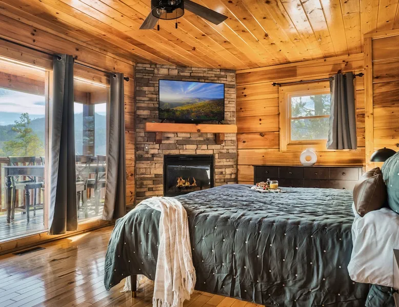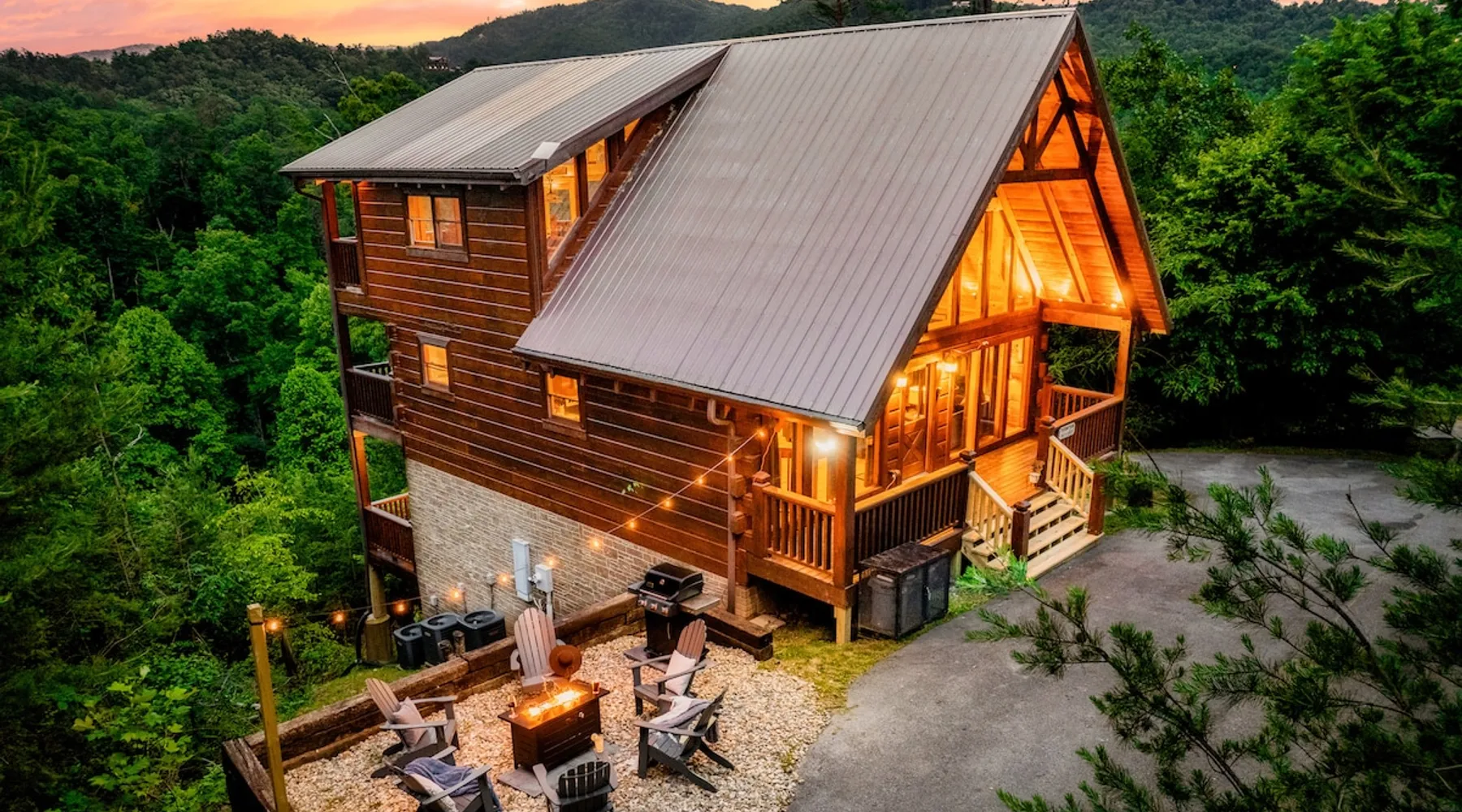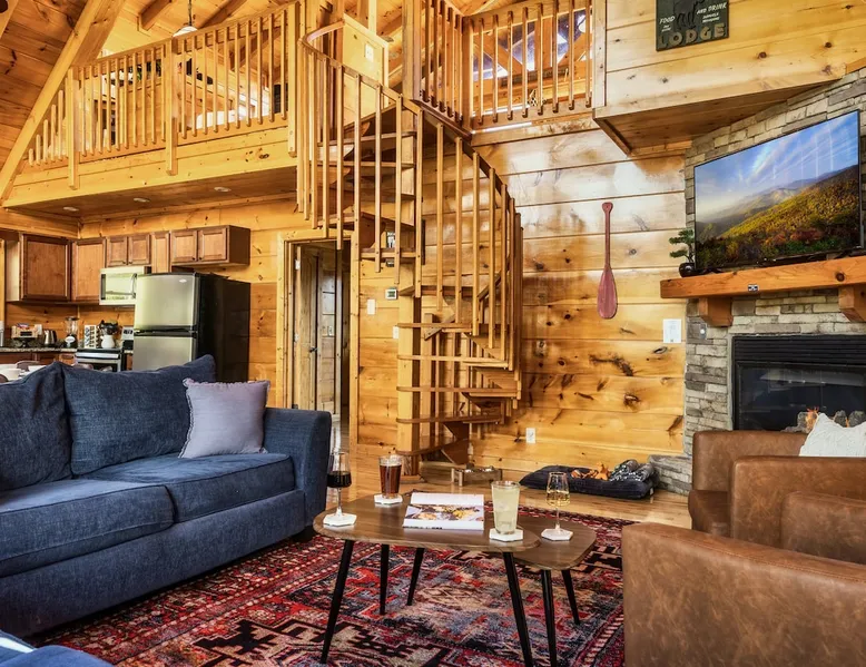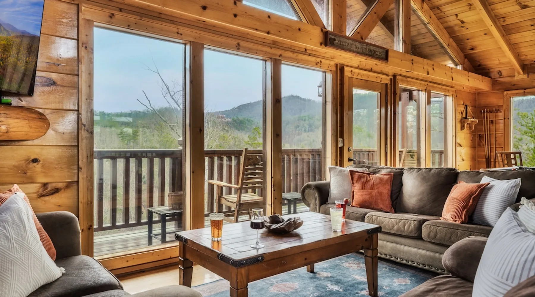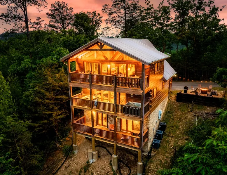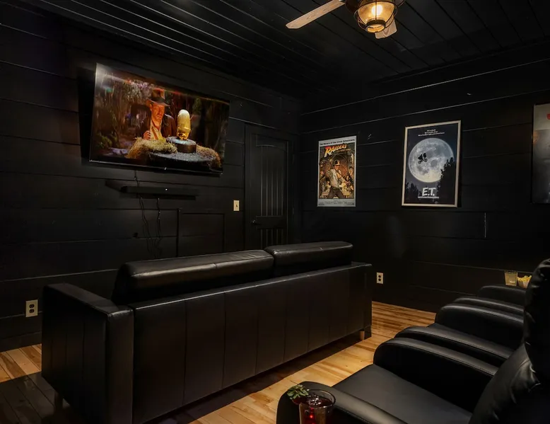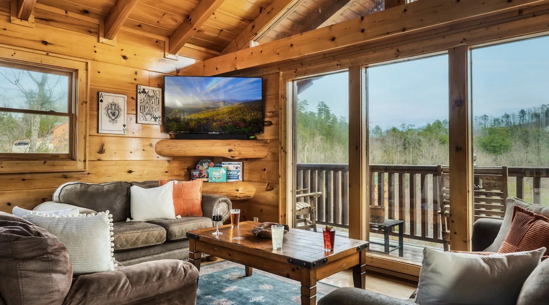 Beautifully decorated cabin with Cathedral ceilings & Majestic Mountain views from almost every room. This cabin is perfect for families & groups of friends that love to entertain: you will find a theater/movie room, a fire pit outdoor space, an entertainment-packed game room with pool table, foosball, arcade games, a kids teepee filled with toys, a hot tub and 3 relaxing decks with dramatic mountain views. Just a 15 minute drive to Pigeon Forge Parkway and 25 minutes to Gatlinburg! The space . Breathtaking Mountain Views . Private Fire pit with views . Theater/Movie room . Hot tub with views . Game Room w/ pool table, foosball & arcade games . 3 King suites / 3.5 bathrooms . 15 min drive to Pigeon Forge Parkway (restaurants, shops, attractions) . 20 min drive to Dollywood, Gatlinburg & the Smoky Mountains National Park entrance . Parking for 5 vehicles . Fully equipped & stocked kitchen . All TV’s with 125+ channels and High Speed WIFI (Starlink) . SuperHost Follow us on FB or Insta: smokymoutainsretreats ► BEDROOMS This three-story cabin accommodates up to 13 guests between the three king-size bedrooms (each with their own en-suite bathroom) and three queen-size sleeper sofas (one in the living room, one in the theater room, one in the game room). You will find a TV in every room. Main level: - 1 Master Bedroom with a King-size bed & en-suite bathroom (sleeps 2) - Great room: Queen-size sleeper Sofa (sleeps 2) Lower level: - 1 Master Bedroom with a King-size bed & en-suite bathroom (sleeps 2) - 1 Master Bedroom with a King-size bed, a full size bed & en-suite bathroom (sleeps 3) - Theater room with a Queen-size sleeper Sofa & shared bathroom (sleeps 2) Upper level: - Game room: Queen-size sleeper Sofa & half bathroom (sleeps 2) See pictures of the floor plan in the listing (last pictures). ► KITCHEN The kitchen is equipped with all the cookware, cutlery, and appliances you need to prepare delicious meals during your stay. Refrigerator, stove, microwave, dishwasher, toaster, blender, tea kettle, Crockpot, Keurig Duo with carafe & single serve pod coffee maker. The dining table comfortably seats eight, and there are four additional chairs so everyone in your group can enjoy meals together. ► OUTDOOR GRILL There is a private Gas Grill. The Grill is connected to a propane tank so you don't have to worry about running out of gas. ► OUTDOOR SPACE After a day of hiking and sightseeing, you have a lot of options to chill: *relax by the fire pit *soak in the private hot tub *kick back in the rocking chairs and enjoy the fresh mountain breeze and impressive Mountain views. ► FIRE PIT Our private fire pit is located right by the cabin and offers nice Mountain views. There are 6 outdoor chairs. It is a gas fire pit and it is connected to a propane tank, so you just have to turn it on and it's ready to enjoy! ► HOME THEATER CINEMA Enjoy some fun movie nights with your private Home Theater cinema! ► GAME ROOM You will love playing in the game room outfitted with a pool table, foosball table, video arcade games. There is also an assortment of board games and a TV to watch your favorite shows/games. ► PETS We are a pet friendly cabin and you can bring up to 3 dogs as long as they are house broken/potty trained. We welcome all breeds of dogs and have no restrictions on weight. The pet fee is $175 for the whole stay for up to 3 dogs (the fee is not per dog). ► INTERNET/CABLE High Speed Wireless Internet Smart TVs in the living room/game room as well as in each bedrooms. ► LAUNDRY Full size washer and dryer. ► AMENITIES Our cleaning service provides start-up supplies including: paper towels, dish soap, dish washer soap, kitchen trash can liners, toilet paper, hand soap and bathroom trash liners. Depending on the length of your stay, you may need to purchase additional items when the initial supply runs out. ► PRIVATE PARKING Flat parking for up to 5 vehicles in the driveway. ► ENTRY The front door is equipped with an electronic keypad, we will send a personalized door code. ► SMOKING No Smoking indoors. You can smoke on the decks though. We will always strive to obtain a 5-star ★★★★★ review from all our guest and can’t wait to host your next holidays and make them UNFORGETTABLE! *** Please favorite the property by clicking "save" or "heart shape" in the upper right-hand corner, this will help you find it again and share with others *** Guest access Guests will enjoy the entire cabin/private hot tub/fire pit. Other things to note For security reasons, we have placed 1 outside camera. It is located on the porch facing the entrance door. Wyze camera in place and actively recording. Wyze camera is activated by motion and will record anyone that walks in front of them. These recordings are saved and can be reviewed and shared with the booking platform. If we believe that house rules are being violated, we have the ability to access these cameras in real time. Please remember that you are staying in our home away from home. Please treat our cabin with respect. "Out of our control" problems could arise, please note we will do everything in our power to resolve any issue ASAP, as your comfort means everything to us.