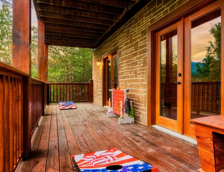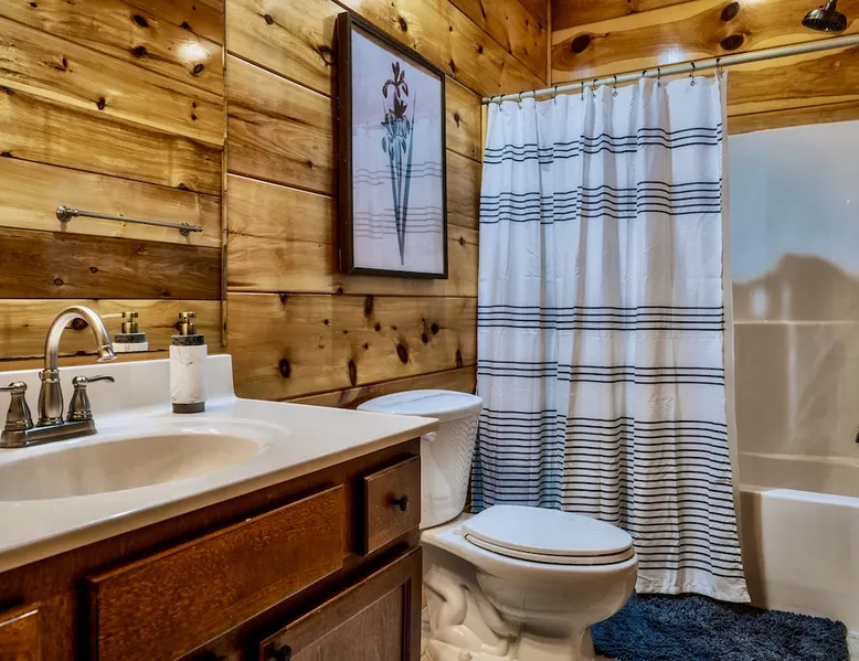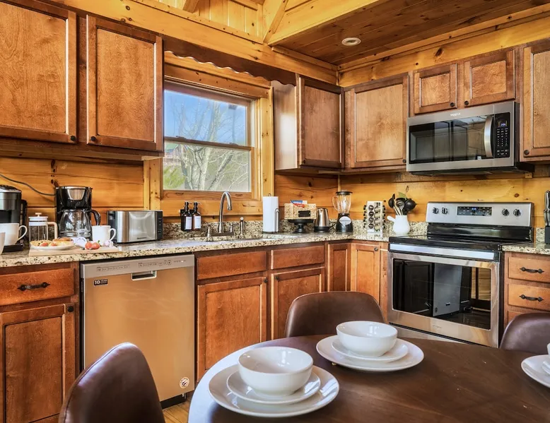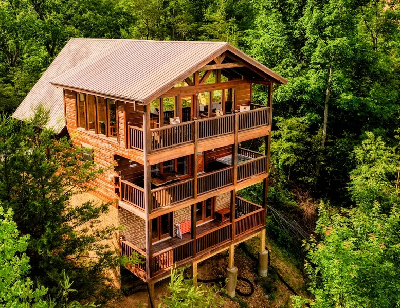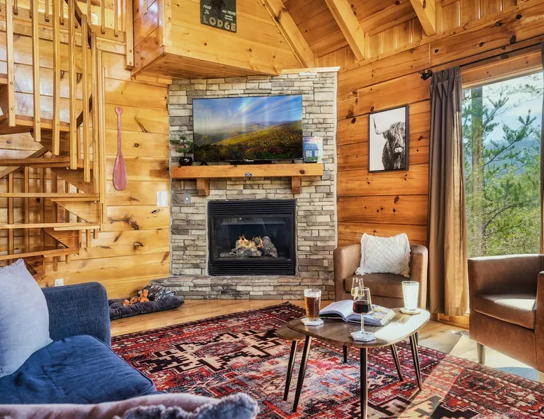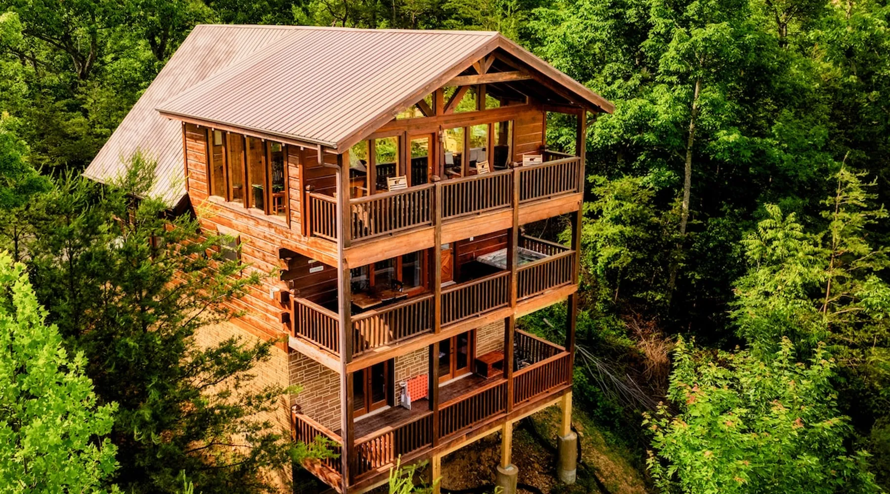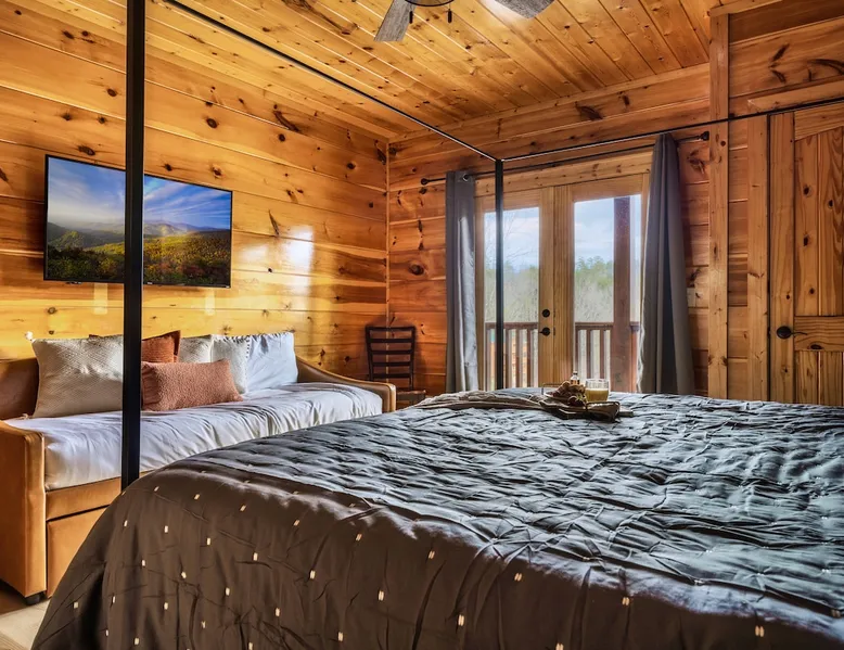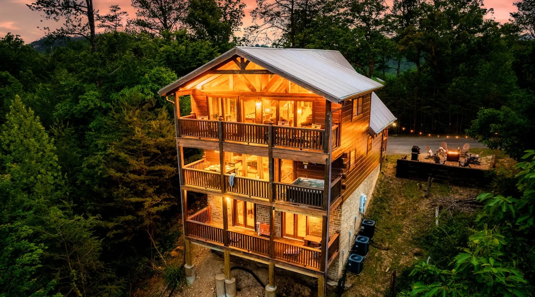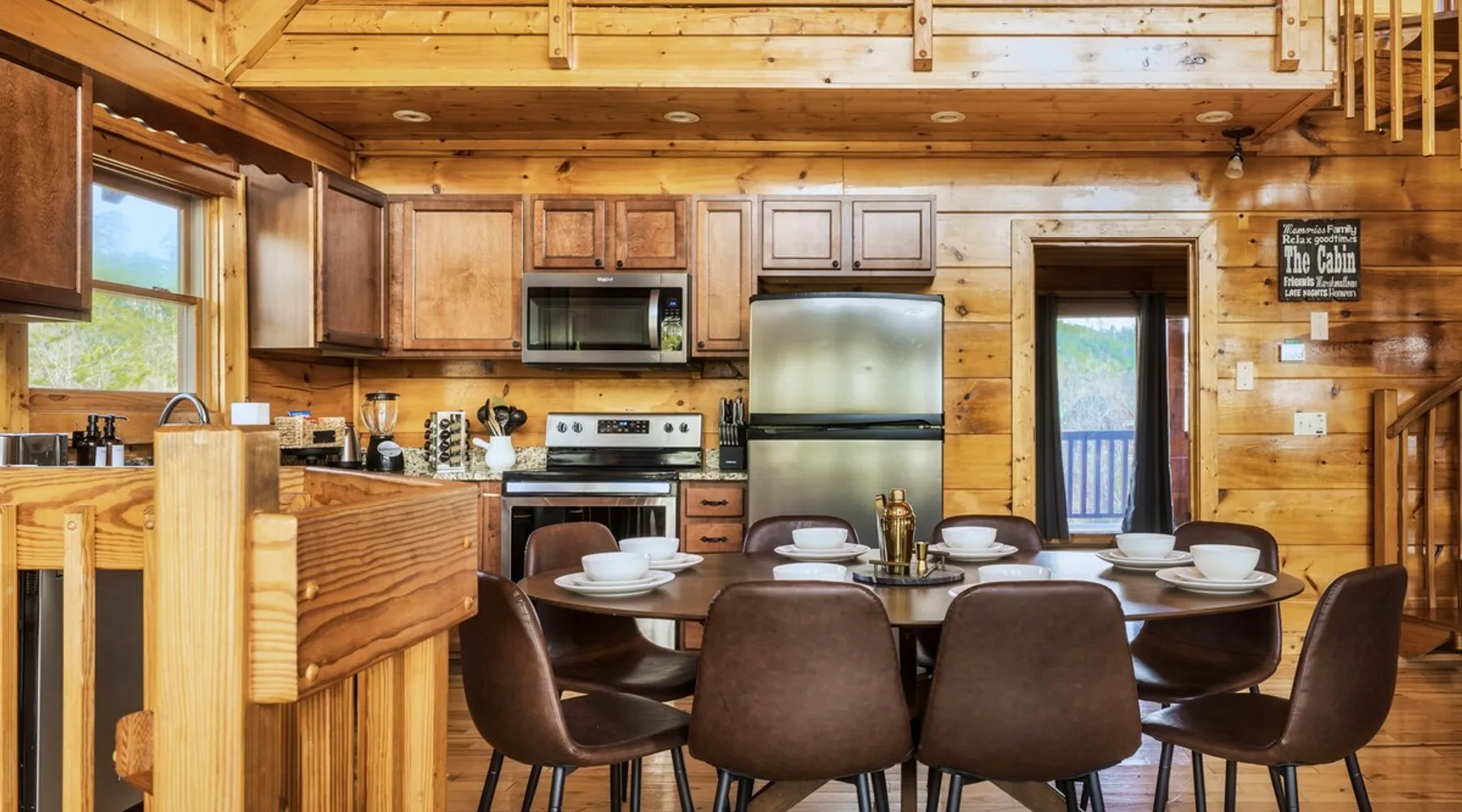 Beautifully decorated cabin with Cathedral ceilings & Majestic Mountain views from almost every room. This cabin is perfect for families & groups of friends that love to entertain: you will find a theater/movie room, a fire pit outdoor space, an entertainment-packed game room with pool table, foosball, arcade games, a kids teepee filled with toys, a hot tub and 3 relaxing decks with dramatic mountain views. Just a 15 minute drive to Pigeon Forge Parkway and 25 minutes to Gatlinburg! The space . Breathtaking Mountain Views . Private Fire pit with views . Theater/Movie room . Hot tub with views . Game Room w/ pool table, foosball & arcade games . 3 King suites / 3.5 bathrooms . 15 min drive to Pigeon Forge Parkway (restaurants, shops, attractions) . 20 min drive to Dollywood, Gatlinburg & the Smoky Mountains National Park entrance . Parking for 5 vehicles . Fully equipped & stocked kitchen . All TV’s with 125+ channels and High Speed WIFI (Starlink) . SuperHost Follow us on FB or Insta: smokymoutainsretreats ► BEDROOMS This three-story cabin accommodates up to 13 guests between the three king-size bedrooms (each with their own en-suite bathroom) and three queen-size sleeper sofas (one in the living room, one in the theater room, one in the game room). You will find a TV in every room. Main level: - 1 Master Bedroom with a King-size bed & en-suite bathroom (sleeps 2) - Great room: Queen-size sleeper Sofa (sleeps 2) Lower level: - 1 Master Bedroom with a King-size bed & en-suite bathroom (sleeps 2) - 1 Master Bedroom with a King-size bed, a full size bed & en-suite bathroom (sleeps 3) - Theater room with a Queen-size sleeper Sofa & shared bathroom (sleeps 2) Upper level: - Game room: Queen-size sleeper Sofa & half bathroom (sleeps 2) See pictures of the floor plan in the listing (last pictures). ► KITCHEN The kitchen is equipped with all the cookware, cutlery, and appliances you need to prepare delicious meals during your stay. Refrigerator, stove, microwave, dishwasher, toaster, blender, tea kettle, Crockpot, Keurig Duo with carafe & single serve pod coffee maker. The dining table comfortably seats eight, and there are four additional chairs so everyone in your group can enjoy meals together. ► OUTDOOR GRILL There is a private Gas Grill. The Grill is connected to a propane tank so you don't have to worry about running out of gas. ► OUTDOOR SPACE After a day of hiking and sightseeing, you have a lot of options to chill: *relax by the fire pit *soak in the private hot tub *kick back in the rocking chairs and enjoy the fresh mountain breeze and impressive Mountain views. ► FIRE PIT Our private fire pit is located right by the cabin and offers nice Mountain views. There are 6 outdoor chairs. It is a gas fire pit and it is connected to a propane tank, so you just have to turn it on and it's ready to enjoy! ► HOME THEATER CINEMA Enjoy some fun movie nights with your private Home Theater cinema! ► GAME ROOM You will love playing in the game room outfitted with a pool table, foosball table, video arcade games. There is also an assortment of board games and a TV to watch your favorite shows/games. ► PETS We are a pet friendly cabin and you can bring up to 3 dogs as long as they are house broken/potty trained. We welcome all breeds of dogs and have no restrictions on weight. The pet fee is $175 for the whole stay for up to 3 dogs (the fee is not per dog). ► INTERNET/CABLE High Speed Wireless Internet Smart TVs in the living room/game room as well as in each bedrooms. ► LAUNDRY Full size washer and dryer. ► AMENITIES Our cleaning service provides start-up supplies including: paper towels, dish soap, dish washer soap, kitchen trash can liners, toilet paper, hand soap and bathroom trash liners. Depending on the length of your stay, you may need to purchase additional items when the initial supply runs out. ► PRIVATE PARKING Flat parking for up to 5 vehicles in the driveway. ► ENTRY The front door is equipped with an electronic keypad, we will send a personalized door code. ► SMOKING No Smoking indoors. You can smoke on the decks though. We will always strive to obtain a 5-star ★★★★★ review from all our guest and can’t wait to host your next holidays and make them UNFORGETTABLE! *** Please favorite the property by clicking "save" or "heart shape" in the upper right-hand corner, this will help you find it again and share with others *** Guest access Guests will enjoy the entire cabin/private hot tub/fire pit. Other things to note For security reasons, we have placed 1 outside camera. It is located on the porch facing the entrance door. Wyze camera in place and actively recording. Wyze camera is activated by motion and will record anyone that walks in front of them. These recordings are saved and can be reviewed and shared with the booking platform. If we believe that house rules are being violated, we have the ability to access these cameras in real time. Please remember that you are staying in our home away from home. Please treat our cabin with respect. "Out of our control" problems could arise, please note we will do everything in our power to resolve any issue ASAP, as your comfort means everything to us.