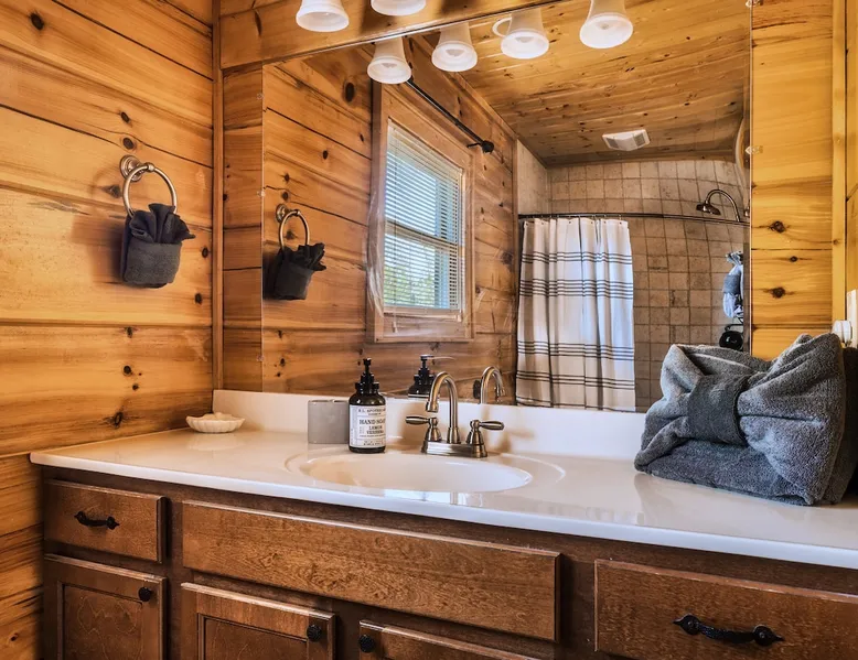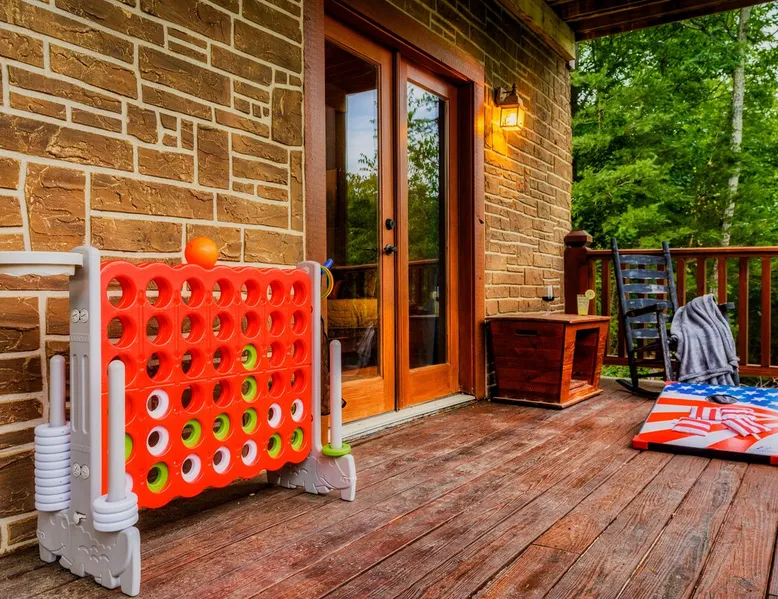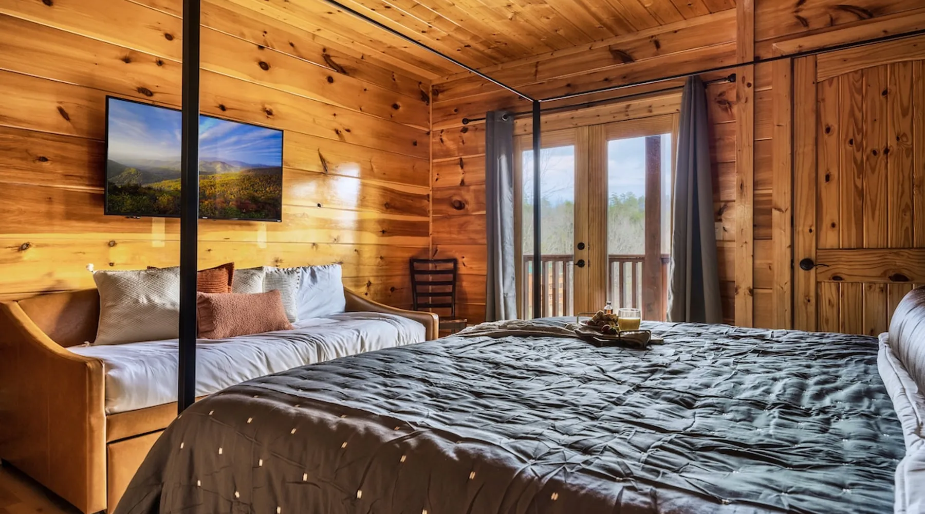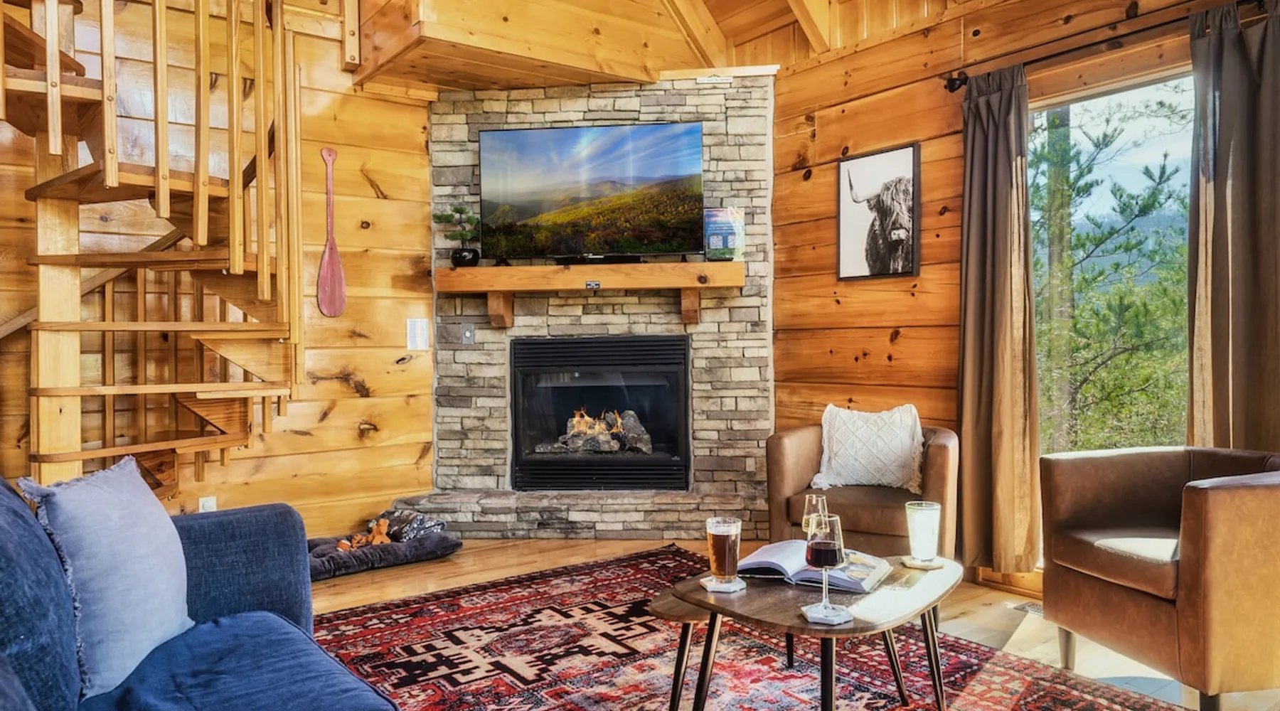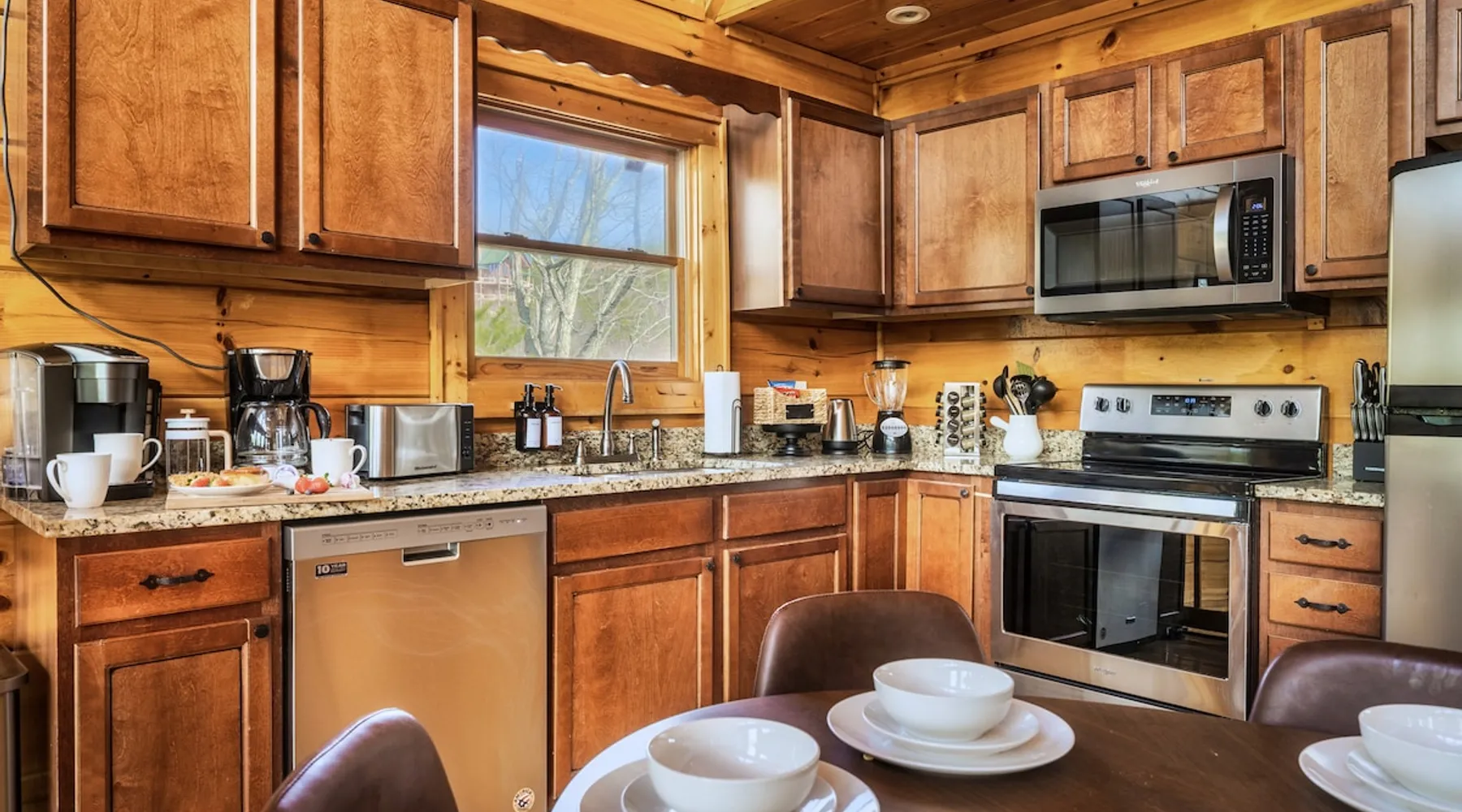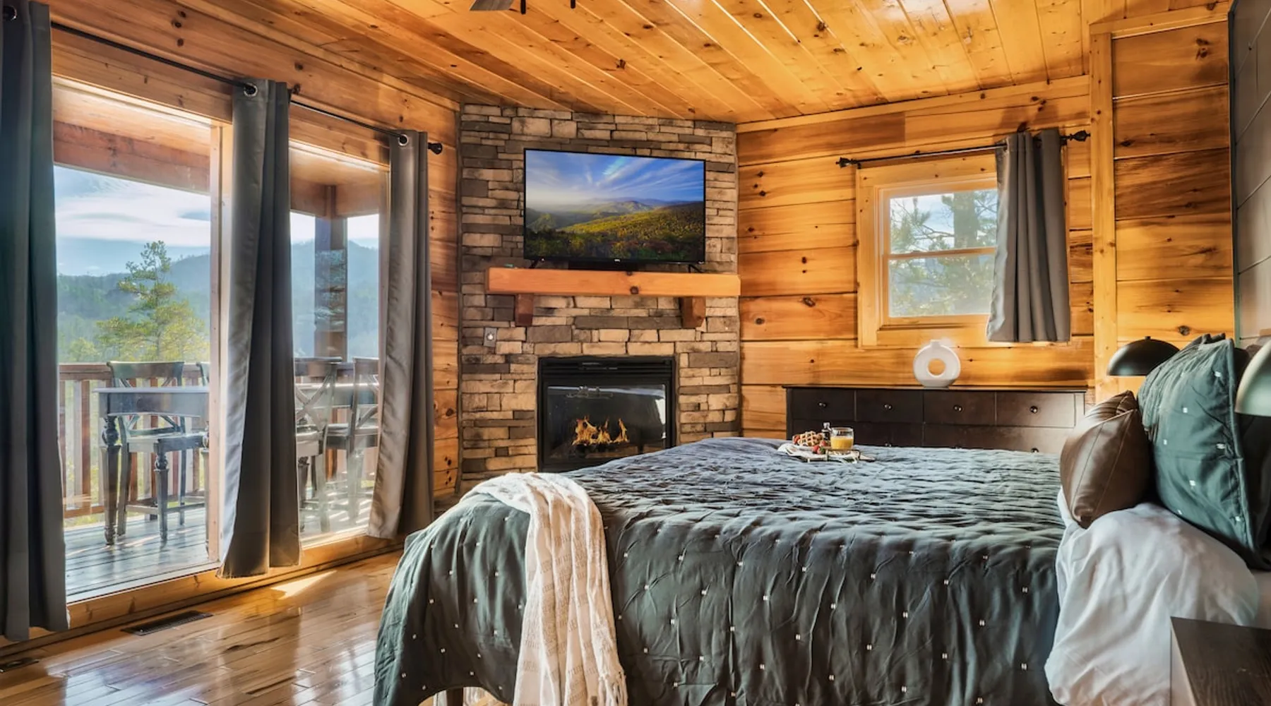 Beautifully decorated cabin with Cathedral ceilings & Majestic Mountain views from almost every room. This cabin is perfect for families & groups of friends that love to entertain: you will find a theater/movie room, a fire pit outdoor space, an entertainment-packed game room with pool table, foosball, arcade games, a kids teepee filled with toys, a hot tub and 3 relaxing decks with dramatic mountain views. Just a 15 minute drive to Pigeon Forge Parkway and 25 minutes to Gatlinburg! The space . Breathtaking Mountain Views . Private Fire pit with views . Theater/Movie room . Hot tub with views . Game Room w/ pool table, foosball & arcade games . 3 King suites / 3.5 bathrooms . 15 min drive to Pigeon Forge Parkway (restaurants, shops, attractions) . 20 min drive to Dollywood, Gatlinburg & the Smoky Mountains National Park entrance . Parking for 5 vehicles . Fully equipped & stocked kitchen . All TV’s with 125+ channels and High Speed WIFI (Starlink) . SuperHost Follow us on FB or Insta: smokymoutainsretreats ► BEDROOMS This three-story cabin accommodates up to 13 guests between the three king-size bedrooms (each with their own en-suite bathroom) and three queen-size sleeper sofas (one in the living room, one in the theater room, one in the game room). You will find a TV in every room. Main level: - 1 Master Bedroom with a King-size bed & en-suite bathroom (sleeps 2) - Great room: Queen-size sleeper Sofa (sleeps 2) Lower level: - 1 Master Bedroom with a King-size bed & en-suite bathroom (sleeps 2) - 1 Master Bedroom with a King-size bed, a full size bed & en-suite bathroom (sleeps 3) - Theater room with a Queen-size sleeper Sofa & shared bathroom (sleeps 2) Upper level: - Game room: Queen-size sleeper Sofa & half bathroom (sleeps 2) See pictures of the floor plan in the listing (last pictures). ► KITCHEN The kitchen is equipped with all the cookware, cutlery, and appliances you need to prepare delicious meals during your stay. Refrigerator, stove, microwave, dishwasher, toaster, blender, tea kettle, Crockpot, Keurig Duo with carafe & single serve pod coffee maker. The dining table comfortably seats eight, and there are four additional chairs so everyone in your group can enjoy meals together. ► OUTDOOR GRILL There is a private Gas Grill. The Grill is connected to a propane tank so you don't have to worry about running out of gas. ► OUTDOOR SPACE After a day of hiking and sightseeing, you have a lot of options to chill: *relax by the fire pit *soak in the private hot tub *kick back in the rocking chairs and enjoy the fresh mountain breeze and impressive Mountain views. ► FIRE PIT Our private fire pit is located right by the cabin and offers nice Mountain views. There are 6 outdoor chairs. It is a gas fire pit and it is connected to a propane tank, so you just have to turn it on and it's ready to enjoy! ► HOME THEATER CINEMA Enjoy some fun movie nights with your private Home Theater cinema! ► GAME ROOM You will love playing in the game room outfitted with a pool table, foosball table, video arcade games. There is also an assortment of board games and a TV to watch your favorite shows/games. ► PETS We are a pet friendly cabin and you can bring up to 3 dogs as long as they are house broken/potty trained. We welcome all breeds of dogs and have no restrictions on weight. The pet fee is $175 for the whole stay for up to 3 dogs (the fee is not per dog). ► INTERNET/CABLE High Speed Wireless Internet Smart TVs in the living room/game room as well as in each bedrooms. ► LAUNDRY Full size washer and dryer. ► AMENITIES Our cleaning service provides start-up supplies including: paper towels, dish soap, dish washer soap, kitchen trash can liners, toilet paper, hand soap and bathroom trash liners. Depending on the length of your stay, you may need to purchase additional items when the initial supply runs out. ► PRIVATE PARKING Flat parking for up to 5 vehicles in the driveway. ► ENTRY The front door is equipped with an electronic keypad, we will send a personalized door code. ► SMOKING No Smoking indoors. You can smoke on the decks though. We will always strive to obtain a 5-star ★★★★★ review from all our guest and can’t wait to host your next holidays and make them UNFORGETTABLE! *** Please favorite the property by clicking "save" or "heart shape" in the upper right-hand corner, this will help you find it again and share with others *** Guest access Guests will enjoy the entire cabin/private hot tub/fire pit. Other things to note For security reasons, we have placed 1 outside camera. It is located on the porch facing the entrance door. Wyze camera in place and actively recording. Wyze camera is activated by motion and will record anyone that walks in front of them. These recordings are saved and can be reviewed and shared with the booking platform. If we believe that house rules are being violated, we have the ability to access these cameras in real time. Please remember that you are staying in our home away from home. Please treat our cabin with respect. "Out of our control" problems could arise, please note we will do everything in our power to resolve any issue ASAP, as your comfort means everything to us.