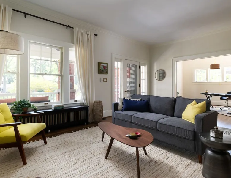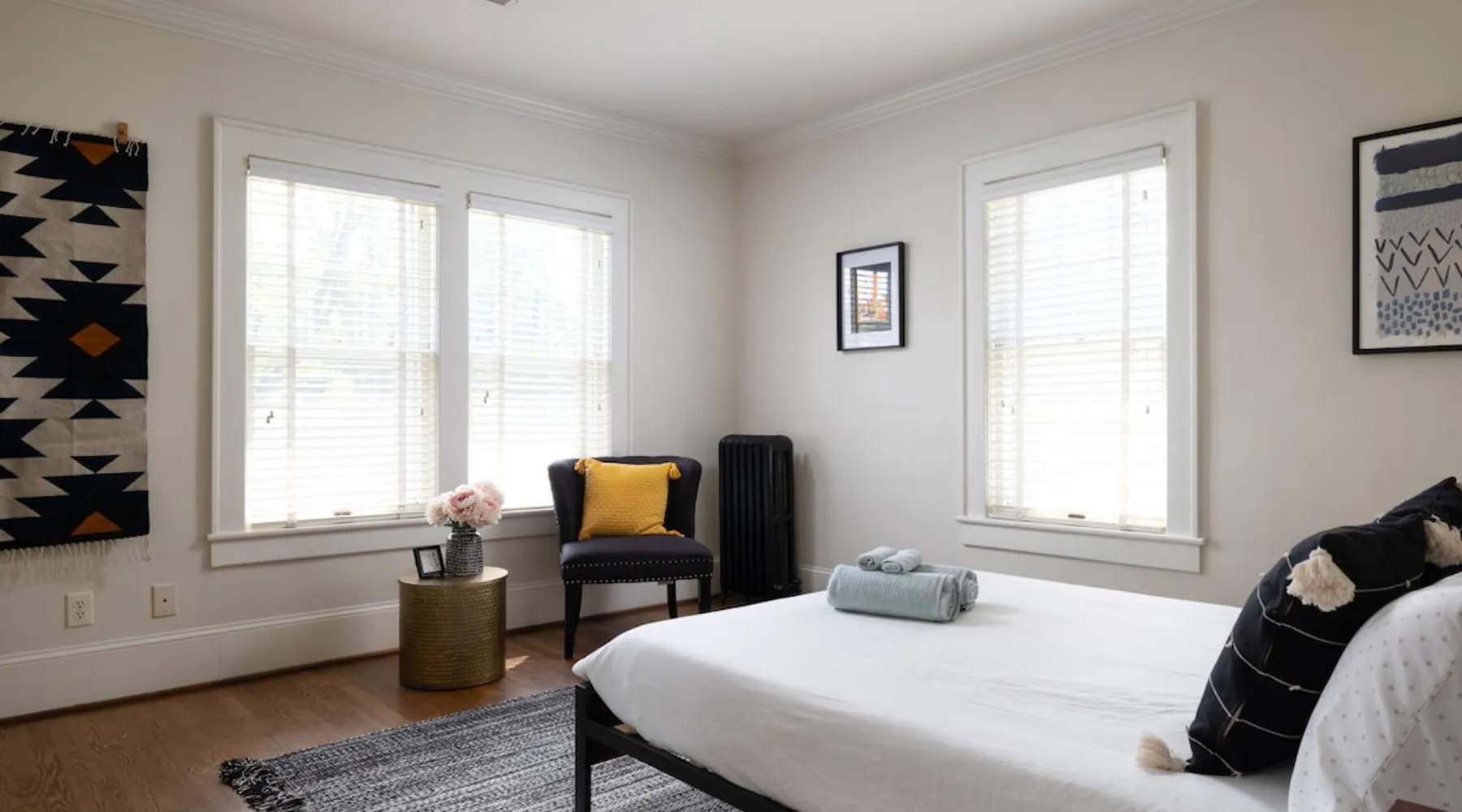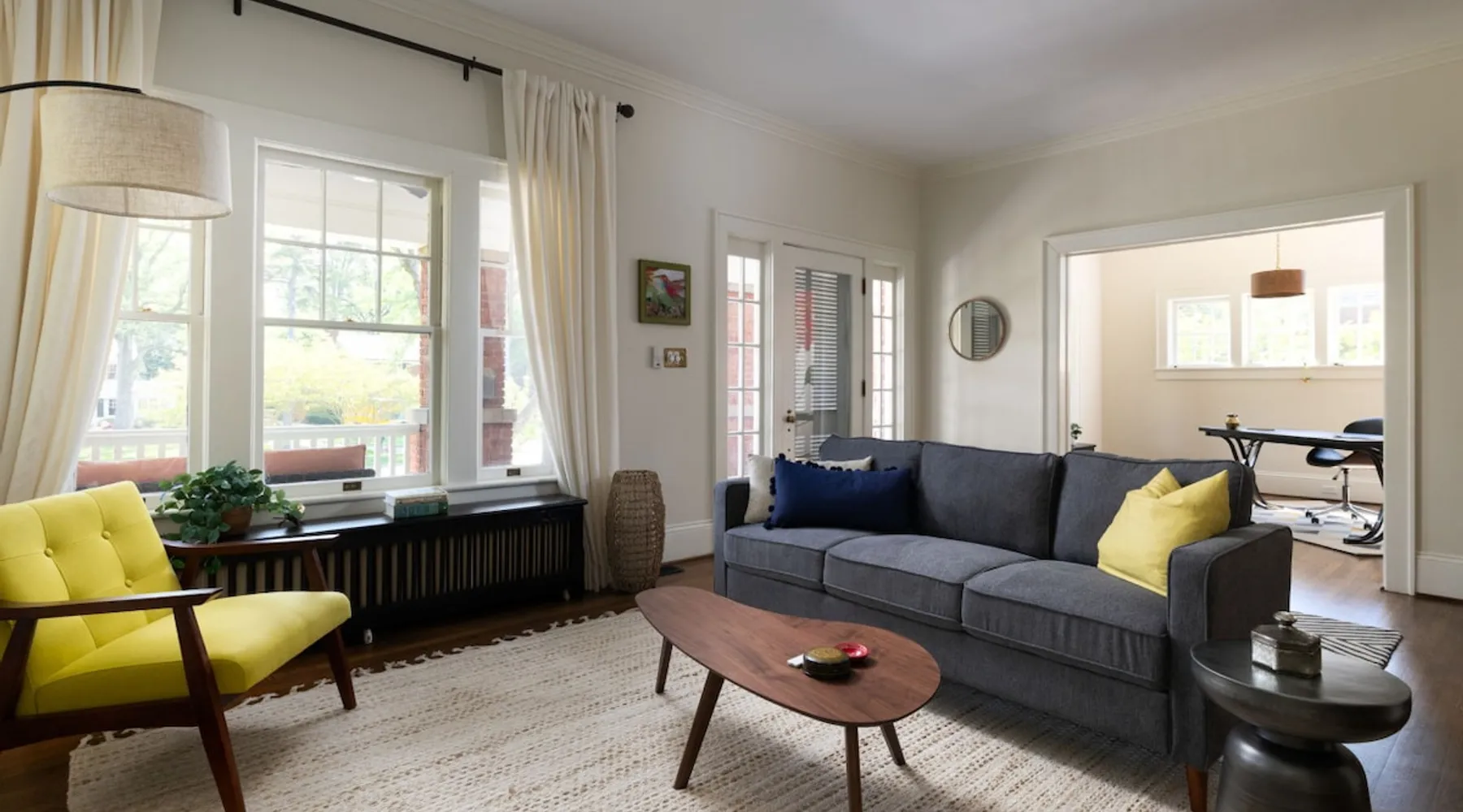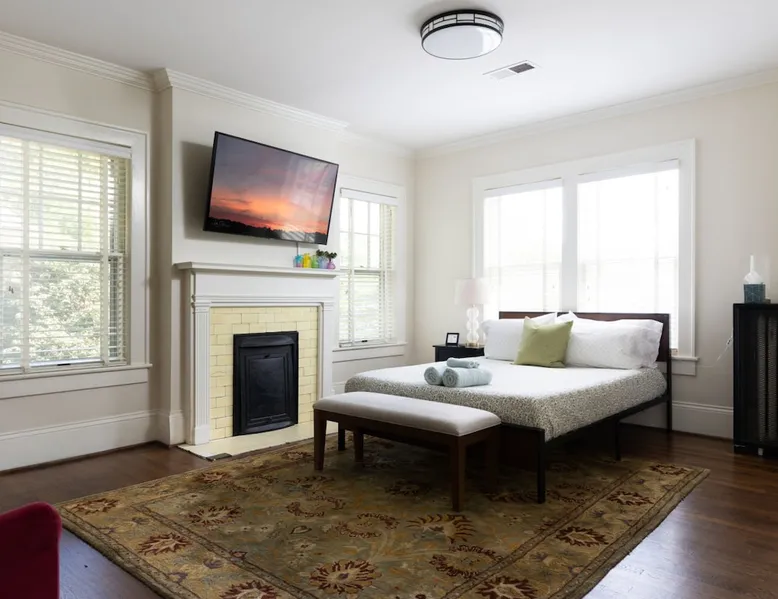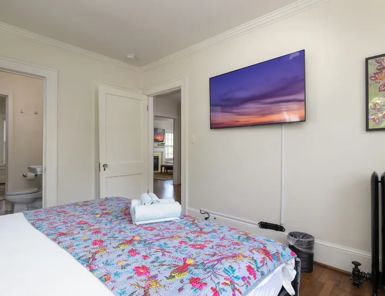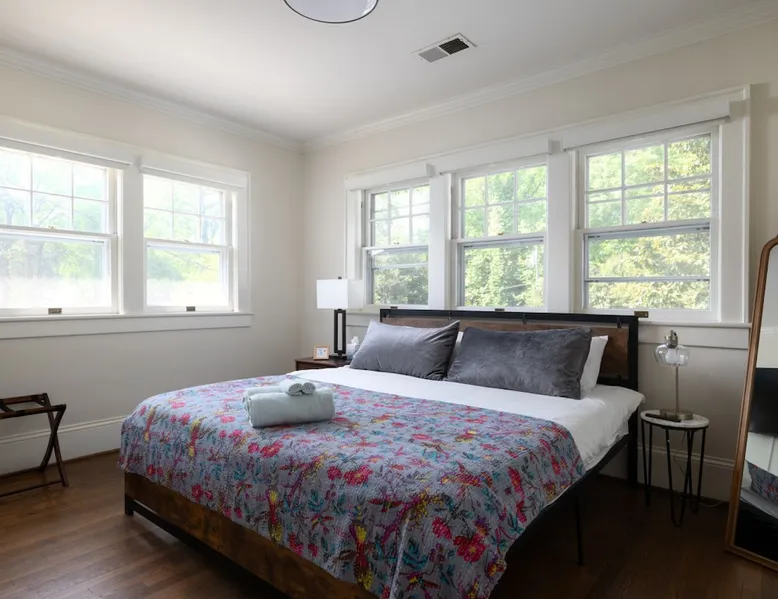 A Spacious Floorplan with Additional Den & Dedicated Office Space with Curved Desktop Monitor -Outdoor Patio Furniture w/Dining Table & BBQ Grill -Large Chefs Kitchen, Stocked with Cooking Supplies -Coffee Bar: Keurig, French Press, Drip (Grounds, Pods, Cream/Sugar Included) -Board Games like Catan, Cards Against Humanity, etc -Convenience Snack Bar (additional fees apply) -10min to Greensboro Coliseum The space KITCHEN: - Large and fully stocked chefs kitchen - Pots, pans, baking sheets, serving dishes - Toaster, blender, waffle maker - Keurig, French press, drip coffee machine (grounds, pods, cream/sugar provided) - Microwave - Drinking glasses - Storage containers for leftovers - Spices for cooking - Brita water filter in fridge DINING - Dining table seats 6-8 (additional chairs are in the Sunroom) - Outdoor dining seats 6 SUNROOM - Breakfast table seats 4 LIVING ROOM & DEN - Games - Bose Soundbars - Tons of room to spread out OFFICE - Spacious Desk - Curved 37in Desktop Monitor ALL bedrooms are upstairs. BEDROOM 1 - King Bed - Flatscreen TV - Full length mirror - Luggage rack - Closet with hangers - Connected full bath, shared bath with bedroom 2 BEDROOM 2 - Queen Bed - Flatscreen TV - Large walk-in closet - Sitting area - Connected full bath, shared with bedroom 1 BEDROOM 3 - Queen bed - Flatscreen TV - Closet with hangers - Sitting area - Connected full bathroom, shared with room 4 BEDROOM 4 - Queen bed - Sitting area - Closet with Baby Bath and Pack n' Play crib - Connected full bathroom, shared with room 3. Nearby, there are plenty of local restaurants and attractions! Steven Tanger Center for the Performing Arts: ~3.4 miles (~10 minutes by car). Moses H. Cone Memorial Hospital: ~2.1 miles (~6 minutes by car). Greensboro Coliseum Complex: ~5.5 miles (~12 minutes by car). Greensboro Science Center: ~3.5 miles (~8 minutes by car). Downtown Greensboro: ~3.3 miles (~9 minutes by car). Upcoming Events in Greensboro: Battle In The 'Boro- NC State vs Tennessee Women's Basketball (Nov 4) Greensboro Opera's First Annual Ovation Gala (Nov 6) UNCG Jazz Ensemble II (Nov 6) 2025 Veterans Parade (Nov 8) Tina- The Tina Turner Musical (Nov 12- 13) Movies in the Park: Sound of Music (Nov 15) A Magical Cirque Christmas (Nov 21) Anne Wilson- The Stars Your (Nov 23) Craftsmen's Christmas Classic Art & Craft Festival (Nov 28- 30) Disney On Ice Presents Jump In! (Dec 4- 7) The Nutcracker (Dec 5- 7) Greensboro Ballet: The Nutcracker (Dec 11- 14) Greensboro Ballet: Tea with Clara (Dec 13- 14) Dolly Parton's Smoky Mountain Christmas Carol (Dec 17) NC State vs Ole Miss- Men's Basketball (Dec 21) Guest access The main house, back yard, and front yard is accessible. THE GUEST HOUSE is a separate residence, please do not disturb unless you have booked it. The Guesthouse sleeps an additional 2 people but must be booked seperately. Search "Cozy Guesthouse Studio Apartment" for availability