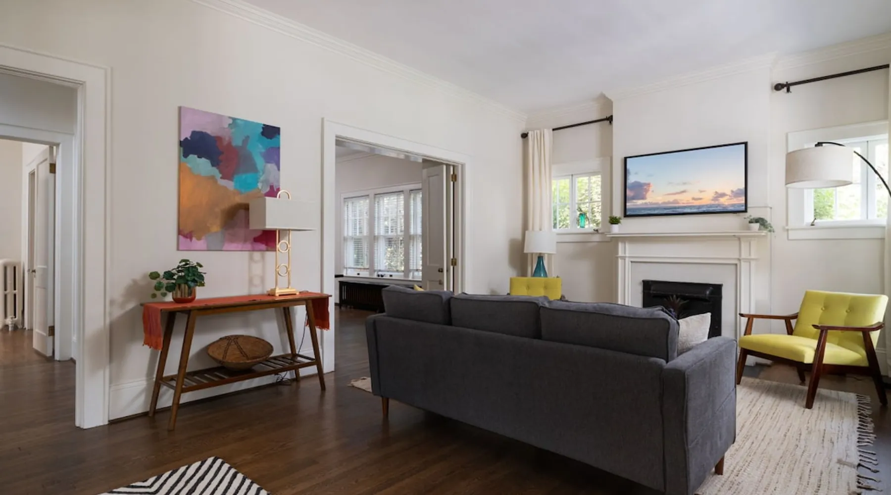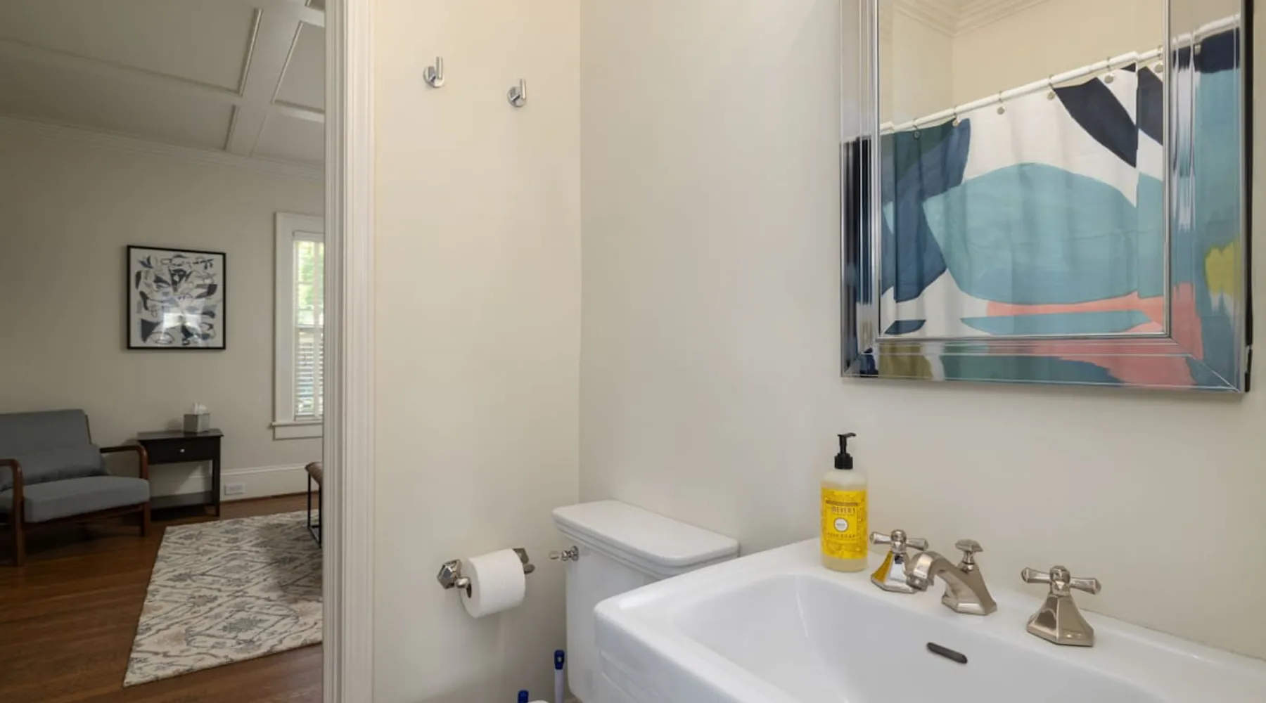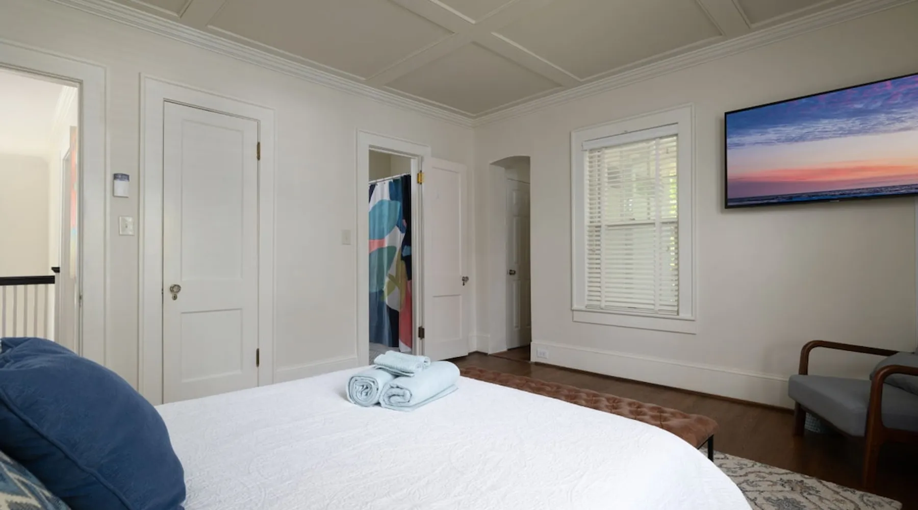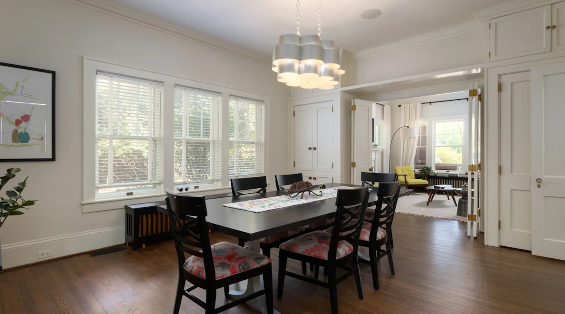 A Spacious Floorplan with Additional Den & Dedicated Office Space with Curved Desktop Monitor -Outdoor Patio Furniture w/Dining Table & BBQ Grill -Large Chefs Kitchen, Stocked with Cooking Supplies -Coffee Bar: Keurig, French Press, Drip (Grounds, Pods, Cream/Sugar Included) -Board Games like Catan, Cards Against Humanity, etc -Convenience Snack Bar (additional fees apply) -10min to Greensboro Coliseum The space KITCHEN: - Large and fully stocked chefs kitchen - Pots, pans, baking sheets, serving dishes - Toaster, blender, waffle maker - Keurig, French press, drip coffee machine (grounds, pods, cream/sugar provided) - Microwave - Drinking glasses - Storage containers for leftovers - Spices for cooking - Brita water filter in fridge DINING - Dining table seats 6-8 (additional chairs are in the Sunroom) - Outdoor dining seats 6 SUNROOM - Breakfast table seats 4 LIVING ROOM & DEN - Games - Bose Soundbars - Tons of room to spread out OFFICE - Spacious Desk - Curved 37in Desktop Monitor ALL bedrooms are upstairs. BEDROOM 1 - King Bed - Flatscreen TV - Full length mirror - Luggage rack - Closet with hangers - Connected full bath, shared bath with bedroom 2 BEDROOM 2 - Queen Bed - Flatscreen TV - Large walk-in closet - Sitting area - Connected full bath, shared with bedroom 1 BEDROOM 3 - Queen bed - Flatscreen TV - Closet with hangers - Sitting area - Connected full bathroom, shared with room 4 BEDROOM 4 - Queen bed - Sitting area - Closet with Baby Bath and Pack n' Play crib - Connected full bathroom, shared with room 3. Nearby, there are plenty of local restaurants and attractions! Steven Tanger Center for the Performing Arts: ~3.4 miles (~10 minutes by car). Moses H. Cone Memorial Hospital: ~2.1 miles (~6 minutes by car). Greensboro Coliseum Complex: ~5.5 miles (~12 minutes by car). Greensboro Science Center: ~3.5 miles (~8 minutes by car). Downtown Greensboro: ~3.3 miles (~9 minutes by car). Upcoming Events in Greensboro: Battle In The 'Boro- NC State vs Tennessee Women's Basketball (Nov 4) Greensboro Opera's First Annual Ovation Gala (Nov 6) UNCG Jazz Ensemble II (Nov 6) 2025 Veterans Parade (Nov 8) Tina- The Tina Turner Musical (Nov 12- 13) Movies in the Park: Sound of Music (Nov 15) A Magical Cirque Christmas (Nov 21) Anne Wilson- The Stars Your (Nov 23) Craftsmen's Christmas Classic Art & Craft Festival (Nov 28- 30) Disney On Ice Presents Jump In! (Dec 4- 7) The Nutcracker (Dec 5- 7) Greensboro Ballet: The Nutcracker (Dec 11- 14) Greensboro Ballet: Tea with Clara (Dec 13- 14) Dolly Parton's Smoky Mountain Christmas Carol (Dec 17) NC State vs Ole Miss- Men's Basketball (Dec 21) Guest access The main house, back yard, and front yard is accessible. THE GUEST HOUSE is a separate residence, please do not disturb unless you have booked it. The Guesthouse sleeps an additional 2 people but must be booked seperately. Search "Cozy Guesthouse Studio Apartment" for availability