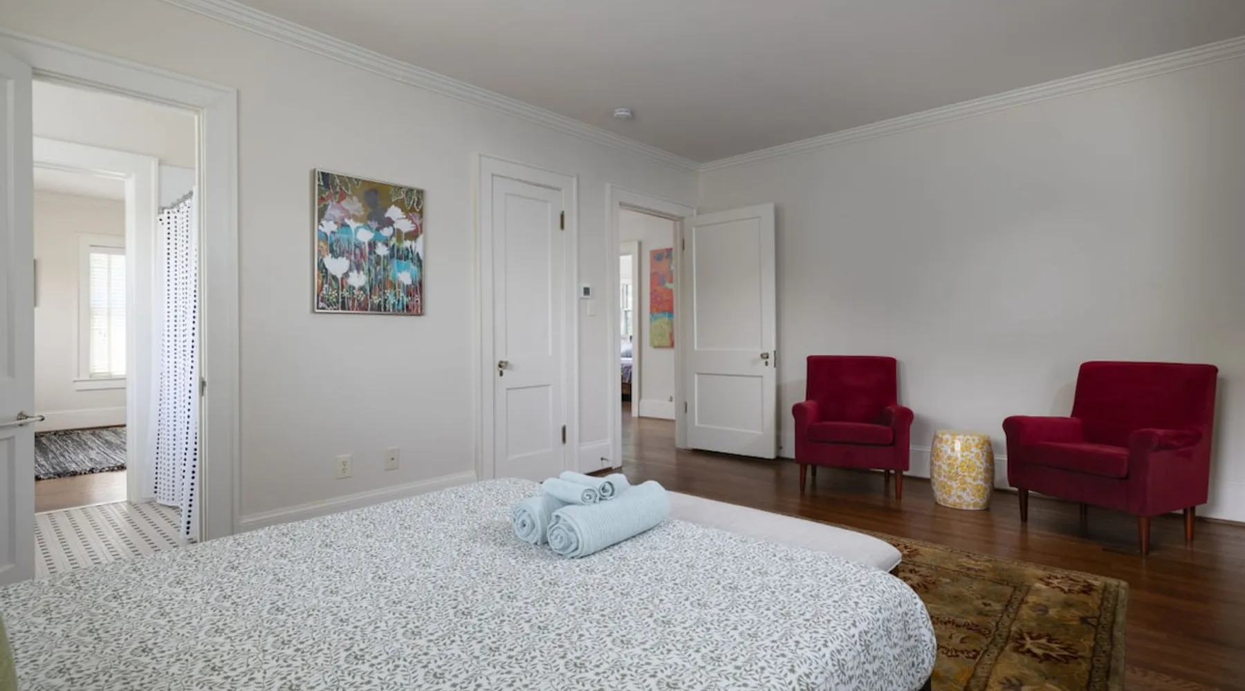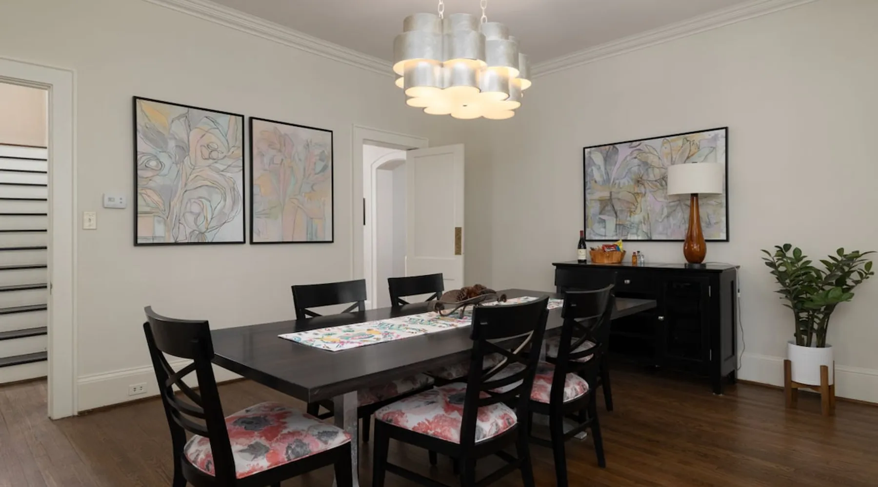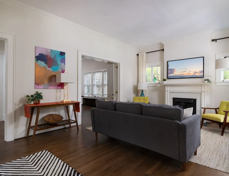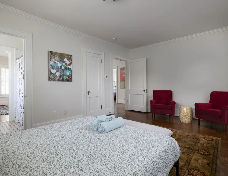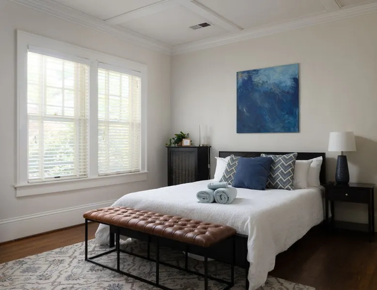 A Spacious Floorplan with Additional Den & Dedicated Office Space with Curved Desktop Monitor -Outdoor Patio Furniture w/Dining Table & BBQ Grill -Large Chefs Kitchen, Stocked with Cooking Supplies -Coffee Bar: Keurig, French Press, Drip (Grounds, Pods, Cream/Sugar Included) -Board Games like Catan, Cards Against Humanity, etc -Convenience Snack Bar (additional fees apply) -10min to Greensboro Coliseum The space KITCHEN: - Large and fully stocked chefs kitchen - Pots, pans, baking sheets, serving dishes - Toaster, blender, waffle maker - Keurig, French press, drip coffee machine (grounds, pods, cream/sugar provided) - Microwave - Drinking glasses - Storage containers for leftovers - Spices for cooking - Brita water filter in fridge DINING - Dining table seats 6-8 (additional chairs are in the Sunroom) - Outdoor dining seats 6 SUNROOM - Breakfast table seats 4 LIVING ROOM & DEN - Games - Bose Soundbars - Tons of room to spread out OFFICE - Spacious Desk - Curved 37in Desktop Monitor ALL bedrooms are upstairs. BEDROOM 1 - King Bed - Flatscreen TV - Full length mirror - Luggage rack - Closet with hangers - Connected full bath, shared bath with bedroom 2 BEDROOM 2 - Queen Bed - Flatscreen TV - Large walk-in closet - Sitting area - Connected full bath, shared with bedroom 1 BEDROOM 3 - Queen bed - Flatscreen TV - Closet with hangers - Sitting area - Connected full bathroom, shared with room 4 BEDROOM 4 - Queen bed - Sitting area - Closet with Baby Bath and Pack n' Play crib - Connected full bathroom, shared with room 3. Nearby, there are plenty of local restaurants and attractions! Steven Tanger Center for the Performing Arts: ~3.4 miles (~10 minutes by car). Moses H. Cone Memorial Hospital: ~2.1 miles (~6 minutes by car). Greensboro Coliseum Complex: ~5.5 miles (~12 minutes by car). Greensboro Science Center: ~3.5 miles (~8 minutes by car). Downtown Greensboro: ~3.3 miles (~9 minutes by car). Upcoming Events in Greensboro: Battle In The 'Boro- NC State vs Tennessee Women's Basketball (Nov 4) Greensboro Opera's First Annual Ovation Gala (Nov 6) UNCG Jazz Ensemble II (Nov 6) 2025 Veterans Parade (Nov 8) Tina- The Tina Turner Musical (Nov 12- 13) Movies in the Park: Sound of Music (Nov 15) A Magical Cirque Christmas (Nov 21) Anne Wilson- The Stars Your (Nov 23) Craftsmen's Christmas Classic Art & Craft Festival (Nov 28- 30) Disney On Ice Presents Jump In! (Dec 4- 7) The Nutcracker (Dec 5- 7) Greensboro Ballet: The Nutcracker (Dec 11- 14) Greensboro Ballet: Tea with Clara (Dec 13- 14) Dolly Parton's Smoky Mountain Christmas Carol (Dec 17) NC State vs Ole Miss- Men's Basketball (Dec 21) Guest access The main house, back yard, and front yard is accessible. THE GUEST HOUSE is a separate residence, please do not disturb unless you have booked it. The Guesthouse sleeps an additional 2 people but must be booked seperately. Search "Cozy Guesthouse Studio Apartment" for availability