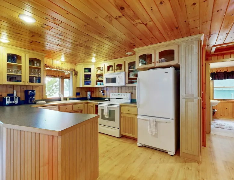 The space Starry Nights Camp Aptly named for its spectacular star-filled skies, Starry Nights Camp offers a peaceful, authentic glimpse of Maine's quiet beauty. Here on the shore of North Pond in Smithfield, you'll have your very own sandy beach, and all the time in the world to fish for white perch, chain pickerel, and smallmouth and largemouth bass. This waterfront home sits near the end of its lane on the lake's south shore, with sweeping, northwest-facing views that are particularly special at sunset. The gorgeous setting is on display at every turn, both outside among the trees and inside through picture windows that span the width of the house. The interior is full of classic cabin atmosphere, from the wood paneling adorning the walls and ceilings to the decor and textiles inspired by the outdoors. There's ample space to gather and relax, including a living room with leather sofas, a family room with a TV, and a lakefront sunroom where you can dine as a family or escape with a good book. On summer days, sear your fresh catch on the gas grill outside. Come winter, cozy up with a favorite movie as the day's clothes spin in the washer/dryer. Things to Know Check-in time: 4:00 p.m. Check-out time: 10:00 a.m. All guests shall abide by Vacasa’s good neighbor policy and shall not engage in illegal activity. Quiet hours are from 10:00 p.m. to 8:00 a.m. No smoking is permitted anywhere on the premises. No dog(s) are welcome in this home. No other animals are allowed without specific Vacasa approval. Parking notes: There is free parking available for 1 vehicle. Air conditioning is only available in certain parts of the home. Damage waiver: The total cost of your reservation for this Property includes a damage waiver fee which covers you for up to $3,000 of accidental damage to the Property or its contents (such as furniture, fixtures, and appliances) as long as you report the incident to the host prior to checking out. More information can be found from the "Additional rules" on the checkout page. Due to local laws or HOA requirements, guests must be at least 25 years of age to book. Guests under 25 must be accompanied by a parent or legal guardian for the duration of the reservation.