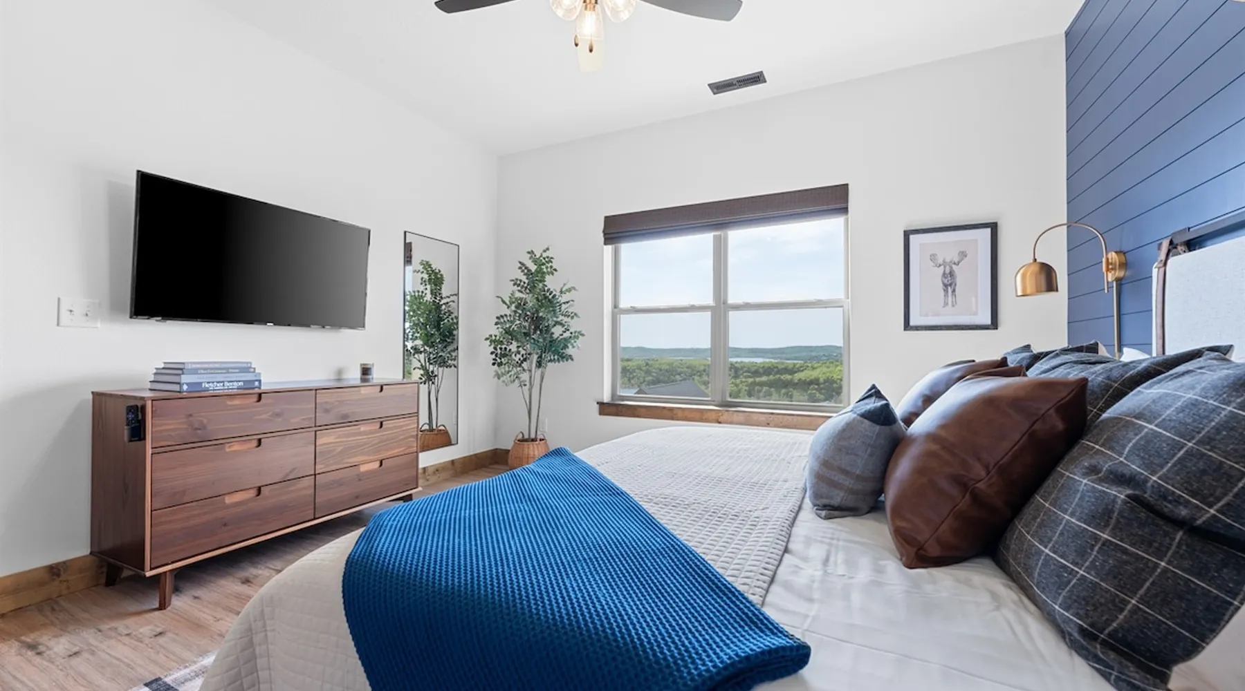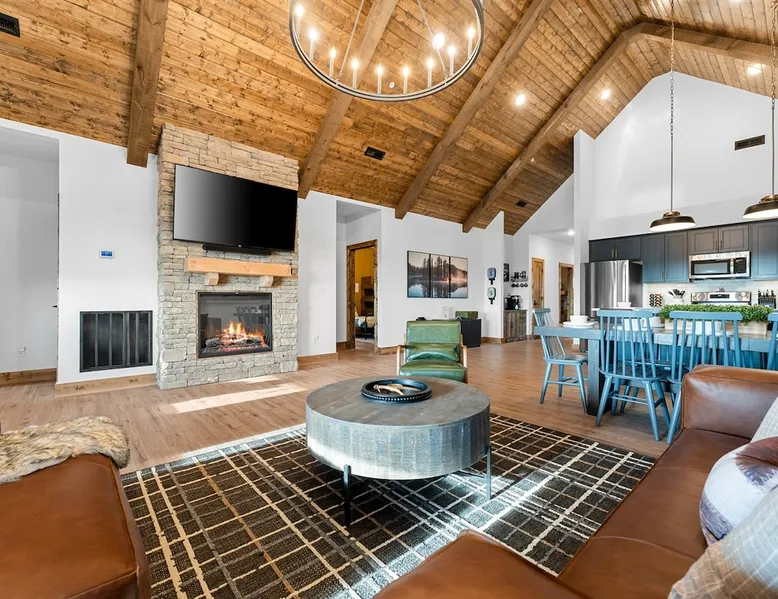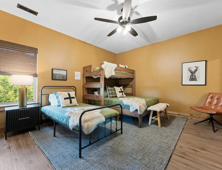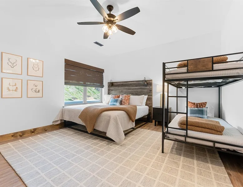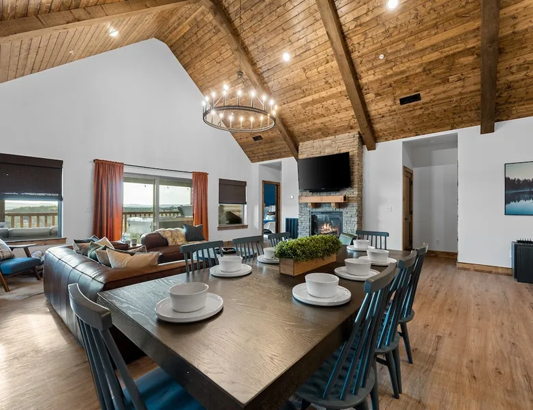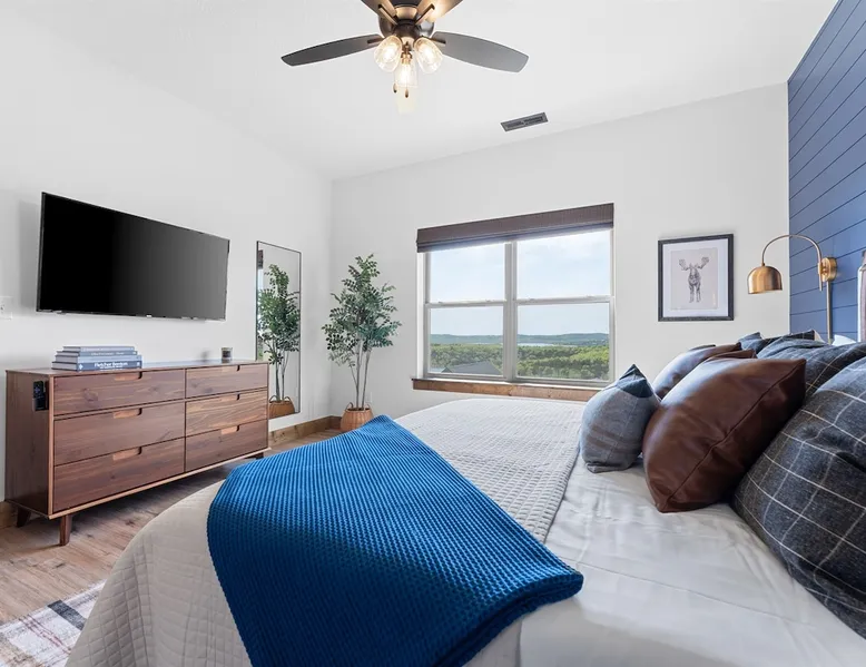 NEW 2024 Luxury Cabin in Branson! 🎉 FREE NFL+ with REDZONE CHRISTMAS DECOR GOING UP NOVEMBER 1ST. Inquire for photos Escape to paradise at our stunning 4BR/4BA Summer Bay cabin! Sleep 12 in rustic elegance with a private hot tub and breathtaking lake views from the balcony. Just steps from Table Rock Lake's glistening waters and minutes from all Branson has to offer! Enjoy community pools, a pickleball court, and a playground. Your ultimate Ozark retreat awaits - modern luxury meets outdoor The space Key Features: -Single-Story Layout: No stairs for easy access for all ages -Gourmet Kitchen: Fully equipped for delicious meals. -Spacious Dining & Living Area: Open concept for memorable gatherings -Private patio with plush seating, grill, and private 7 person hot tub Outdoor & Community Amenities: Community Pools: 1 indoor & 2 outdoor pools, outdoor hot tubs, lounge chairs Pickleball Court: Court is right below our patio, perfect for cheering on your family and friends. We provide paddles and balls. Lake Access: Trail access for fishing and leisurely strolls (~10 minuntes walk from the house) Standout Amenities: - Pool towels - Pickleball paddles/balls - Coffee/Wine Bar 🍷☕ - EV Charger - High Speed Fiber Internet 🏄♂️ - 65” UHD Roku TV and Soundbar in Living Room 🎥 - Extra pillows and blankets - Room darkening shades in each bedroom - Weber Kettle Grill (please plan to bring your own lighter fluid and charcoal) - Free Parking (4 Spaces) The Elk Estate (Primary Bedroom) ~ King Bed ~ En-suite bathroom ~ Remote work space ~ Fireplace ~ Smart TV w/roku ~ Full length mirror ~ Dresser The Buck Room (Bedroom 2) ~ King bed ~ Twin bunk beds ~ Ensuite bathroom ~ Full length mirror ~ Dresser Jackalope Junction (Bedroom 3) ~ Queen/twin bunk beds ~ Twin bed ~ Ensuite bathroom ~ Full length mirror ~ Smart TV w/roku ~ Dresser Moose Manor (Bedroom 4) ~ King bed ~ Ensuite bathroom ~ Full length mirror ~ Smart TV w/roku ~ Dresser The Attractions - Convenient location, minutes away from Branson's greatest attractions. - Silver Dollar City (13 minutes) - Table Rock Lake - Moonshine Beach (6 minutes) - Aquarium at the Boardwalk (10 minutes) - Dolly Parton's Stampede (13 minutes) - Top of the Rock (21 minutes) - Tanger Outlets (13 minutes) Important Info: - Community playground is located beside the outdoor pool - Outdoor pools are typically open from Memorial Day Weekend to Labor Day Weekend, but may stay open longer if weather permits - Indoor pool will be heated once weather cools after Labor Day - Fire Extinguisher (under kitchen cabinet) - Any smoking indoors will result in a minimum of $500 fine and assessment of deep cleaning required to remove odor Antler Ridge Cabin is the perfect retreat housing everything you need for a memorable trip with friends, family or colleagues! Our concierge team is available by phone to assist with any questions you might have as you prepare to relax and unwind in the Ozarks! Guest access Guests are given a personalized door code for keyless entry.
