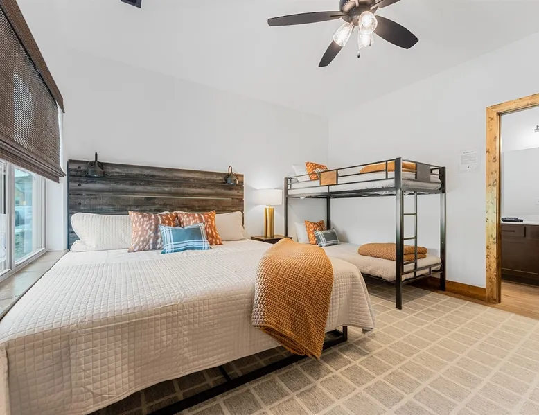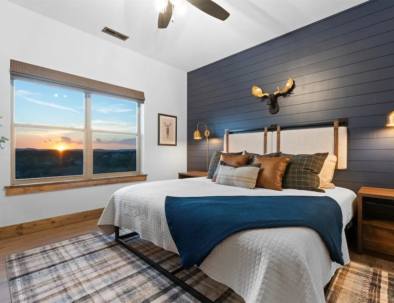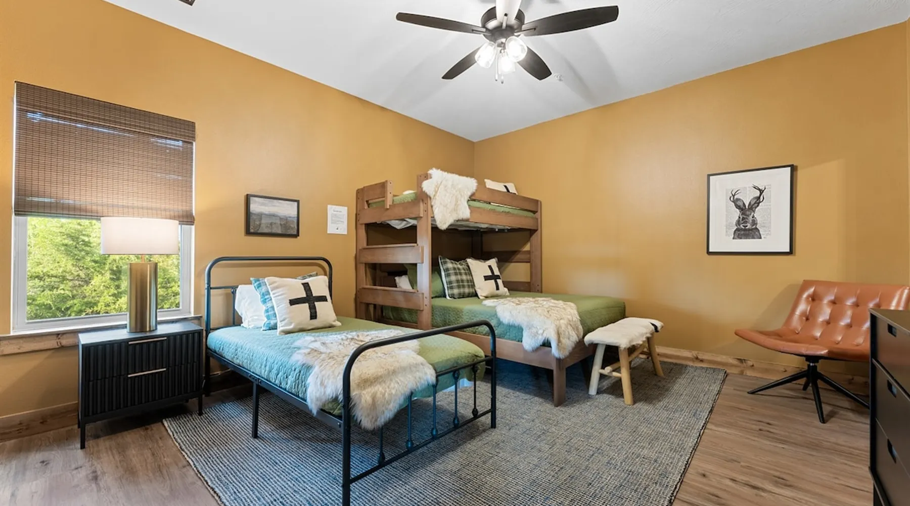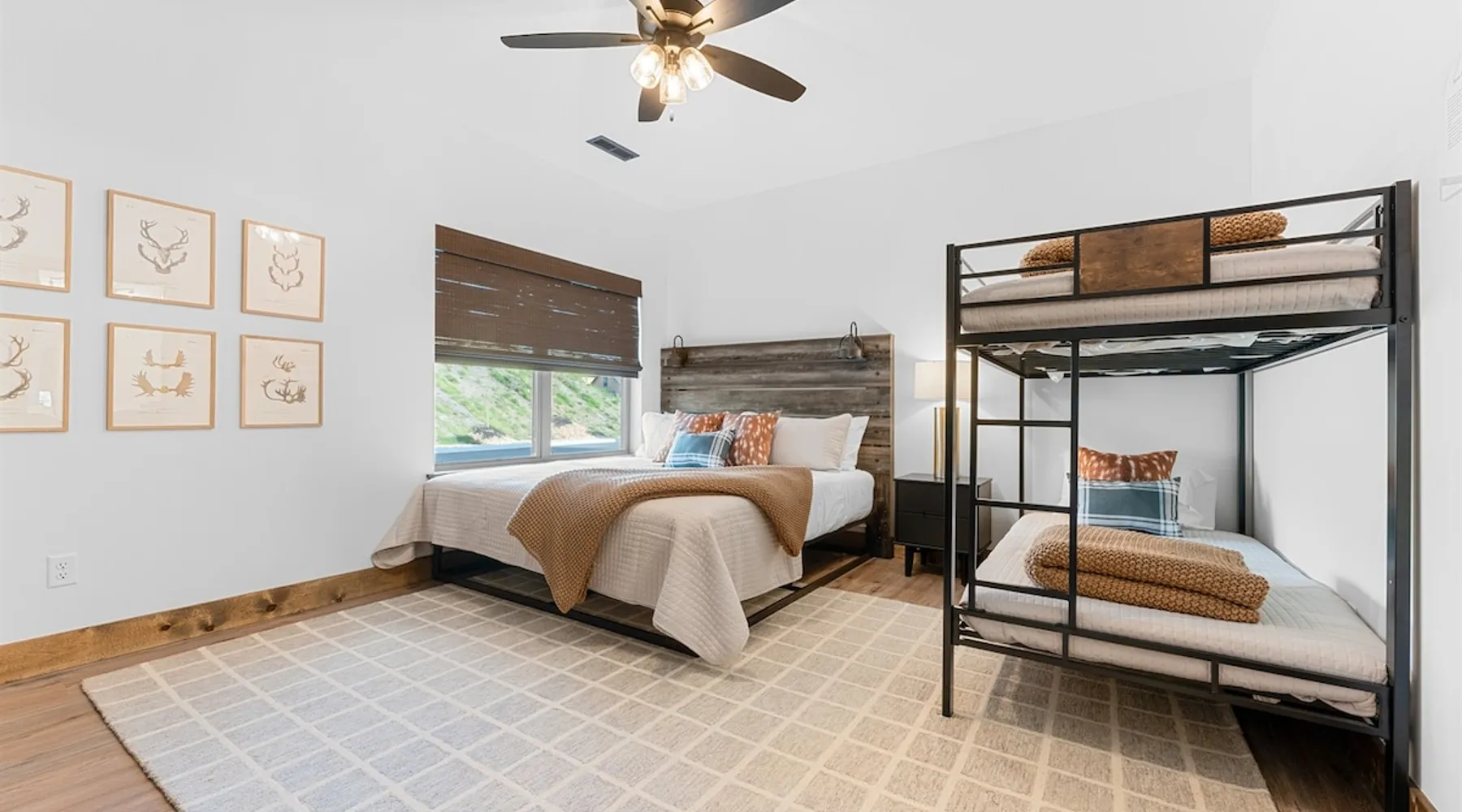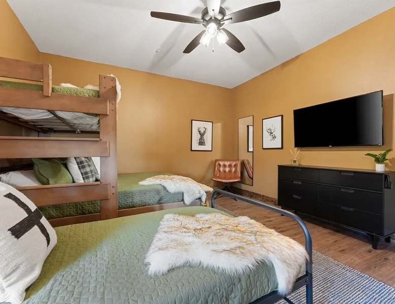 NEW 2024 Luxury Cabin in Branson! 🎉 FREE NFL+ with REDZONE CHRISTMAS DECOR GOING UP NOVEMBER 1ST. Inquire for photos Escape to paradise at our stunning 4BR/4BA Summer Bay cabin! Sleep 12 in rustic elegance with a private hot tub and breathtaking lake views from the balcony. Just steps from Table Rock Lake's glistening waters and minutes from all Branson has to offer! Enjoy community pools, a pickleball court, and a playground. Your ultimate Ozark retreat awaits - modern luxury meets outdoor The space Key Features: -Single-Story Layout: No stairs for easy access for all ages -Gourmet Kitchen: Fully equipped for delicious meals. -Spacious Dining & Living Area: Open concept for memorable gatherings -Private patio with plush seating, grill, and private 7 person hot tub Outdoor & Community Amenities: Community Pools: 1 indoor & 2 outdoor pools, outdoor hot tubs, lounge chairs Pickleball Court: Court is right below our patio, perfect for cheering on your family and friends. We provide paddles and balls. Lake Access: Trail access for fishing and leisurely strolls (~10 minuntes walk from the house) Standout Amenities: - Pool towels - Pickleball paddles/balls - Coffee/Wine Bar 🍷☕ - EV Charger - High Speed Fiber Internet 🏄♂️ - 65” UHD Roku TV and Soundbar in Living Room 🎥 - Extra pillows and blankets - Room darkening shades in each bedroom - Weber Kettle Grill (please plan to bring your own lighter fluid and charcoal) - Free Parking (4 Spaces) The Elk Estate (Primary Bedroom) ~ King Bed ~ En-suite bathroom ~ Remote work space ~ Fireplace ~ Smart TV w/roku ~ Full length mirror ~ Dresser The Buck Room (Bedroom 2) ~ King bed ~ Twin bunk beds ~ Ensuite bathroom ~ Full length mirror ~ Dresser Jackalope Junction (Bedroom 3) ~ Queen/twin bunk beds ~ Twin bed ~ Ensuite bathroom ~ Full length mirror ~ Smart TV w/roku ~ Dresser Moose Manor (Bedroom 4) ~ King bed ~ Ensuite bathroom ~ Full length mirror ~ Smart TV w/roku ~ Dresser The Attractions - Convenient location, minutes away from Branson's greatest attractions. - Silver Dollar City (13 minutes) - Table Rock Lake - Moonshine Beach (6 minutes) - Aquarium at the Boardwalk (10 minutes) - Dolly Parton's Stampede (13 minutes) - Top of the Rock (21 minutes) - Tanger Outlets (13 minutes) Important Info: - Community playground is located beside the outdoor pool - Outdoor pools are typically open from Memorial Day Weekend to Labor Day Weekend, but may stay open longer if weather permits - Indoor pool will be heated once weather cools after Labor Day - Fire Extinguisher (under kitchen cabinet) - Any smoking indoors will result in a minimum of $500 fine and assessment of deep cleaning required to remove odor Antler Ridge Cabin is the perfect retreat housing everything you need for a memorable trip with friends, family or colleagues! Our concierge team is available by phone to assist with any questions you might have as you prepare to relax and unwind in the Ozarks! Guest access Guests are given a personalized door code for keyless entry.