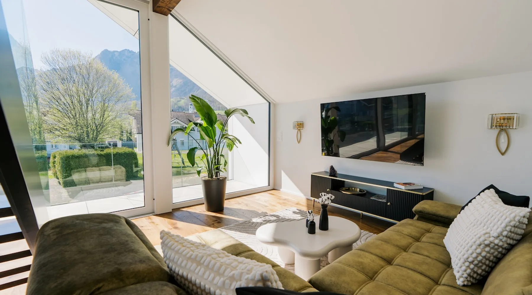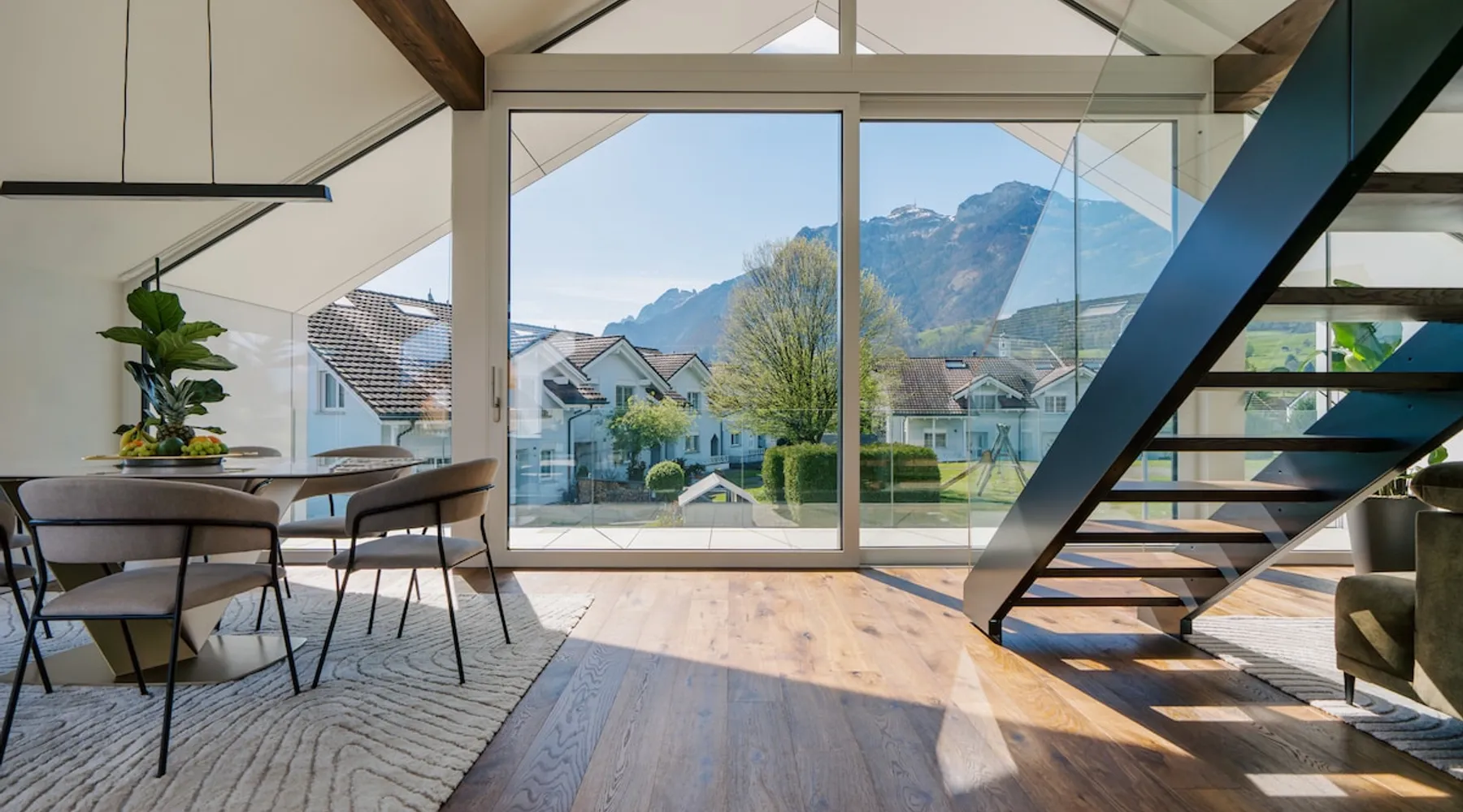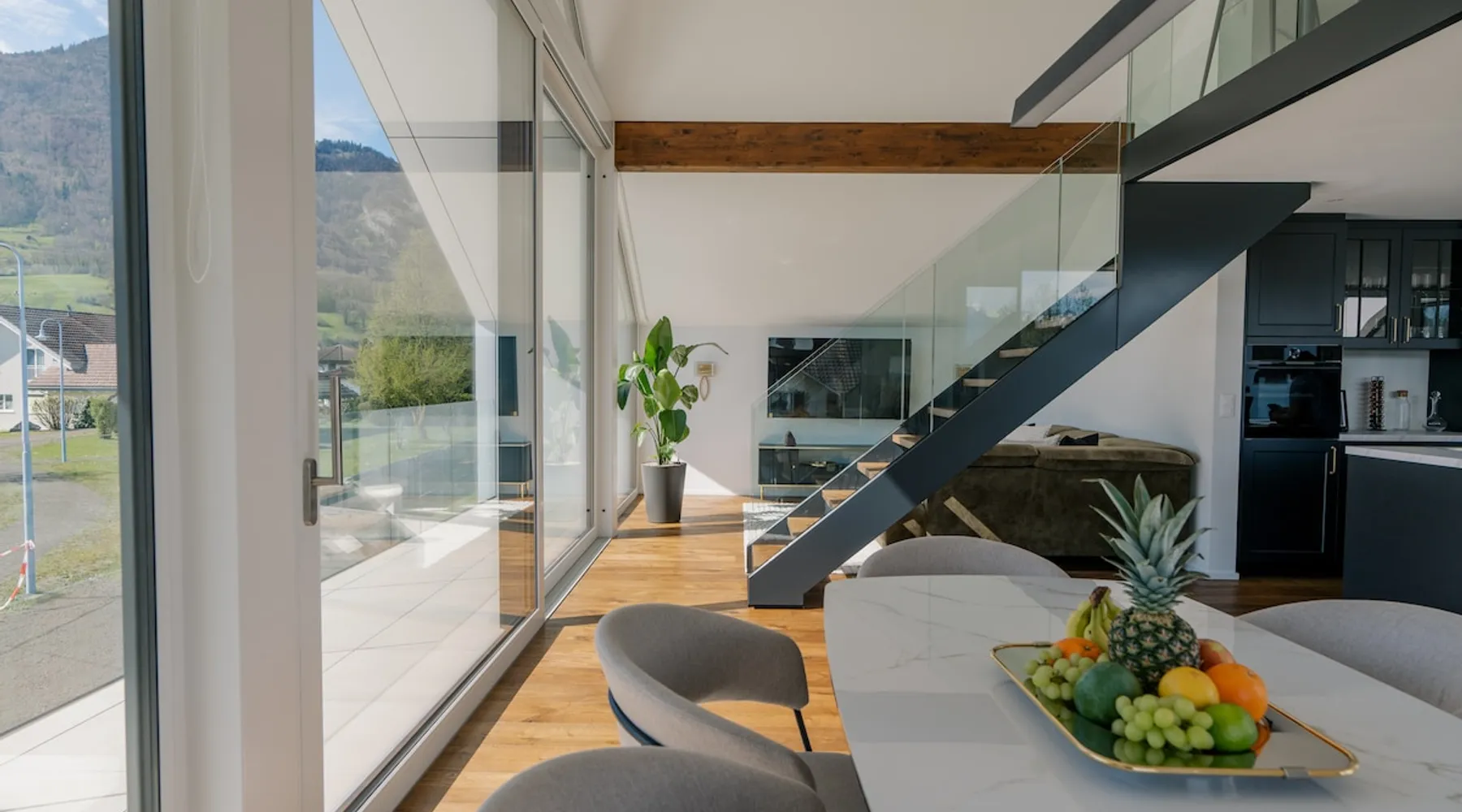 5 minutes from Austria, 10 minutes from Liechtenstein and 20 minutes from Germany this Luxury Apartment on the foot of the Swiss Alps is the perfect vacation home to conquer all four countries in one stay. - Dine where eagles soar at the Äscher Cliff Restaurant, gracing the cover of National Geographic - Immerse yourself in Europe's most abundant thermal spa, Tamina Therme - Visit charming villages - Explore a network of hiking and biking trails - Enjoy a treatment at renowned Alpstein Clinic The space Brand new Build with the highest quality materials. Fully solar powered. Aluminum tiles facade covering rear-ventilated wall design. 3-ply windows for ideal sound and weather insulation. Extra quiet toilets. Furnished in mid century luxury design. Real smoked oak wood floor throughout the entire apartment. Massive glass windows for optimal view of the surrounding Swiss and Austrian Alps. 2 large balconies. ★★★★★ "A 5-star experience through and through!" "If this place is available, book it now you will love it" "We have stayed in many rentals, and Fabian's home is the most luxurious experience!" "A masterpiece of design and comfort" "If you have the opportunity to visit the area, this is a must!" "Definitely 5 star and would give 6 if I could" "We nearly cancelled all plans just to stay in and enjoy the place" Guest access Entire Apartment including dedicated laundry room inside of the apartment (not shown in pictures) Other things to note This luxury home was designed and equipped with the most exquisite materials available. I've poured all of my energy and creativity into making this place my dream home. I hope that my guests will treat it with the same love and respect I show when visiting someone else's beloved home. - Guided Hiking, Mountain Biking and Cycling Tours available. Contact host for pricing - Traditional Swiss Breakfast available upon request. Contact host for pricing IMPORTANT: I'm an asthmatic therefore absolutely no animals are allowed. No service animals either. Thanks for understanding.