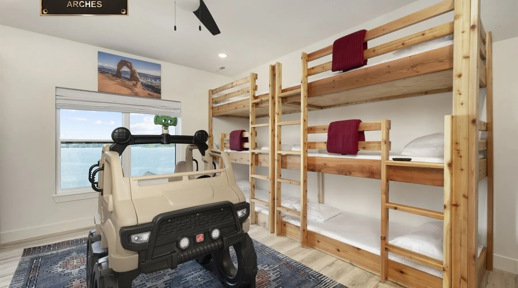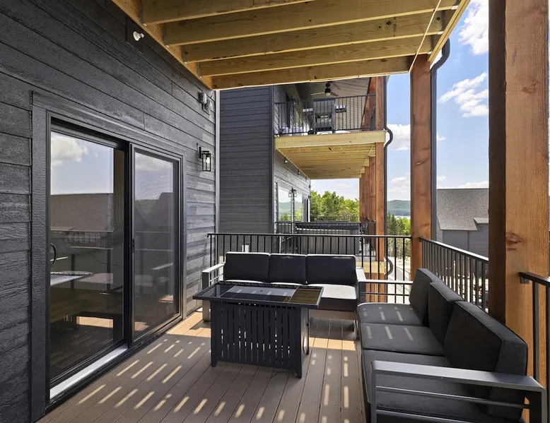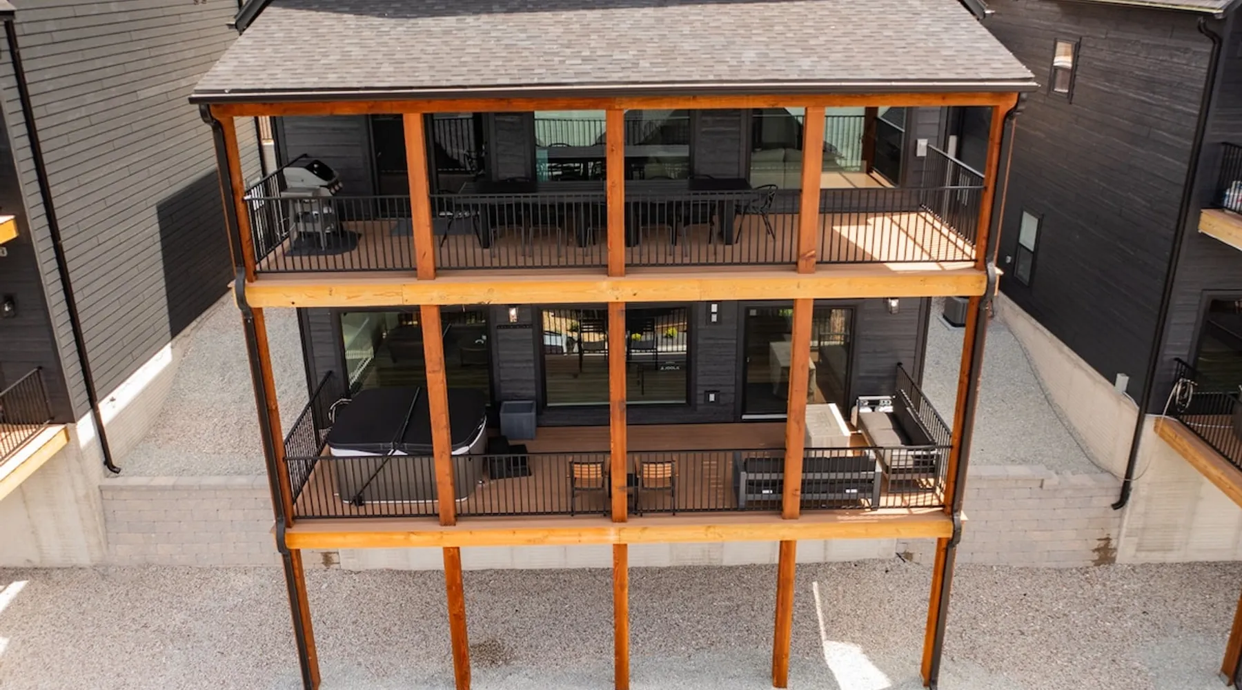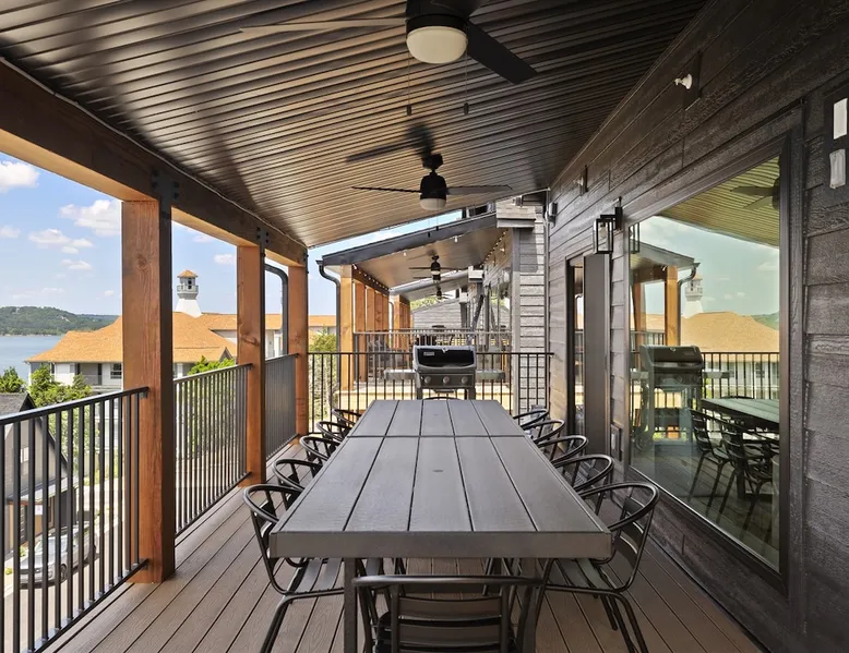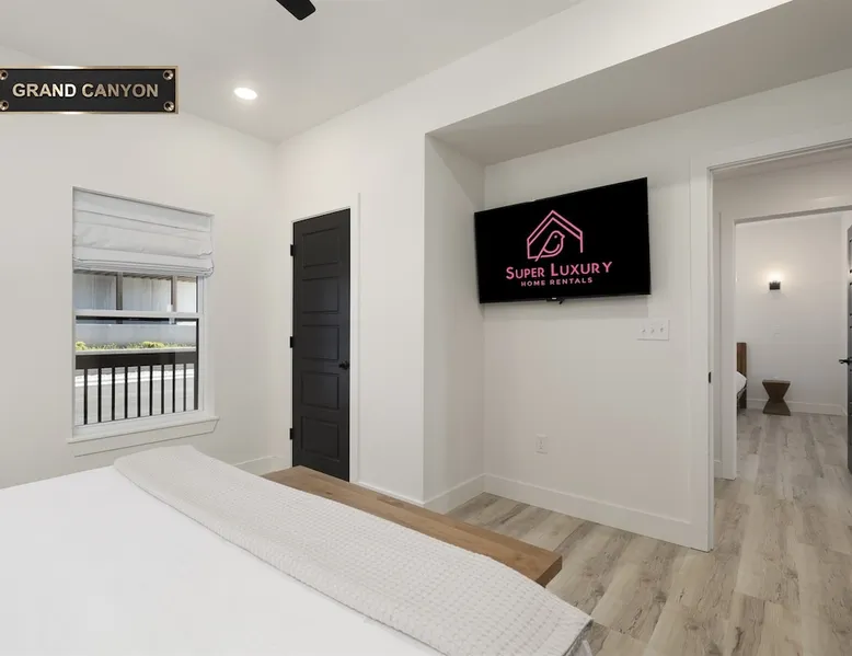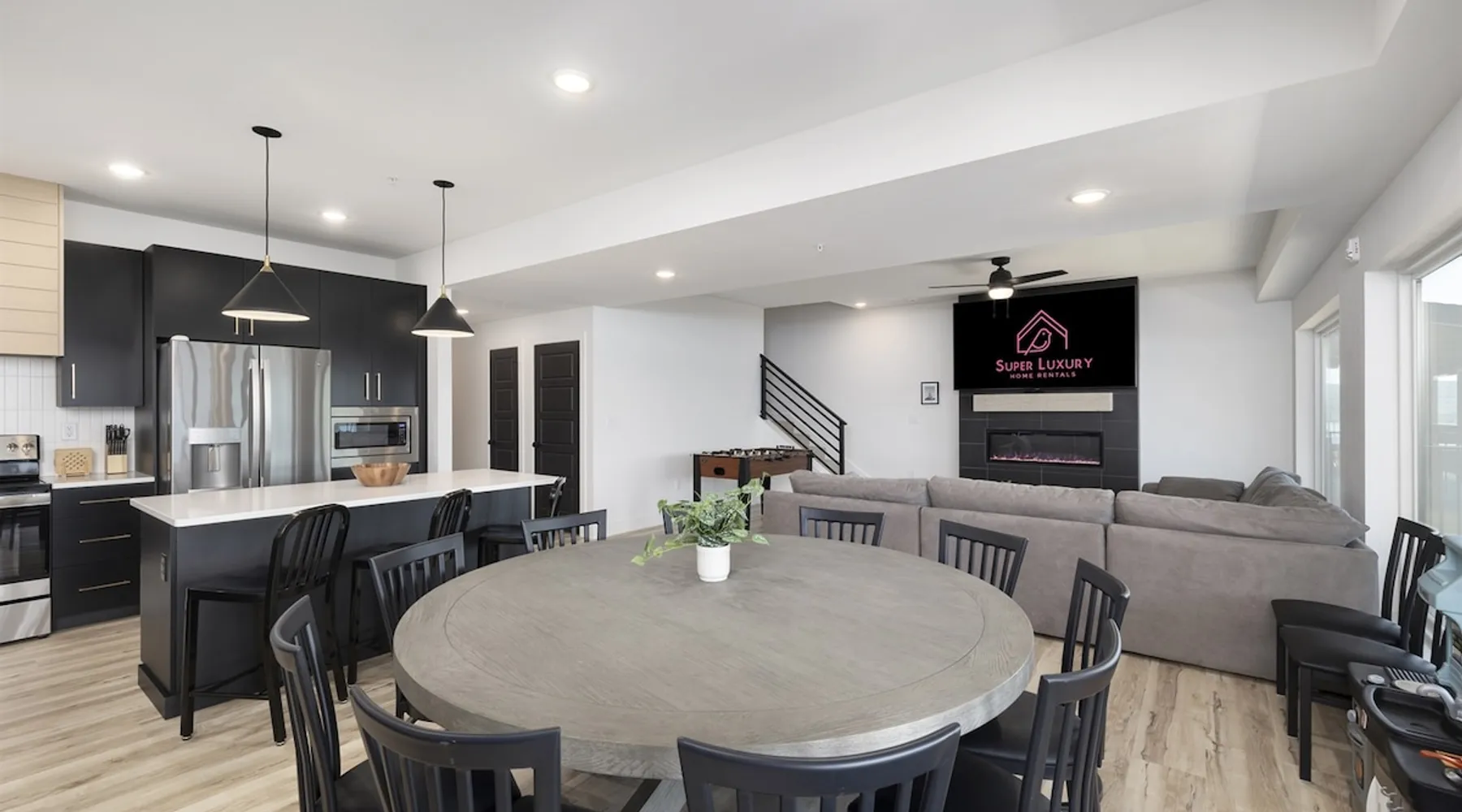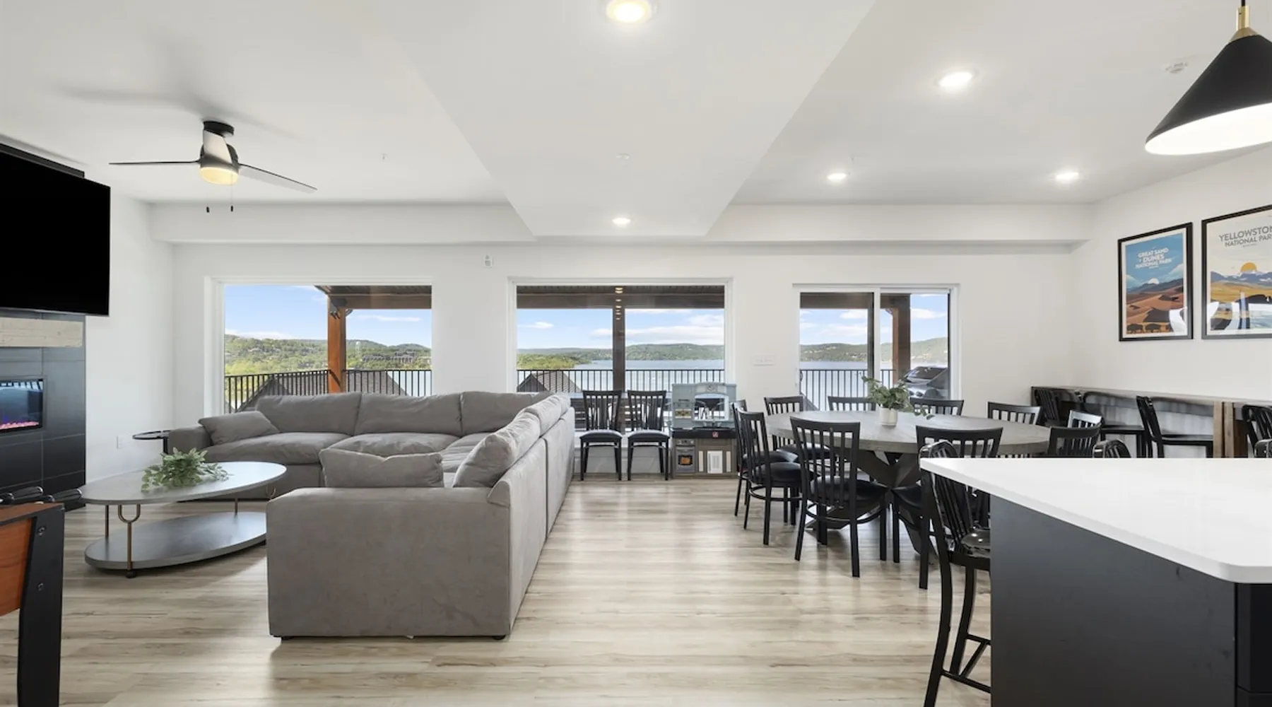 Nature Lodge is ready to accommodate, entertain, & delight gatherings for any occasion sleeping 28 people on beds. The home has amazing lake views that are fully celebrated by the hot tub, outdoor dining & fire table. Indoors the home is ready to entertain w/ 85' TVs, Xbox, classic arcade game, Pop-A-Shot, foosball table, & ping pong table. The 7 bedrooms are perfectly organized: 5 with king size Thuma beds & 2 bedrooms with bunks sleeping 6 and 12. The space Nature Lodge is a 7 bedrooms and 7 bathrooms that sleeps up to 28 guests. Main Level - Front porch is up 2 stairs and has a table with two chairs next to the lighted entrance - Primary bedroom #1 has an en-suite bathroom, a Thuma king bed, a 50" TV, blackout shades, ceiling fan, and a desk & chair - Primary bedroom #2 has en-suite bathroom with access from the living room, a Thuma king bed, a 50" TV, blackout shades, & ceiling fan - Fully stocked kitchen is equipped with all the kitchen utensils, supplies, and appliances to make feeding 28 people a breeze - Dining area has a 6' circle Restoration Hardware table seating 12 and counter height bar stool seating 9 - Spacious living room with large sectional couch, fireplace, 85" TV - Out the sliding glass door to the patio there is 14' of dining tables seating 16 and a Weber bbq grill to enjoy the views. Basement Level - Family & Game Room has foosball table, ping pong table, pop-a-shot, Xbox, and 85" TV - Off the family room there is a wet bar with everything needed to enjoy a libation or two - The outdoor patio has private Aquaterra hot tub accommodating 6 and outdoor sofas surrounding a fire table - Primary bedroom #3 with en-suite bathroom, a Thuma king bed, blackout shades, ceiling fan, and a 50" TV - Primary bedroom #4 with en-suite bathroom, a Thuma king bed, blackout shades, ceiling fan, and a 50" TV - Bedroom #5 with the small bunk room with two triple bunk twin beds sleeping 6, blackout shades, ceiling fan, and a 50" TV Upper Level - Primary bedroom #6 has en-suite bathroom, has a Thuma king bed, deck & chair, blackout shades, ceiling fan, and 50" TV - Bedroom #7 is our large bunk room with 4 triple bunk twin beds sleeping 12, blackout shades, ceiling fan, a 50" TV with en-suite bathroom with tub & shower - In the hall there is a laundry closet with a stackable front load Samsung washer and dryer Additional Home Amenities - Kid friendly including Pack n Play, High Chair, & Kids Dishware - Driveway Parking for up to 3 vehicles - Thoughtful sleep environments: ceiling fans in all bedrooms, white noise machines, and portable fans provided - High speed internet (1Gbps) You must be at least 21 years old to book. Legal agreements and security deposit are managed using an approved API-connected software provider called OwnerRez. The security deposit is a temporary hold on the credit card in case of any damages incurred during the stay. This property allows pets up to 2 dogs with a fee. The maximum guest count must be adhered which is 28 for this property. Guest access The entire home and parking area are included in this rental as well as access to the shared community amenities: indoor pool & outdoor pool. Please make yourself at home and enjoy our property.