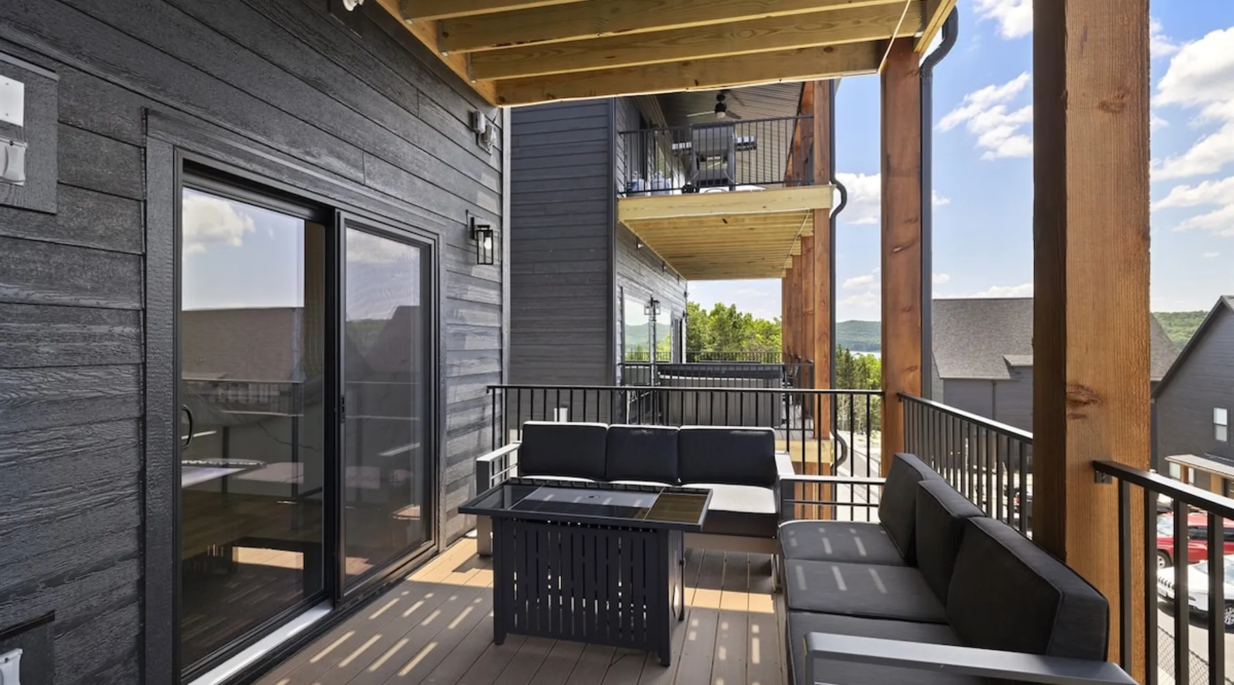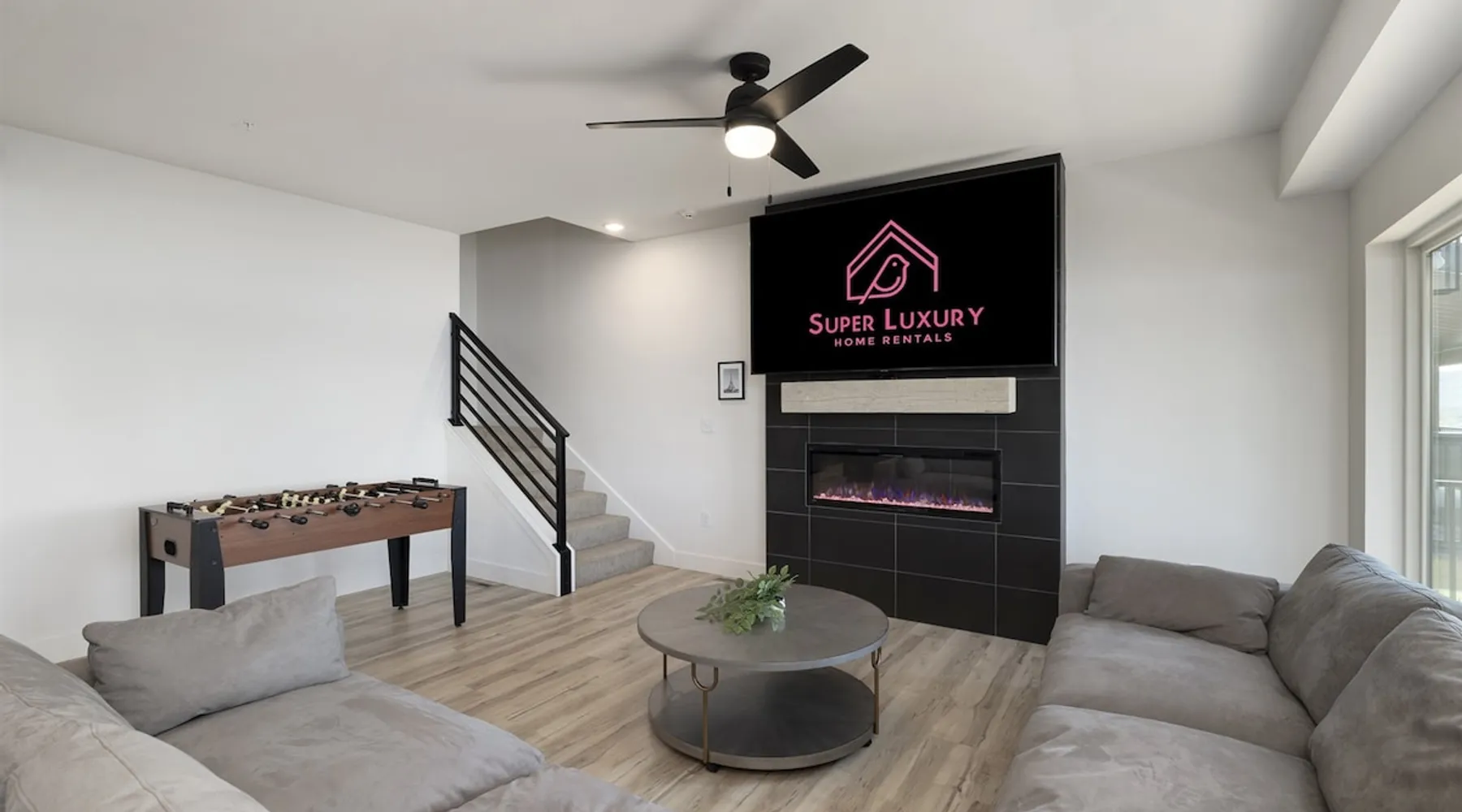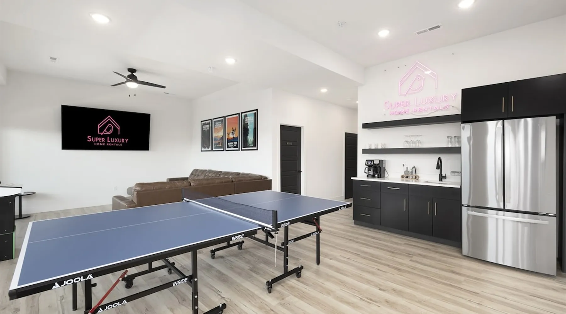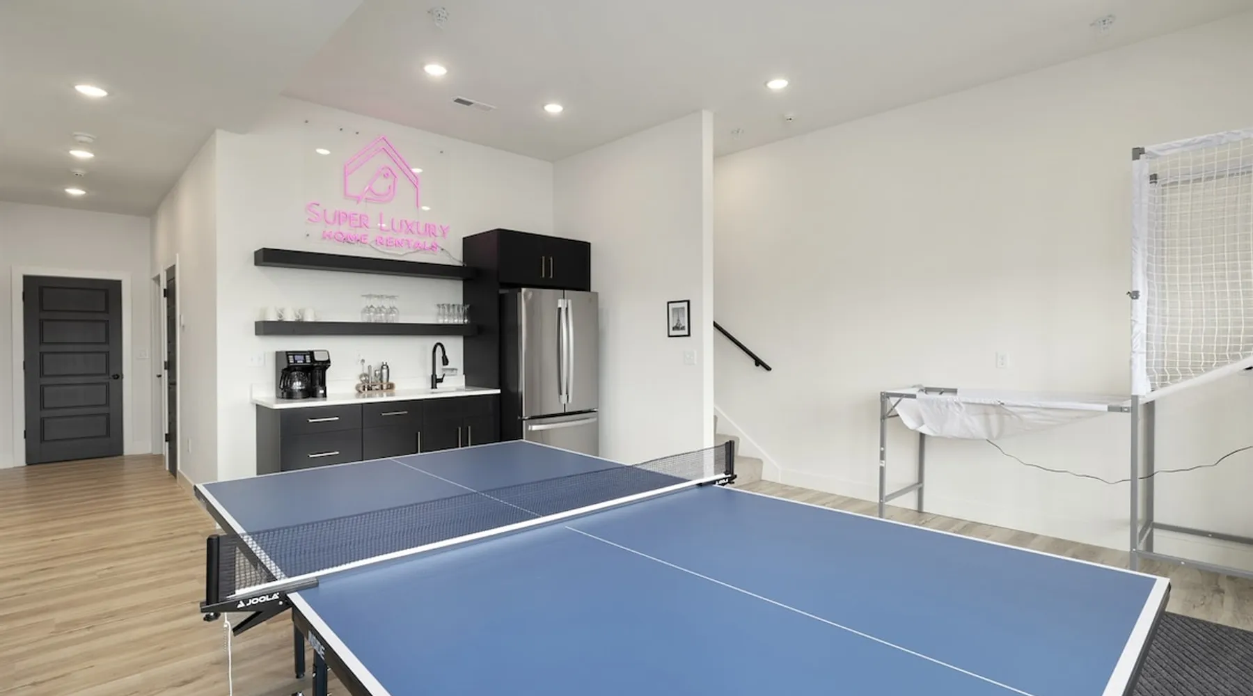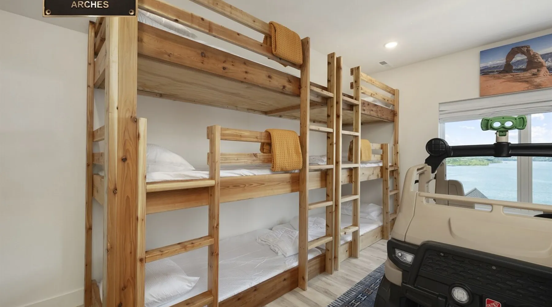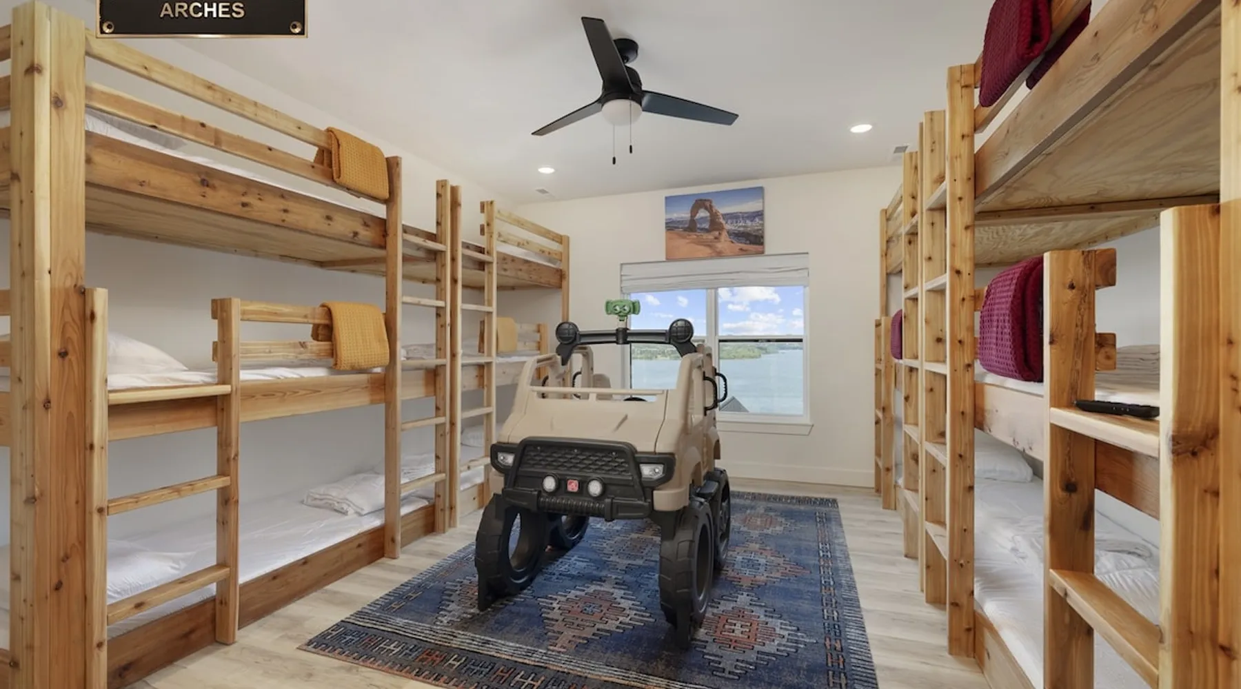 Nature Lodge is ready to accommodate, entertain, & delight gatherings for any occasion sleeping 28 people on beds. The home has amazing lake views that are fully celebrated by the hot tub, outdoor dining & fire table. Indoors the home is ready to entertain w/ 85' TVs, Xbox, classic arcade game, Pop-A-Shot, foosball table, & ping pong table. The 7 bedrooms are perfectly organized: 5 with king size Thuma beds & 2 bedrooms with bunks sleeping 6 and 12. The space Nature Lodge is a 7 bedrooms and 7 bathrooms that sleeps up to 28 guests. Main Level - Front porch is up 2 stairs and has a table with two chairs next to the lighted entrance - Primary bedroom #1 has an en-suite bathroom, a Thuma king bed, a 50" TV, blackout shades, ceiling fan, and a desk & chair - Primary bedroom #2 has en-suite bathroom with access from the living room, a Thuma king bed, a 50" TV, blackout shades, & ceiling fan - Fully stocked kitchen is equipped with all the kitchen utensils, supplies, and appliances to make feeding 28 people a breeze - Dining area has a 6' circle Restoration Hardware table seating 12 and counter height bar stool seating 9 - Spacious living room with large sectional couch, fireplace, 85" TV - Out the sliding glass door to the patio there is 14' of dining tables seating 16 and a Weber bbq grill to enjoy the views. Basement Level - Family & Game Room has foosball table, ping pong table, pop-a-shot, Xbox, and 85" TV - Off the family room there is a wet bar with everything needed to enjoy a libation or two - The outdoor patio has private Aquaterra hot tub accommodating 6 and outdoor sofas surrounding a fire table - Primary bedroom #3 with en-suite bathroom, a Thuma king bed, blackout shades, ceiling fan, and a 50" TV - Primary bedroom #4 with en-suite bathroom, a Thuma king bed, blackout shades, ceiling fan, and a 50" TV - Bedroom #5 with the small bunk room with two triple bunk twin beds sleeping 6, blackout shades, ceiling fan, and a 50" TV Upper Level - Primary bedroom #6 has en-suite bathroom, has a Thuma king bed, deck & chair, blackout shades, ceiling fan, and 50" TV - Bedroom #7 is our large bunk room with 4 triple bunk twin beds sleeping 12, blackout shades, ceiling fan, a 50" TV with en-suite bathroom with tub & shower - In the hall there is a laundry closet with a stackable front load Samsung washer and dryer Additional Home Amenities - Kid friendly including Pack n Play, High Chair, & Kids Dishware - Driveway Parking for up to 3 vehicles - Thoughtful sleep environments: ceiling fans in all bedrooms, white noise machines, and portable fans provided - High speed internet (1Gbps) You must be at least 21 years old to book. Legal agreements and security deposit are managed using an approved API-connected software provider called OwnerRez. The security deposit is a temporary hold on the credit card in case of any damages incurred during the stay. This property allows pets up to 2 dogs with a fee. The maximum guest count must be adhered which is 28 for this property. Guest access The entire home and parking area are included in this rental as well as access to the shared community amenities: indoor pool & outdoor pool. Please make yourself at home and enjoy our property.