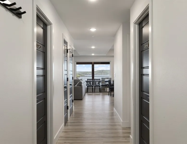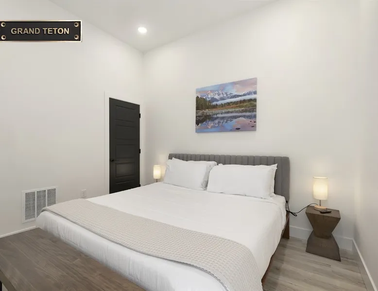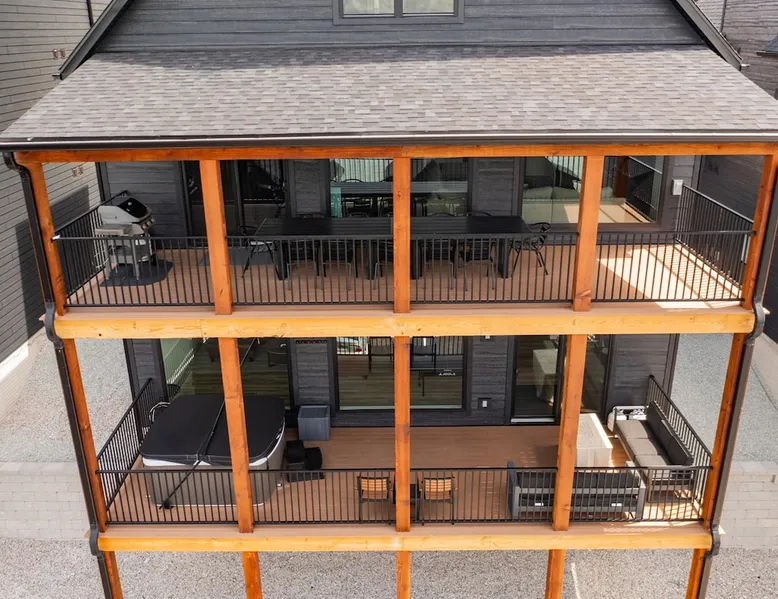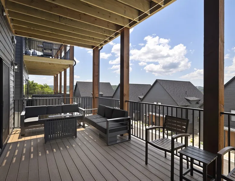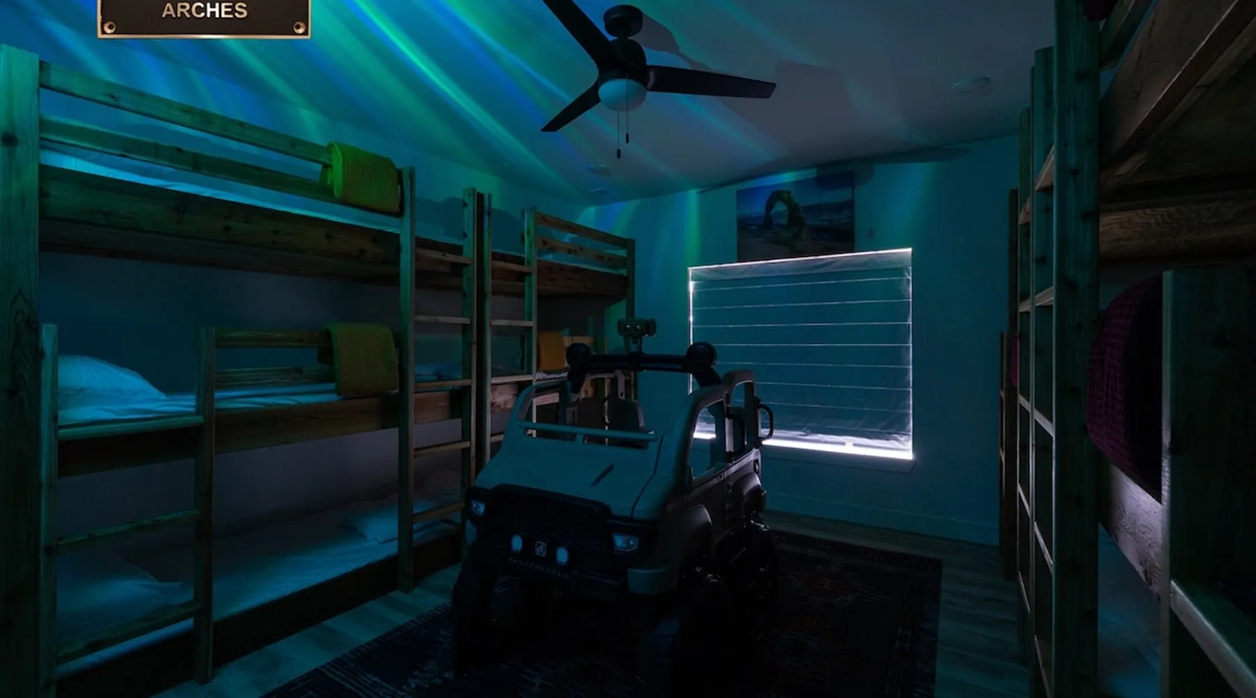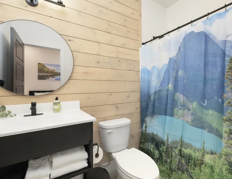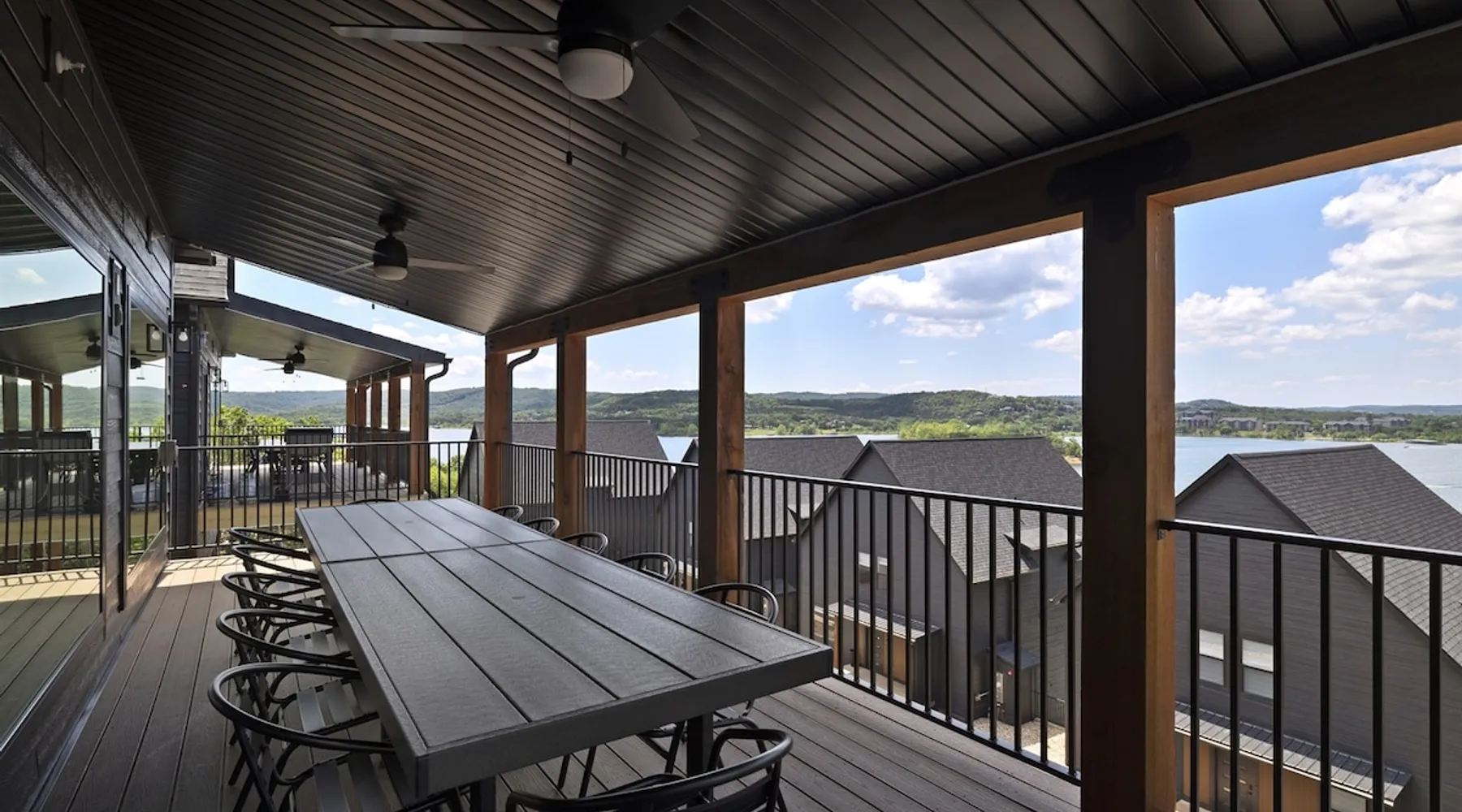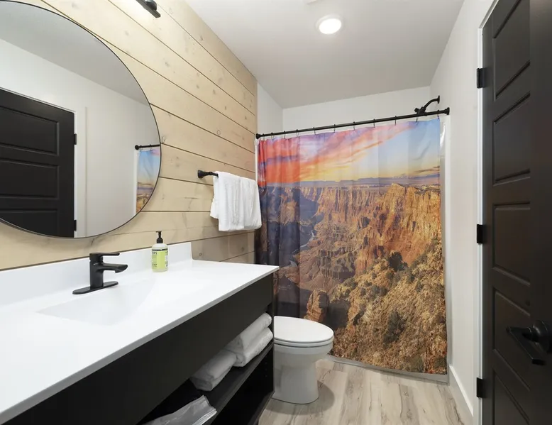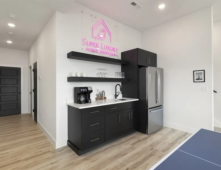 Nature Lodge is ready to accommodate, entertain, & delight gatherings for any occasion sleeping 28 people on beds. The home has amazing lake views that are fully celebrated by the hot tub, outdoor dining & fire table. Indoors the home is ready to entertain w/ 85' TVs, Xbox, classic arcade game, Pop-A-Shot, foosball table, & ping pong table. The 7 bedrooms are perfectly organized: 5 with king size Thuma beds & 2 bedrooms with bunks sleeping 6 and 12. The space Nature Lodge is a 7 bedrooms and 7 bathrooms that sleeps up to 28 guests. Main Level - Front porch is up 2 stairs and has a table with two chairs next to the lighted entrance - Primary bedroom #1 has an en-suite bathroom, a Thuma king bed, a 50" TV, blackout shades, ceiling fan, and a desk & chair - Primary bedroom #2 has en-suite bathroom with access from the living room, a Thuma king bed, a 50" TV, blackout shades, & ceiling fan - Fully stocked kitchen is equipped with all the kitchen utensils, supplies, and appliances to make feeding 28 people a breeze - Dining area has a 6' circle Restoration Hardware table seating 12 and counter height bar stool seating 9 - Spacious living room with large sectional couch, fireplace, 85" TV - Out the sliding glass door to the patio there is 14' of dining tables seating 16 and a Weber bbq grill to enjoy the views. Basement Level - Family & Game Room has foosball table, ping pong table, pop-a-shot, Xbox, and 85" TV - Off the family room there is a wet bar with everything needed to enjoy a libation or two - The outdoor patio has private Aquaterra hot tub accommodating 6 and outdoor sofas surrounding a fire table - Primary bedroom #3 with en-suite bathroom, a Thuma king bed, blackout shades, ceiling fan, and a 50" TV - Primary bedroom #4 with en-suite bathroom, a Thuma king bed, blackout shades, ceiling fan, and a 50" TV - Bedroom #5 with the small bunk room with two triple bunk twin beds sleeping 6, blackout shades, ceiling fan, and a 50" TV Upper Level - Primary bedroom #6 has en-suite bathroom, has a Thuma king bed, deck & chair, blackout shades, ceiling fan, and 50" TV - Bedroom #7 is our large bunk room with 4 triple bunk twin beds sleeping 12, blackout shades, ceiling fan, a 50" TV with en-suite bathroom with tub & shower - In the hall there is a laundry closet with a stackable front load Samsung washer and dryer Additional Home Amenities - Kid friendly including Pack n Play, High Chair, & Kids Dishware - Driveway Parking for up to 3 vehicles - Thoughtful sleep environments: ceiling fans in all bedrooms, white noise machines, and portable fans provided - High speed internet (1Gbps) You must be at least 21 years old to book. Legal agreements and security deposit are managed using an approved API-connected software provider called OwnerRez. The security deposit is a temporary hold on the credit card in case of any damages incurred during the stay. This property allows pets up to 2 dogs with a fee. The maximum guest count must be adhered which is 28 for this property. Guest access The entire home and parking area are included in this rental as well as access to the shared community amenities: indoor pool & outdoor pool. Please make yourself at home and enjoy our property.
