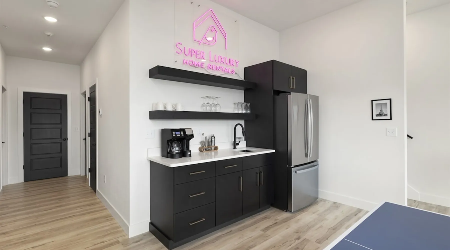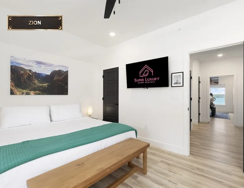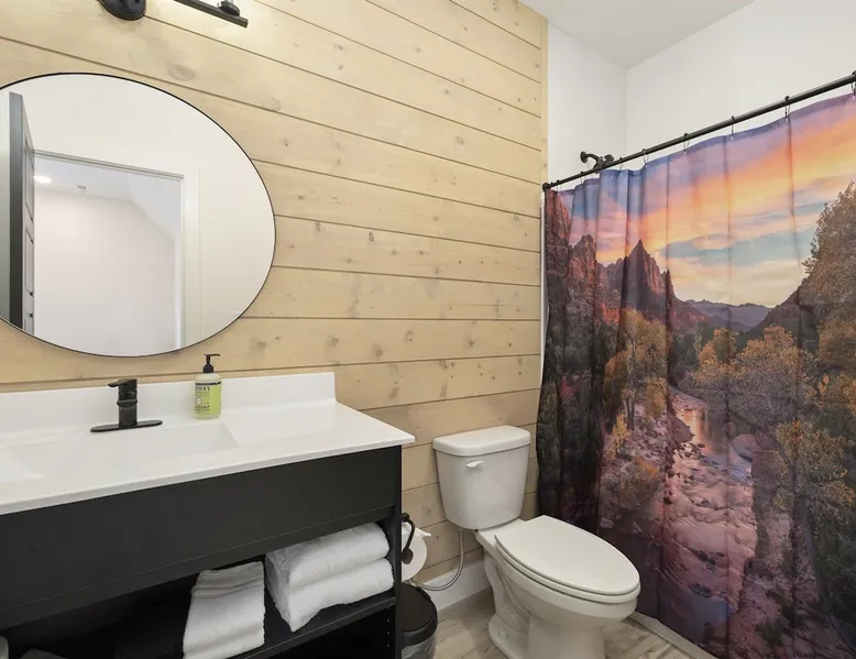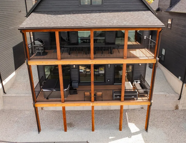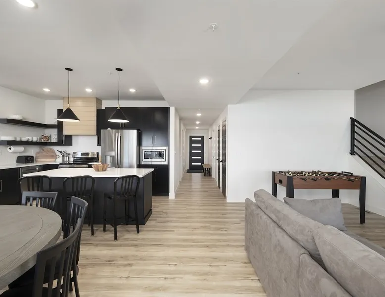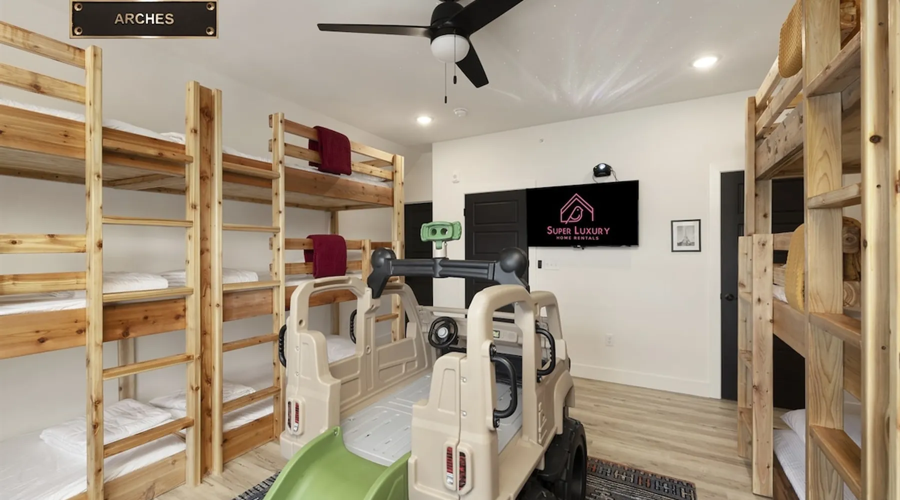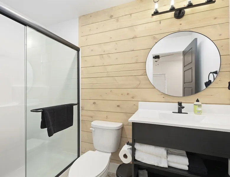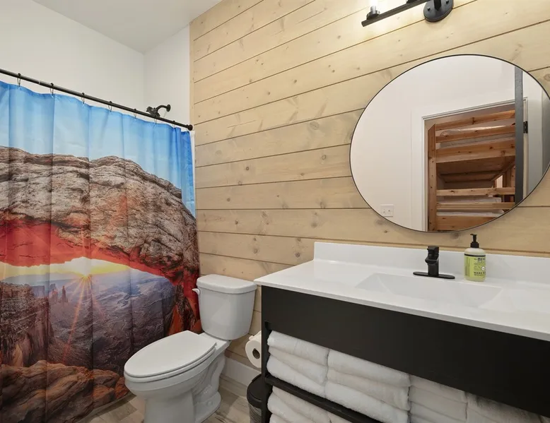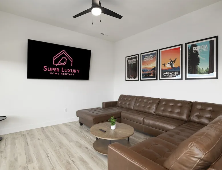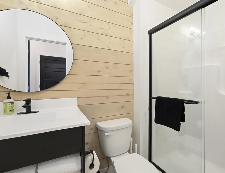 Nature Lodge is ready to accommodate, entertain, & delight gatherings for any occasion sleeping 28 people on beds. The home has amazing lake views that are fully celebrated by the hot tub, outdoor dining & fire table. Indoors the home is ready to entertain w/ 85' TVs, Xbox, classic arcade game, Pop-A-Shot, foosball table, & ping pong table. The 7 bedrooms are perfectly organized: 5 with king size Thuma beds & 2 bedrooms with bunks sleeping 6 and 12. The space Nature Lodge is a 7 bedrooms and 7 bathrooms that sleeps up to 28 guests. Main Level - Front porch is up 2 stairs and has a table with two chairs next to the lighted entrance - Primary bedroom #1 has an en-suite bathroom, a Thuma king bed, a 50" TV, blackout shades, ceiling fan, and a desk & chair - Primary bedroom #2 has en-suite bathroom with access from the living room, a Thuma king bed, a 50" TV, blackout shades, & ceiling fan - Fully stocked kitchen is equipped with all the kitchen utensils, supplies, and appliances to make feeding 28 people a breeze - Dining area has a 6' circle Restoration Hardware table seating 12 and counter height bar stool seating 9 - Spacious living room with large sectional couch, fireplace, 85" TV - Out the sliding glass door to the patio there is 14' of dining tables seating 16 and a Weber bbq grill to enjoy the views. Basement Level - Family & Game Room has foosball table, ping pong table, pop-a-shot, Xbox, and 85" TV - Off the family room there is a wet bar with everything needed to enjoy a libation or two - The outdoor patio has private Aquaterra hot tub accommodating 6 and outdoor sofas surrounding a fire table - Primary bedroom #3 with en-suite bathroom, a Thuma king bed, blackout shades, ceiling fan, and a 50" TV - Primary bedroom #4 with en-suite bathroom, a Thuma king bed, blackout shades, ceiling fan, and a 50" TV - Bedroom #5 with the small bunk room with two triple bunk twin beds sleeping 6, blackout shades, ceiling fan, and a 50" TV Upper Level - Primary bedroom #6 has en-suite bathroom, has a Thuma king bed, deck & chair, blackout shades, ceiling fan, and 50" TV - Bedroom #7 is our large bunk room with 4 triple bunk twin beds sleeping 12, blackout shades, ceiling fan, a 50" TV with en-suite bathroom with tub & shower - In the hall there is a laundry closet with a stackable front load Samsung washer and dryer Additional Home Amenities - Kid friendly including Pack n Play, High Chair, & Kids Dishware - Driveway Parking for up to 3 vehicles - Thoughtful sleep environments: ceiling fans in all bedrooms, white noise machines, and portable fans provided - High speed internet (1Gbps) You must be at least 21 years old to book. Legal agreements and security deposit are managed using an approved API-connected software provider called OwnerRez. The security deposit is a temporary hold on the credit card in case of any damages incurred during the stay. This property allows pets up to 2 dogs with a fee. The maximum guest count must be adhered which is 28 for this property. Guest access The entire home and parking area are included in this rental as well as access to the shared community amenities: indoor pool & outdoor pool. Please make yourself at home and enjoy our property.