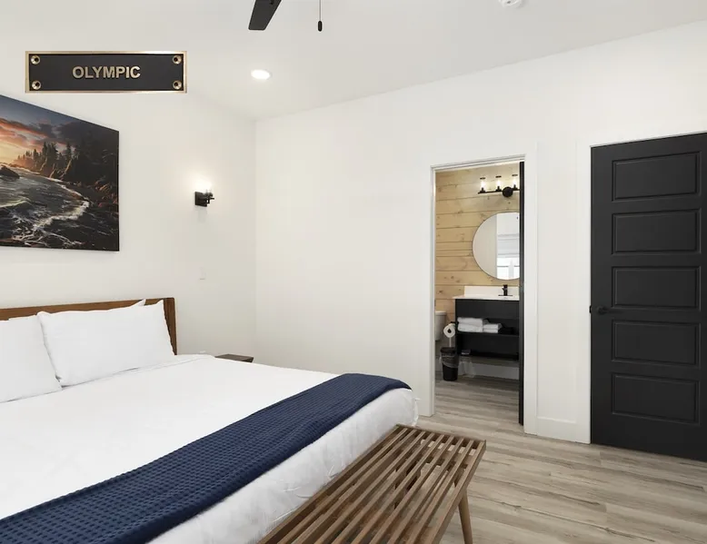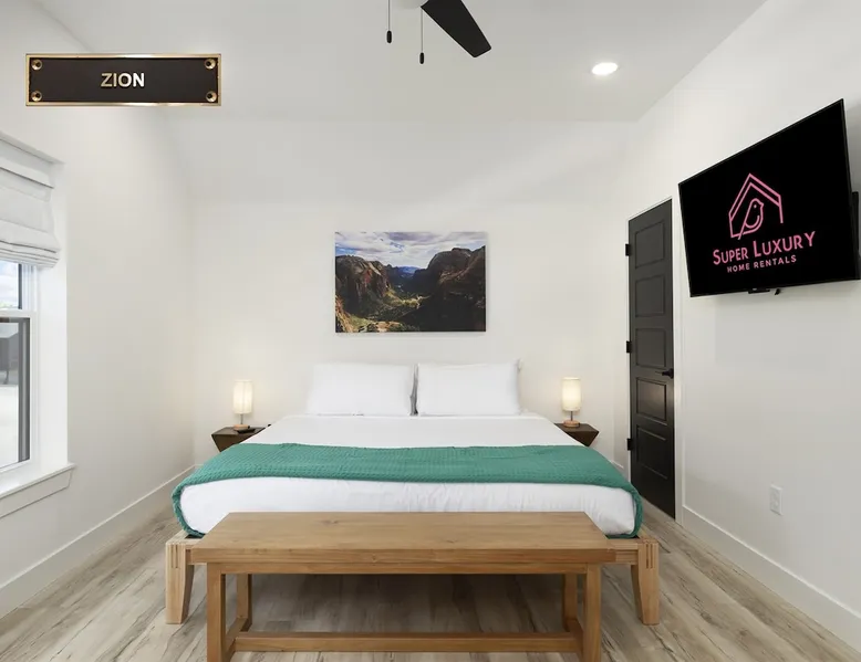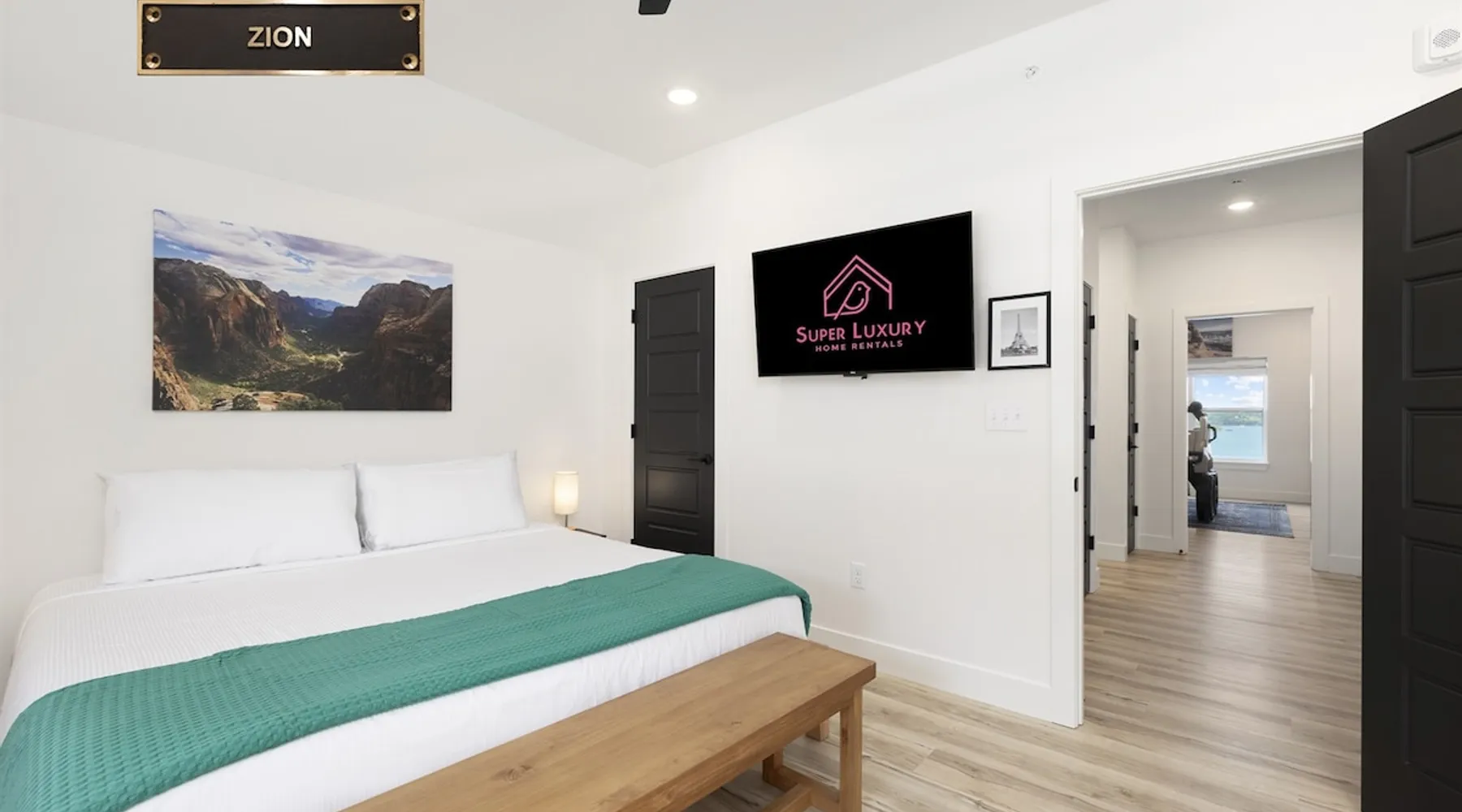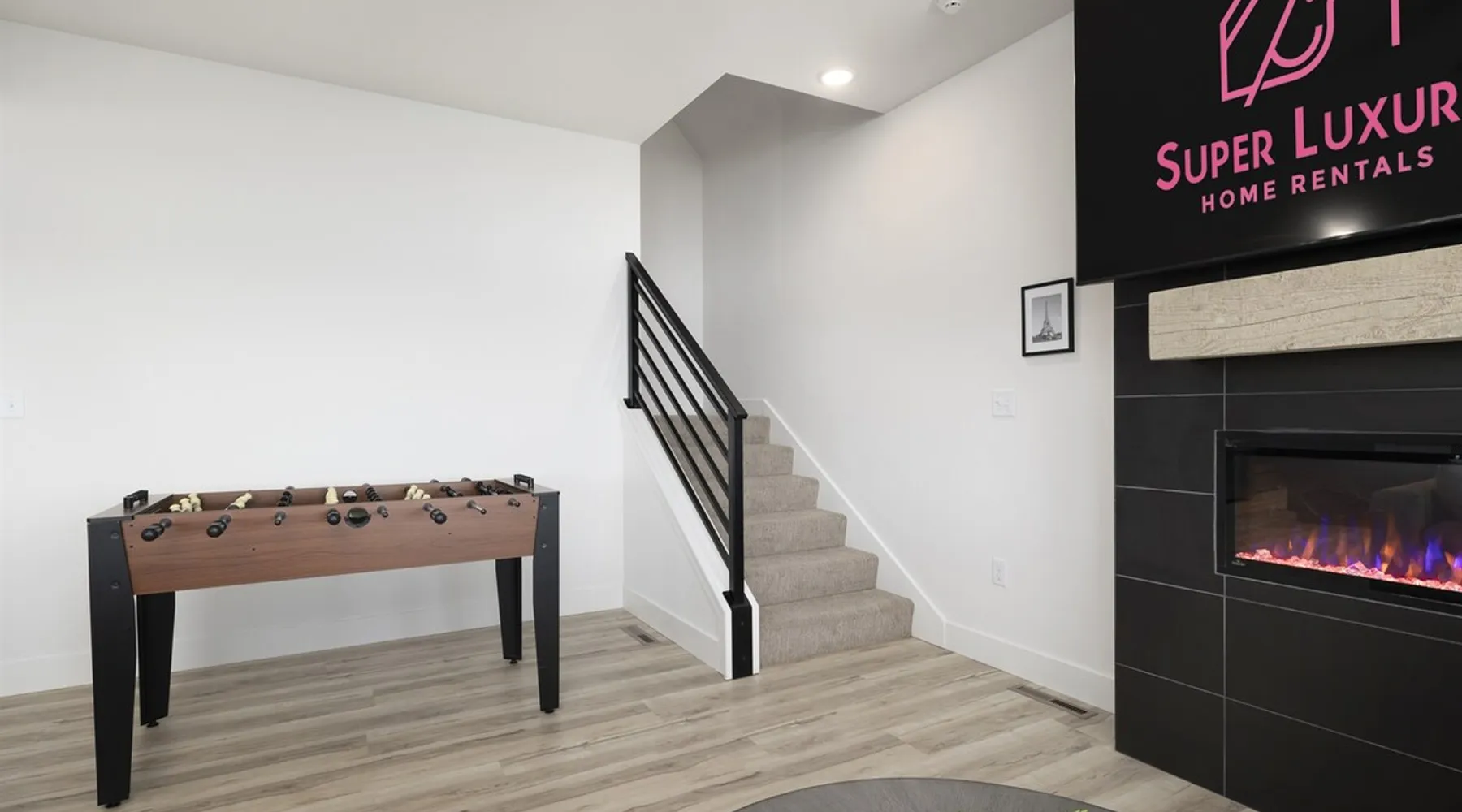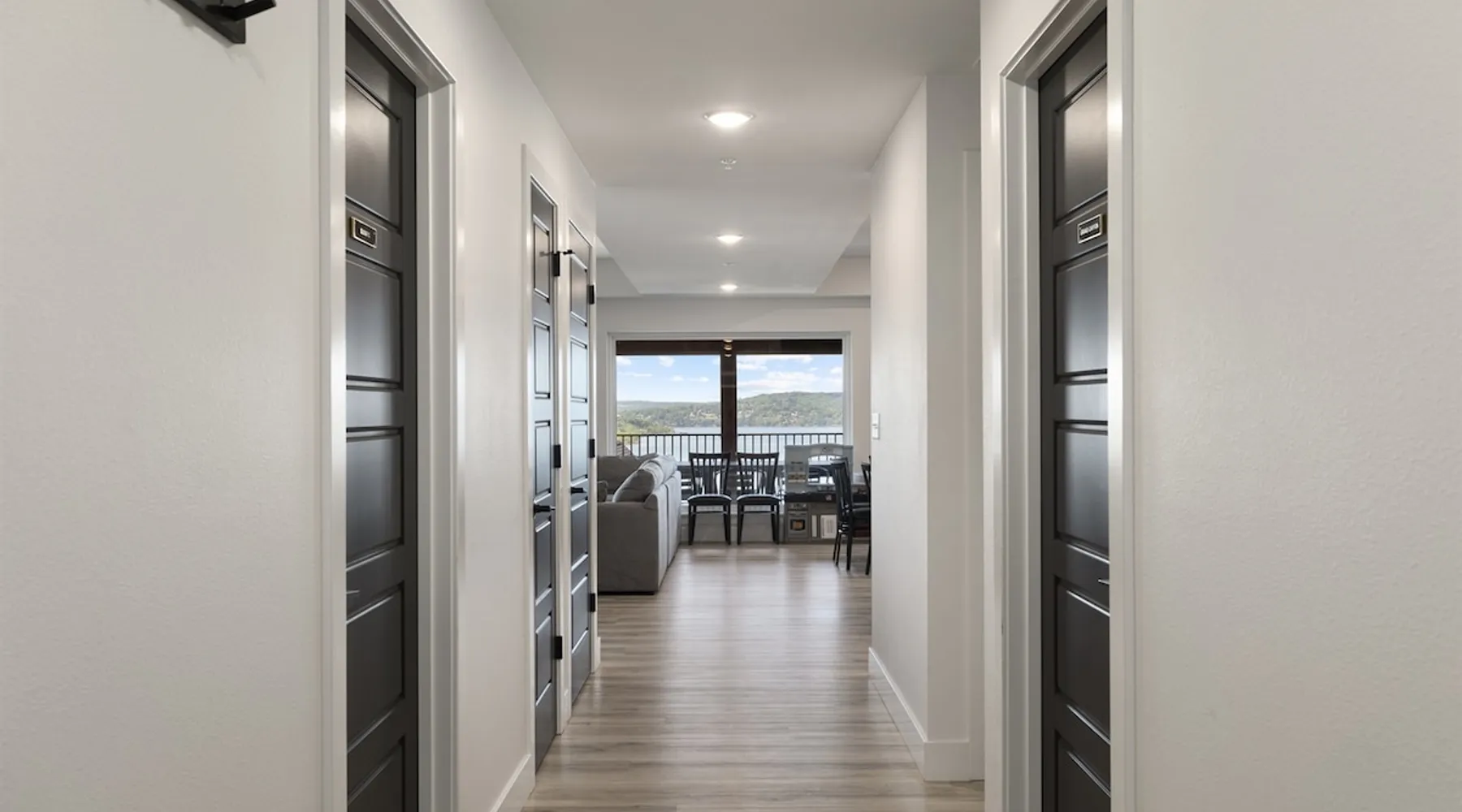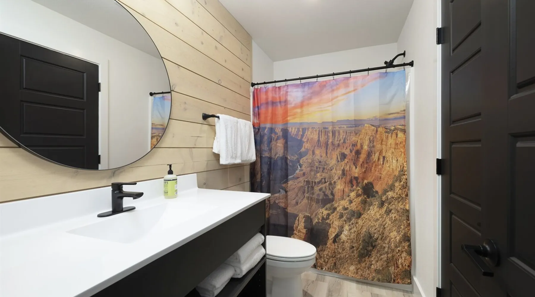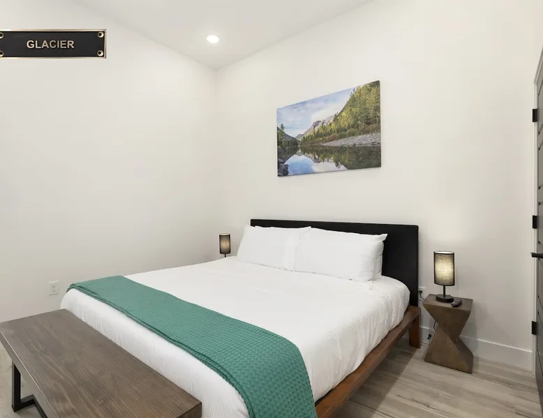 Nature Lodge is ready to accommodate, entertain, & delight gatherings for any occasion sleeping 28 people on beds. The home has amazing lake views that are fully celebrated by the hot tub, outdoor dining & fire table. Indoors the home is ready to entertain w/ 85' TVs, Xbox, classic arcade game, Pop-A-Shot, foosball table, & ping pong table. The 7 bedrooms are perfectly organized: 5 with king size Thuma beds & 2 bedrooms with bunks sleeping 6 and 12. The space Nature Lodge is a 7 bedrooms and 7 bathrooms that sleeps up to 28 guests. Main Level - Front porch is up 2 stairs and has a table with two chairs next to the lighted entrance - Primary bedroom #1 has an en-suite bathroom, a Thuma king bed, a 50" TV, blackout shades, ceiling fan, and a desk & chair - Primary bedroom #2 has en-suite bathroom with access from the living room, a Thuma king bed, a 50" TV, blackout shades, & ceiling fan - Fully stocked kitchen is equipped with all the kitchen utensils, supplies, and appliances to make feeding 28 people a breeze - Dining area has a 6' circle Restoration Hardware table seating 12 and counter height bar stool seating 9 - Spacious living room with large sectional couch, fireplace, 85" TV - Out the sliding glass door to the patio there is 14' of dining tables seating 16 and a Weber bbq grill to enjoy the views. Basement Level - Family & Game Room has foosball table, ping pong table, pop-a-shot, Xbox, and 85" TV - Off the family room there is a wet bar with everything needed to enjoy a libation or two - The outdoor patio has private Aquaterra hot tub accommodating 6 and outdoor sofas surrounding a fire table - Primary bedroom #3 with en-suite bathroom, a Thuma king bed, blackout shades, ceiling fan, and a 50" TV - Primary bedroom #4 with en-suite bathroom, a Thuma king bed, blackout shades, ceiling fan, and a 50" TV - Bedroom #5 with the small bunk room with two triple bunk twin beds sleeping 6, blackout shades, ceiling fan, and a 50" TV Upper Level - Primary bedroom #6 has en-suite bathroom, has a Thuma king bed, deck & chair, blackout shades, ceiling fan, and 50" TV - Bedroom #7 is our large bunk room with 4 triple bunk twin beds sleeping 12, blackout shades, ceiling fan, a 50" TV with en-suite bathroom with tub & shower - In the hall there is a laundry closet with a stackable front load Samsung washer and dryer Additional Home Amenities - Kid friendly including Pack n Play, High Chair, & Kids Dishware - Driveway Parking for up to 3 vehicles - Thoughtful sleep environments: ceiling fans in all bedrooms, white noise machines, and portable fans provided - High speed internet (1Gbps) You must be at least 21 years old to book. Legal agreements and security deposit are managed using an approved API-connected software provider called OwnerRez. The security deposit is a temporary hold on the credit card in case of any damages incurred during the stay. This property allows pets up to 2 dogs with a fee. The maximum guest count must be adhered which is 28 for this property. Guest access The entire home and parking area are included in this rental as well as access to the shared community amenities: indoor pool & outdoor pool. Please make yourself at home and enjoy our property.