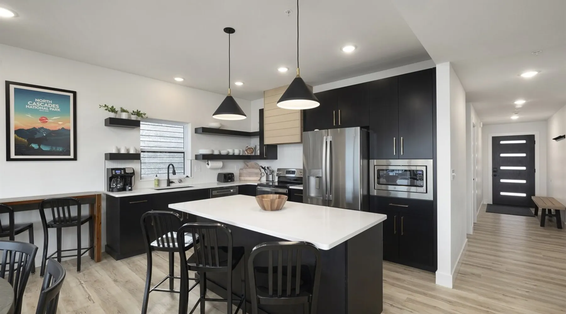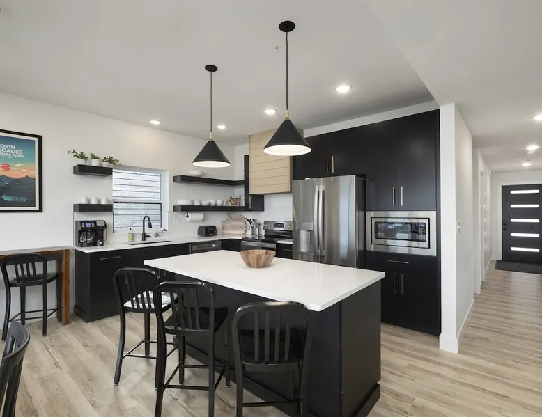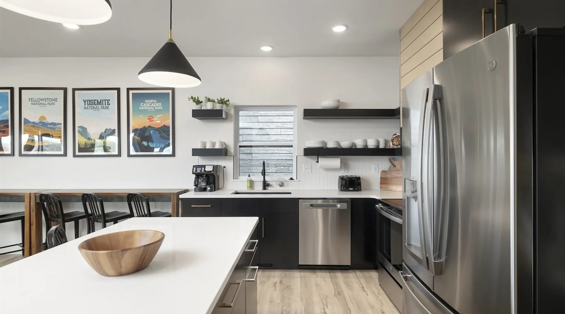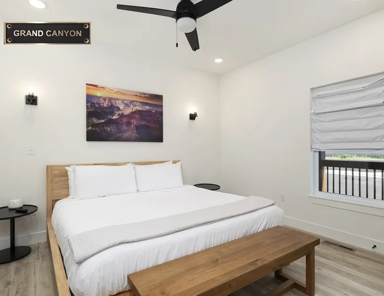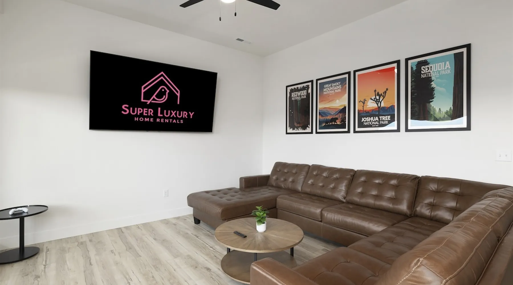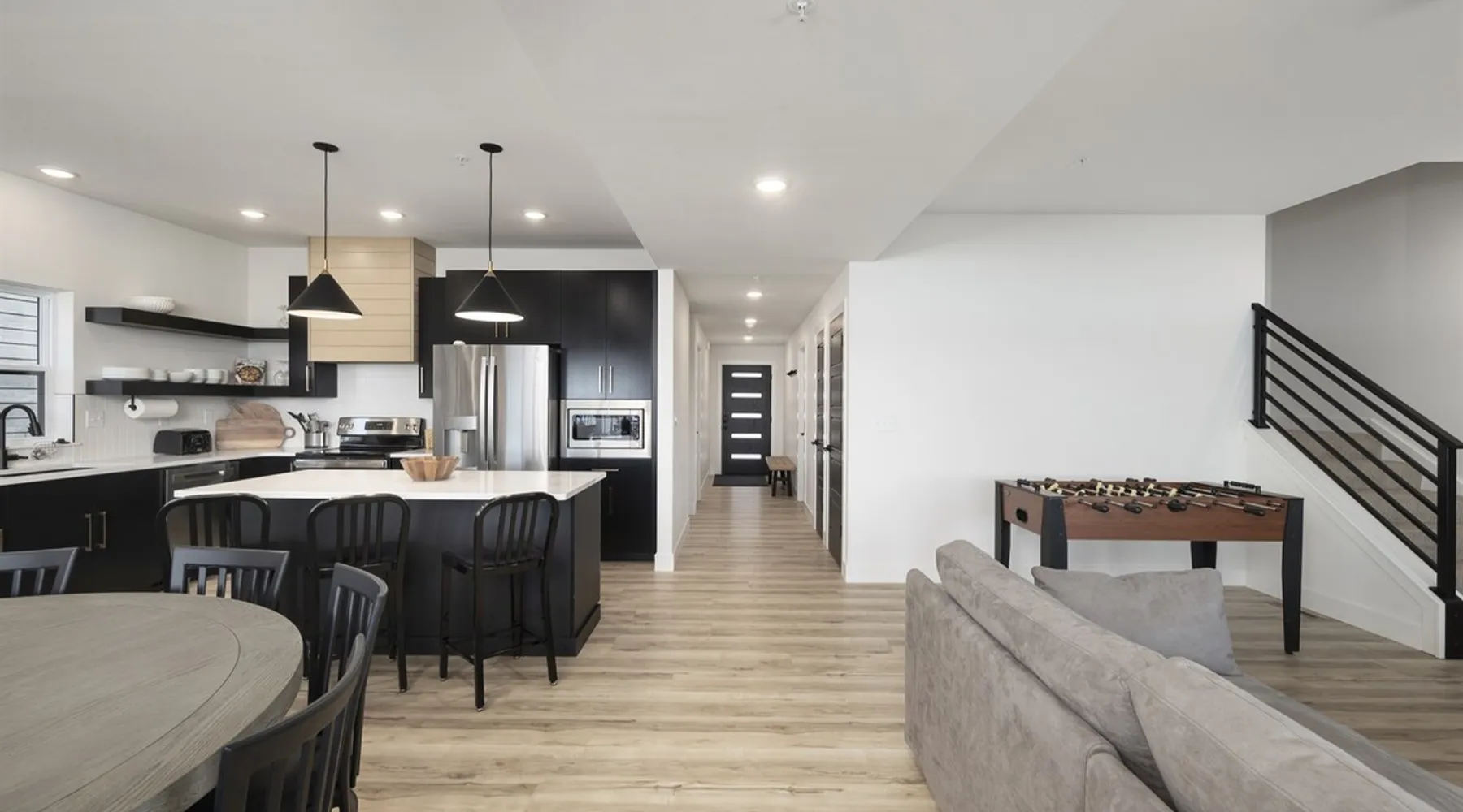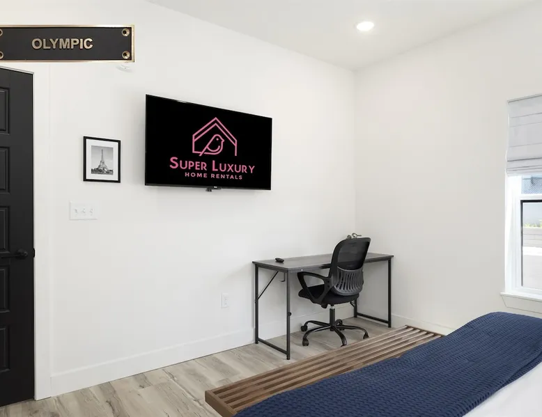 Nature Lodge is ready to accommodate, entertain, & delight gatherings for any occasion sleeping 28 people on beds. The home has amazing lake views that are fully celebrated by the hot tub, outdoor dining & fire table. Indoors the home is ready to entertain w/ 85' TVs, Xbox, classic arcade game, Pop-A-Shot, foosball table, & ping pong table. The 7 bedrooms are perfectly organized: 5 with king size Thuma beds & 2 bedrooms with bunks sleeping 6 and 12. The space Nature Lodge is a 7 bedrooms and 7 bathrooms that sleeps up to 28 guests. Main Level - Front porch is up 2 stairs and has a table with two chairs next to the lighted entrance - Primary bedroom #1 has an en-suite bathroom, a Thuma king bed, a 50" TV, blackout shades, ceiling fan, and a desk & chair - Primary bedroom #2 has en-suite bathroom with access from the living room, a Thuma king bed, a 50" TV, blackout shades, & ceiling fan - Fully stocked kitchen is equipped with all the kitchen utensils, supplies, and appliances to make feeding 28 people a breeze - Dining area has a 6' circle Restoration Hardware table seating 12 and counter height bar stool seating 9 - Spacious living room with large sectional couch, fireplace, 85" TV - Out the sliding glass door to the patio there is 14' of dining tables seating 16 and a Weber bbq grill to enjoy the views. Basement Level - Family & Game Room has foosball table, ping pong table, pop-a-shot, Xbox, and 85" TV - Off the family room there is a wet bar with everything needed to enjoy a libation or two - The outdoor patio has private Aquaterra hot tub accommodating 6 and outdoor sofas surrounding a fire table - Primary bedroom #3 with en-suite bathroom, a Thuma king bed, blackout shades, ceiling fan, and a 50" TV - Primary bedroom #4 with en-suite bathroom, a Thuma king bed, blackout shades, ceiling fan, and a 50" TV - Bedroom #5 with the small bunk room with two triple bunk twin beds sleeping 6, blackout shades, ceiling fan, and a 50" TV Upper Level - Primary bedroom #6 has en-suite bathroom, has a Thuma king bed, deck & chair, blackout shades, ceiling fan, and 50" TV - Bedroom #7 is our large bunk room with 4 triple bunk twin beds sleeping 12, blackout shades, ceiling fan, a 50" TV with en-suite bathroom with tub & shower - In the hall there is a laundry closet with a stackable front load Samsung washer and dryer Additional Home Amenities - Kid friendly including Pack n Play, High Chair, & Kids Dishware - Driveway Parking for up to 3 vehicles - Thoughtful sleep environments: ceiling fans in all bedrooms, white noise machines, and portable fans provided - High speed internet (1Gbps) You must be at least 21 years old to book. Legal agreements and security deposit are managed using an approved API-connected software provider called OwnerRez. The security deposit is a temporary hold on the credit card in case of any damages incurred during the stay. This property allows pets up to 2 dogs with a fee. The maximum guest count must be adhered which is 28 for this property. Guest access The entire home and parking area are included in this rental as well as access to the shared community amenities: indoor pool & outdoor pool. Please make yourself at home and enjoy our property.