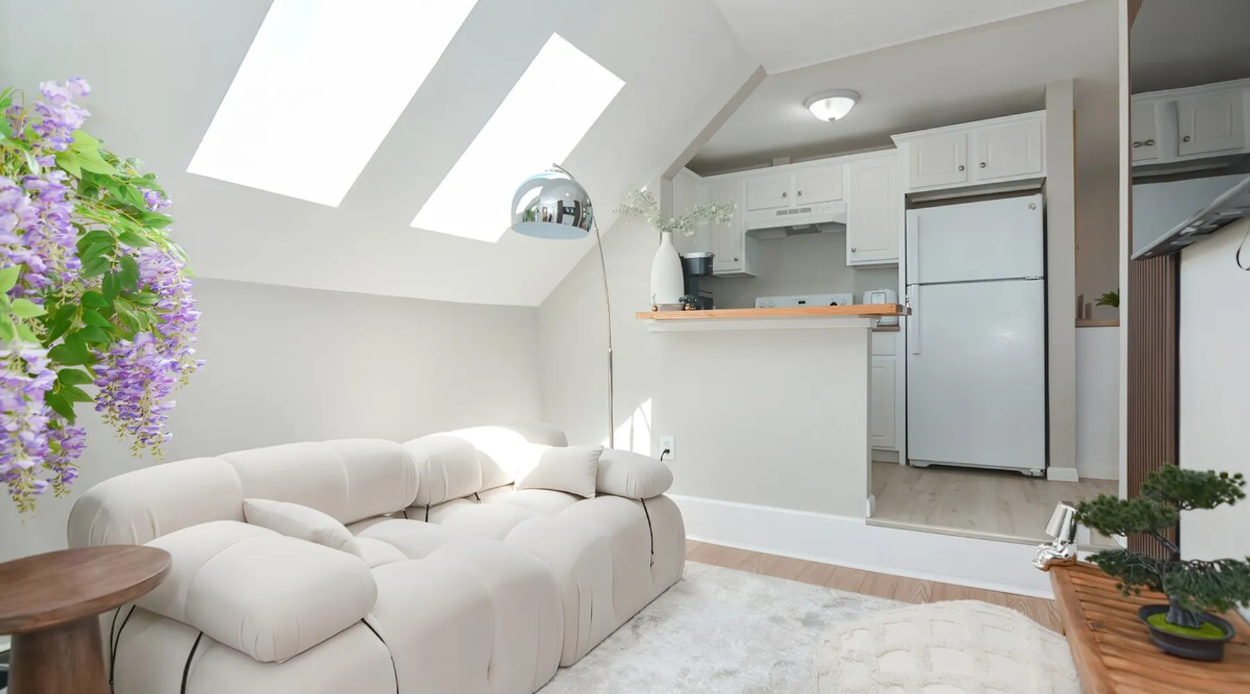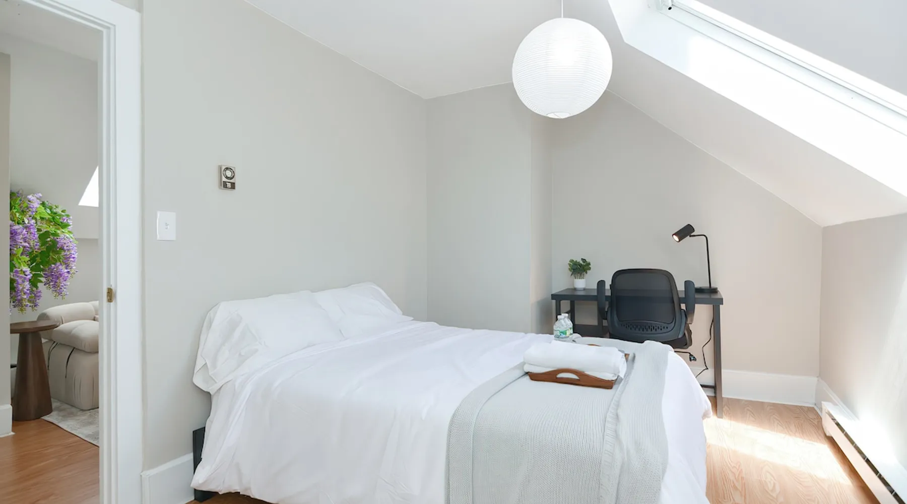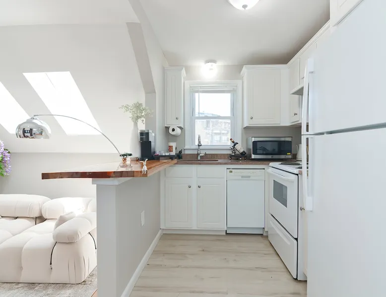 Welcome to our Zen Garden conveniently located 35 minutes from the vibrant city of Boston. This cozy 2-bedroom, 1-bath unit offers a peaceful sanctuary with skylight ceilings filling the space with natural light We are in a great location just 1 minute from Umass Lowell South Campus and a 3 minute walk from our beautiful Lowell boulevard Note: Skylight window fill the unit with light; bedrooms brighten early, especially one without curtains, making it less suitable for light-sensitive guests. The space You'll find two bedrooms, each with comfy beds and ample storage. The main bedroom has a queen size bed while the second room has a full size bed and doubles as a workspace, equipped with a desk and chair. Each bedroom can comfortably sleep 2 persons each. Home designed by LọCai Collective. In the kitchen, you'll find all the essentials for cooking and dining, including cookware, utensils, and dinnerware. There's a dining area nearby to enjoy your meals. Relax in the living room with a 55-inch smart TV and high speed internet. Unauthorized pet will result in a $250 fee Evidence of smoking in the unit will result in a $750 fee The modern bathroom offers a refreshing shower or bath. Whether you're here for work or leisure, our place has everything you need for a comfy stay! Guest access Guests have full access to our cozy Airbnb, located on the top floor of a two-family building. There are two entrances for their convenience: one at the front of the house and one at the back. At the front entrance, guests will find a staircase leading directly to the unit, with a door featuring a keypad lock for entry. At the back entrance, marked as 19B, guests will also find a staircase leading up, with another door featuring a keypad lock with the same code for entry. Please note that guests are only permitted access to the unit and these two entrances. Other areas outside the unit are off-limits. Other things to note Please note that we offer a window AC in this unit, and its availability varies by season (we do not install it during colder seasons to avoid damage). Please note that during the spin cycle of the washer, there may be noticeable shaking, particularly in a two-hour wash cycle where the spin cycle occurs two to three times for about three minutes each. This shaking is due to a leveling issue with the house and unfortunately cannot be entirely eliminated. If you plan to use the laundry facilities, please be aware that there will be some noise during the spin cycle. We apologize for any inconvenience this may cause and appreciate your understanding Please review the "house rules" section (usually located towards the bottom of the page) for additional information and guidelines, especially for guests who are staying with pets.