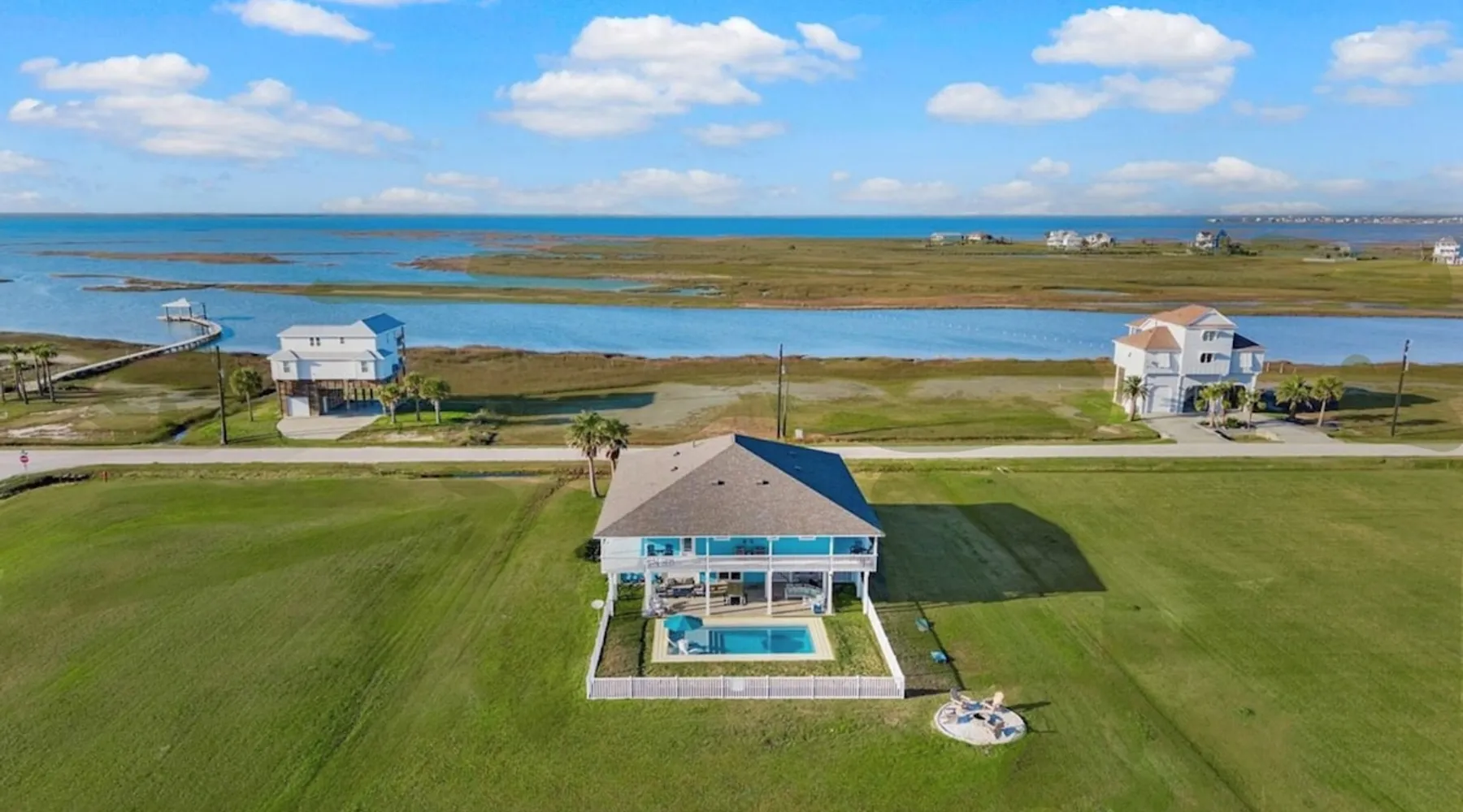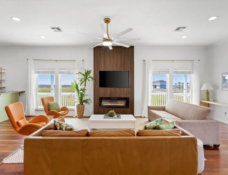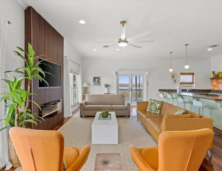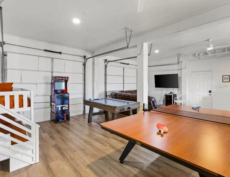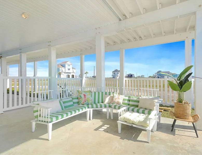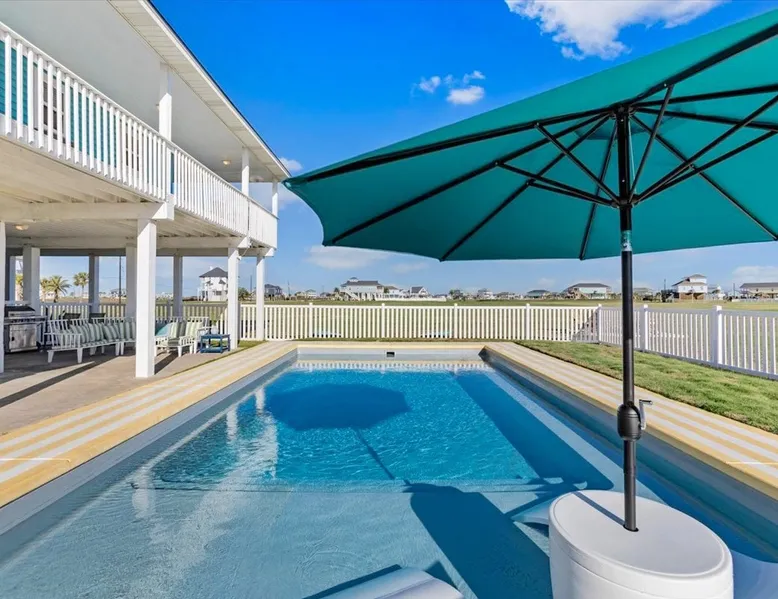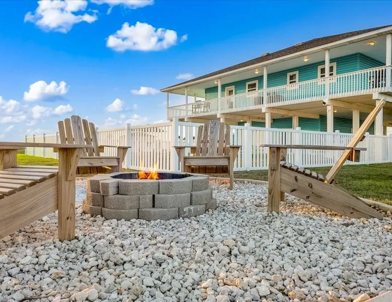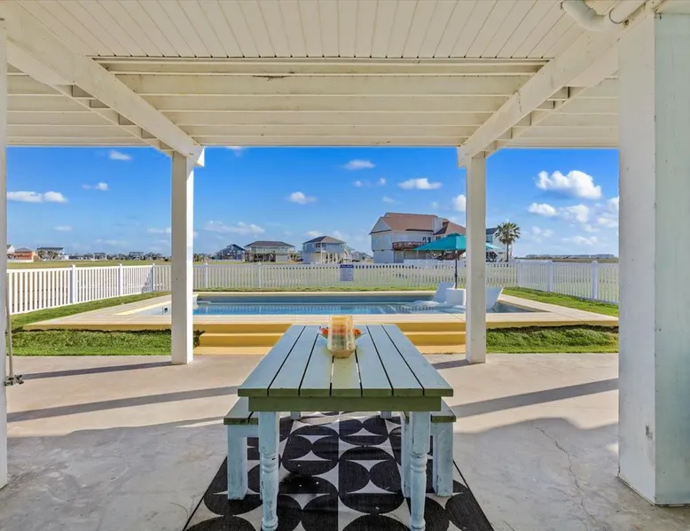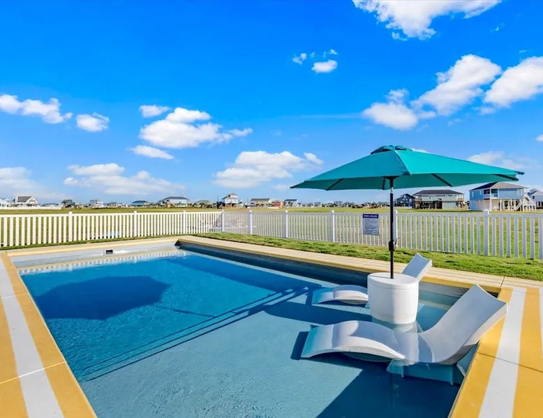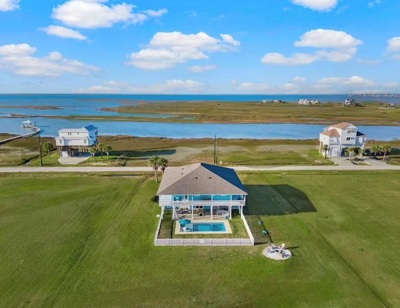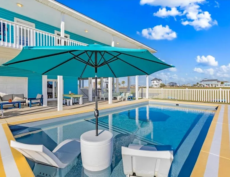 Heated Pool, Game Rm, Fall Sunsets- Sleeps 20! Discover coastal luxury at 'The Palms,' a Palm Springs-inspired 6-bedroom retreat on an acre along West Galveston Bay with amazing panoramic views. Freshly remodeled in 2024, accommodating 20 guests, indulge in the backyard HEATED swimming pool with a tanning ledge, fire ring for smores and star gazing, and the expansive game room and entertainment space less than a mile from the beach! Enjoy stunning sunsets from our 360 Degree Upper Deck. The space Located under a mile from the beach and just 15 minutes from town, this haven seamlessly blends relaxation and entertainment for an unforgettable getaway. **NEW FOR 2025** - All new outdoor furniture, including a dining table, breakfast table, and captain chairs on the deck and conversation set on the patio - Time Crisis Arcade Game - Foosball Table Sleeping Quarters Main Level-- - 2 King bedrooms, each with en-suite bathroom - 1 Queen bedroom - 1 Bunk room with full en-suite bathroom Loft-- - Queen bed and daybed with trundle Ground Level-- - 2 Twin Bunk Beds with half bath **Ground level of home does NOT have interior stairs** Coffee and Cocktail Bar - Mini fridge and large ice maker - Keurig and French Press with your choice of two different organic coffee pods and a selection of sweeteners and creamers Kitchen - Fully stocked and ready to serve 18 - Blender - Toaster Game Room - Ping Pong table - Time Crisis Arcade - Foosball Table - Axe throwing - Entertainment center with leather sectional, electric recliners, cup holders, and 65" TV - Washers - Corn hole - Glass sliding doors lead to the pool - Half bath Outdoor Space - Upstairs deck overlooks West Galveston Bay and provides an outdoor conversation set, dining table that seats 6, breakfast table that seats 2, and 2 sets of 2 captain chairs - Back Patio provides tons of seating with style- one large sectional, a conversation set, and Outdoor dining table with bench seating - Gas grill with propane provided - Swimming pool with oversized tanning ledge and seating that expands the entire length of the pool- perfect for hanging out while staying cool! - Beach toys and wagon complimentary! - Fire ring with Adirondack chairs to watch sunset and star gaze (BYO firewood) - Corn hole boards Study Space - Dedicated study space upstairs with desk for remote working/studying/reading nook *Please note- Guests do not have access to the neighborhood fishing pier *If you're bringing a pet, there is a fee. Please be sure to add it to the reservation when booking* *Pool is heated to 85 degrees at all times. During times of high wind or temperatures below 50, the pool may not be able to heat all the way up. Changes to heat temp is not permitted* Guest access The entire home will be yours to use during your stay. The home is secured by a smart lock programmed for each stay. Ask about early check-in and/or late check-out! Other things to note - Ask about concierge service- celebrating a special occasion, need a golf cart rental, groceries delivered to your door, or any other special favor? Let us know when you book! - Bring your own firewood if you plan to enjoy the fire ring- there's a store less than a mile away. - Pool heater is running 24/7. When outdoor temp is 55 or below, electric pool heater will not operate. Registration Details GVR-13319