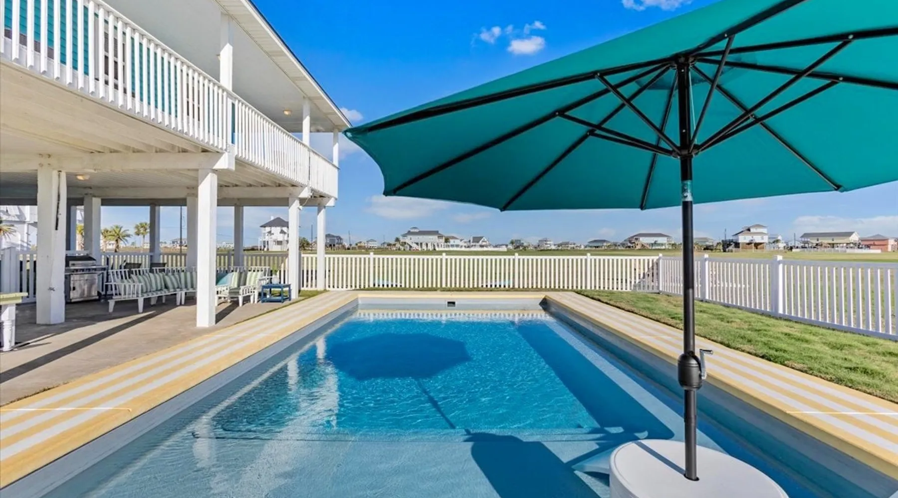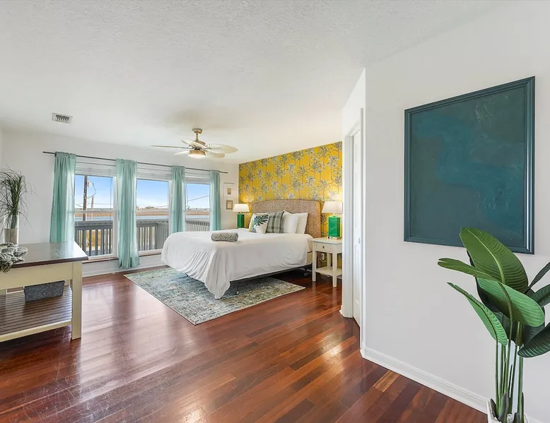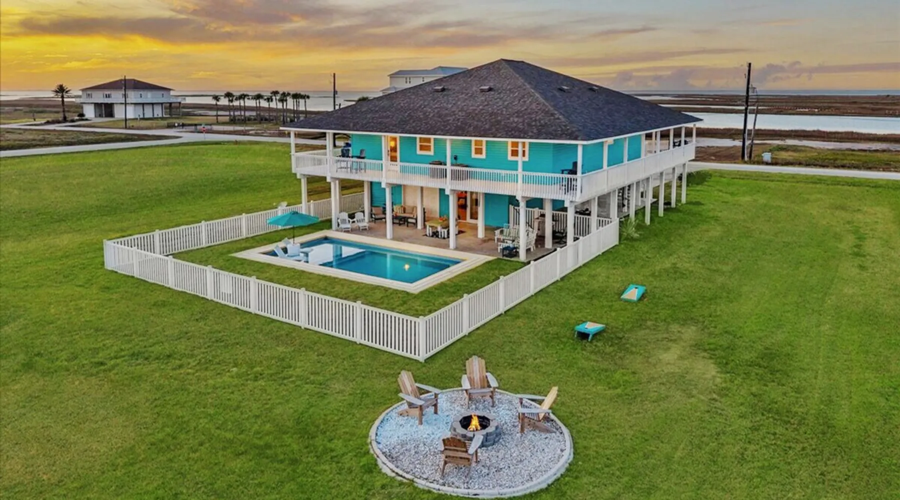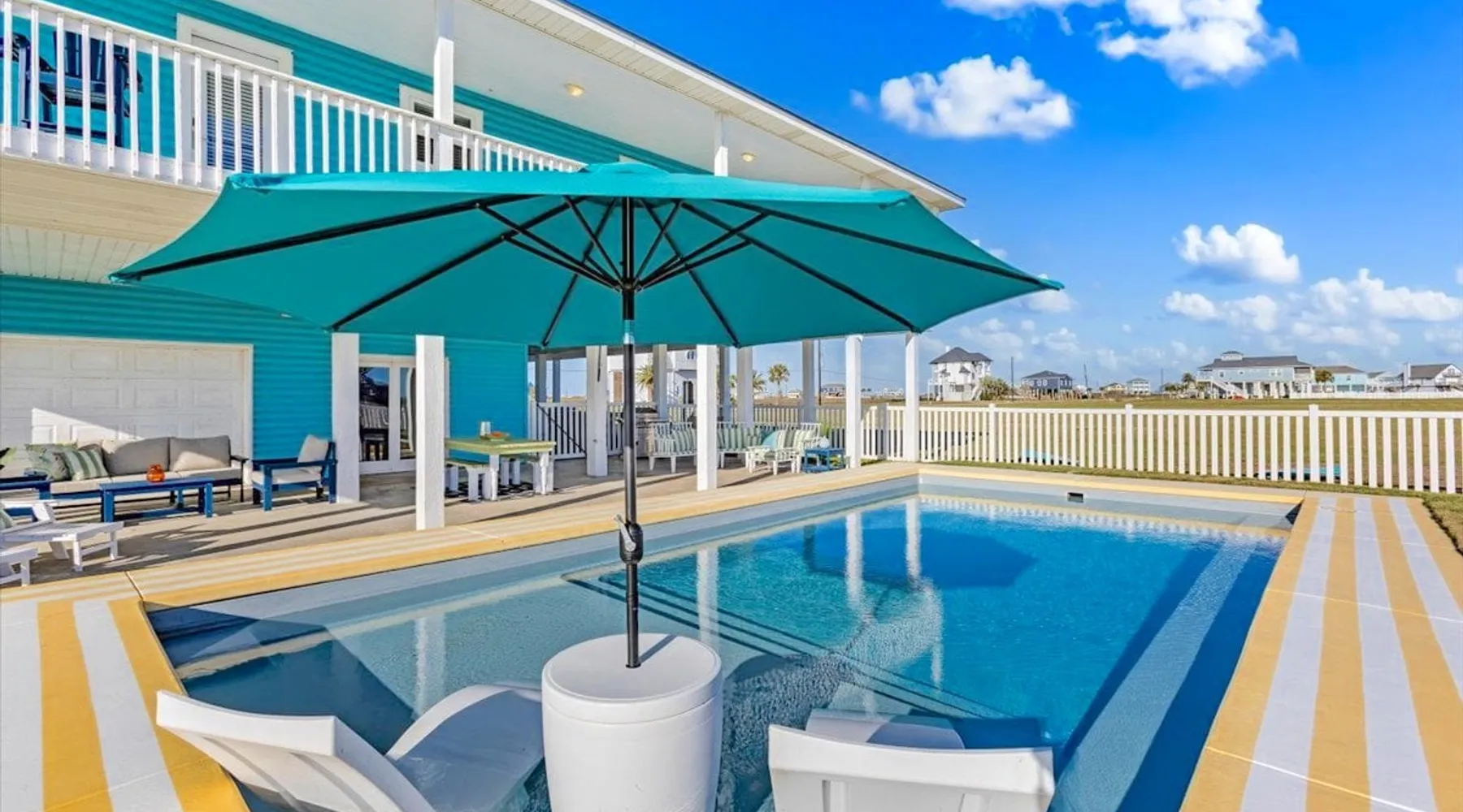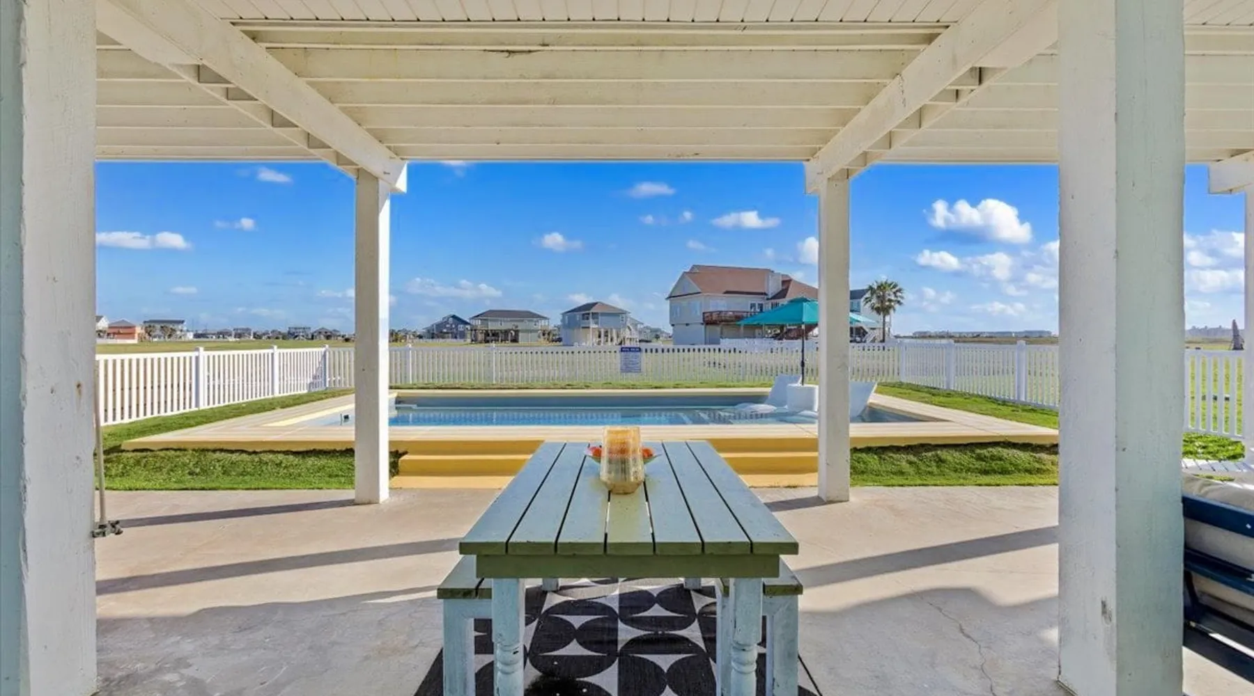 Heated Pool, Game Rm, Fall Sunsets- Sleeps 20! Discover coastal luxury at 'The Palms,' a Palm Springs-inspired 6-bedroom retreat on an acre along West Galveston Bay with amazing panoramic views. Freshly remodeled in 2024, accommodating 20 guests, indulge in the backyard HEATED swimming pool with a tanning ledge, fire ring for smores and star gazing, and the expansive game room and entertainment space less than a mile from the beach! Enjoy stunning sunsets from our 360 Degree Upper Deck. The space Located under a mile from the beach and just 15 minutes from town, this haven seamlessly blends relaxation and entertainment for an unforgettable getaway. **NEW FOR 2025** - All new outdoor furniture, including a dining table, breakfast table, and captain chairs on the deck and conversation set on the patio - Time Crisis Arcade Game - Foosball Table Sleeping Quarters Main Level-- - 2 King bedrooms, each with en-suite bathroom - 1 Queen bedroom - 1 Bunk room with full en-suite bathroom Loft-- - Queen bed and daybed with trundle Ground Level-- - 2 Twin Bunk Beds with half bath **Ground level of home does NOT have interior stairs** Coffee and Cocktail Bar - Mini fridge and large ice maker - Keurig and French Press with your choice of two different organic coffee pods and a selection of sweeteners and creamers Kitchen - Fully stocked and ready to serve 18 - Blender - Toaster Game Room - Ping Pong table - Time Crisis Arcade - Foosball Table - Axe throwing - Entertainment center with leather sectional, electric recliners, cup holders, and 65" TV - Washers - Corn hole - Glass sliding doors lead to the pool - Half bath Outdoor Space - Upstairs deck overlooks West Galveston Bay and provides an outdoor conversation set, dining table that seats 6, breakfast table that seats 2, and 2 sets of 2 captain chairs - Back Patio provides tons of seating with style- one large sectional, a conversation set, and Outdoor dining table with bench seating - Gas grill with propane provided - Swimming pool with oversized tanning ledge and seating that expands the entire length of the pool- perfect for hanging out while staying cool! - Beach toys and wagon complimentary! - Fire ring with Adirondack chairs to watch sunset and star gaze (BYO firewood) - Corn hole boards Study Space - Dedicated study space upstairs with desk for remote working/studying/reading nook *Please note- Guests do not have access to the neighborhood fishing pier *If you're bringing a pet, there is a fee. Please be sure to add it to the reservation when booking* *Pool is heated to 85 degrees at all times. During times of high wind or temperatures below 50, the pool may not be able to heat all the way up. Changes to heat temp is not permitted* Guest access The entire home will be yours to use during your stay. The home is secured by a smart lock programmed for each stay. Ask about early check-in and/or late check-out! Other things to note - Ask about concierge service- celebrating a special occasion, need a golf cart rental, groceries delivered to your door, or any other special favor? Let us know when you book! - Bring your own firewood if you plan to enjoy the fire ring- there's a store less than a mile away. - Pool heater is running 24/7. When outdoor temp is 55 or below, electric pool heater will not operate. Registration Details GVR-13319