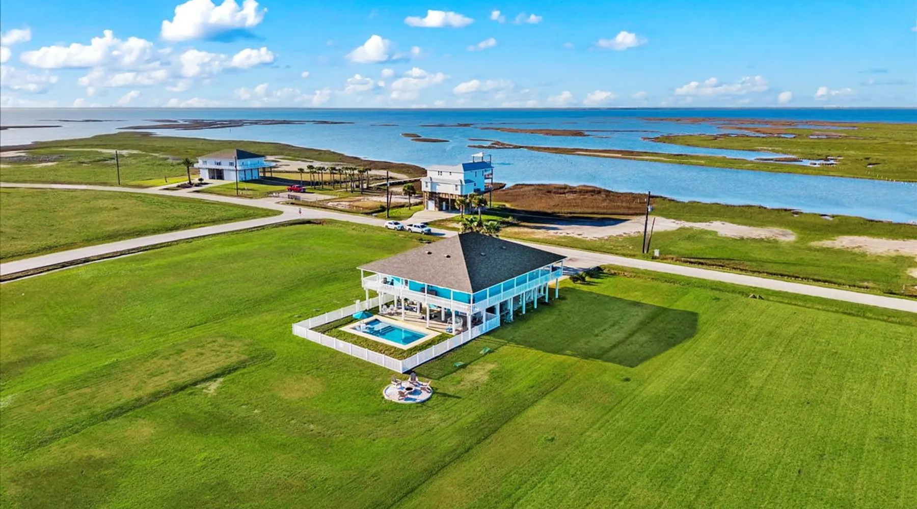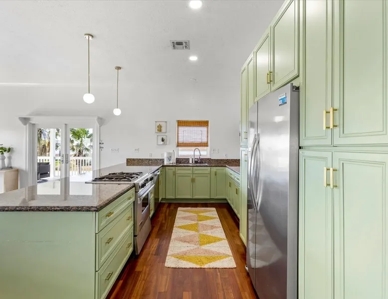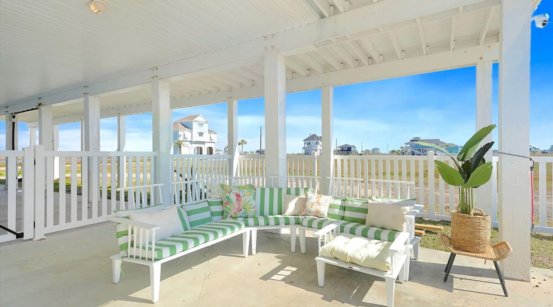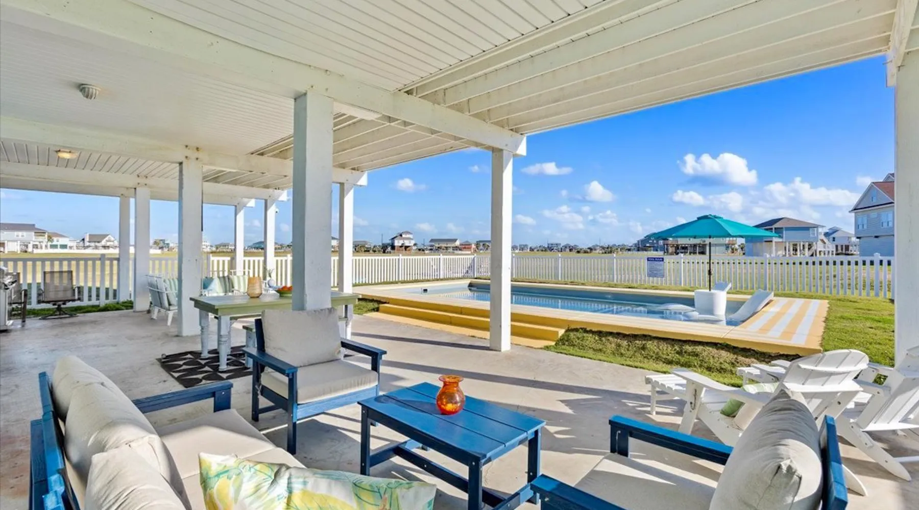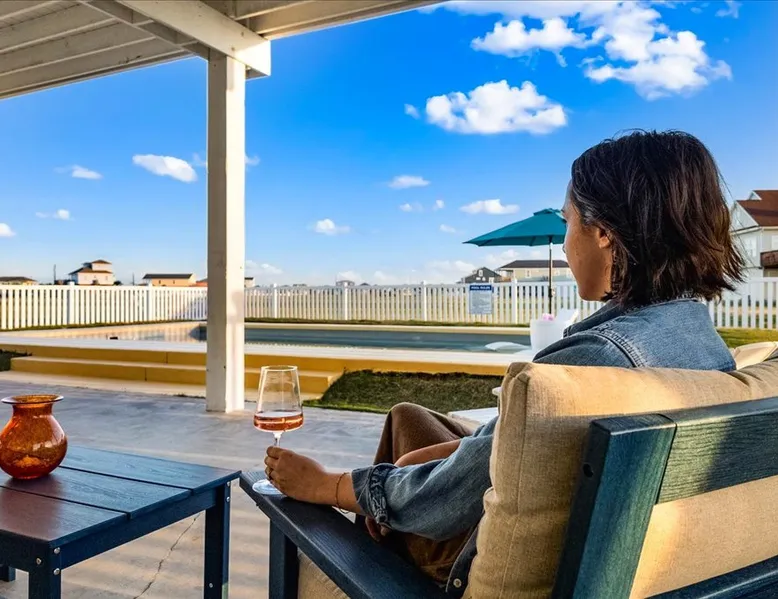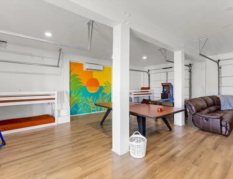 Heated Pool, Game Rm, Fall Sunsets- Sleeps 20! Discover coastal luxury at 'The Palms,' a Palm Springs-inspired 6-bedroom retreat on an acre along West Galveston Bay with amazing panoramic views. Freshly remodeled in 2024, accommodating 20 guests, indulge in the backyard HEATED swimming pool with a tanning ledge, fire ring for smores and star gazing, and the expansive game room and entertainment space less than a mile from the beach! Enjoy stunning sunsets from our 360 Degree Upper Deck. The space Located under a mile from the beach and just 15 minutes from town, this haven seamlessly blends relaxation and entertainment for an unforgettable getaway. **NEW FOR 2025** - All new outdoor furniture, including a dining table, breakfast table, and captain chairs on the deck and conversation set on the patio - Time Crisis Arcade Game - Foosball Table Sleeping Quarters Main Level-- - 2 King bedrooms, each with en-suite bathroom - 1 Queen bedroom - 1 Bunk room with full en-suite bathroom Loft-- - Queen bed and daybed with trundle Ground Level-- - 2 Twin Bunk Beds with half bath **Ground level of home does NOT have interior stairs** Coffee and Cocktail Bar - Mini fridge and large ice maker - Keurig and French Press with your choice of two different organic coffee pods and a selection of sweeteners and creamers Kitchen - Fully stocked and ready to serve 18 - Blender - Toaster Game Room - Ping Pong table - Time Crisis Arcade - Foosball Table - Axe throwing - Entertainment center with leather sectional, electric recliners, cup holders, and 65" TV - Washers - Corn hole - Glass sliding doors lead to the pool - Half bath Outdoor Space - Upstairs deck overlooks West Galveston Bay and provides an outdoor conversation set, dining table that seats 6, breakfast table that seats 2, and 2 sets of 2 captain chairs - Back Patio provides tons of seating with style- one large sectional, a conversation set, and Outdoor dining table with bench seating - Gas grill with propane provided - Swimming pool with oversized tanning ledge and seating that expands the entire length of the pool- perfect for hanging out while staying cool! - Beach toys and wagon complimentary! - Fire ring with Adirondack chairs to watch sunset and star gaze (BYO firewood) - Corn hole boards Study Space - Dedicated study space upstairs with desk for remote working/studying/reading nook *Please note- Guests do not have access to the neighborhood fishing pier *If you're bringing a pet, there is a fee. Please be sure to add it to the reservation when booking* *Pool is heated to 85 degrees at all times. During times of high wind or temperatures below 50, the pool may not be able to heat all the way up. Changes to heat temp is not permitted* Guest access The entire home will be yours to use during your stay. The home is secured by a smart lock programmed for each stay. Ask about early check-in and/or late check-out! Other things to note - Ask about concierge service- celebrating a special occasion, need a golf cart rental, groceries delivered to your door, or any other special favor? Let us know when you book! - Bring your own firewood if you plan to enjoy the fire ring- there's a store less than a mile away. - Pool heater is running 24/7. When outdoor temp is 55 or below, electric pool heater will not operate. Registration Details GVR-13319
