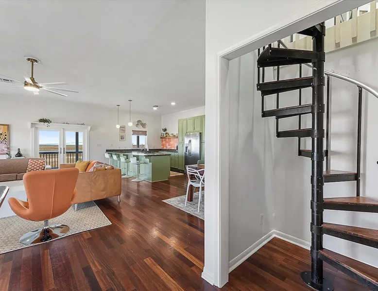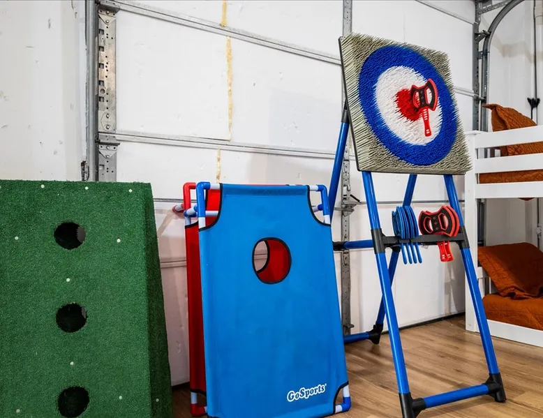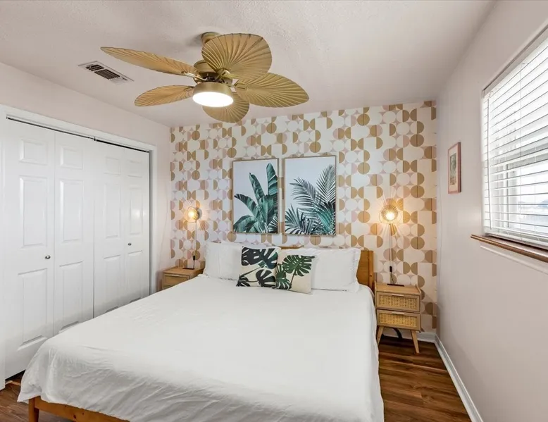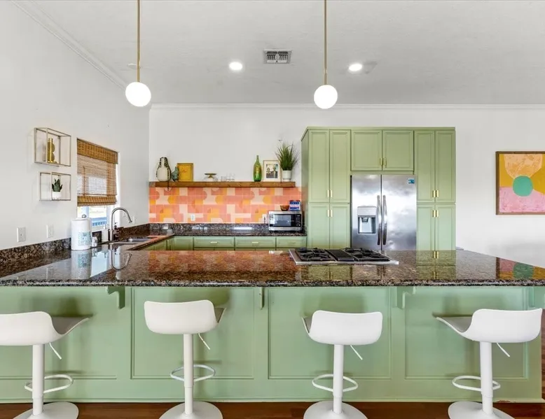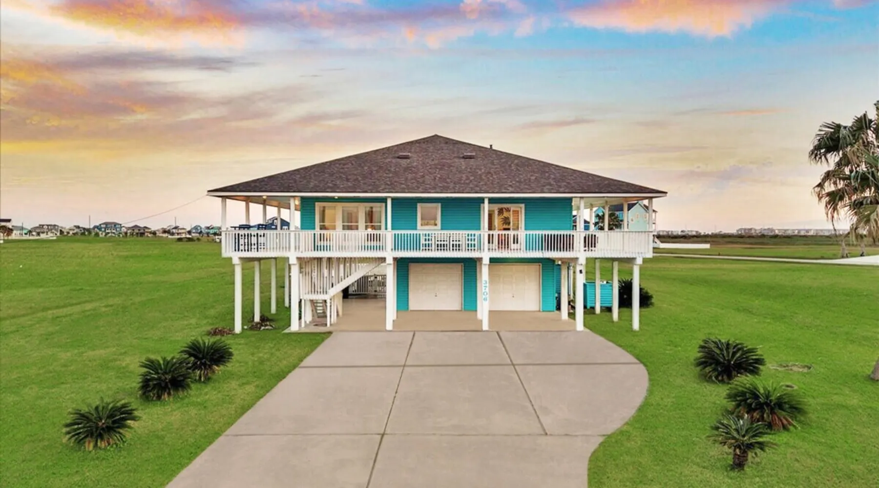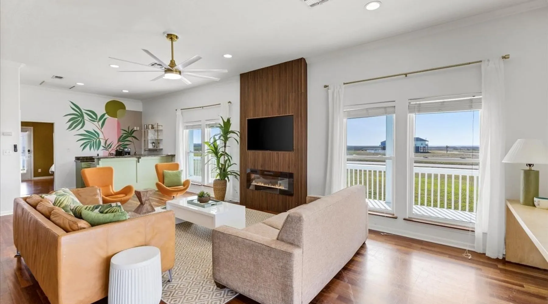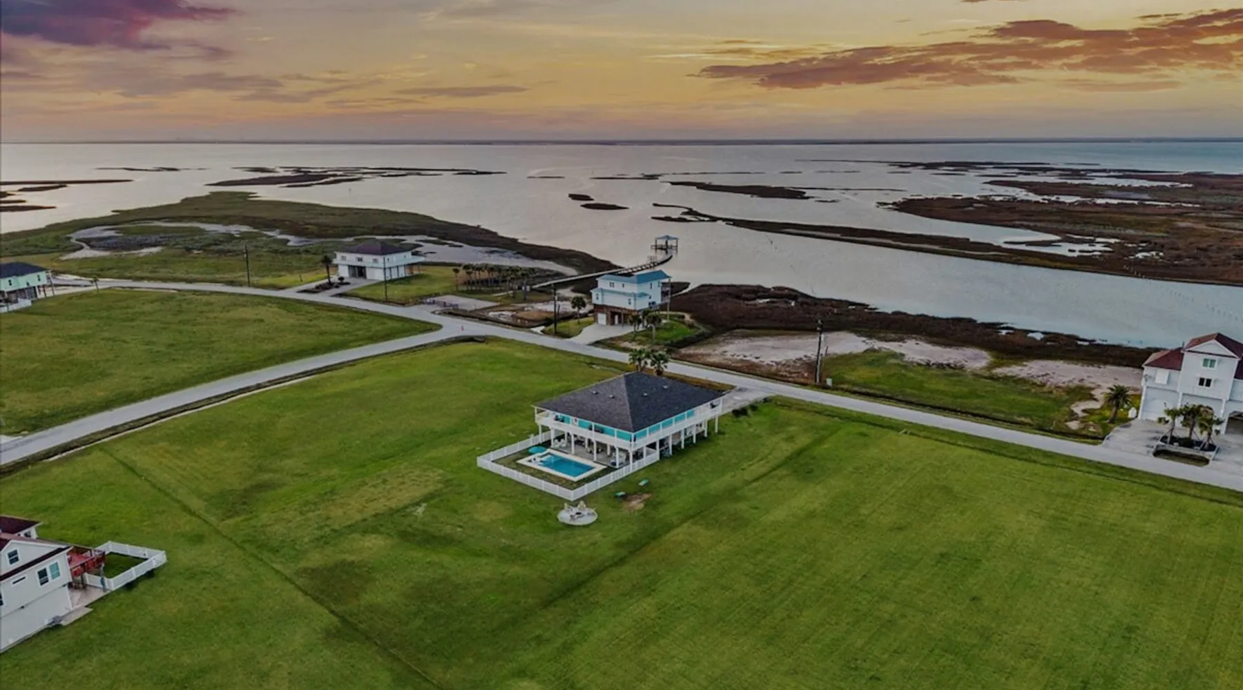 Heated Pool, Game Rm, Fall Sunsets- Sleeps 20! Discover coastal luxury at 'The Palms,' a Palm Springs-inspired 6-bedroom retreat on an acre along West Galveston Bay with amazing panoramic views. Freshly remodeled in 2024, accommodating 20 guests, indulge in the backyard HEATED swimming pool with a tanning ledge, fire ring for smores and star gazing, and the expansive game room and entertainment space less than a mile from the beach! Enjoy stunning sunsets from our 360 Degree Upper Deck. The space Located under a mile from the beach and just 15 minutes from town, this haven seamlessly blends relaxation and entertainment for an unforgettable getaway. **NEW FOR 2025** - All new outdoor furniture, including a dining table, breakfast table, and captain chairs on the deck and conversation set on the patio - Time Crisis Arcade Game - Foosball Table Sleeping Quarters Main Level-- - 2 King bedrooms, each with en-suite bathroom - 1 Queen bedroom - 1 Bunk room with full en-suite bathroom Loft-- - Queen bed and daybed with trundle Ground Level-- - 2 Twin Bunk Beds with half bath **Ground level of home does NOT have interior stairs** Coffee and Cocktail Bar - Mini fridge and large ice maker - Keurig and French Press with your choice of two different organic coffee pods and a selection of sweeteners and creamers Kitchen - Fully stocked and ready to serve 18 - Blender - Toaster Game Room - Ping Pong table - Time Crisis Arcade - Foosball Table - Axe throwing - Entertainment center with leather sectional, electric recliners, cup holders, and 65" TV - Washers - Corn hole - Glass sliding doors lead to the pool - Half bath Outdoor Space - Upstairs deck overlooks West Galveston Bay and provides an outdoor conversation set, dining table that seats 6, breakfast table that seats 2, and 2 sets of 2 captain chairs - Back Patio provides tons of seating with style- one large sectional, a conversation set, and Outdoor dining table with bench seating - Gas grill with propane provided - Swimming pool with oversized tanning ledge and seating that expands the entire length of the pool- perfect for hanging out while staying cool! - Beach toys and wagon complimentary! - Fire ring with Adirondack chairs to watch sunset and star gaze (BYO firewood) - Corn hole boards Study Space - Dedicated study space upstairs with desk for remote working/studying/reading nook *Please note- Guests do not have access to the neighborhood fishing pier *If you're bringing a pet, there is a fee. Please be sure to add it to the reservation when booking* *Pool is heated to 85 degrees at all times. During times of high wind or temperatures below 50, the pool may not be able to heat all the way up. Changes to heat temp is not permitted* Guest access The entire home will be yours to use during your stay. The home is secured by a smart lock programmed for each stay. Ask about early check-in and/or late check-out! Other things to note - Ask about concierge service- celebrating a special occasion, need a golf cart rental, groceries delivered to your door, or any other special favor? Let us know when you book! - Bring your own firewood if you plan to enjoy the fire ring- there's a store less than a mile away. - Pool heater is running 24/7. When outdoor temp is 55 or below, electric pool heater will not operate. Registration Details GVR-13319