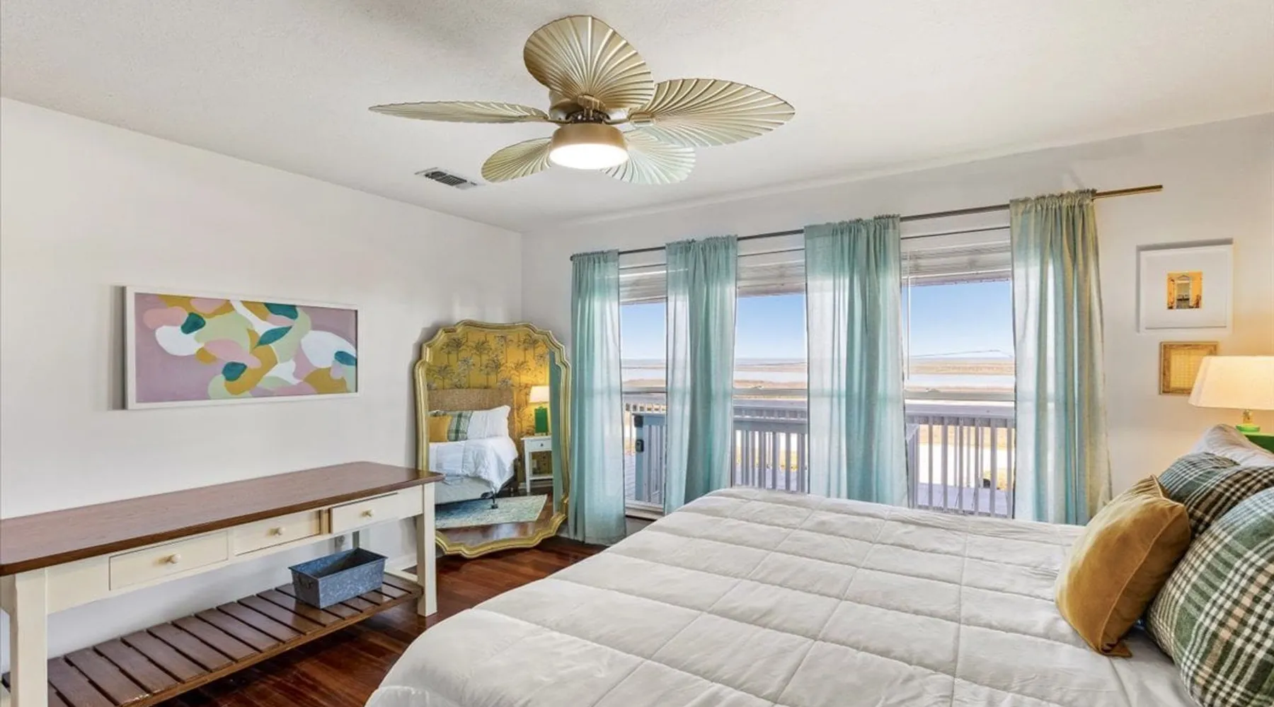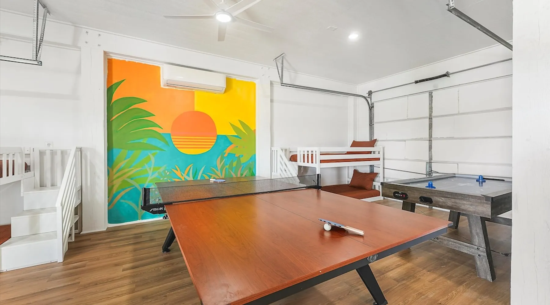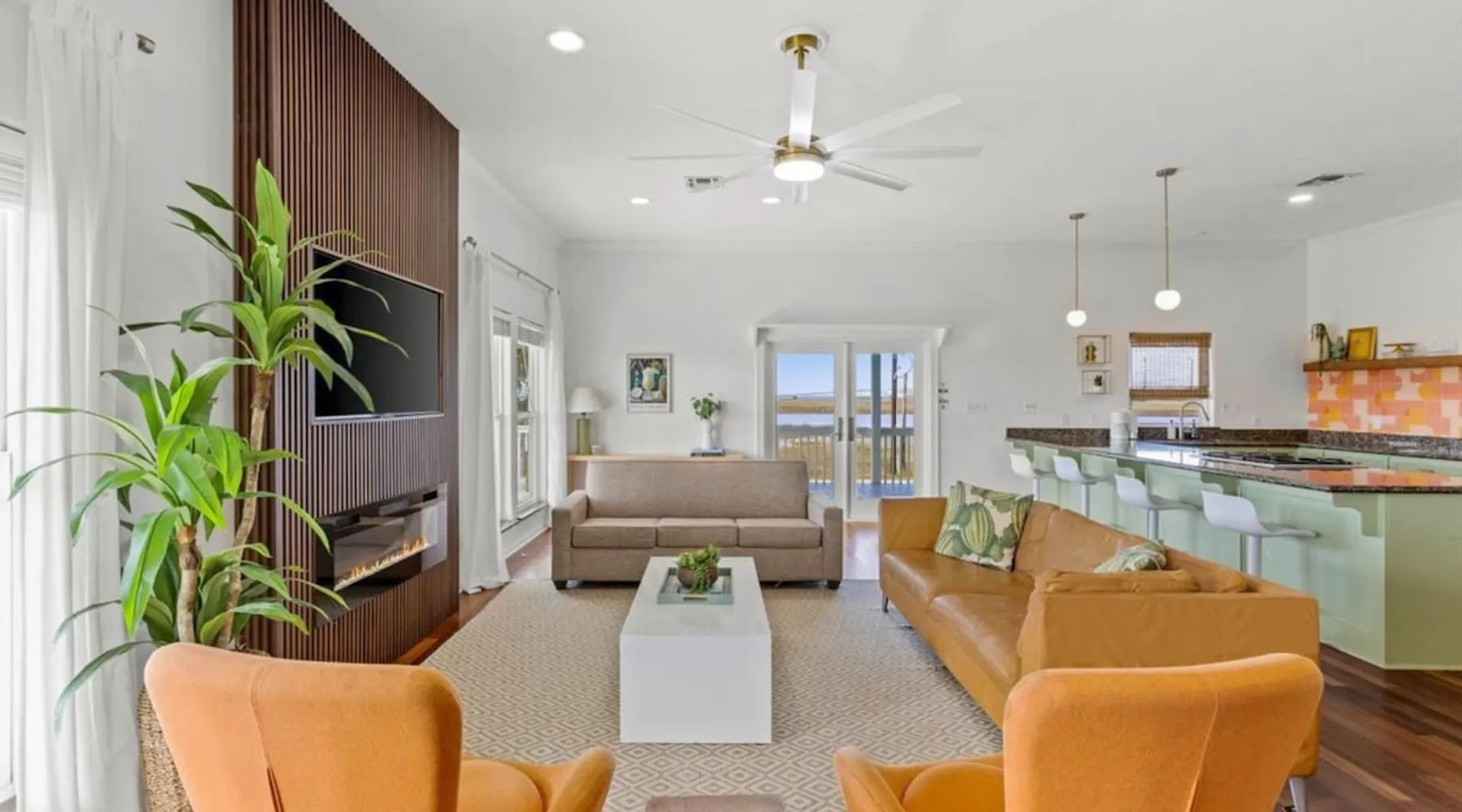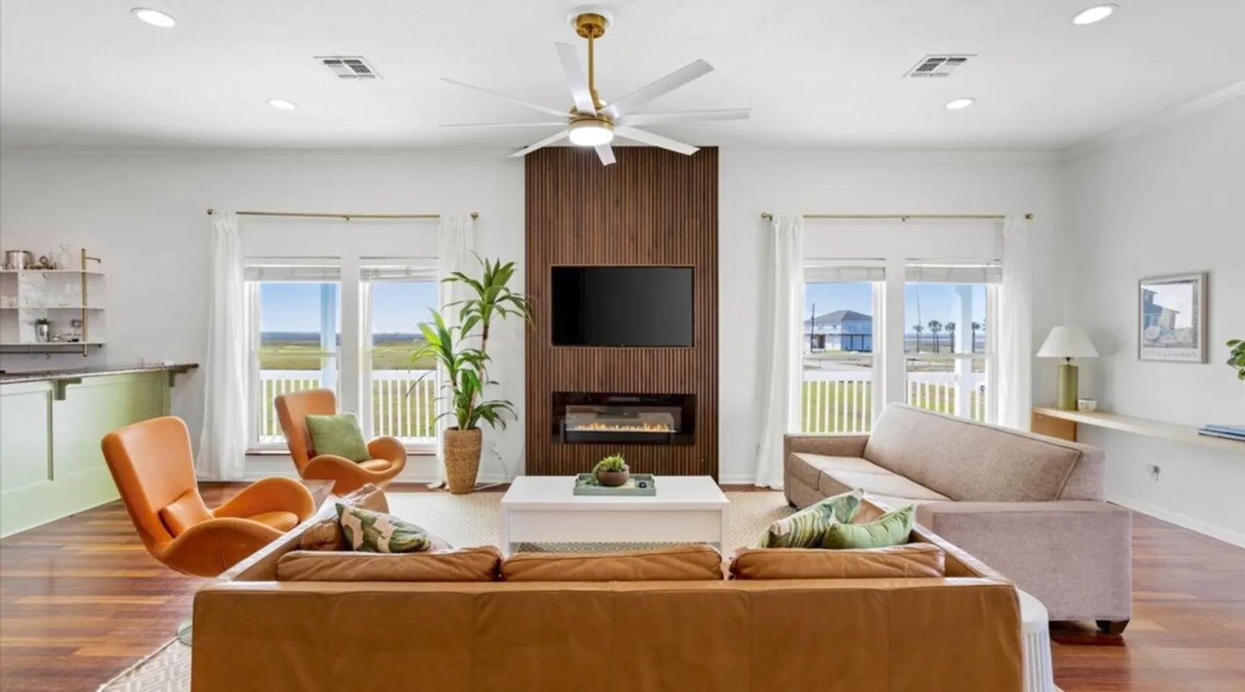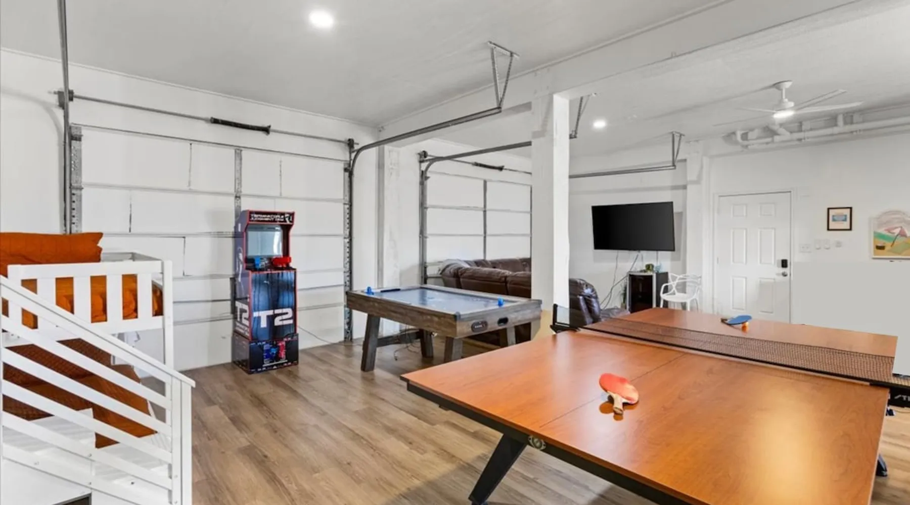 Heated Pool, Game Rm, Fall Sunsets- Sleeps 20! Discover coastal luxury at 'The Palms,' a Palm Springs-inspired 6-bedroom retreat on an acre along West Galveston Bay with amazing panoramic views. Freshly remodeled in 2024, accommodating 20 guests, indulge in the backyard HEATED swimming pool with a tanning ledge, fire ring for smores and star gazing, and the expansive game room and entertainment space less than a mile from the beach! Enjoy stunning sunsets from our 360 Degree Upper Deck. The space Located under a mile from the beach and just 15 minutes from town, this haven seamlessly blends relaxation and entertainment for an unforgettable getaway. **NEW FOR 2025** - All new outdoor furniture, including a dining table, breakfast table, and captain chairs on the deck and conversation set on the patio - Time Crisis Arcade Game - Foosball Table Sleeping Quarters Main Level-- - 2 King bedrooms, each with en-suite bathroom - 1 Queen bedroom - 1 Bunk room with full en-suite bathroom Loft-- - Queen bed and daybed with trundle Ground Level-- - 2 Twin Bunk Beds with half bath **Ground level of home does NOT have interior stairs** Coffee and Cocktail Bar - Mini fridge and large ice maker - Keurig and French Press with your choice of two different organic coffee pods and a selection of sweeteners and creamers Kitchen - Fully stocked and ready to serve 18 - Blender - Toaster Game Room - Ping Pong table - Time Crisis Arcade - Foosball Table - Axe throwing - Entertainment center with leather sectional, electric recliners, cup holders, and 65" TV - Washers - Corn hole - Glass sliding doors lead to the pool - Half bath Outdoor Space - Upstairs deck overlooks West Galveston Bay and provides an outdoor conversation set, dining table that seats 6, breakfast table that seats 2, and 2 sets of 2 captain chairs - Back Patio provides tons of seating with style- one large sectional, a conversation set, and Outdoor dining table with bench seating - Gas grill with propane provided - Swimming pool with oversized tanning ledge and seating that expands the entire length of the pool- perfect for hanging out while staying cool! - Beach toys and wagon complimentary! - Fire ring with Adirondack chairs to watch sunset and star gaze (BYO firewood) - Corn hole boards Study Space - Dedicated study space upstairs with desk for remote working/studying/reading nook *Please note- Guests do not have access to the neighborhood fishing pier *If you're bringing a pet, there is a fee. Please be sure to add it to the reservation when booking* *Pool is heated to 85 degrees at all times. During times of high wind or temperatures below 50, the pool may not be able to heat all the way up. Changes to heat temp is not permitted* Guest access The entire home will be yours to use during your stay. The home is secured by a smart lock programmed for each stay. Ask about early check-in and/or late check-out! Other things to note - Ask about concierge service- celebrating a special occasion, need a golf cart rental, groceries delivered to your door, or any other special favor? Let us know when you book! - Bring your own firewood if you plan to enjoy the fire ring- there's a store less than a mile away. - Pool heater is running 24/7. When outdoor temp is 55 or below, electric pool heater will not operate. Registration Details GVR-13319