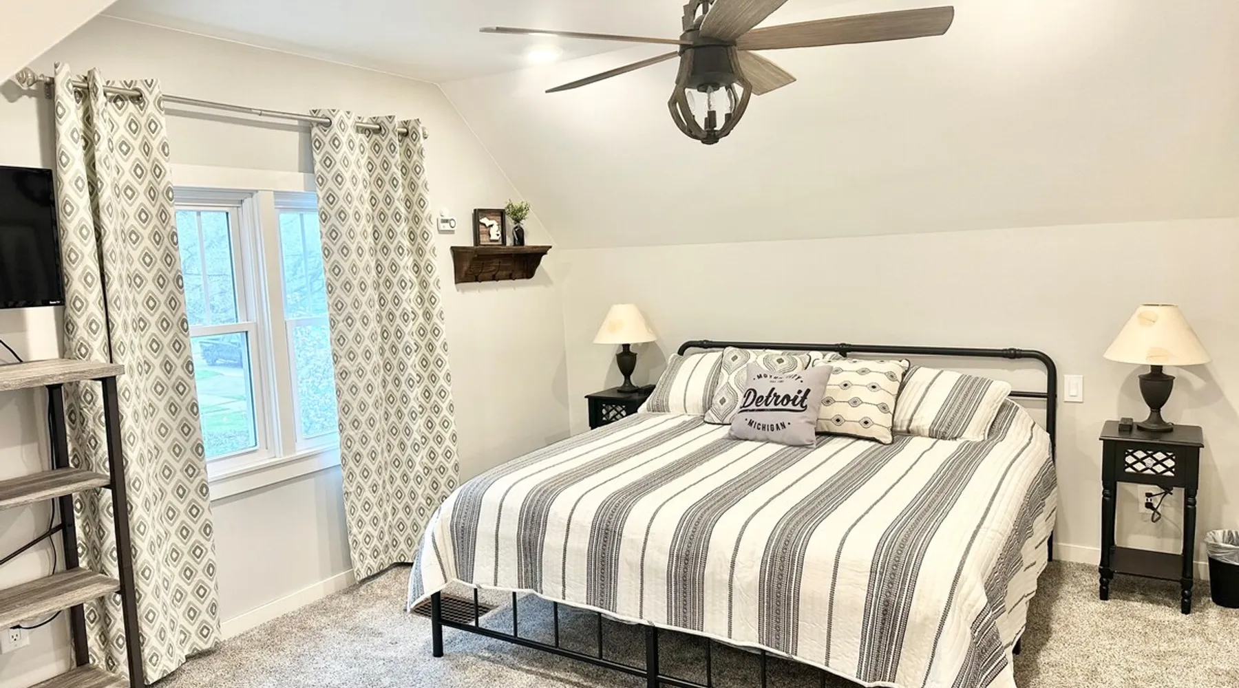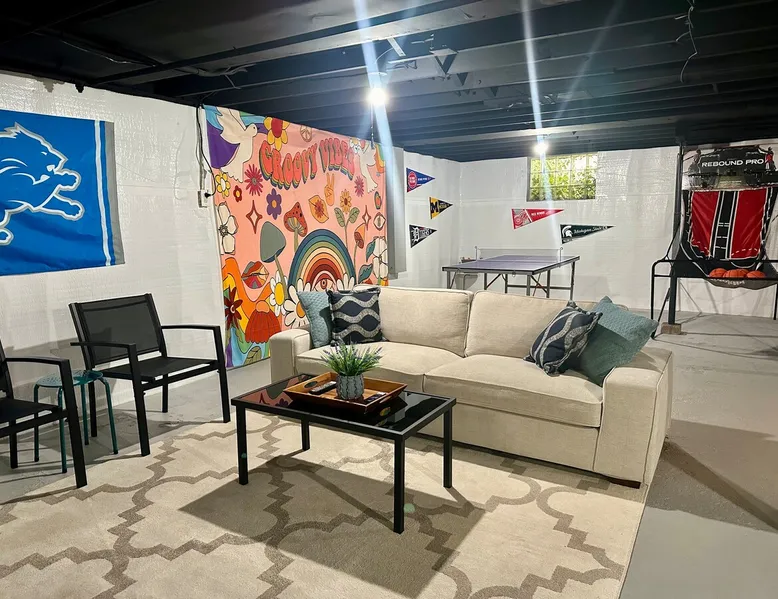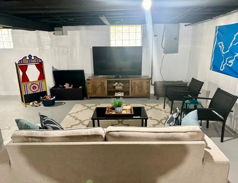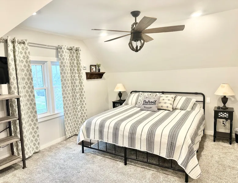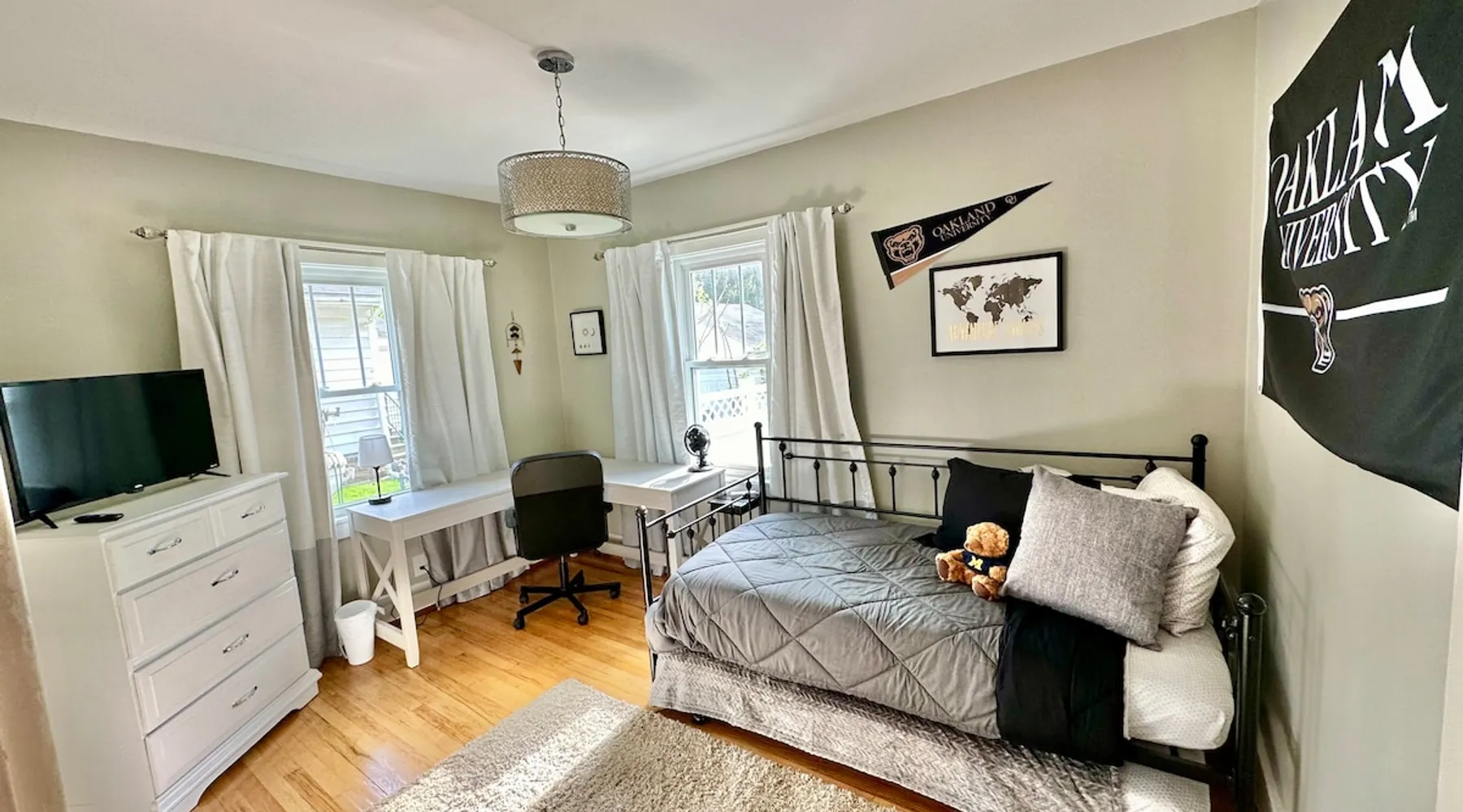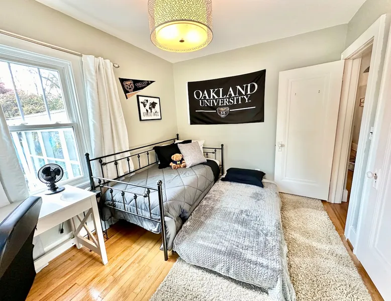 Location Location Location! This 1928 Historic Bungalow is newly refreshed & close to all Metro Detroit has to offer (Near I-75 & M-59, Oakland University, Chrysler, UWM, Amazon, Great Lakes Crossing, Pine Knob ...) Peaceful neighborhood within walking distance to downtown Auburn Hills & the Clinton River Trailhead . Clean 3 Bedroom Home w/ 2 Full Baths. Sleeps up to 6. Office Space to Work. Delightful Large Backyard Area with Patio for Dining & Relaxing (BBQ, Firetable, Hammock, Fire Pit..) The space *25 Y/O TO BOOK PREFERRED* *NOT A PARTY HOUSE* *NO PETS OR PET REQUESTS* Book with confidence! This historic bungalow is the most recent addition to our other "Happy Properties". Get to know the attentive & caring owners by clicking on our Host Profile Picture. We have an overall guest rating of 4.96 with over 300 reviews across all our properties (Happy Cactus & Happy Cabin Lakeside). Superhost Status going on 8 years! We strive to provide exceptional accommodations and value to all our guests and would love to welcome you to our Happy Bungalow! SHORT TERM RENTAL (27 nights or less) 10% Weekly Discount. MIDTERM RENTAL (28 nights- 3 months) 30 % Monthly Discount. Notes: 1. Mid-term rentals equal to 31 nights or longer do not incur state taxes of 6%. All Mid-term rentals will be subject to an additional lease agreement as well as a complimentary basic cleaning/inspection every 2 weeks. Final check-out cleaning fee still applies. 2. Stays longer than 4 weeks cannot be instant booked and require host approval. LOCATION: Only 0.4 miles from downtown Auburn Hills & Riverside Park. Walkable to the Clinton River Trail 0.3 mi (Paved Rail to Trail - East leads to Rochester and West leads to Pontiac) 1 mile to M-59 Freeway with access to I-75 in another mile via 59. SLEEPING/BATHS: 1. King Master Loft w/ En-suite Full Bath 2. King Bedroom Main Floor 3. Twin Bedroom (Twin Daybed with Twin Trundle) Main Floor. * Bedroom 3 doubles as office with desk. * Pack and Play Available Full Bath (Main Floor) & Full Bath (Master En-suite) WIFI/TV/Entertainment: High Speed Internet for remote work. Smart Roku TV with streaming options, however you will need to use your own subscriptions for certain applications enabled through guest mode on the Roku TV. Board Games Available WORKSPACE: Large Desk with dual window view in Bedroom 3 with Trundle Twin Beds. KITCHEN: Our kitchen is fully equipped with all the appliances and tableware for your stay. There is a common pantry and a spice cupboard. You are welcome to use any staples in the cabinets or condiments in the refrigerator if they are available, but we cannot guarantee anything will be there for certain. It all depends on what people use and what people leave. Starter supply of coffee is provided. LAUNDRY AREA: Washer/Dryer in Basement. Linens/Towels Provided. BASEMENT GAME ROOM: Ping Pong, Toys, TV, Basketball etc.. GARAGE & SMALL CORNER SECTION IN BASEMENT: Owner's private storage areas and not included in the rental. HEATING/COOLING: Central Heat and Air Conditioning. Guest can adjust with NEST thermostat to meet needs. BACKYARD AMENITIES: Firetable, Firepit, Hammock, BBQ, Corn Hole etc... You will be communicating directly with the attentive & caring property owner and not a management company. Guest access Garage is off limits Owner Quarters (Small Section of Basement is off limits) Other things to note Our cozy bungalow was built in the 1920's and has steep and narrow stairs to enter the Master King Bedroom Loft. Please be advised ahead of time. 2 exterior security cameras monitor the front door and driveway. Pets are Prohibited. Any evidence of pets may result in immediate rental termination & extra charges.