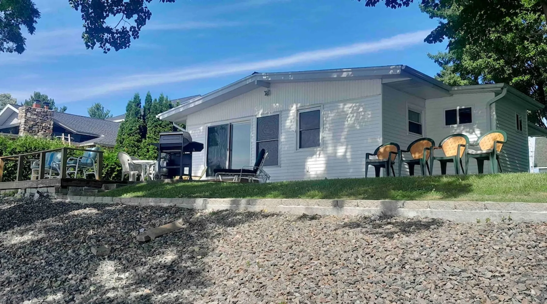 Take it easy at this unique and tranquil getaway. Tucked away from the road, this lakefront home is a charm. Two private bedrooms, two baths, a dedicated room with desk just to get some work done, and all the other comforts you need. Fabulous Westerly views , nice clean water with a dock, plenty of room to relax and just chill. There are a couple kayaks here, or Bring your own kayaks and canoes, floaty toys, what have you, you’re all set for Summer fun! The space A very nice, neat , and clean direct lakefront home. A fabulous place to relax, not far from Burlington, St. Albans City, and Montreal. Great access by dock to some very clean Lake Champlain water. Bring some water toys, add family and friends, and you’ve got a great vacation! And if your group is a little larger, we have a 2 bedroom garage apartment on the property that can be added for addition cost!