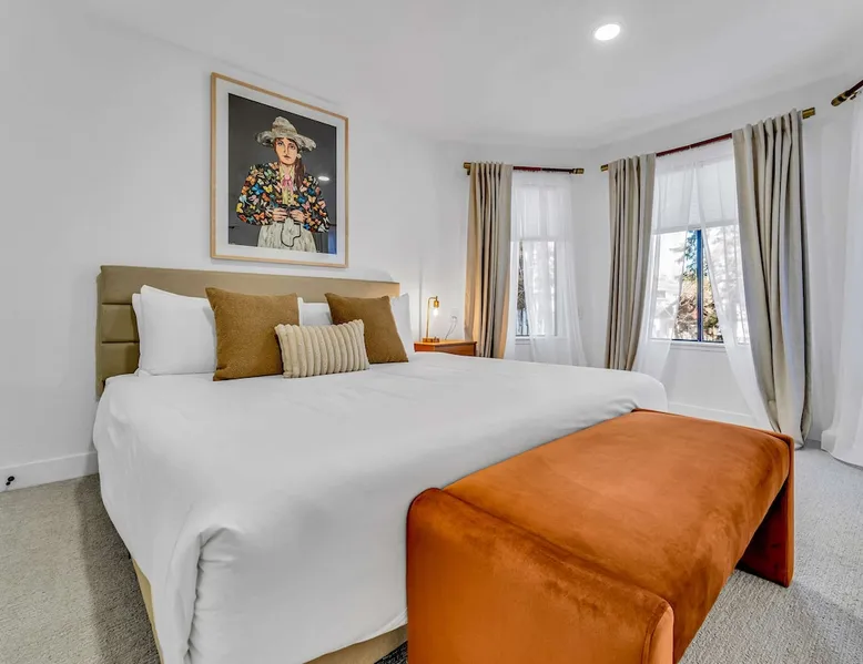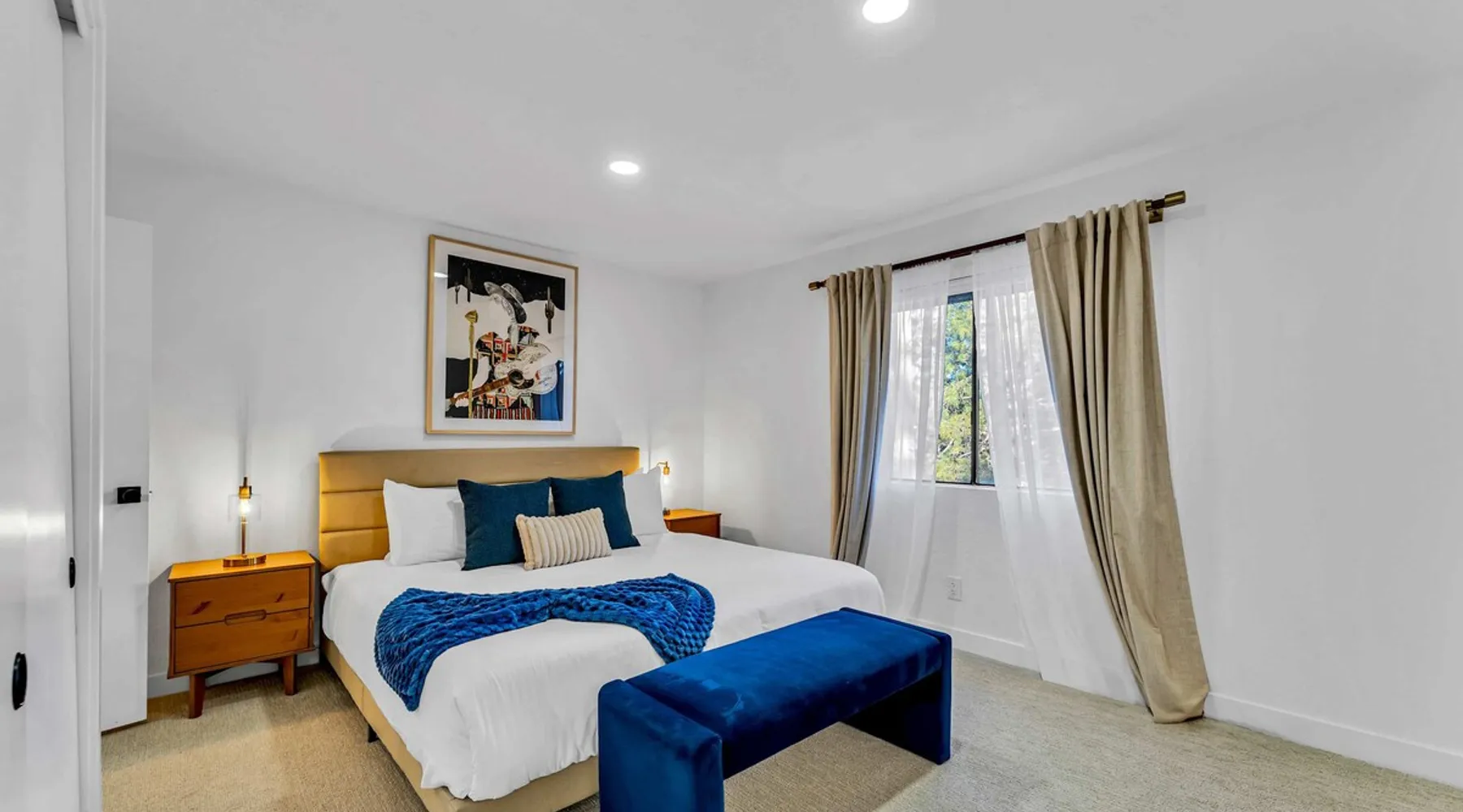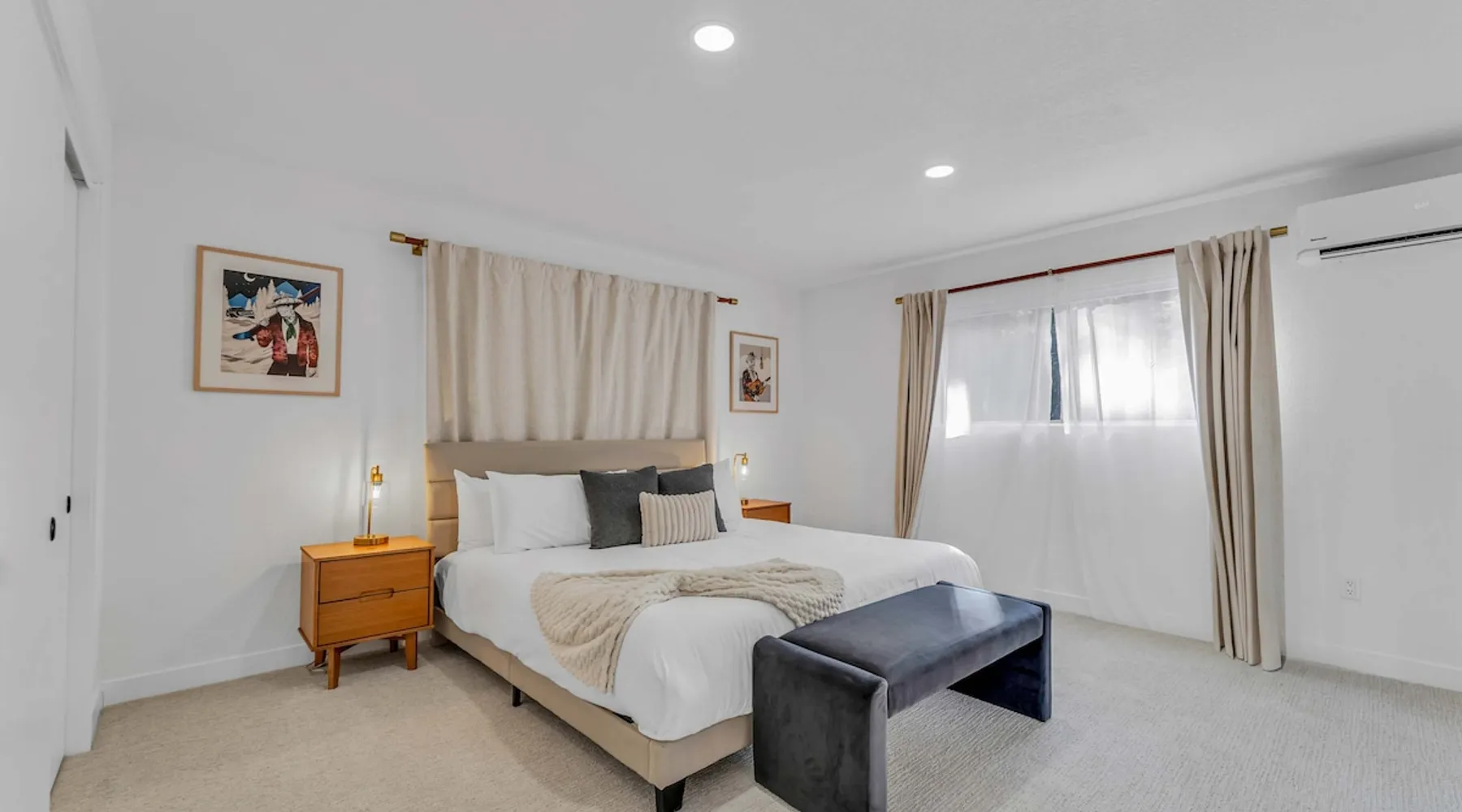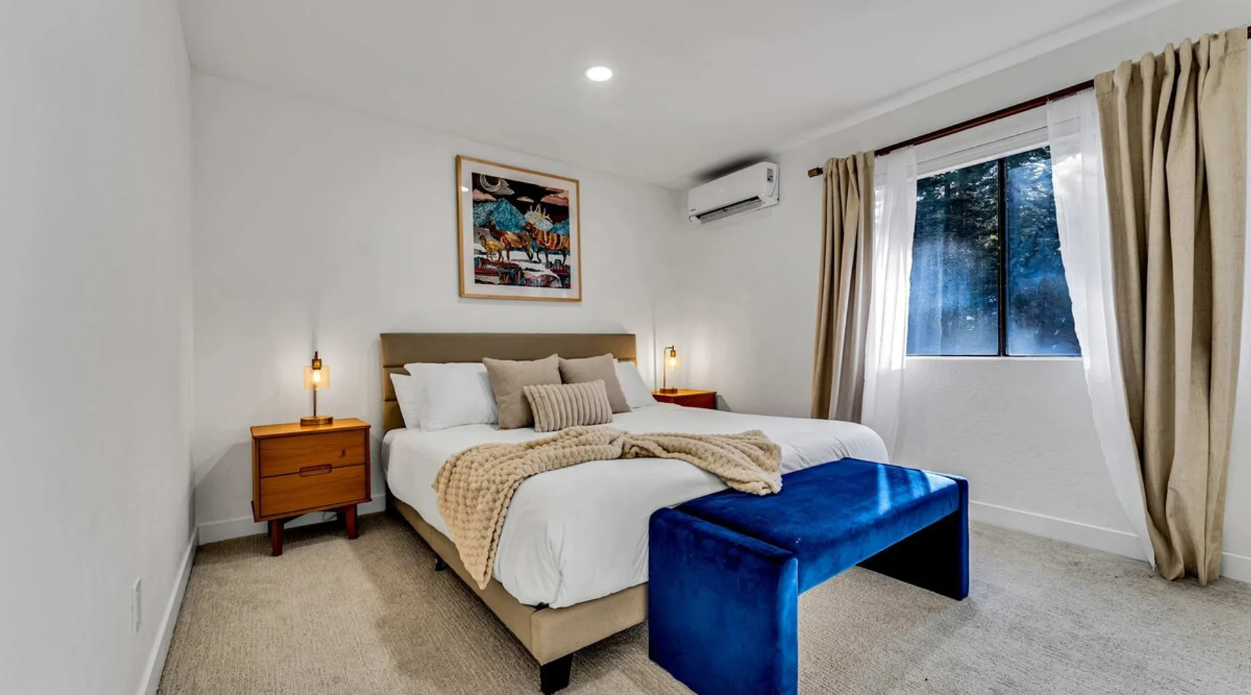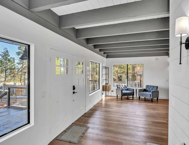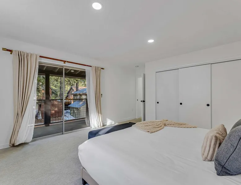 Gather your group for an unforgettable stay in this newly remodeled 7-bedroom home! With brand-new appliances, trendy art, & luxurious furnishings, it’s perfect for both entertaining & relaxing. Located right across the street from stunning Lake Tahoe & just 20 minutes or less from 3 ski areas, you’re set for year-round fun. Inside, you’ll find a gourmet kitchen, a stylish living room, & 7 inviting bedrooms, each with a king bed & individual heating/cooling units for maximum comfort. The space Location perks: 2-minute walk to Carnelian West Beach (0.1 miles), 5-minute walk to Waterman’s Landing and Patton Beach (0.3 miles), 7-minute drive to Tahoe City Nordic Center (3.6 miles), 7-minute drive to Kings Beach (3.9 miles), 11-minute drive to Tahoe City (5.8 miles), 15-minute drive to Northstar Ski Resort (9.7 miles), 20-minute drive to Palisades Tahoe Interior: - Newly remodeled home - King-size beds in all 7 bedrooms - Individual heating and cooling unit in each bedroom - Brand-new furnishings throughout the home - Immaculate kitchen with spacious kitchen bar and new appliances - Electric fireplace and 65” Smart TV in living room - 2 stacked LG washer and dryer units Exterior: - Across the street from Gar Woods Grill & Pier and Tahoe Boat Works - Bus stop a 3-minute walk from the front door - 6 parking spaces in the driveway - Obstructed lake views - Forested surroundings Downstairs: kitchen, living room, dining room, 2 full bathrooms, 2 bedrooms Upstairs #1 - two bedrooms and one bathroom Located in Carnelian Bay with the national forest as its backdrop and the shores of Lake Tahoe across the street, this 7-bedroom home is the perfect spot for your large group to enjoy all Tahoe has to offer! The home's unbeatable location lets you walk to the beach in the summer or to the slopes within a 20-minute or less drive in the winter. The entire home has been remodeled with luxury in comfort in mind! Inside, you will find a bright and sleek shared living space with a beautiful kitchen that includes a spacious kitchen island and a separate dining room with seating for 7. Unwind in the cozy living room while watching a movie on the 65” Smart TV, with the electric fireplace creating a warm ambiance. You’ll even find 2 sets of LG washers and dryers, perfect for keeping up with the laundry demands of large groups. When you are ready to call it a night the home’s 7 bedrooms are spread out in three different areas of the home offering a great separation of space for added privacy. All 7 bedrooms include plush carpeting, king-size beds, spacious closets, and individual heating/cooling units. Large windows throughout the home offer glimpses of Lake Tahoe through the trees and fill the space with natural light. Outside you will find a backyard as well as ample outdoor storage space to store all your outdoor gear. STR Permit Number: STR24-8854 Max Occupancy: 14 Parking Info: There are 6 spaces available to park on the property premises. Guest access Guests will have access to the entire home, outdoor areas including a and balcony, and six parking places in the driveway. Other things to note Please keep in mind that if you plan to ski, you are responsible for verifying the ski resorts' opening and closing dates. Charcoal grills are strictly forbidden in this county and will result in a $1,500 citation if used. 4-wheel drive or 2-wheel drive tires with snow chains may be necessary for safe travel to this property, even if it hasn’t snowed in a few days. Registration details STR24-8854