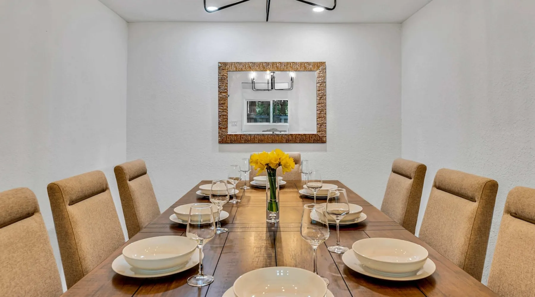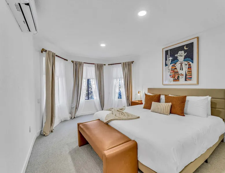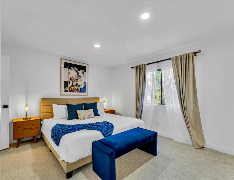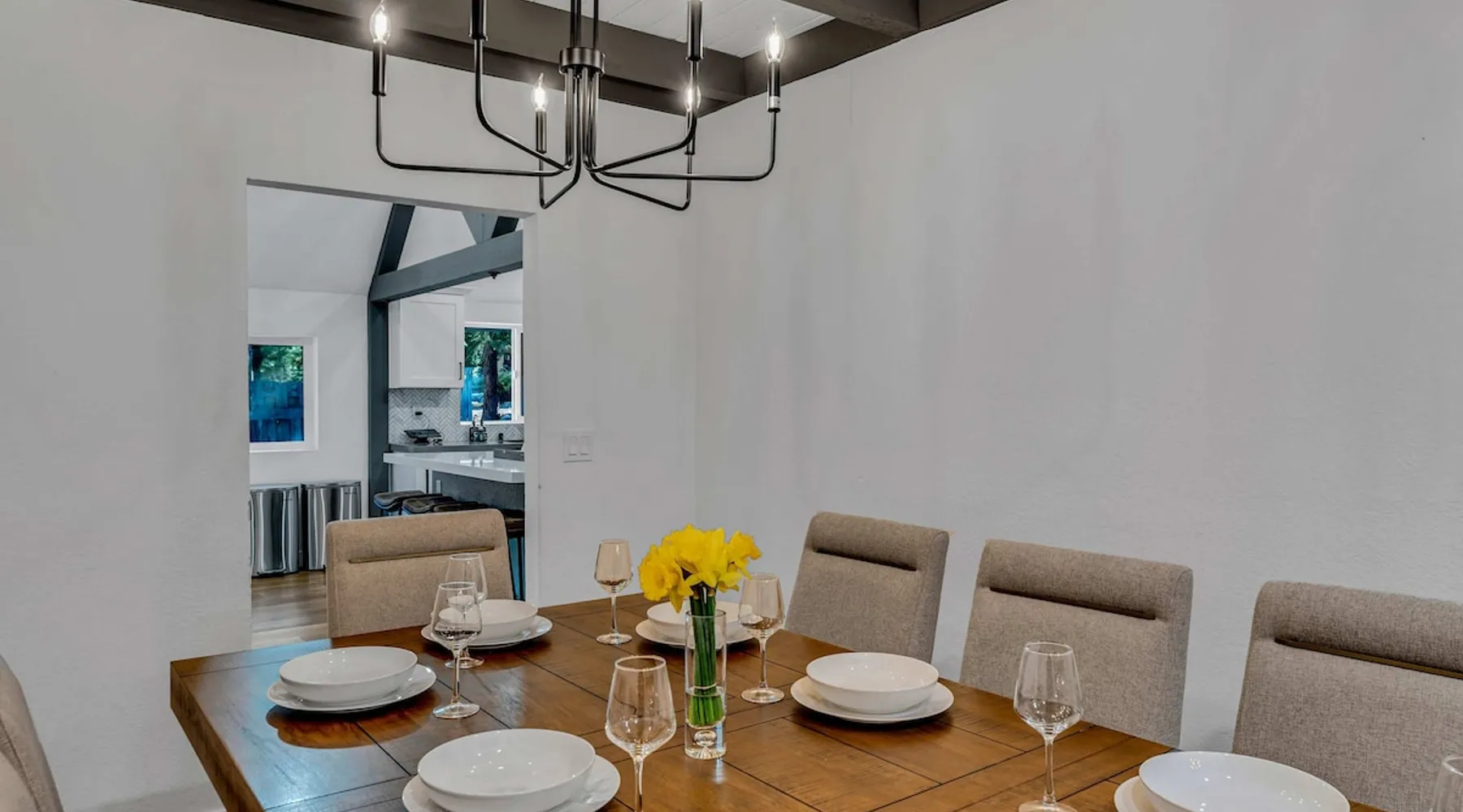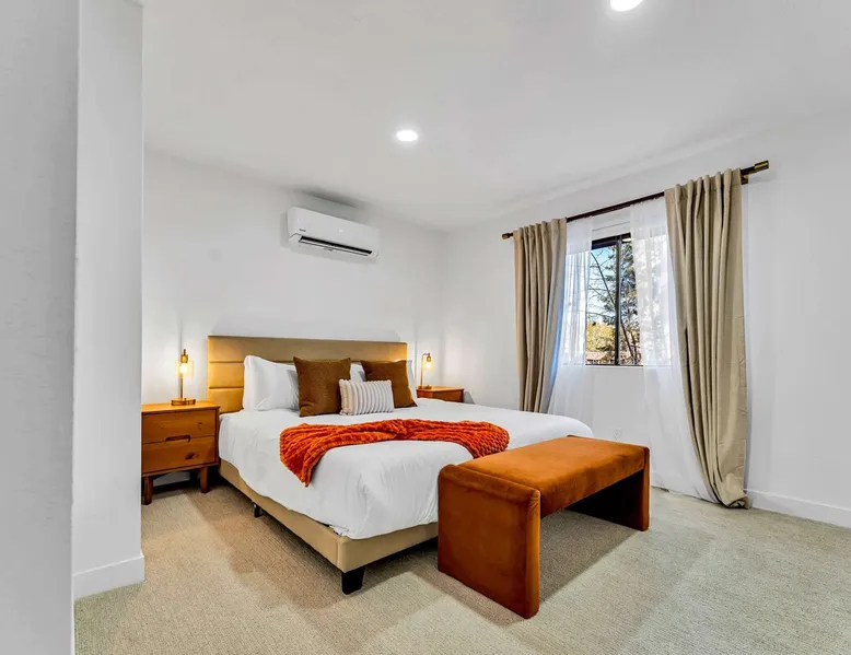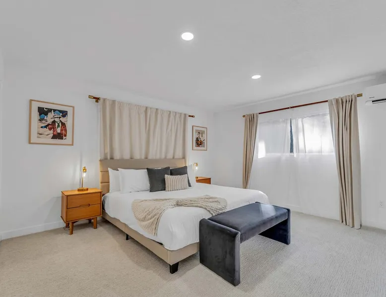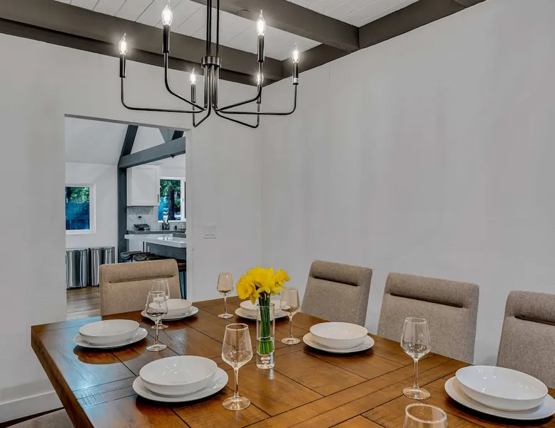Gather your group for an unforgettable stay in this newly remodeled 7-bedroom home! With brand-new appliances, trendy art, & luxurious furnishings, it’s perfect for both entertaining & relaxing. Located right across the street from stunning Lake Tahoe & just 20 minutes or less from 3 ski areas, you’re set for year-round fun. Inside, you’ll find a gourmet kitchen, a stylish living room, & 7 inviting bedrooms, each with a king bed & individual heating/cooling units for maximum comfort. The space Location perks: 2-minute walk to Carnelian West Beach (0.1 miles), 5-minute walk to Waterman’s Landing and Patton Beach (0.3 miles), 7-minute drive to Tahoe City Nordic Center (3.6 miles), 7-minute drive to Kings Beach (3.9 miles), 11-minute drive to Tahoe City (5.8 miles), 15-minute drive to Northstar Ski Resort (9.7 miles), 20-minute drive to Palisades Tahoe Interior: - Newly remodeled home - King-size beds in all 7 bedrooms - Individual heating and cooling unit in each bedroom - Brand-new furnishings throughout the home - Immaculate kitchen with spacious kitchen bar and new appliances - Electric fireplace and 65” Smart TV in living room - 2 stacked LG washer and dryer units Exterior: - Across the street from Gar Woods Grill & Pier and Tahoe Boat Works - Bus stop a 3-minute walk from the front door - 6 parking spaces in the driveway - Obstructed lake views - Forested surroundings Downstairs: kitchen, living room, dining room, 2 full bathrooms, 2 bedrooms Upstairs #1 - two bedrooms and one bathroom Located in Carnelian Bay with the national forest as its backdrop and the shores of Lake Tahoe across the street, this 7-bedroom home is the perfect spot for your large group to enjoy all Tahoe has to offer! The home's unbeatable location lets you walk to the beach in the summer or to the slopes within a 20-minute or less drive in the winter. The entire home has been remodeled with luxury in comfort in mind! Inside, you will find a bright and sleek shared living space with a beautiful kitchen that includes a spacious kitchen island and a separate dining room with seating for 7. Unwind in the cozy living room while watching a movie on the 65” Smart TV, with the electric fireplace creating a warm ambiance. You’ll even find 2 sets of LG washers and dryers, perfect for keeping up with the laundry demands of large groups. When you are ready to call it a night the home’s 7 bedrooms are spread out in three different areas of the home offering a great separation of space for added privacy. All 7 bedrooms include plush carpeting, king-size beds, spacious closets, and individual heating/cooling units. Large windows throughout the home offer glimpses of Lake Tahoe through the trees and fill the space with natural light. Outside you will find a backyard as well as ample outdoor storage space to store all your outdoor gear. STR Permit Number: STR24-8854 Max Occupancy: 14 Parking Info: There are 6 spaces available to park on the property premises. Guest access Guests will have access to the entire home, outdoor areas including a and balcony, and six parking places in the driveway. Other things to note Please keep in mind that if you plan to ski, you are responsible for verifying the ski resorts' opening and closing dates. Charcoal grills are strictly forbidden in this county and will result in a $1,500 citation if used. 4-wheel drive or 2-wheel drive tires with snow chains may be necessary for safe travel to this property, even if it hasn’t snowed in a few days. Registration details STR24-8854