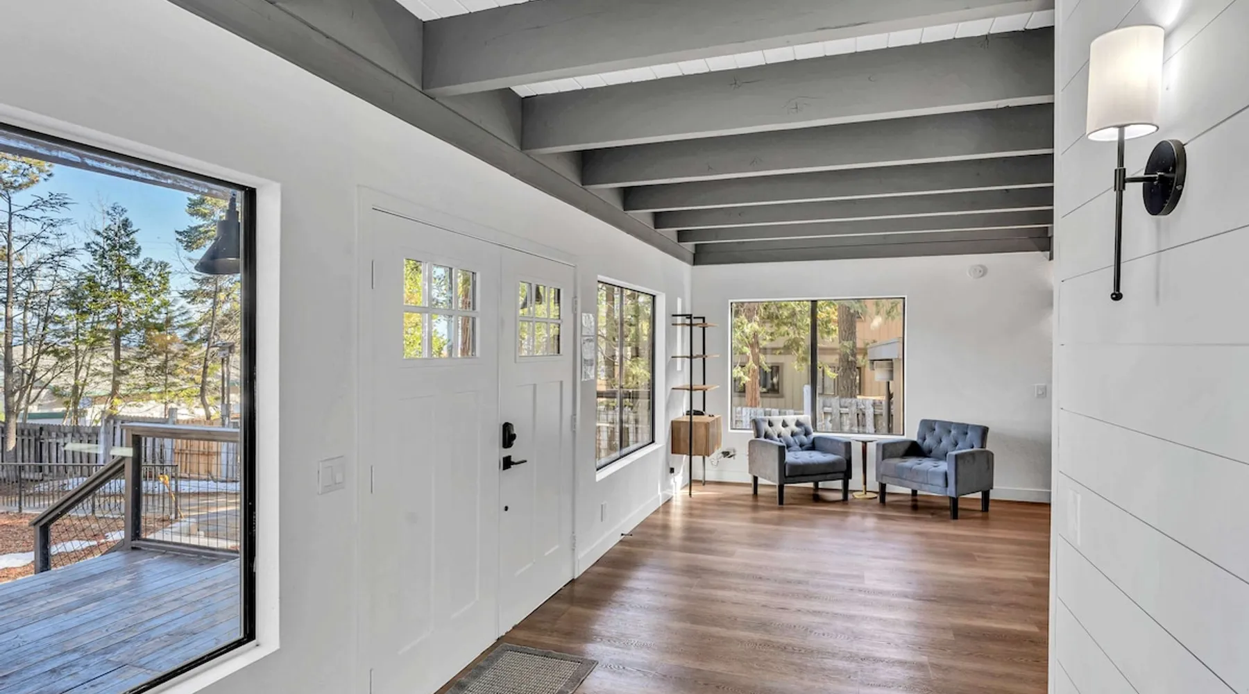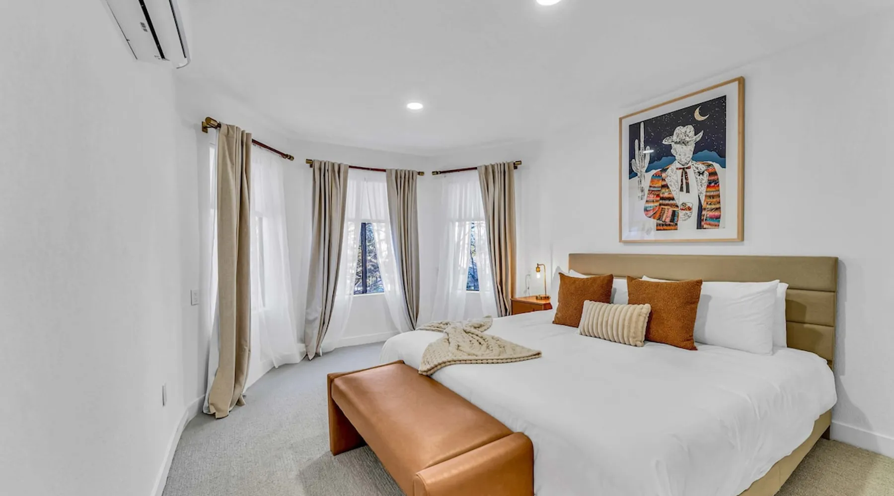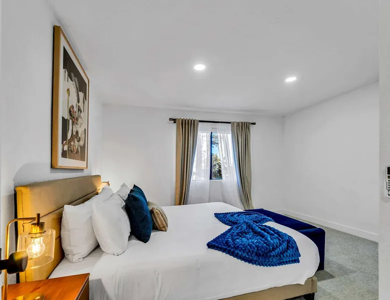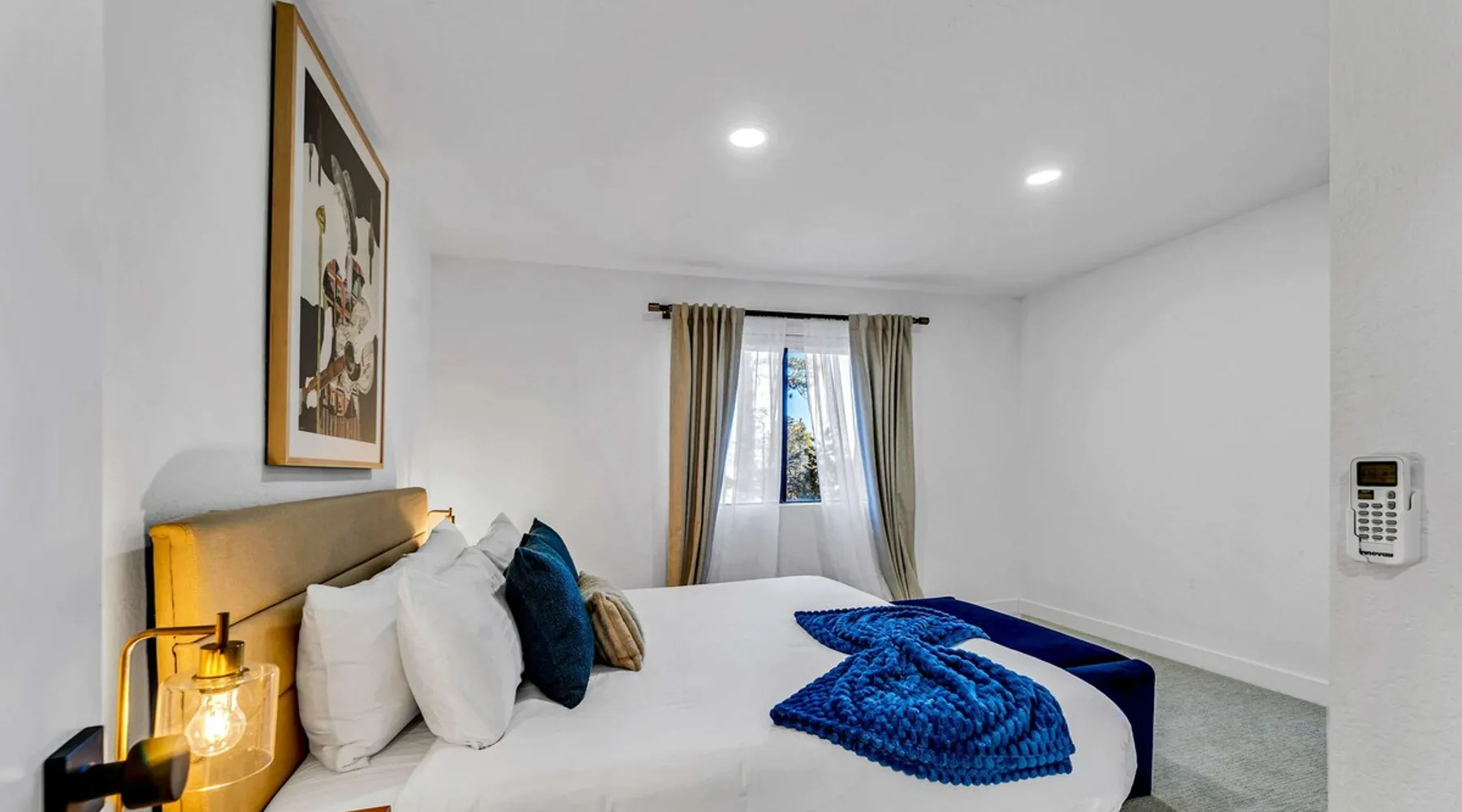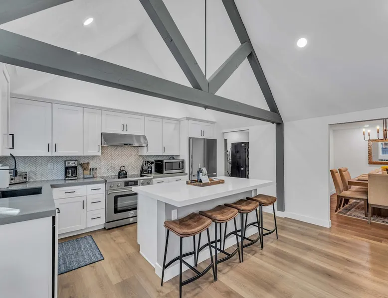 Gather your group for an unforgettable stay in this newly remodeled 7-bedroom home! With brand-new appliances, trendy art, & luxurious furnishings, it’s perfect for both entertaining & relaxing. Located right across the street from stunning Lake Tahoe & just 20 minutes or less from 3 ski areas, you’re set for year-round fun. Inside, you’ll find a gourmet kitchen, a stylish living room, & 7 inviting bedrooms, each with a king bed & individual heating/cooling units for maximum comfort. The space Location perks: 2-minute walk to Carnelian West Beach (0.1 miles), 5-minute walk to Waterman’s Landing and Patton Beach (0.3 miles), 7-minute drive to Tahoe City Nordic Center (3.6 miles), 7-minute drive to Kings Beach (3.9 miles), 11-minute drive to Tahoe City (5.8 miles), 15-minute drive to Northstar Ski Resort (9.7 miles), 20-minute drive to Palisades Tahoe Interior: - Newly remodeled home - King-size beds in all 7 bedrooms - Individual heating and cooling unit in each bedroom - Brand-new furnishings throughout the home - Immaculate kitchen with spacious kitchen bar and new appliances - Electric fireplace and 65” Smart TV in living room - 2 stacked LG washer and dryer units Exterior: - Across the street from Gar Woods Grill & Pier and Tahoe Boat Works - Bus stop a 3-minute walk from the front door - 6 parking spaces in the driveway - Obstructed lake views - Forested surroundings Downstairs: kitchen, living room, dining room, 2 full bathrooms, 2 bedrooms Upstairs #1 - two bedrooms and one bathroom Located in Carnelian Bay with the national forest as its backdrop and the shores of Lake Tahoe across the street, this 7-bedroom home is the perfect spot for your large group to enjoy all Tahoe has to offer! The home's unbeatable location lets you walk to the beach in the summer or to the slopes within a 20-minute or less drive in the winter. The entire home has been remodeled with luxury in comfort in mind! Inside, you will find a bright and sleek shared living space with a beautiful kitchen that includes a spacious kitchen island and a separate dining room with seating for 7. Unwind in the cozy living room while watching a movie on the 65” Smart TV, with the electric fireplace creating a warm ambiance. You’ll even find 2 sets of LG washers and dryers, perfect for keeping up with the laundry demands of large groups. When you are ready to call it a night the home’s 7 bedrooms are spread out in three different areas of the home offering a great separation of space for added privacy. All 7 bedrooms include plush carpeting, king-size beds, spacious closets, and individual heating/cooling units. Large windows throughout the home offer glimpses of Lake Tahoe through the trees and fill the space with natural light. Outside you will find a backyard as well as ample outdoor storage space to store all your outdoor gear. STR Permit Number: STR24-8854 Max Occupancy: 14 Parking Info: There are 6 spaces available to park on the property premises. Guest access Guests will have access to the entire home, outdoor areas including a and balcony, and six parking places in the driveway. Other things to note Please keep in mind that if you plan to ski, you are responsible for verifying the ski resorts' opening and closing dates. Charcoal grills are strictly forbidden in this county and will result in a $1,500 citation if used. 4-wheel drive or 2-wheel drive tires with snow chains may be necessary for safe travel to this property, even if it hasn’t snowed in a few days. Registration details STR24-8854