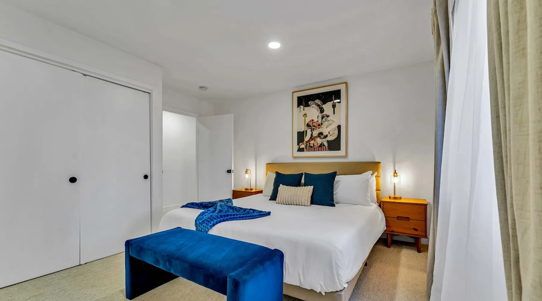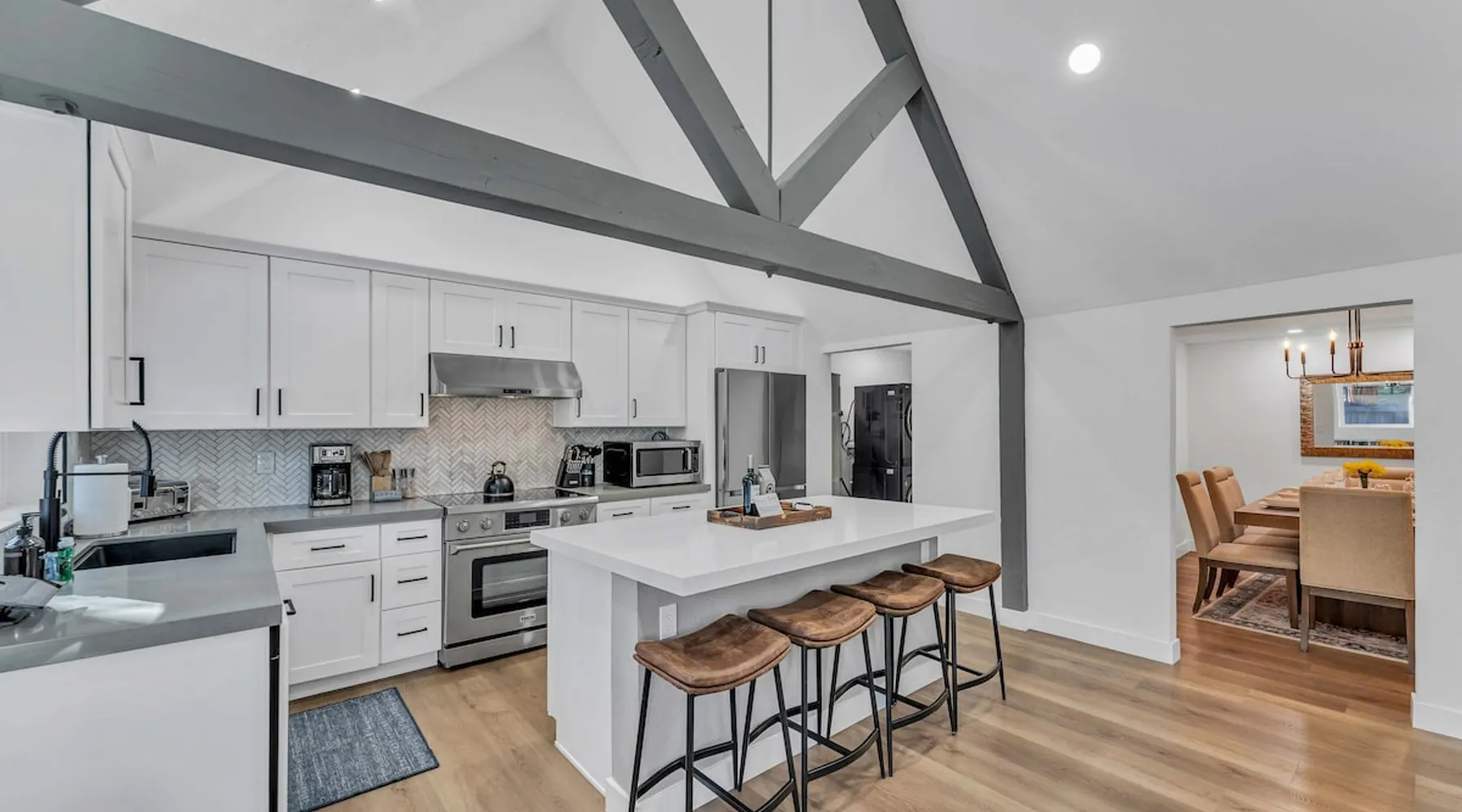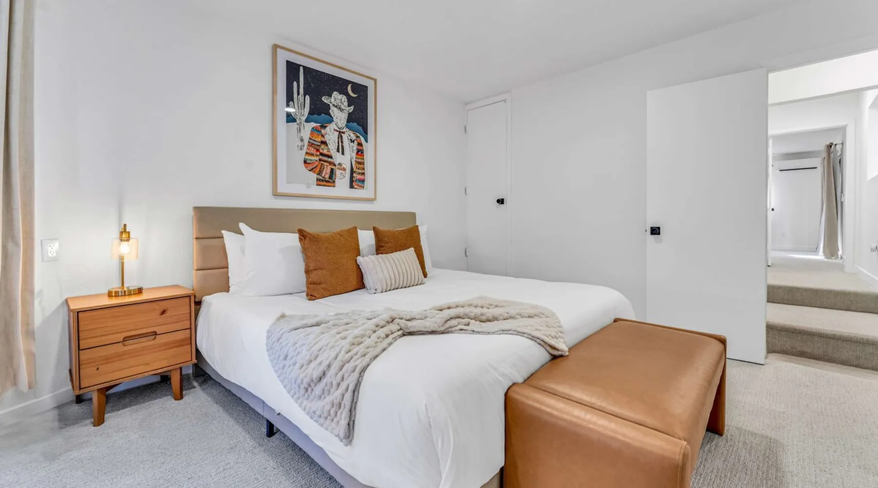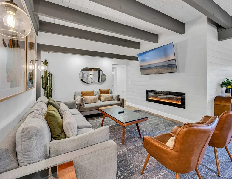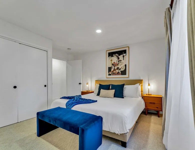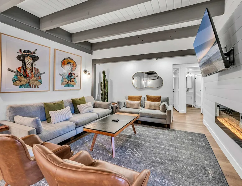 Gather your group for an unforgettable stay in this newly remodeled 7-bedroom home! With brand-new appliances, trendy art, & luxurious furnishings, it’s perfect for both entertaining & relaxing. Located right across the street from stunning Lake Tahoe & just 20 minutes or less from 3 ski areas, you’re set for year-round fun. Inside, you’ll find a gourmet kitchen, a stylish living room, & 7 inviting bedrooms, each with a king bed & individual heating/cooling units for maximum comfort. The space Location perks: 2-minute walk to Carnelian West Beach (0.1 miles), 5-minute walk to Waterman’s Landing and Patton Beach (0.3 miles), 7-minute drive to Tahoe City Nordic Center (3.6 miles), 7-minute drive to Kings Beach (3.9 miles), 11-minute drive to Tahoe City (5.8 miles), 15-minute drive to Northstar Ski Resort (9.7 miles), 20-minute drive to Palisades Tahoe Interior: - Newly remodeled home - King-size beds in all 7 bedrooms - Individual heating and cooling unit in each bedroom - Brand-new furnishings throughout the home - Immaculate kitchen with spacious kitchen bar and new appliances - Electric fireplace and 65” Smart TV in living room - 2 stacked LG washer and dryer units Exterior: - Across the street from Gar Woods Grill & Pier and Tahoe Boat Works - Bus stop a 3-minute walk from the front door - 6 parking spaces in the driveway - Obstructed lake views - Forested surroundings Downstairs: kitchen, living room, dining room, 2 full bathrooms, 2 bedrooms Upstairs #1 - two bedrooms and one bathroom Located in Carnelian Bay with the national forest as its backdrop and the shores of Lake Tahoe across the street, this 7-bedroom home is the perfect spot for your large group to enjoy all Tahoe has to offer! The home's unbeatable location lets you walk to the beach in the summer or to the slopes within a 20-minute or less drive in the winter. The entire home has been remodeled with luxury in comfort in mind! Inside, you will find a bright and sleek shared living space with a beautiful kitchen that includes a spacious kitchen island and a separate dining room with seating for 7. Unwind in the cozy living room while watching a movie on the 65” Smart TV, with the electric fireplace creating a warm ambiance. You’ll even find 2 sets of LG washers and dryers, perfect for keeping up with the laundry demands of large groups. When you are ready to call it a night the home’s 7 bedrooms are spread out in three different areas of the home offering a great separation of space for added privacy. All 7 bedrooms include plush carpeting, king-size beds, spacious closets, and individual heating/cooling units. Large windows throughout the home offer glimpses of Lake Tahoe through the trees and fill the space with natural light. Outside you will find a backyard as well as ample outdoor storage space to store all your outdoor gear. STR Permit Number: STR24-8854 Max Occupancy: 14 Parking Info: There are 6 spaces available to park on the property premises. Guest access Guests will have access to the entire home, outdoor areas including a and balcony, and six parking places in the driveway. Other things to note Please keep in mind that if you plan to ski, you are responsible for verifying the ski resorts' opening and closing dates. Charcoal grills are strictly forbidden in this county and will result in a $1,500 citation if used. 4-wheel drive or 2-wheel drive tires with snow chains may be necessary for safe travel to this property, even if it hasn’t snowed in a few days. Registration details STR24-8854