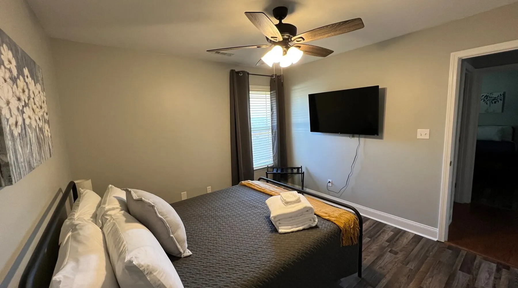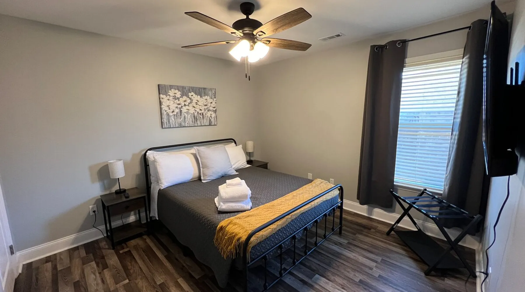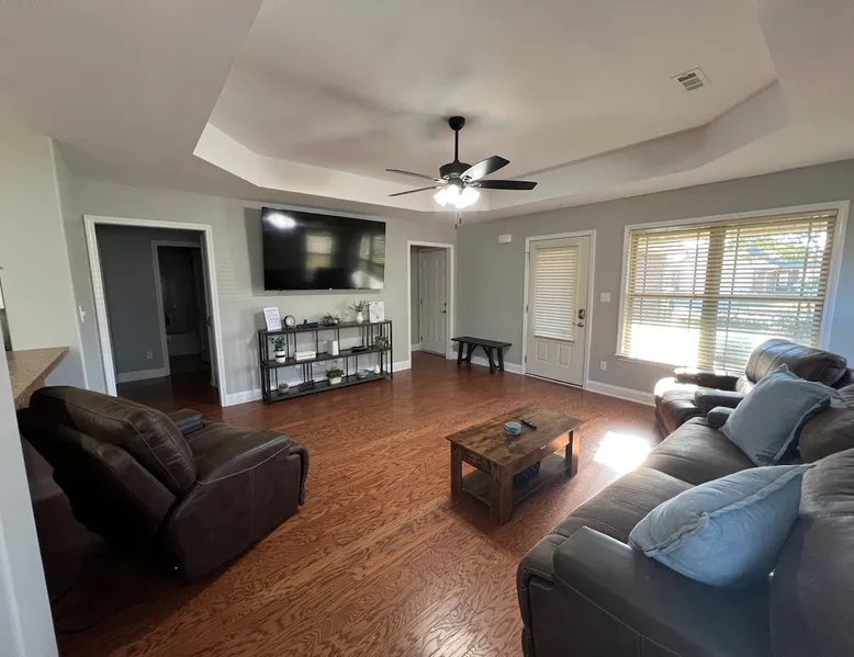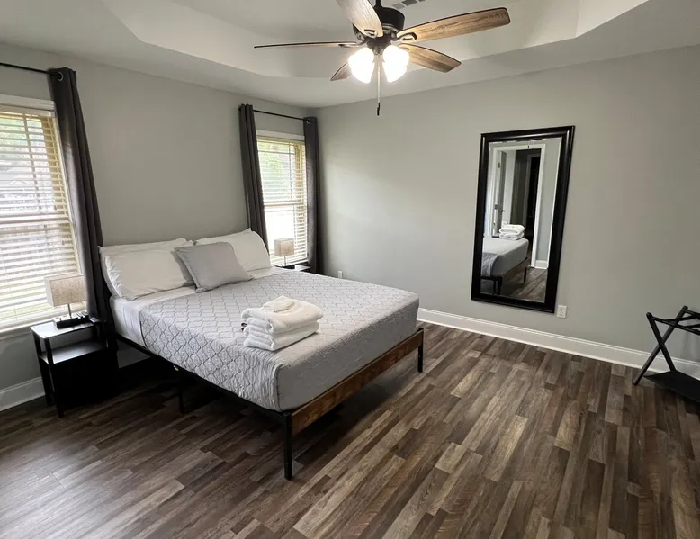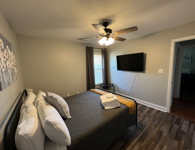Welcome to our new, centrally located home in Huntsville, where comfort and convenience meet. Whether you're here for business or pleasure, our well-appointed 3-bedroom retreat is your ideal base for exploring all that the Rocket City has to offer! 4k TVs everywhere! 75" in the Den, 55" in the MBR, and 50" in the other bedrooms. Full length mirror in MBR. Hardwood, tile, & LVP - no carpet. Check out our other listings at: http://www.airbnb.com/h/hnt1 http://www.airbnb.com/h/hnt3 The space Step into this modern haven, thoughtfully designed to make your stay truly enjoyable. Our house features: + Three spacious bedrooms with brand new, comfortable queen and twin sized beds + A fully equipped kitchen with all the essentials for cooking and dining + A large and inviting living room with a 75" 4k smart TV (Roku) + High-speed WiFi to keep you connected and entertained + Two contemporary bathrooms with bathtubs / showers + In-house washer and dryer for your convenience Only minutes away from almost everything! 2.0 miles: Oakwood University 2.5 miles: Providence (dining, bars) 2.7 miles: Indian Creek Greenway North (walking trail) 3.2 miles: The MidCity District (Top Golf, Starbucks, High Point Climbing, The Camp - live music, Salt Factory Pub, and other shops and restaurants) 3.5 miles: The Orion Amphitheater 3.7 miles: Cummings Research Park 4.0 miles: The University of Alabama - Huntsville (UAH) 5.4 miles: Bridge Street Town Centre (shopping, cinema, restaurants) 5.7 miles: Redstone Arsenal Gate 9 Visitors Center 6.1 miles: Alabama A&M 6.4 miles: Downtown Huntsville 7.2 miles: Madison Hospital 7.7 miles: Huntsville Hospital 8.3 miles: John Hunt Park 8.5 miles: Trash Pandas Baseball at Toyota Field 8.7 miles: Town Madison (dining) 12.1 miles: Huntsville International Airport Groceries: 1.8 miles: Publix Super Market 2.5 miles: Walmart Supercenter 3.2 miles: Trader Joe's Guest access The entire house is yours to enjoy during your stay including the garage, providing you with the utmost privacy and comfort Other things to note We maintain a strict no-smoking policy. Pet-friendly; please inquire about our pet policy